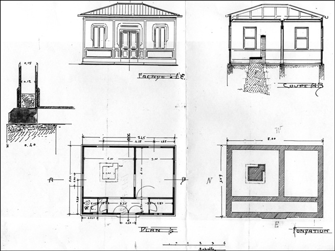 Resim 6’da görüldüğü gibi mimarların tanımı ile baraka olarak tanımlanan yapı 6.05mX8.00 m boyutunda bir temel üzerine yerleşen ve küçük bir antreden girilen iki odalı bir yapıdır. Küçük oda görevliye daha büyük olan ise sismografa ayrılmış ve sismograf için bir pilye hazırlanmıştır.
