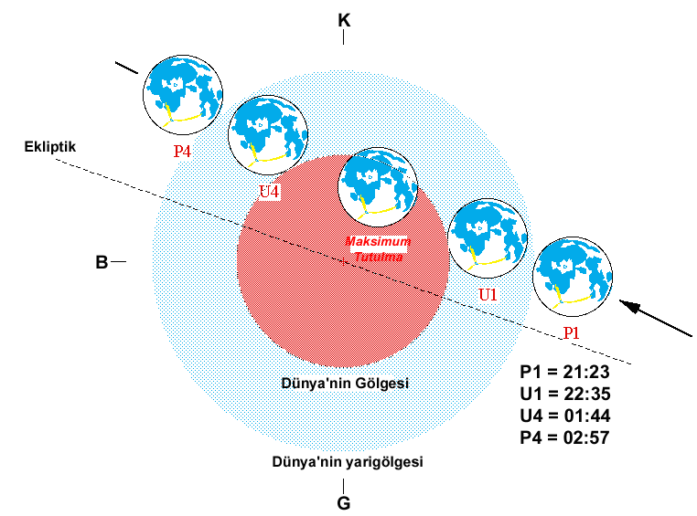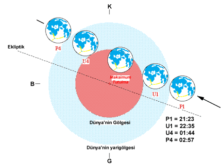 00:11'de en büyük parçası tutulmuş olacaktır. Ay'ın tam gölgeye girip çıkması
