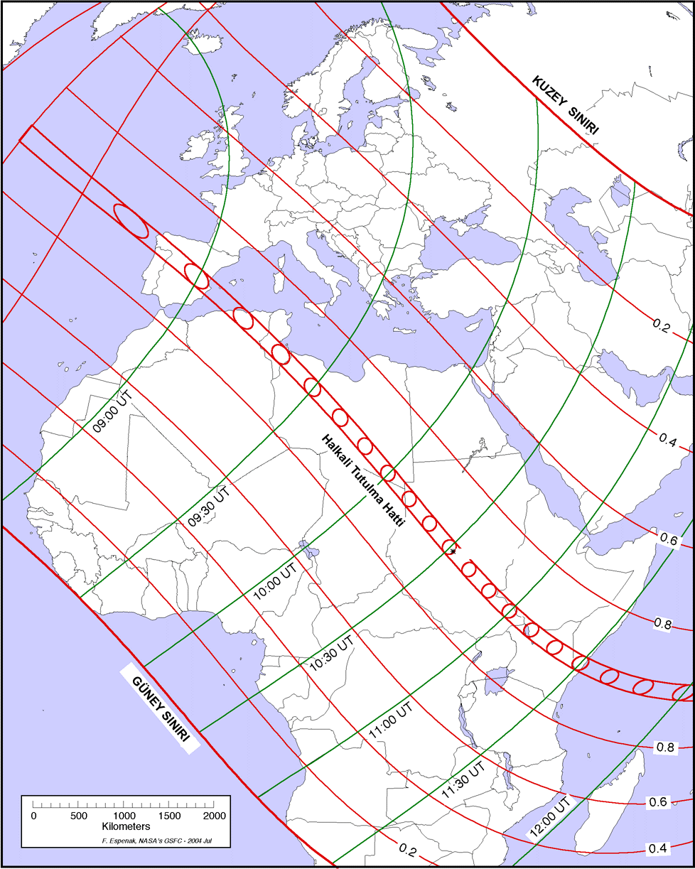 dışında üç kıtayı kapsayan geniş bir bölgeden de parçalı tutulma biçiminde