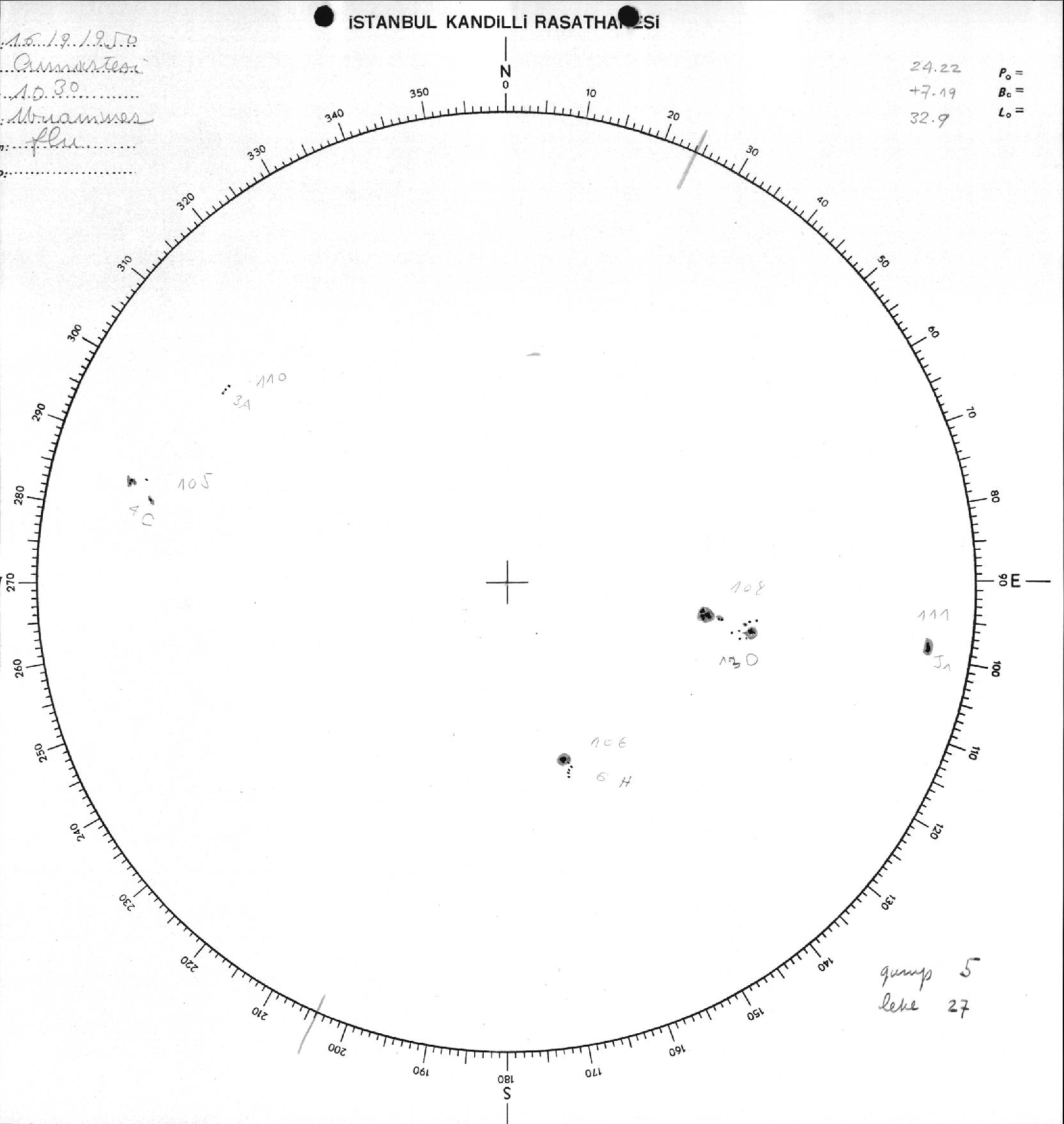 Güneş Lekesi Çizimleri / Kandilli Sunspot Drawings