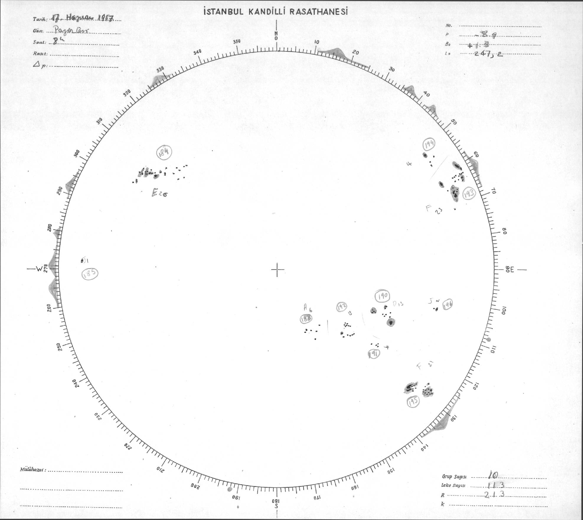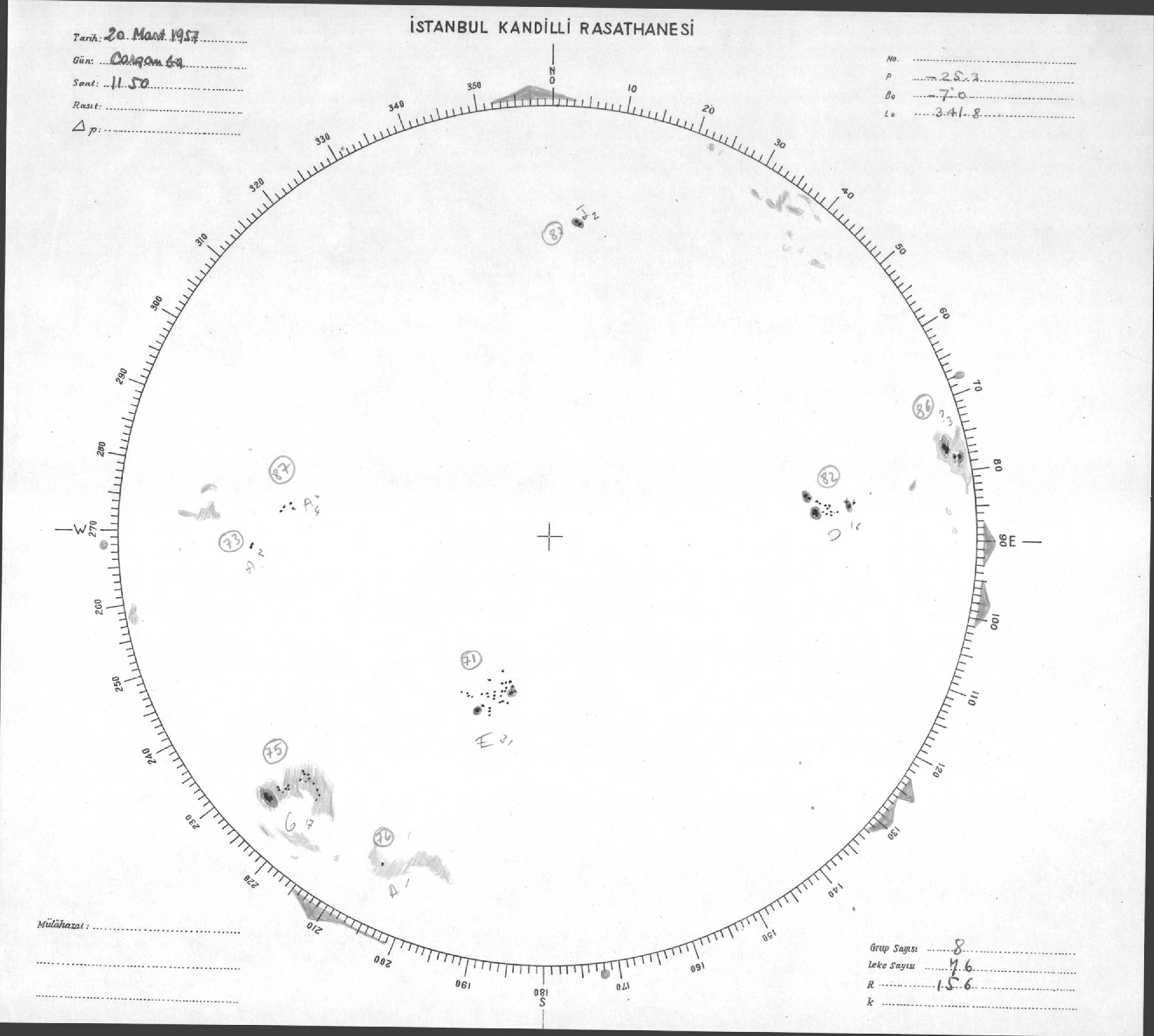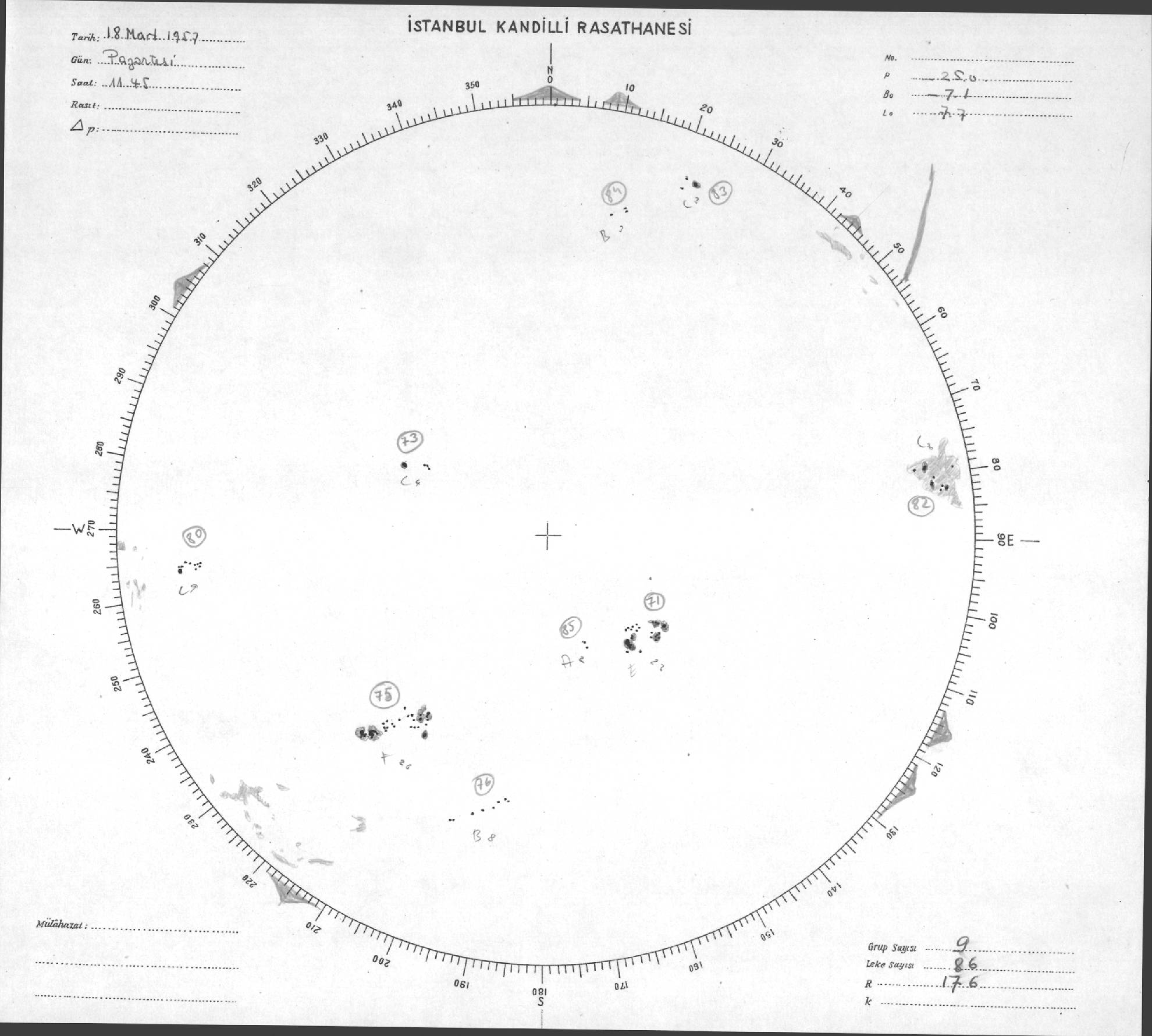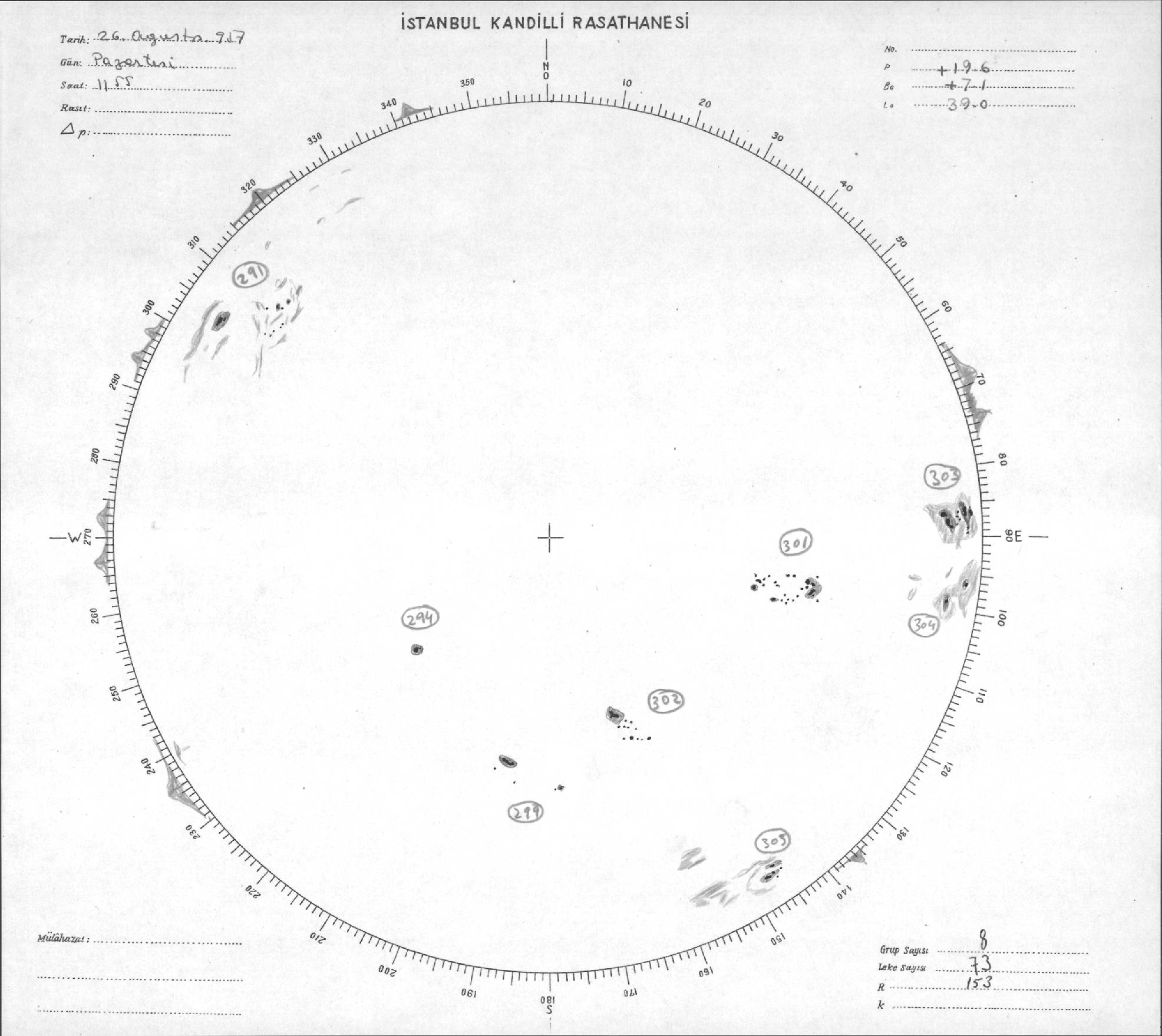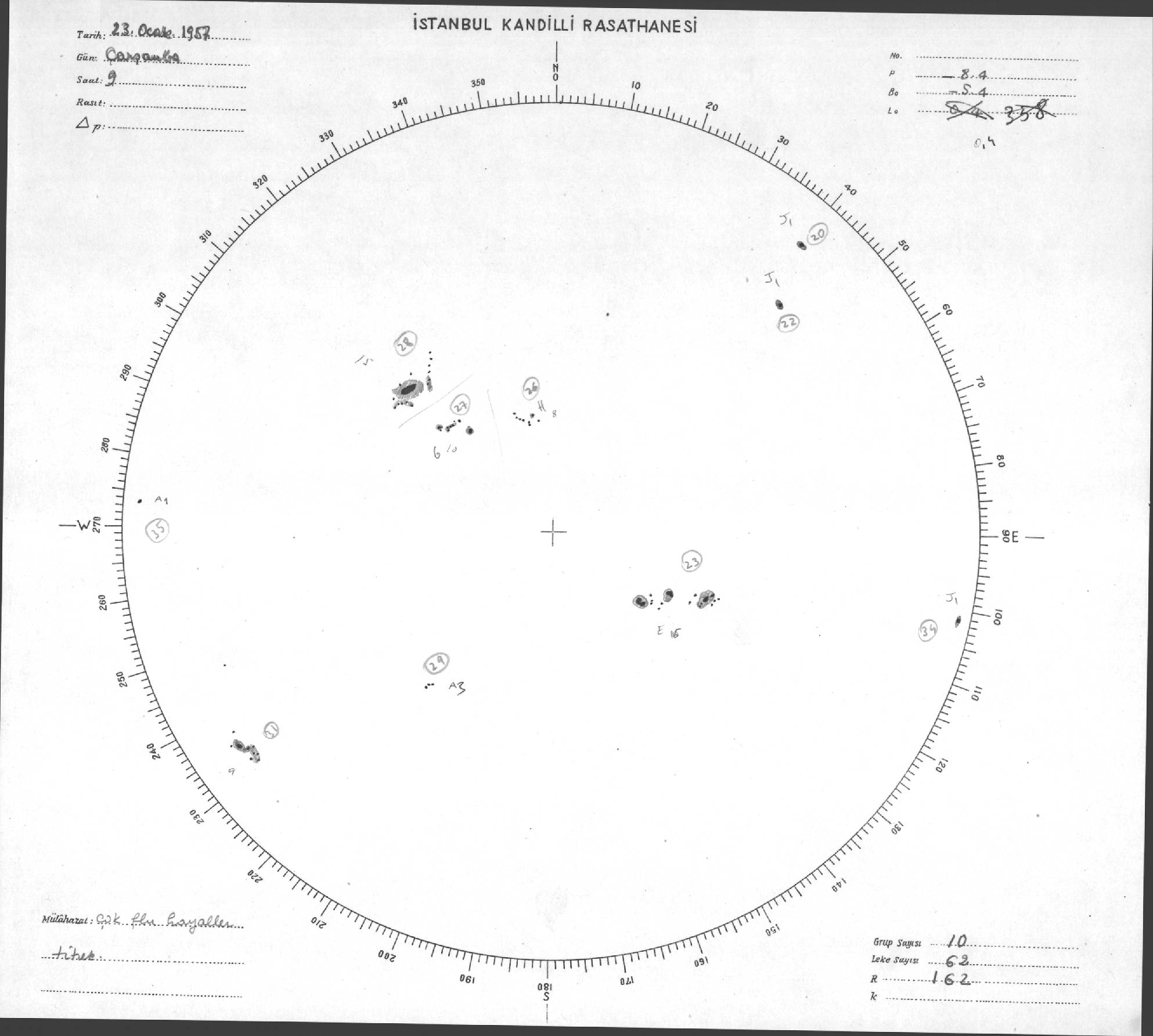 Güneş Lekesi Çizimleri / Kandilli Sunspot Drawings