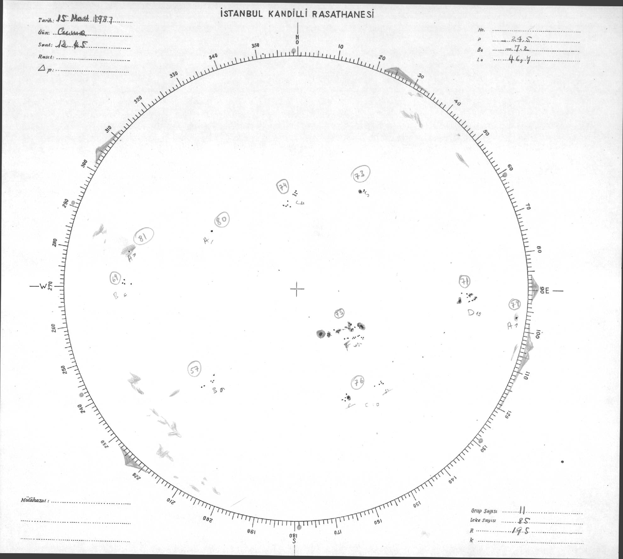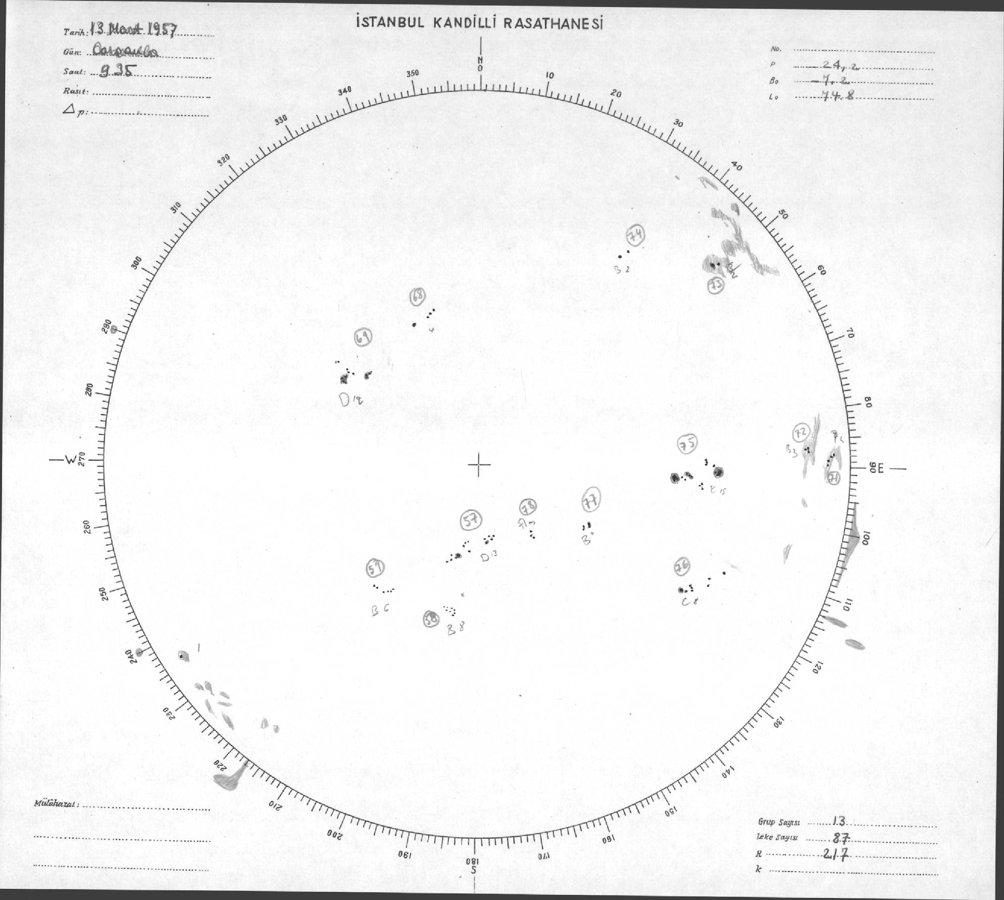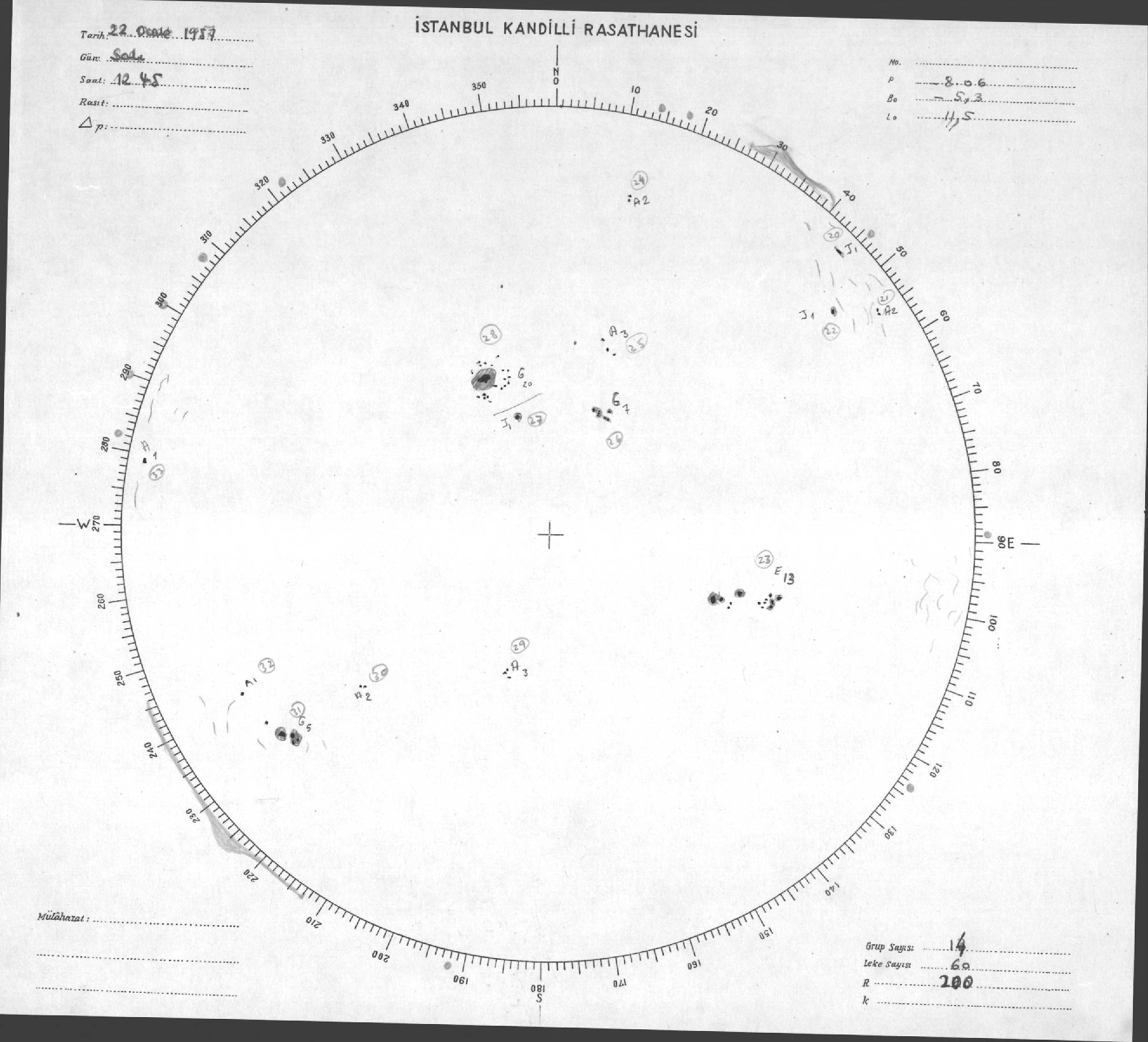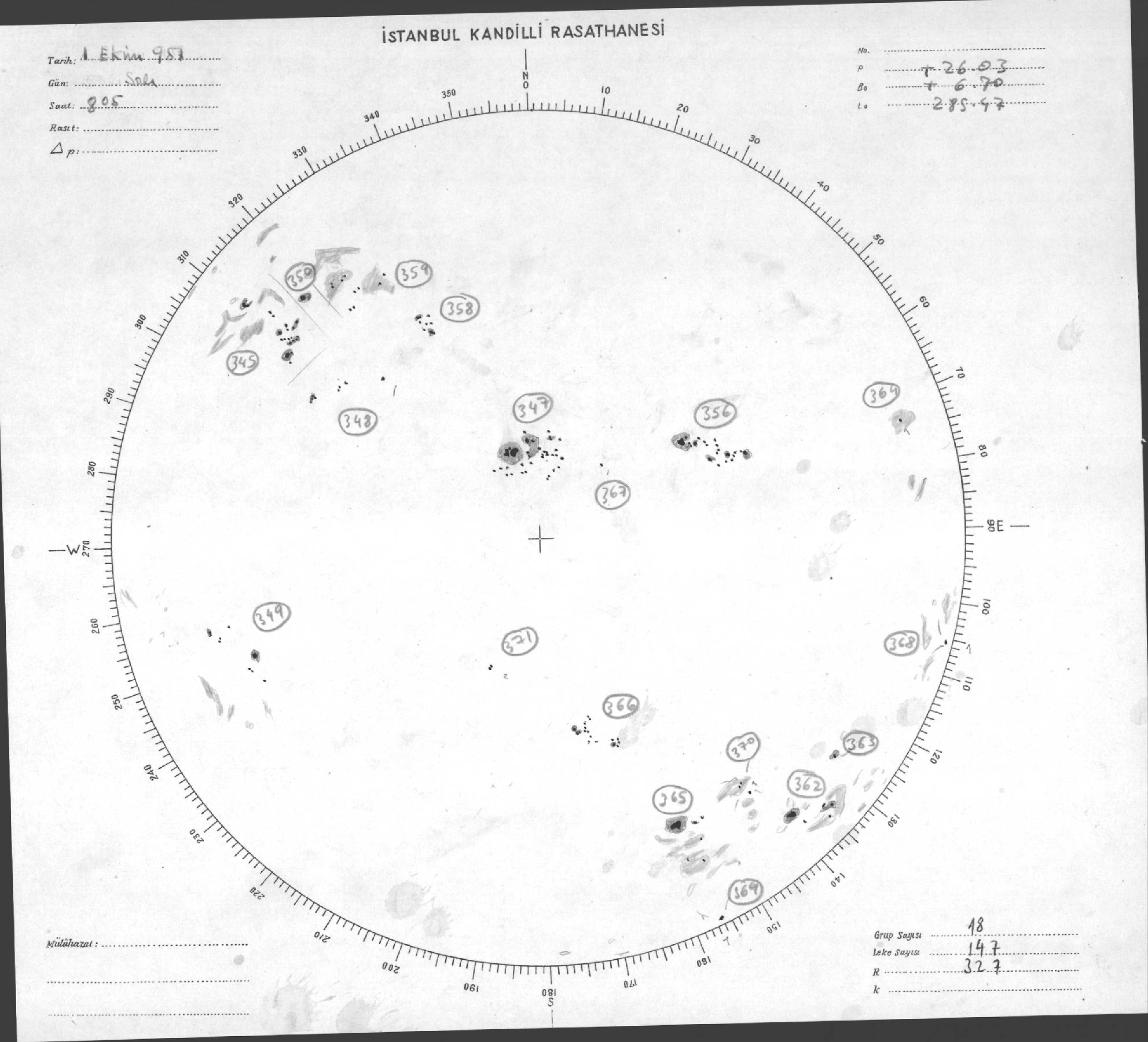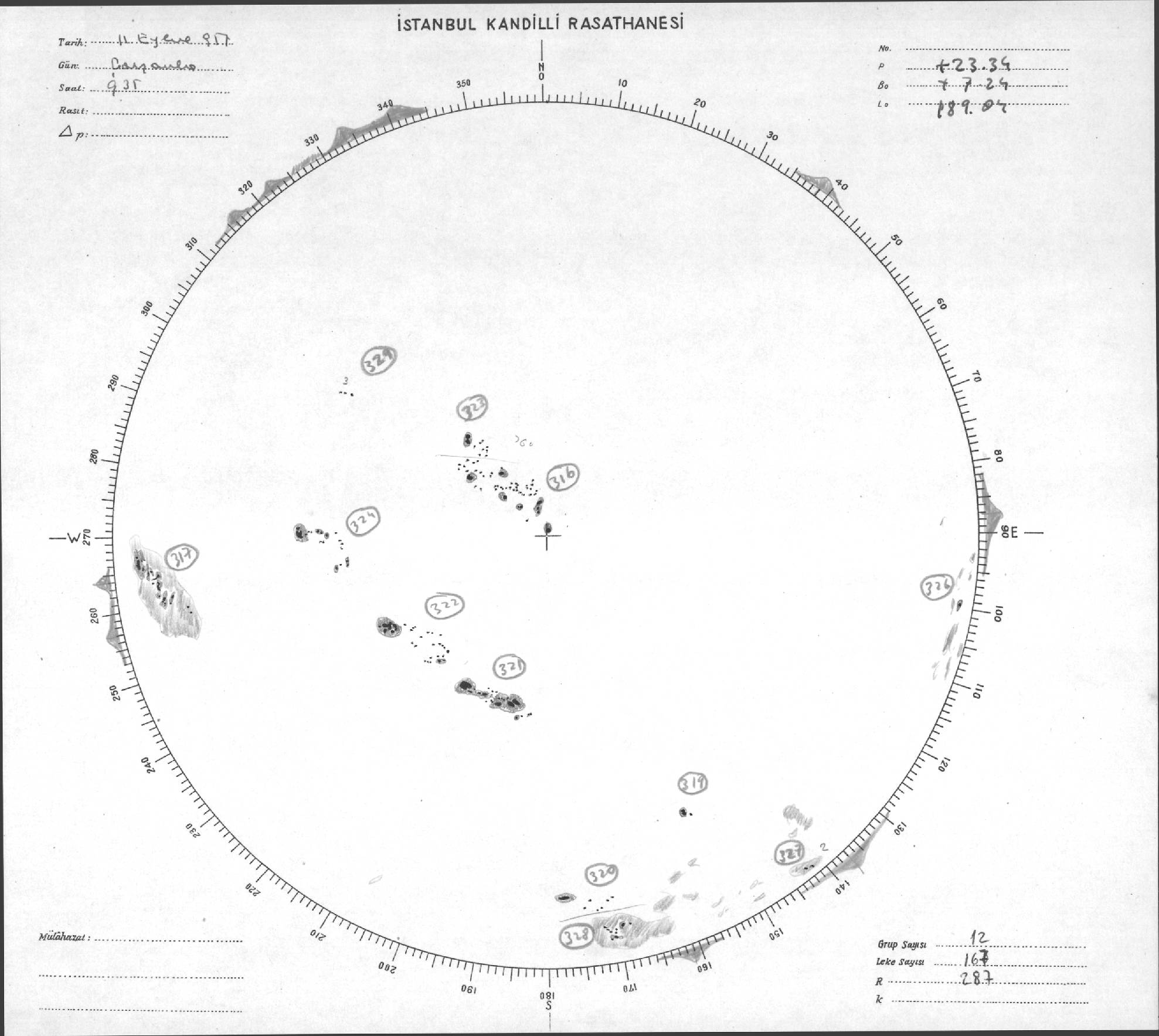 Güneş Lekesi Çizimleri / Kandilli Sunspot Drawings