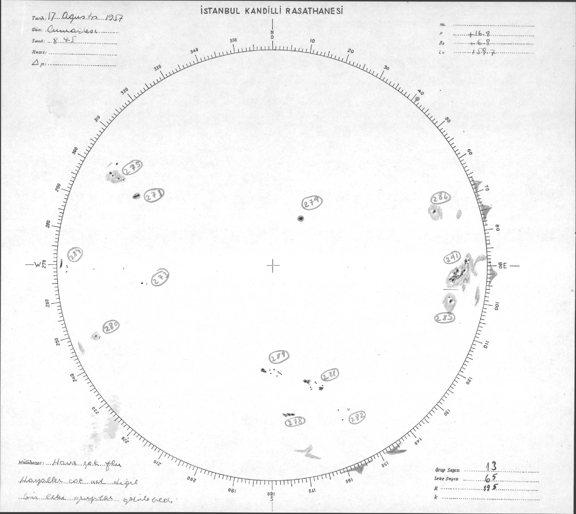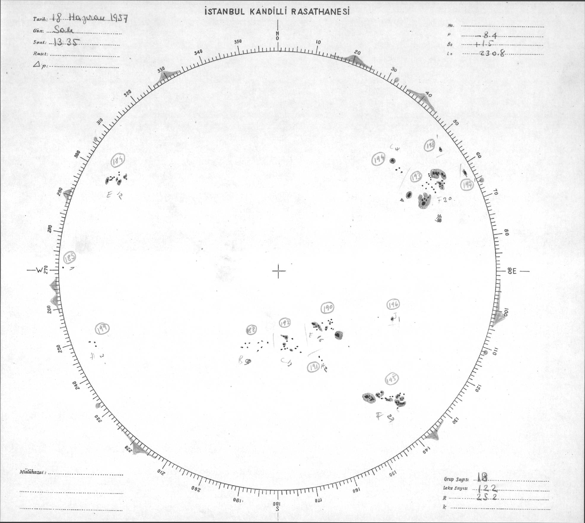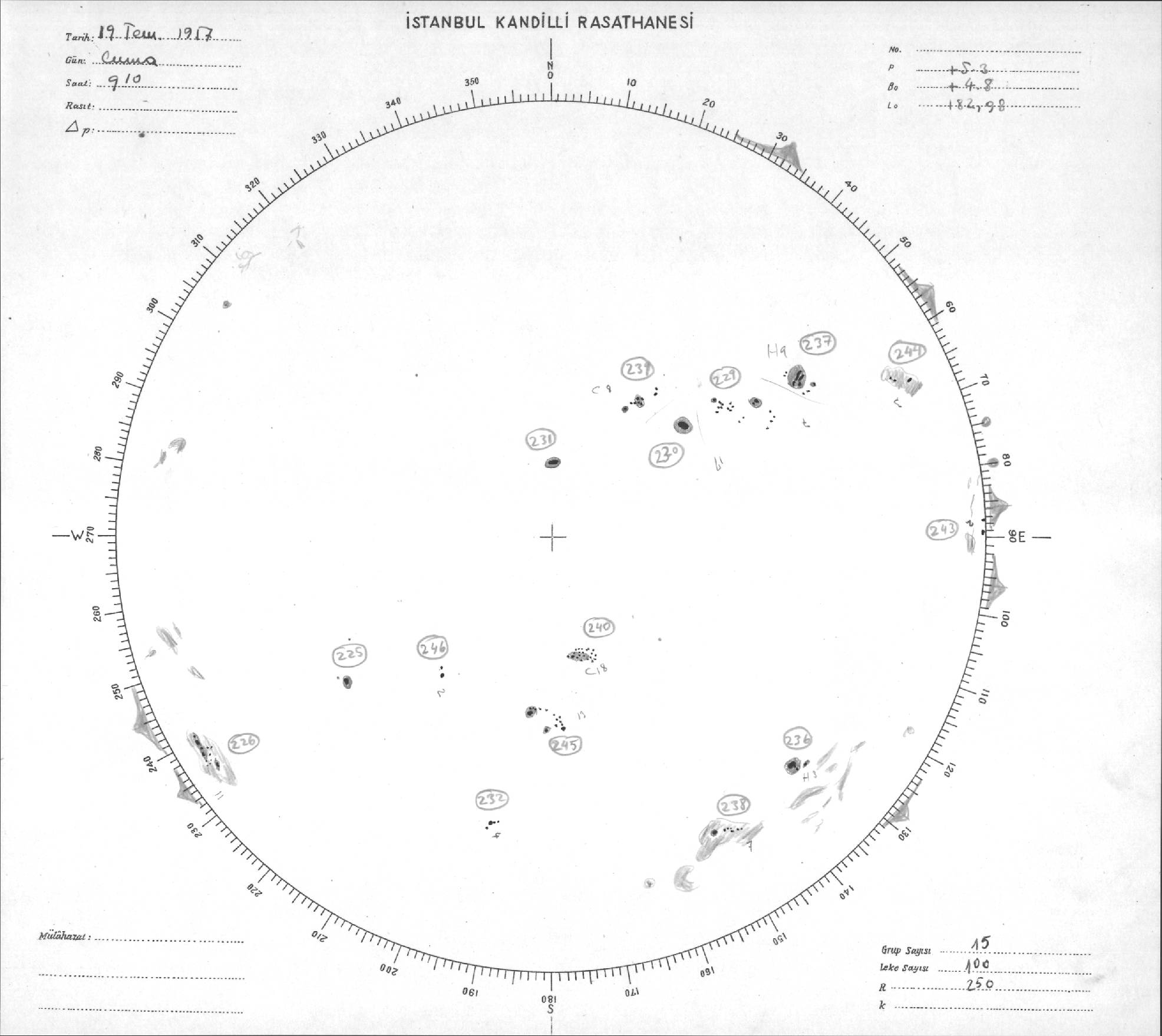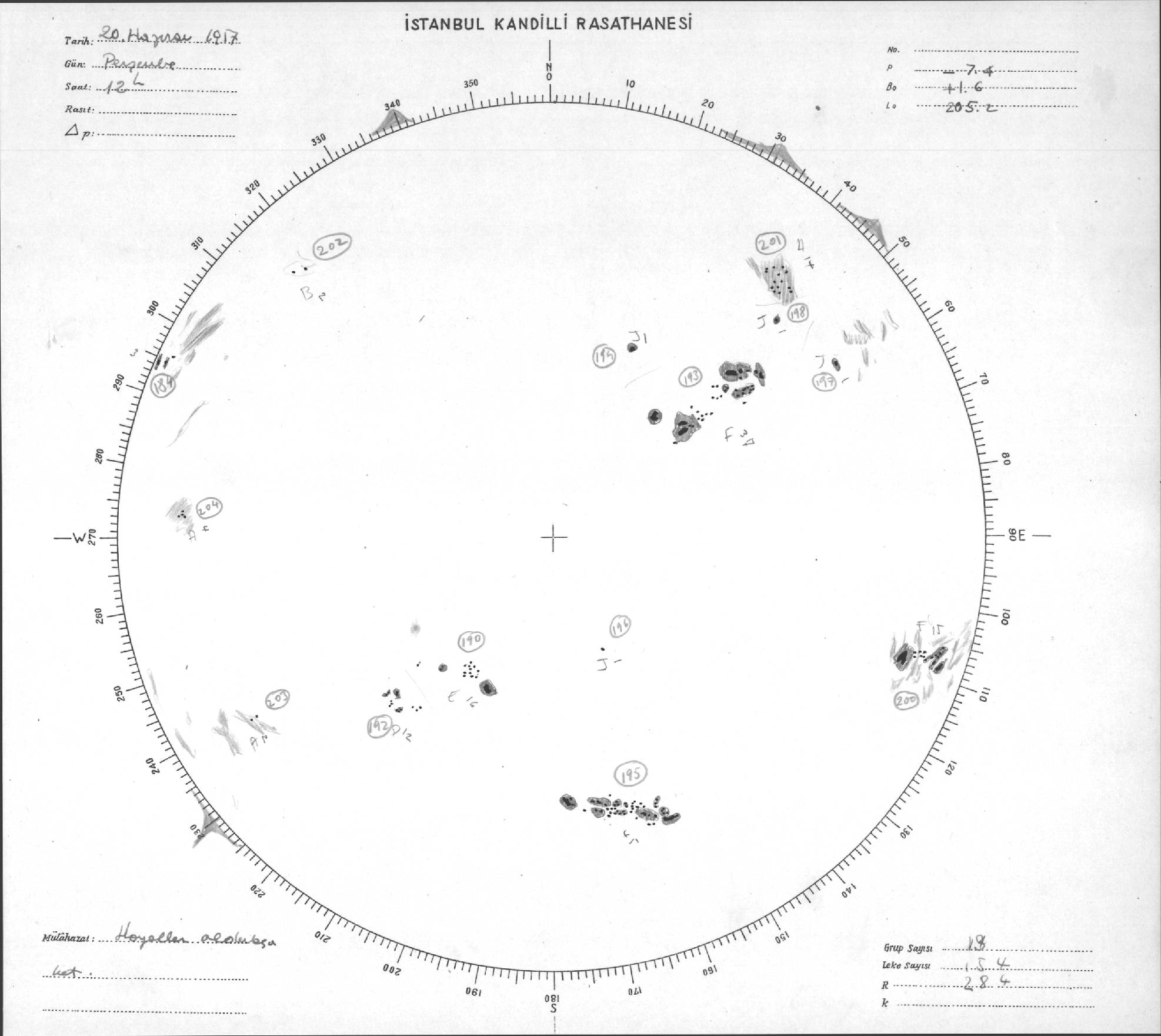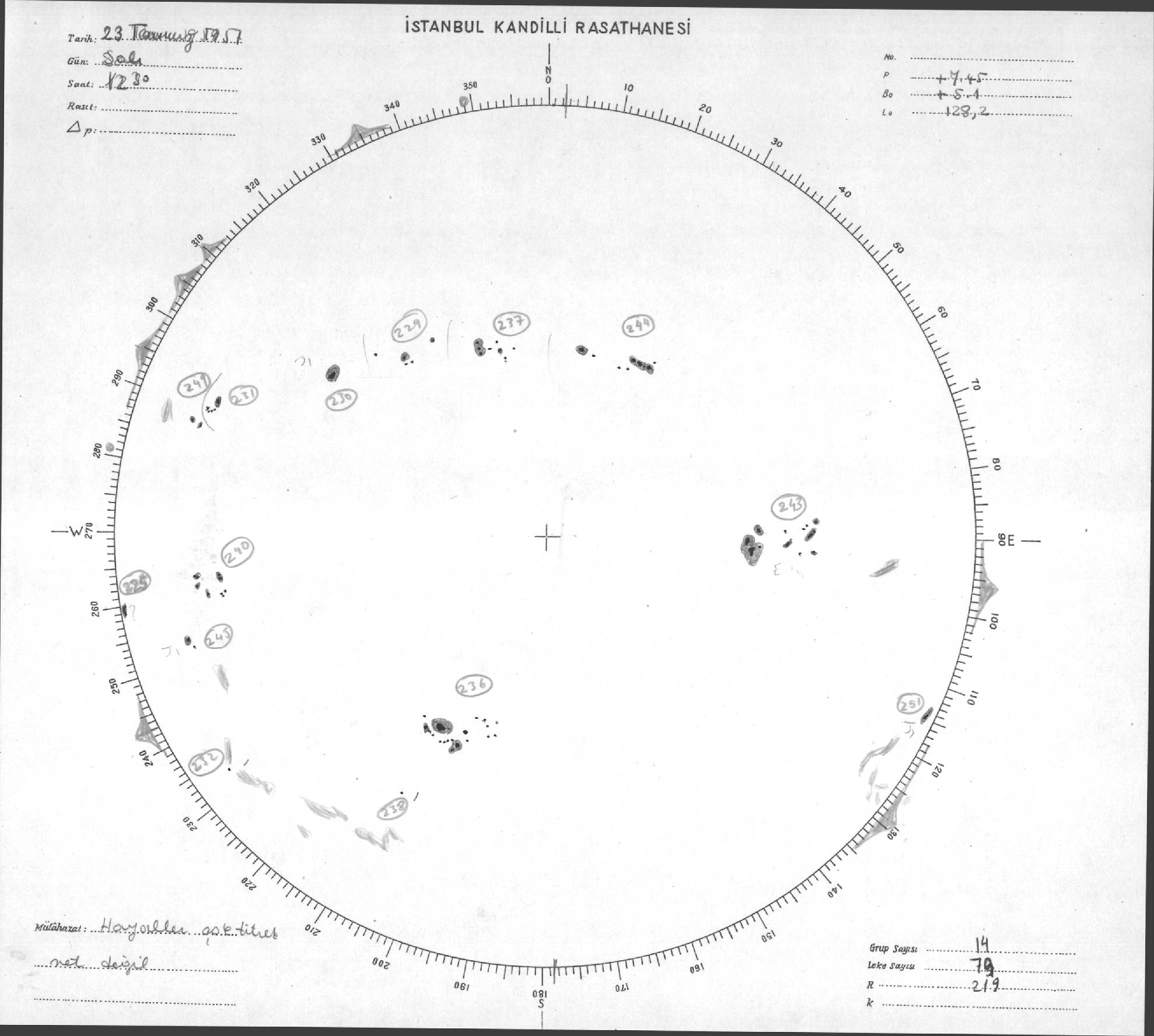 Güneş Lekesi Çizimleri / Kandilli Sunspot Drawings
