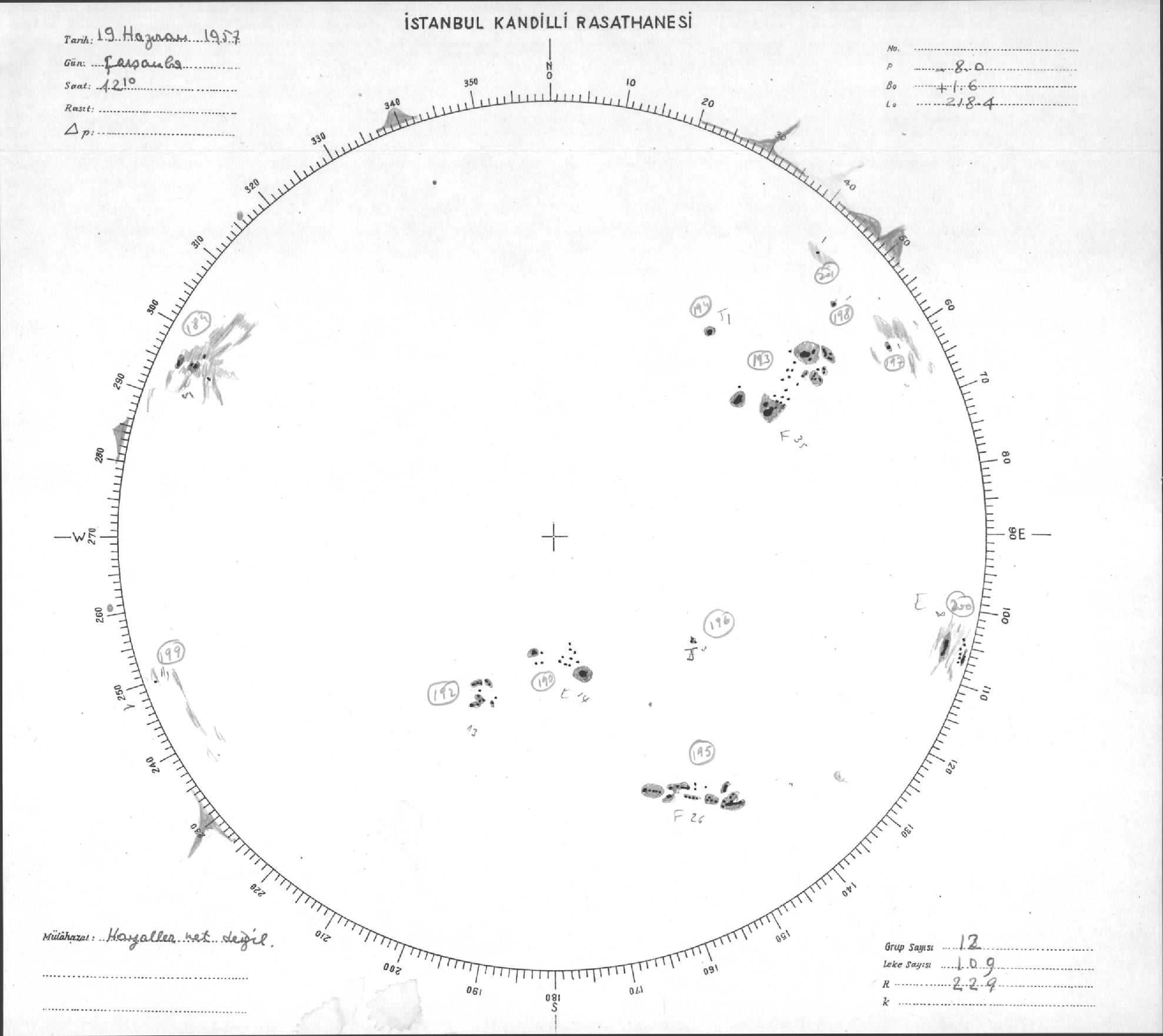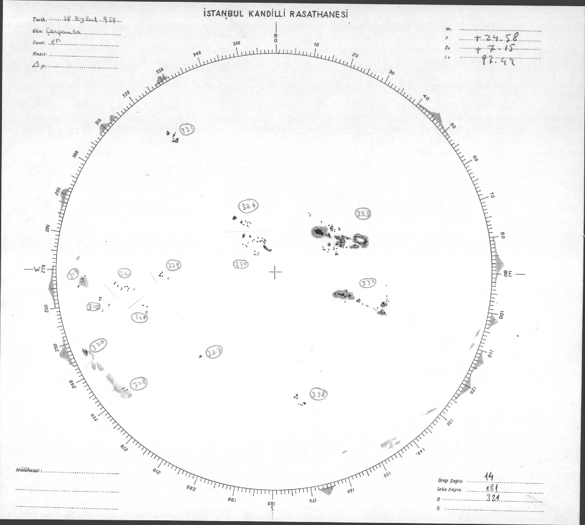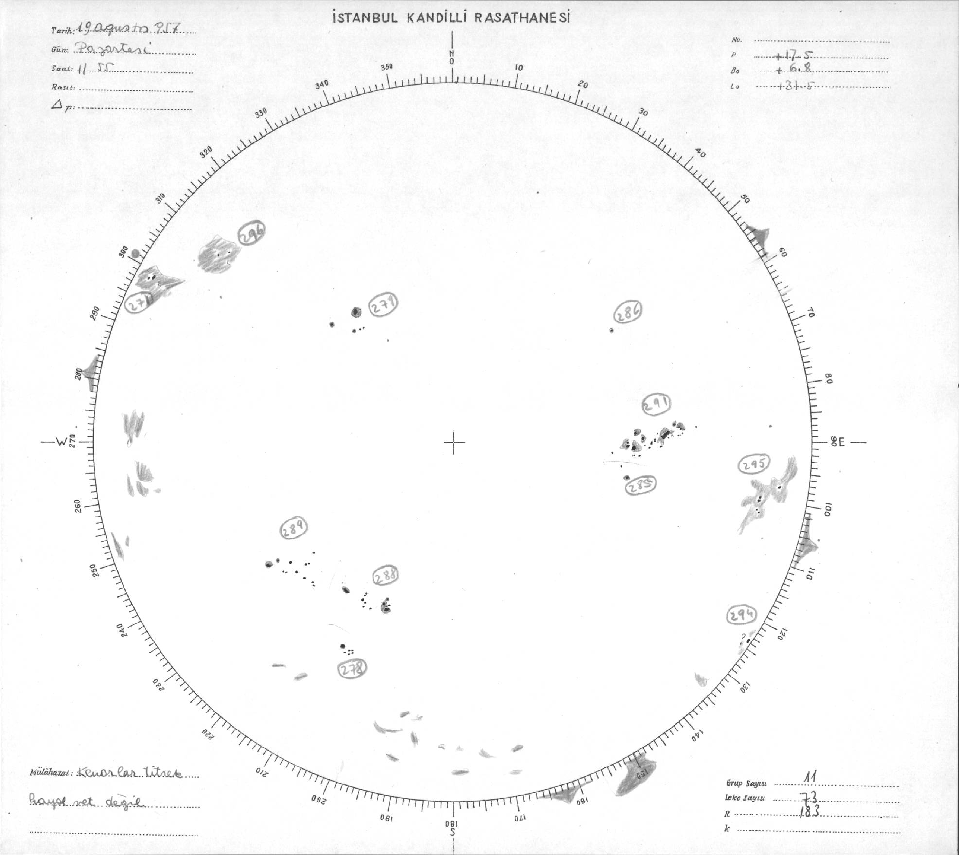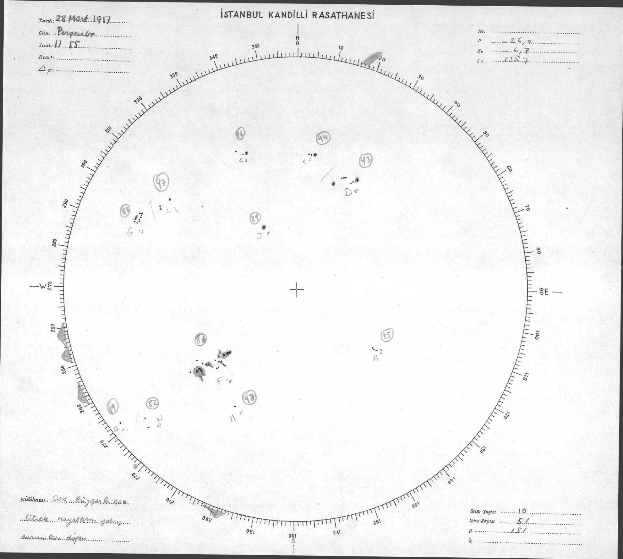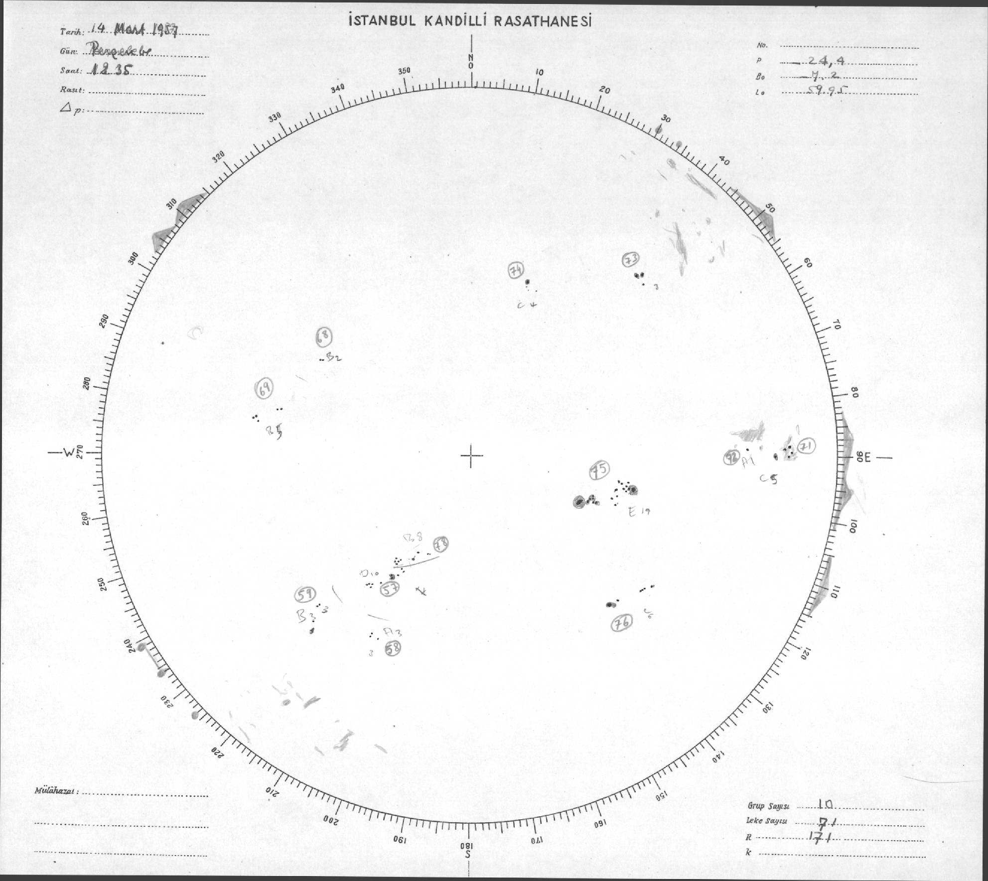 Güneş Lekesi Çizimleri / Kandilli Sunspot Drawings