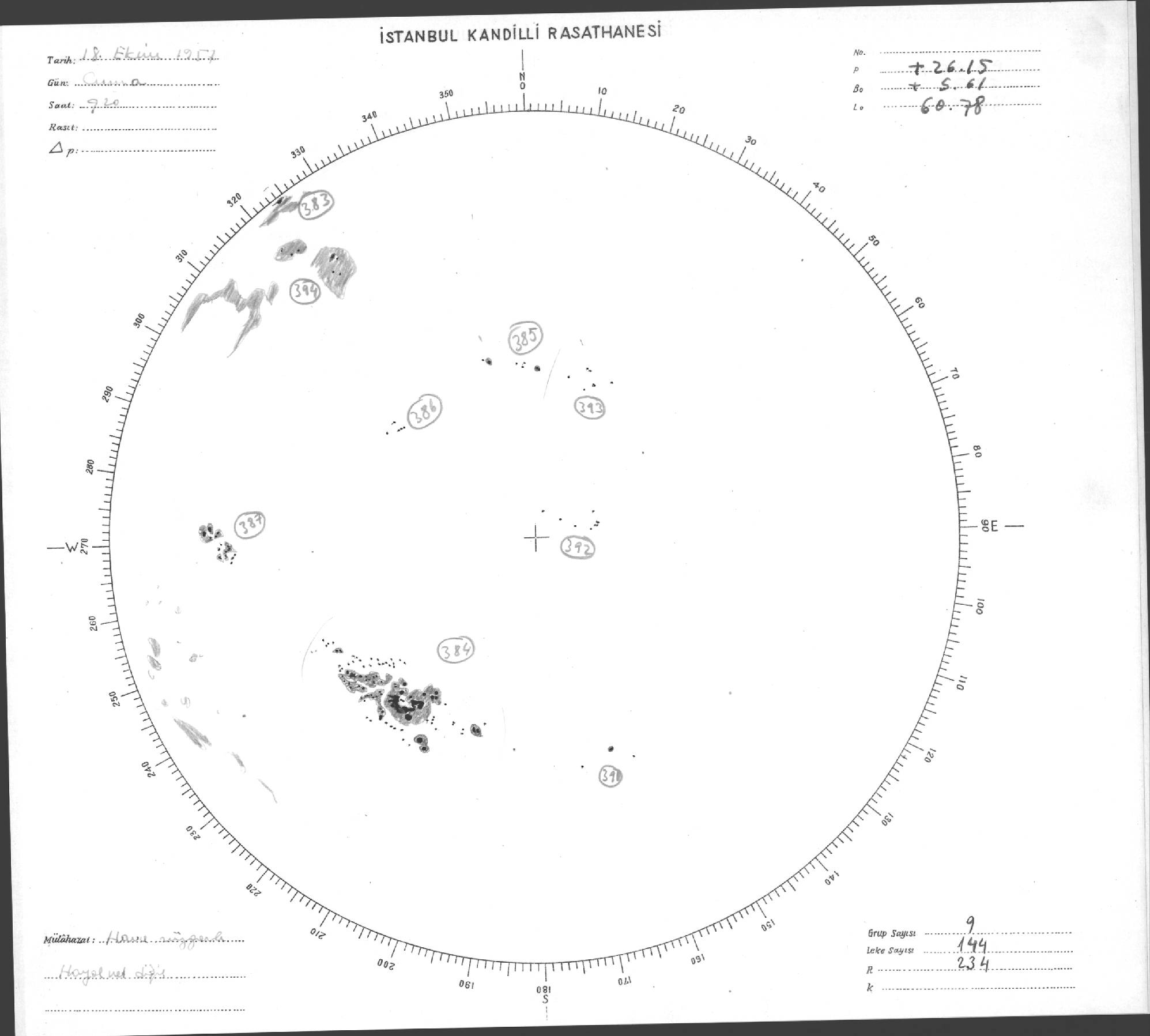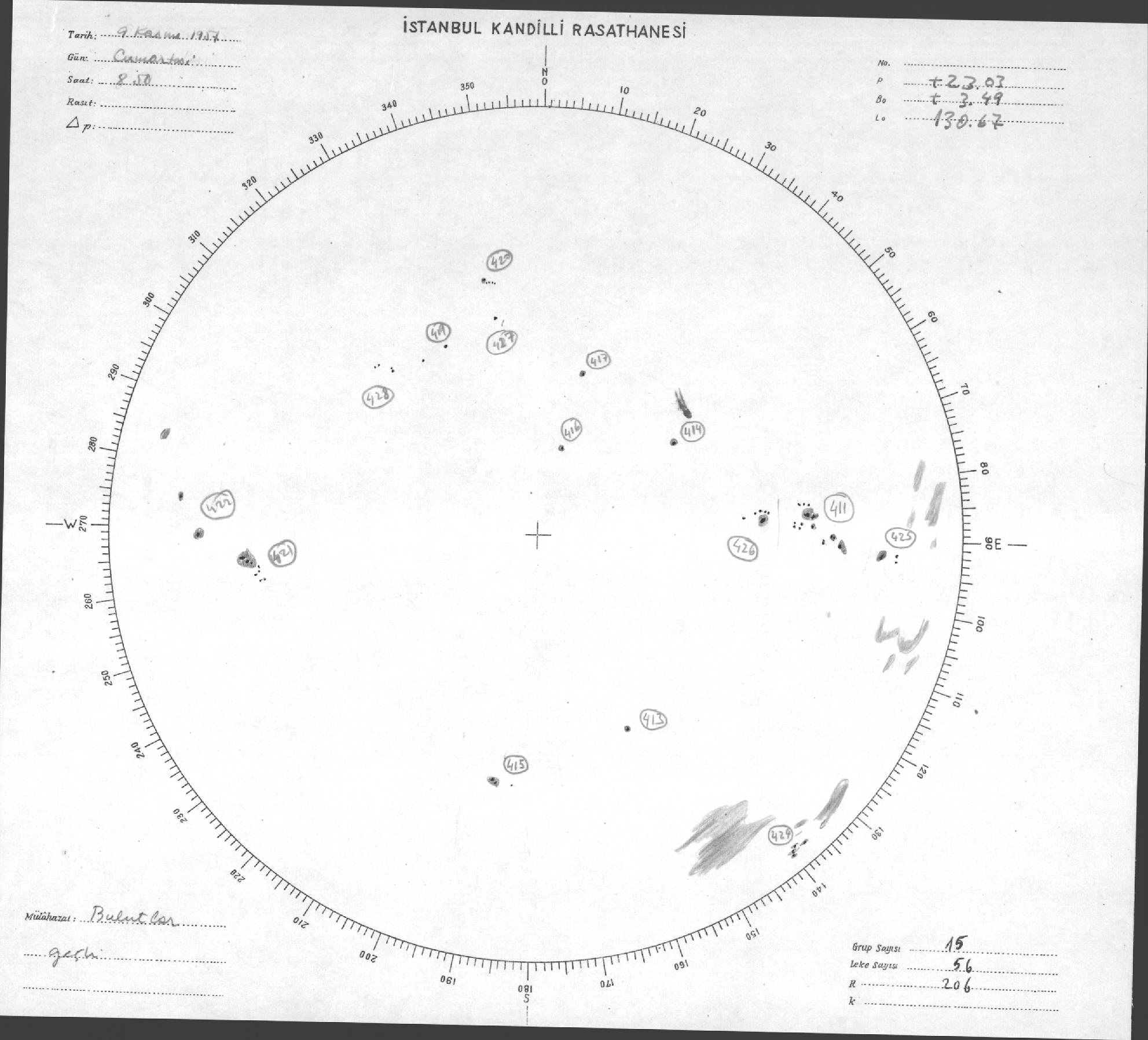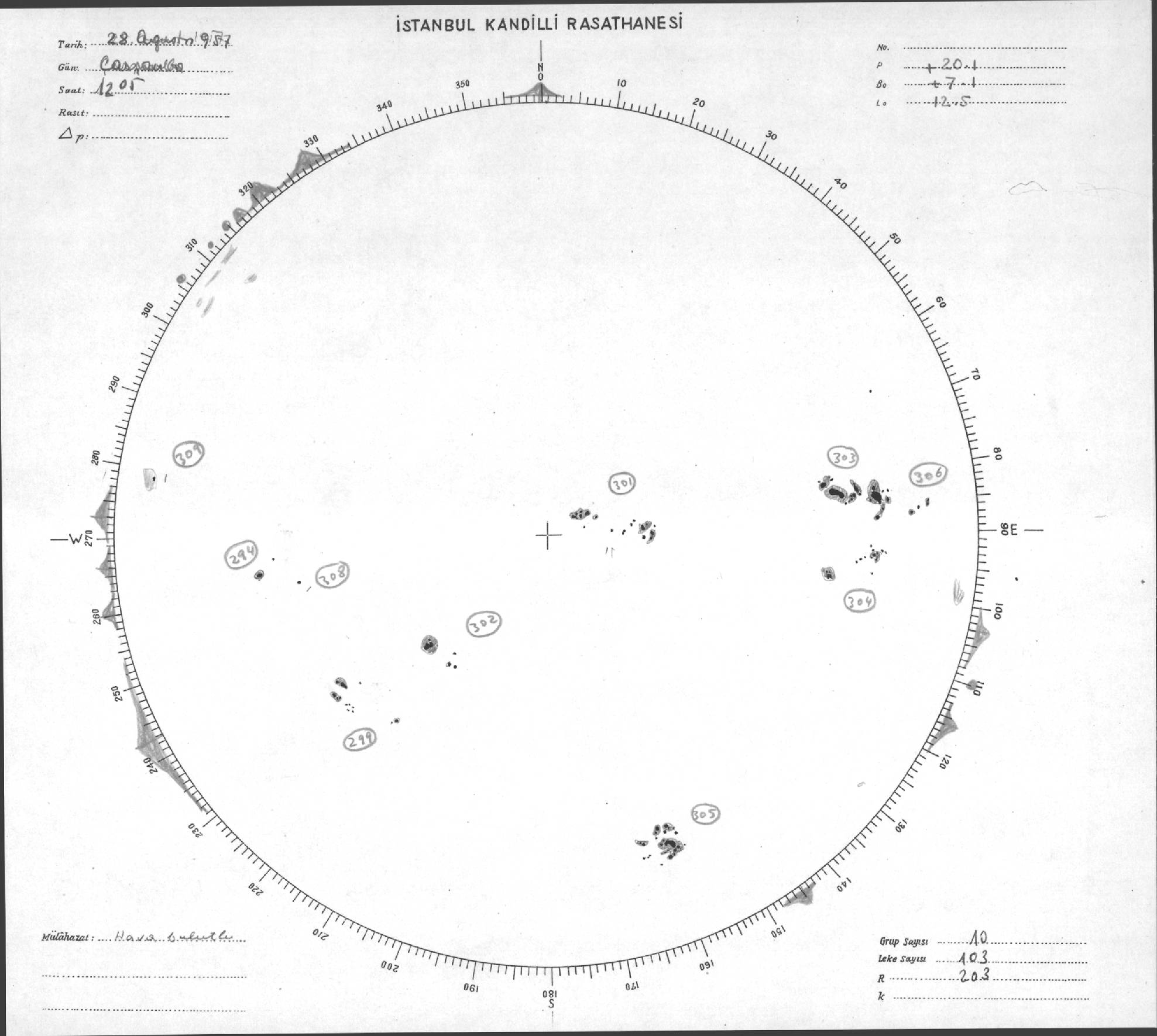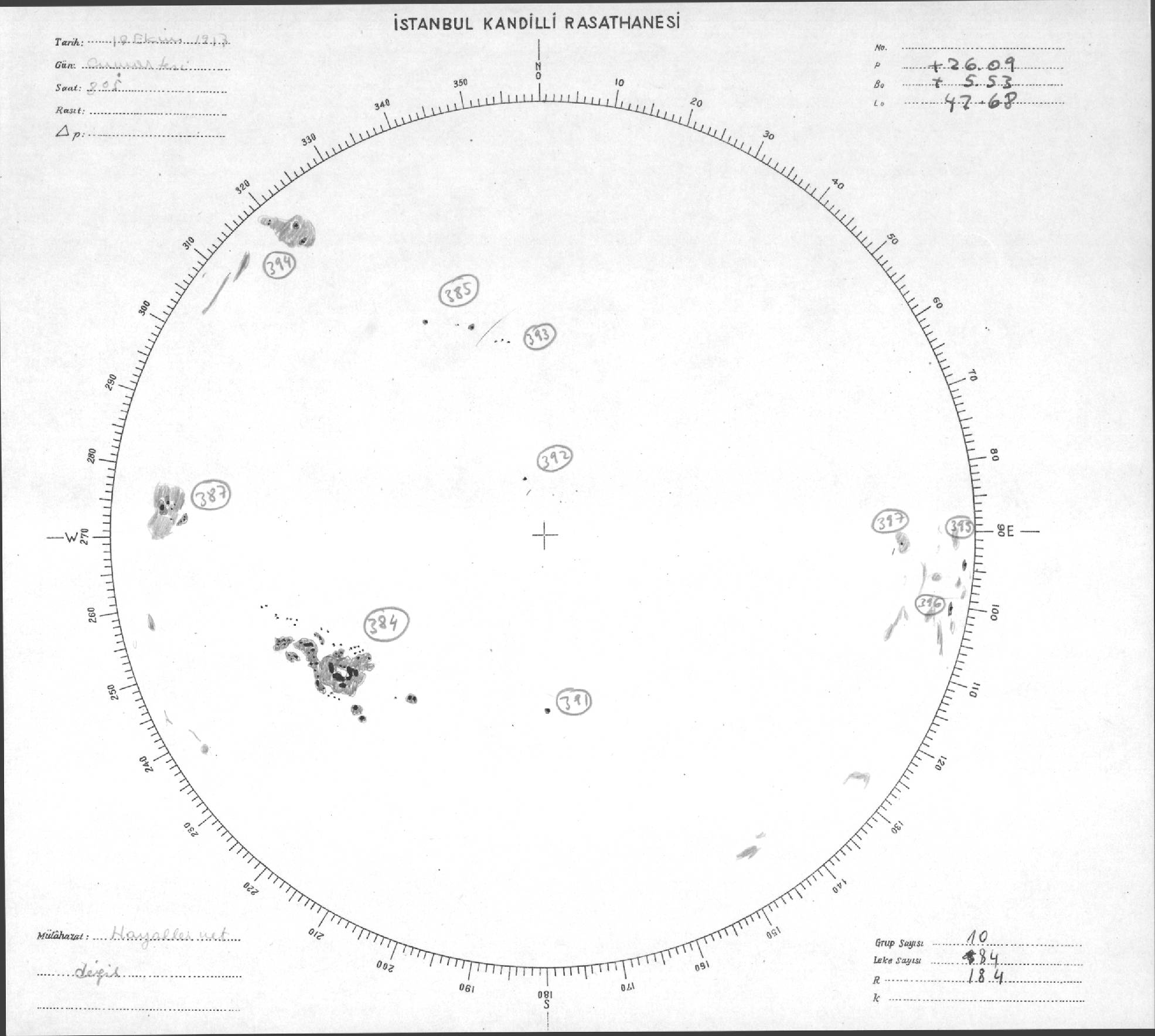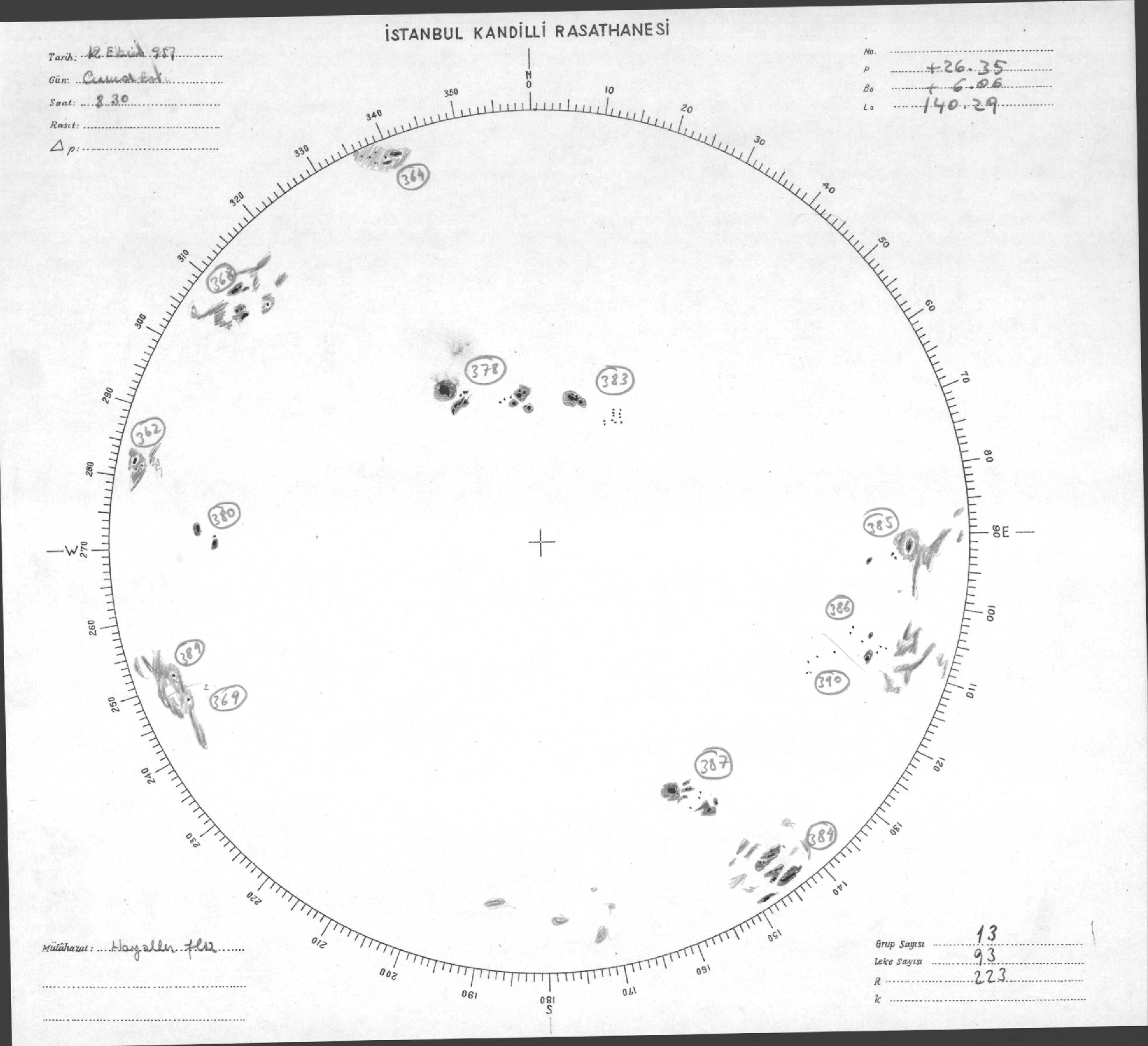 Güneş Lekesi Çizimleri / Kandilli Sunspot Drawings