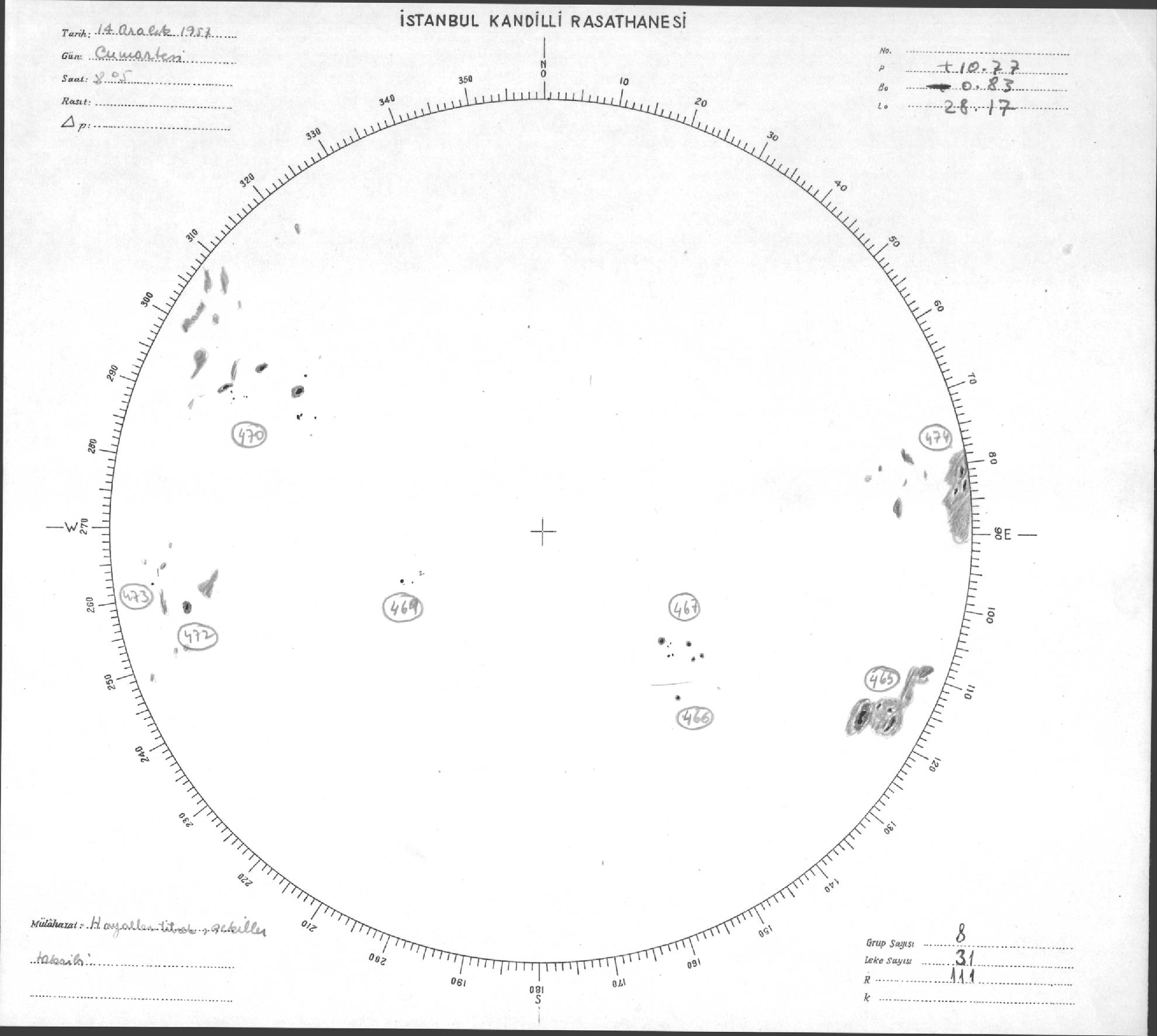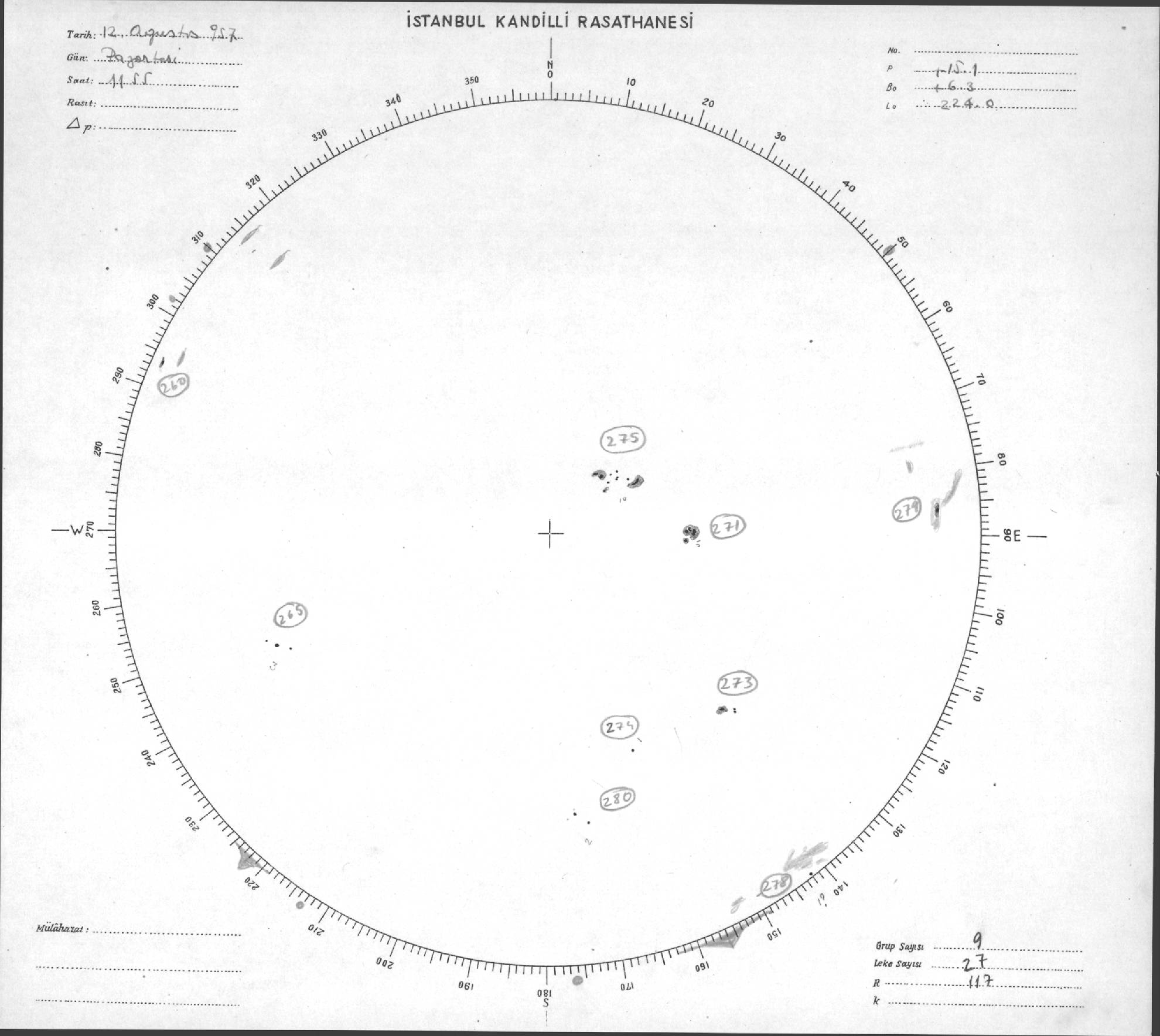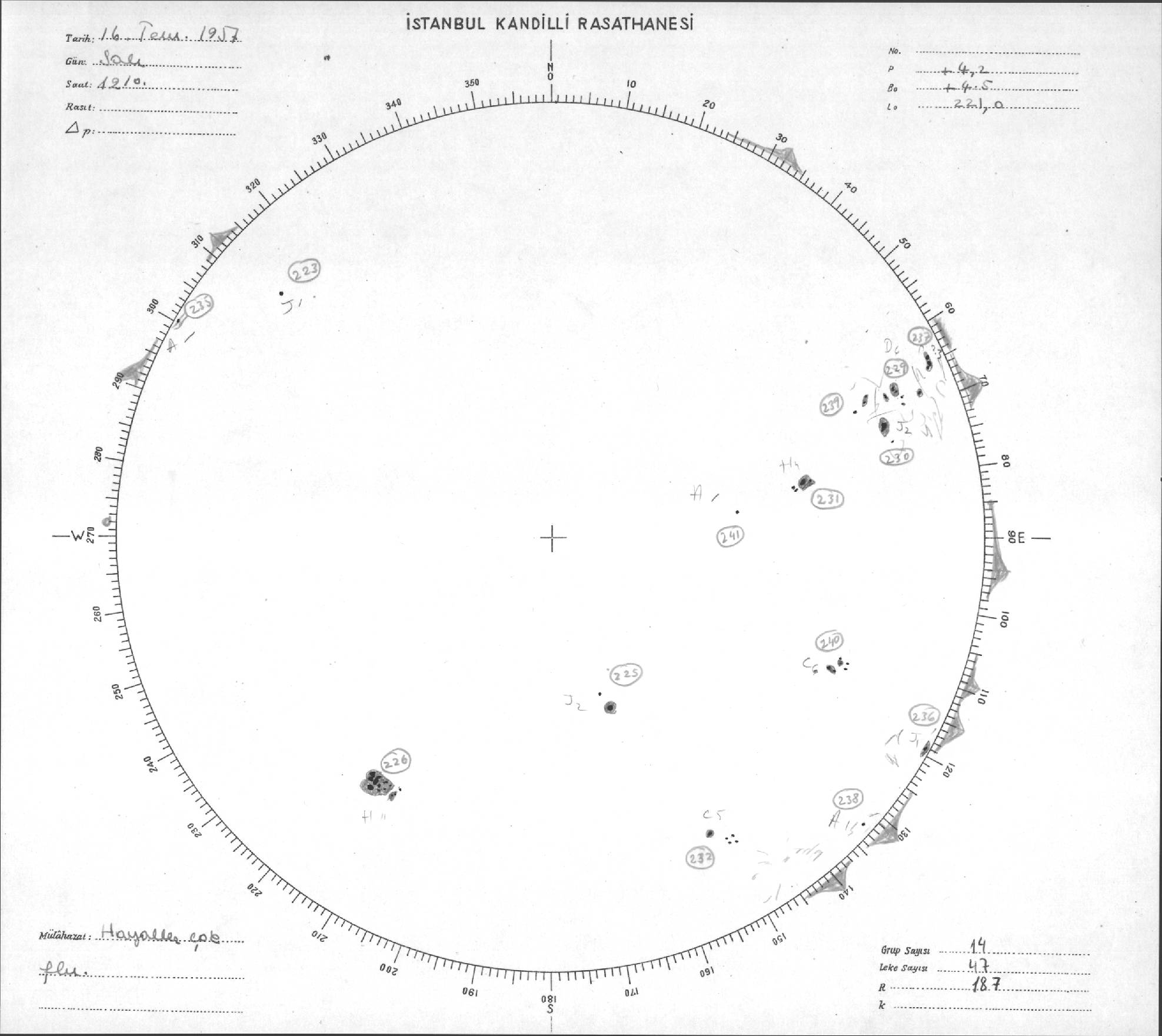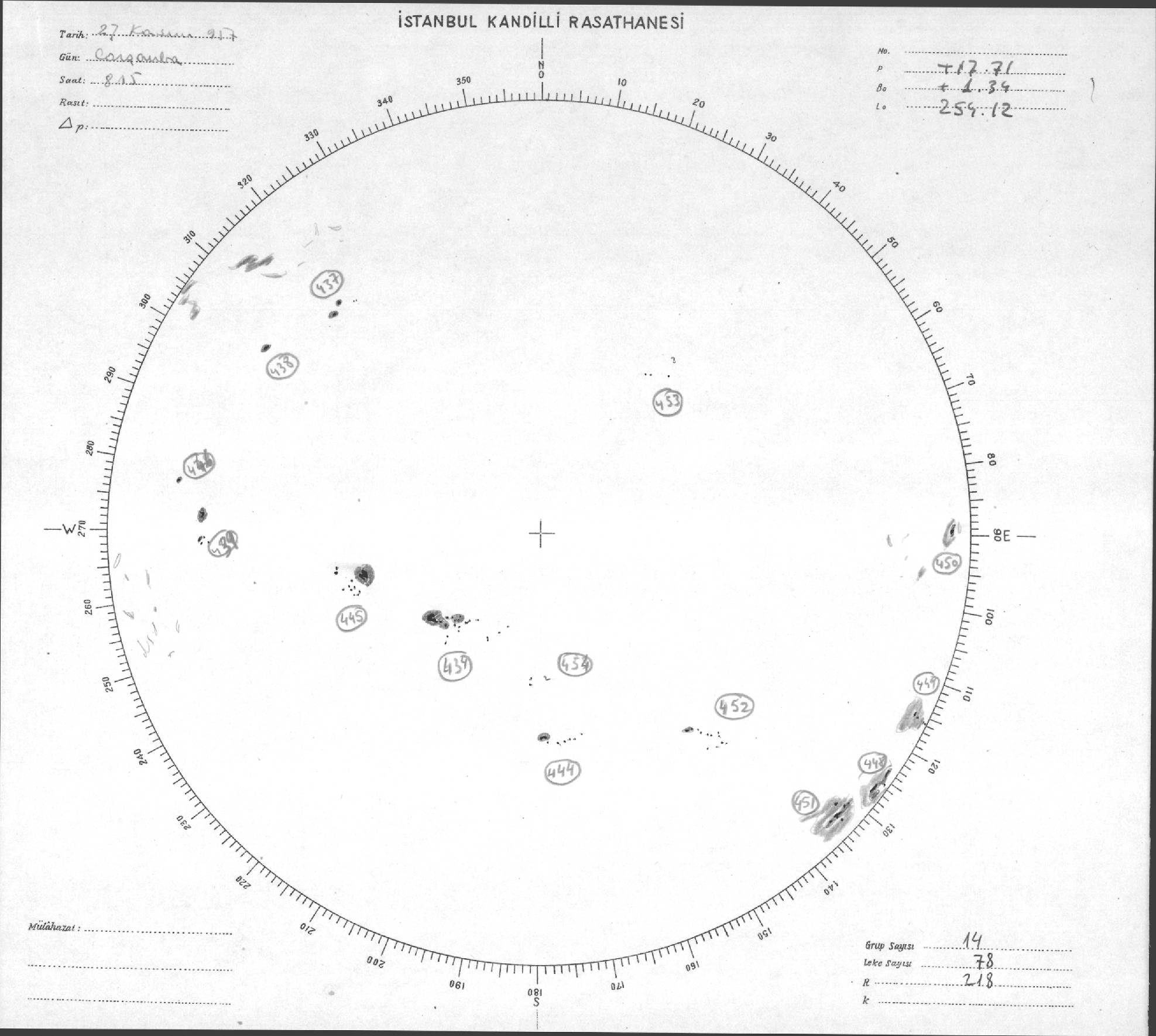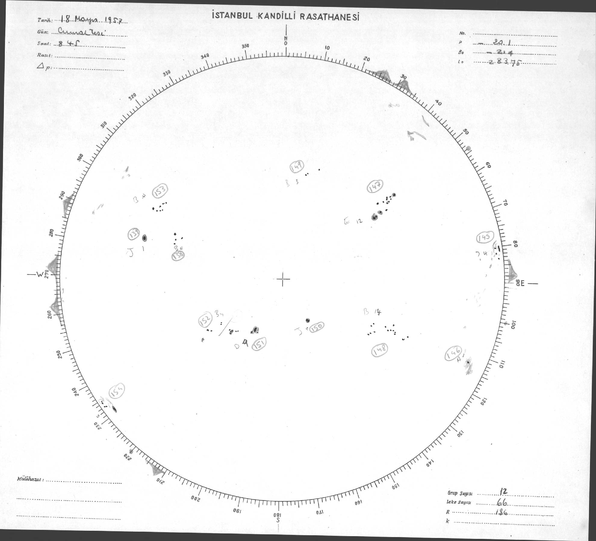 Güneş Lekesi Çizimleri / Kandilli Sunspot Drawings
