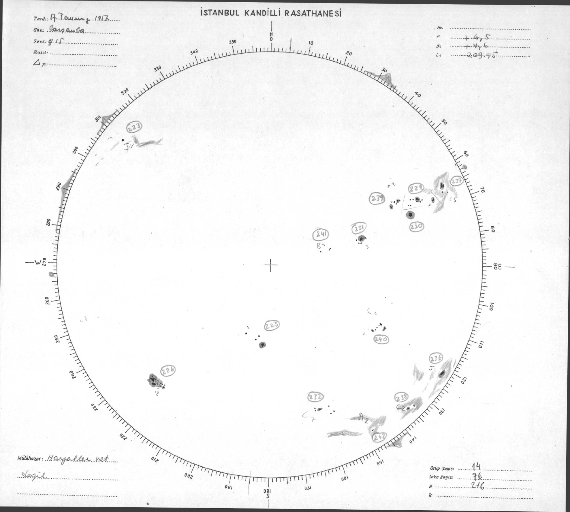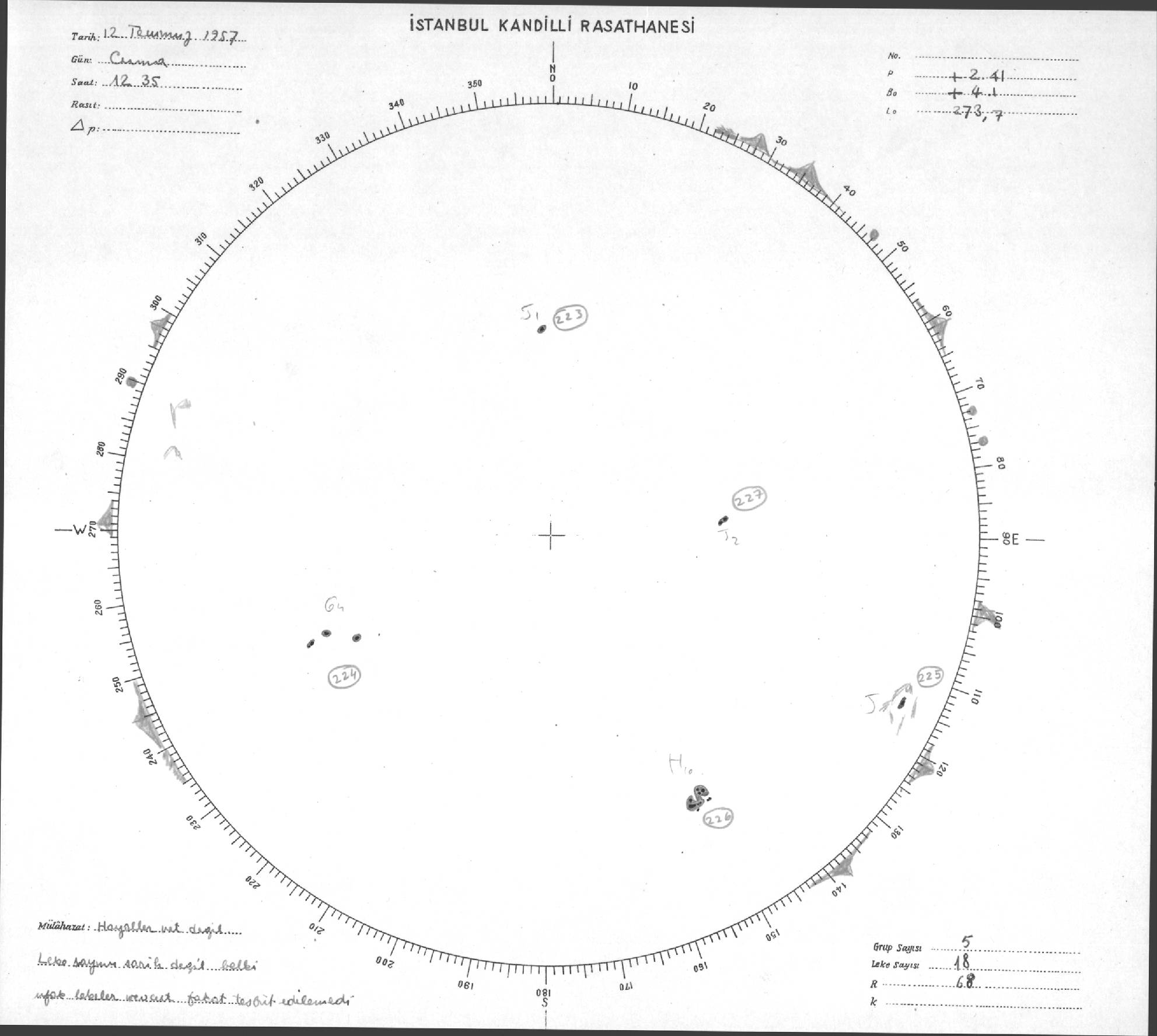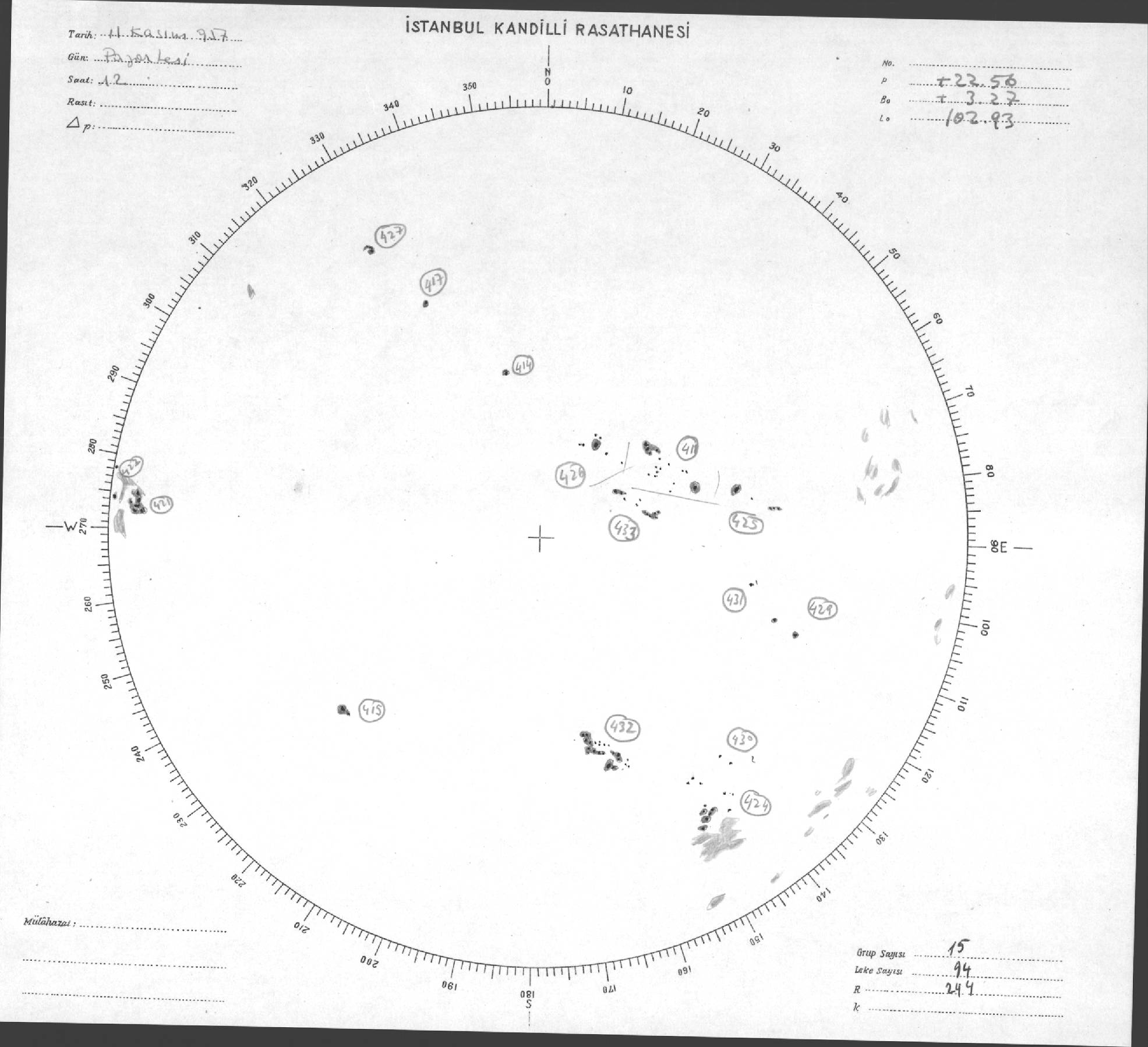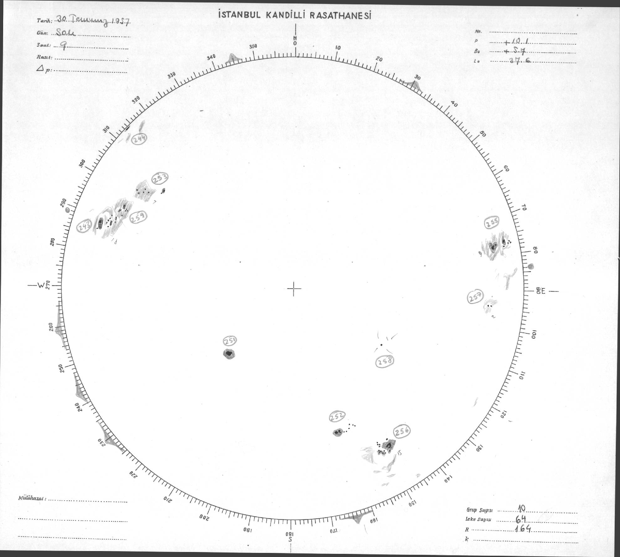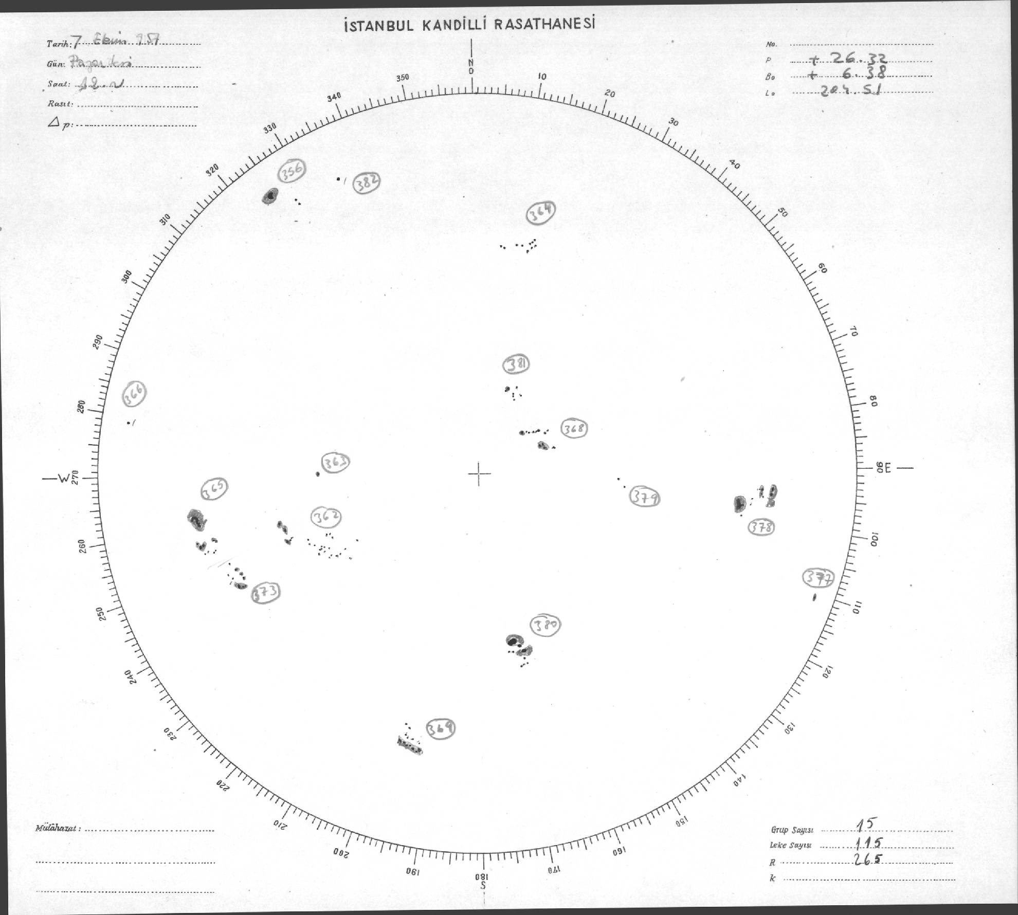 Güneş Lekesi Çizimleri / Kandilli Sunspot Drawings