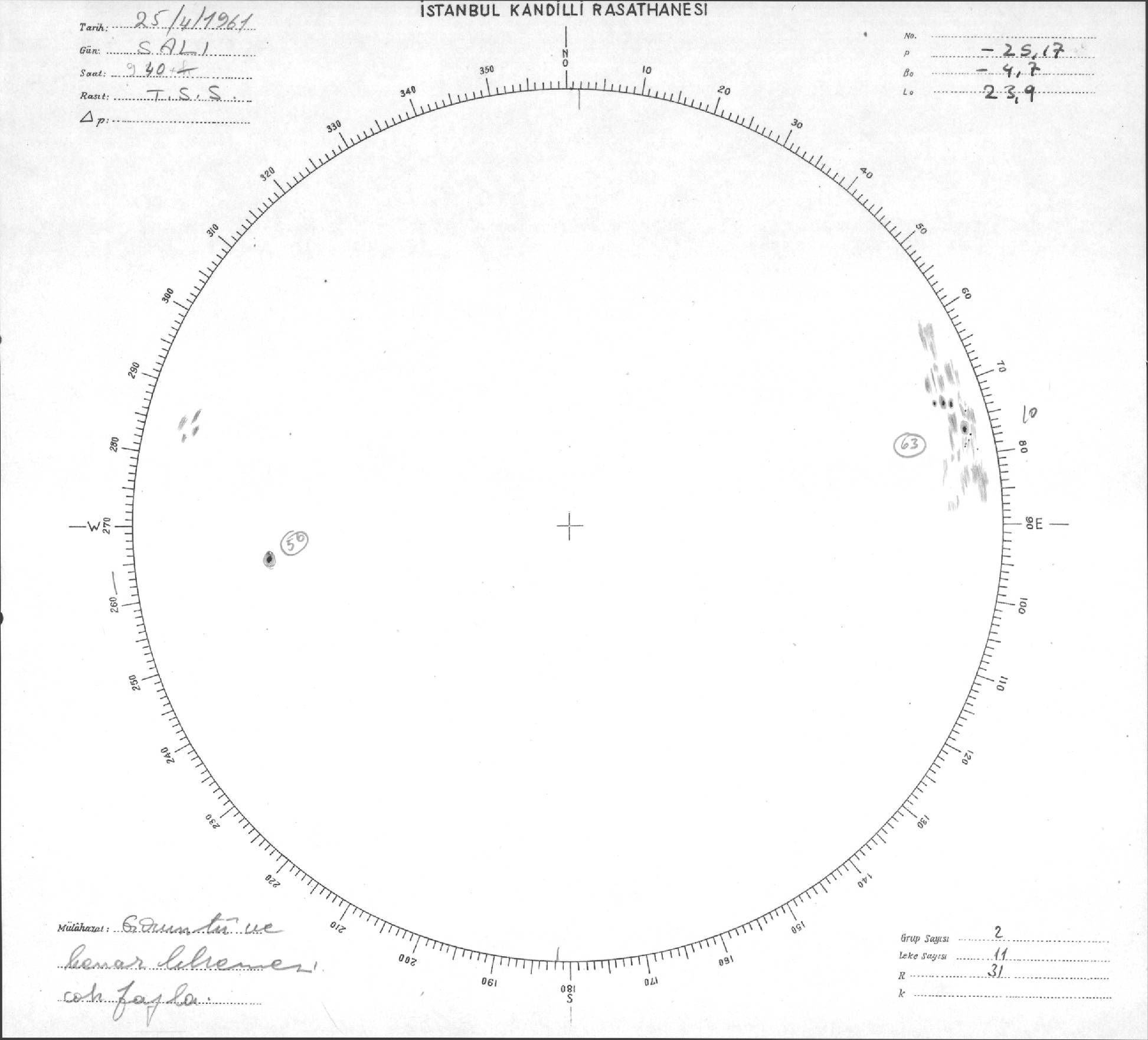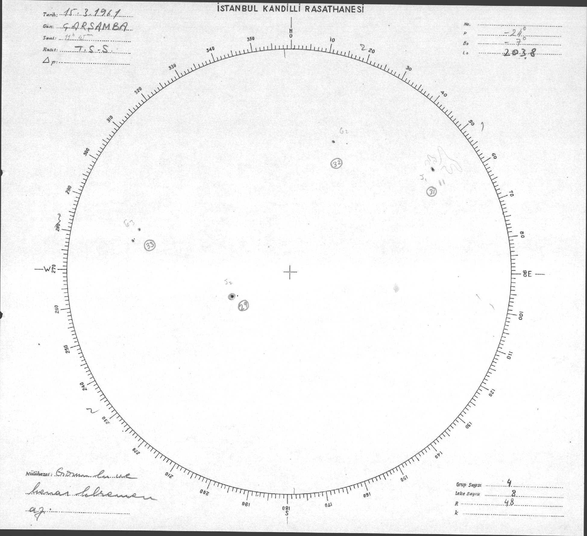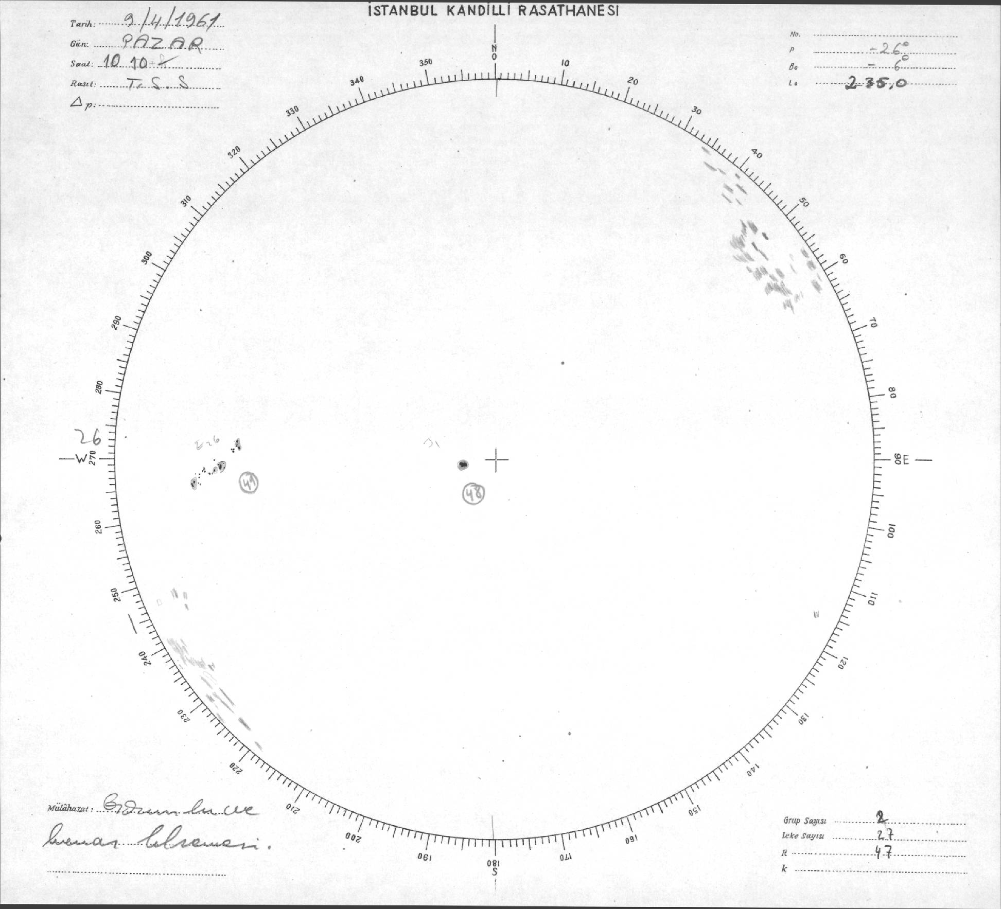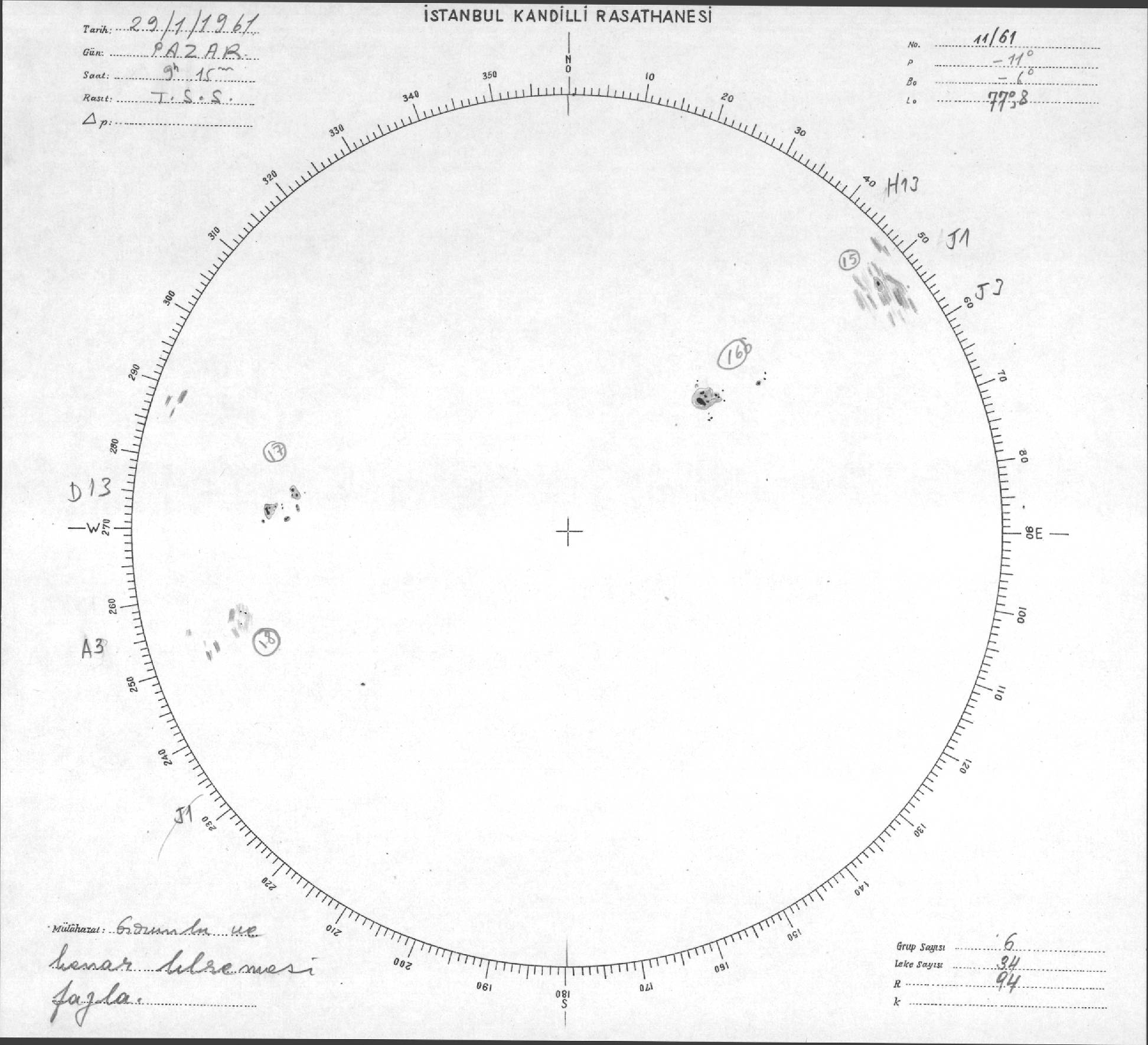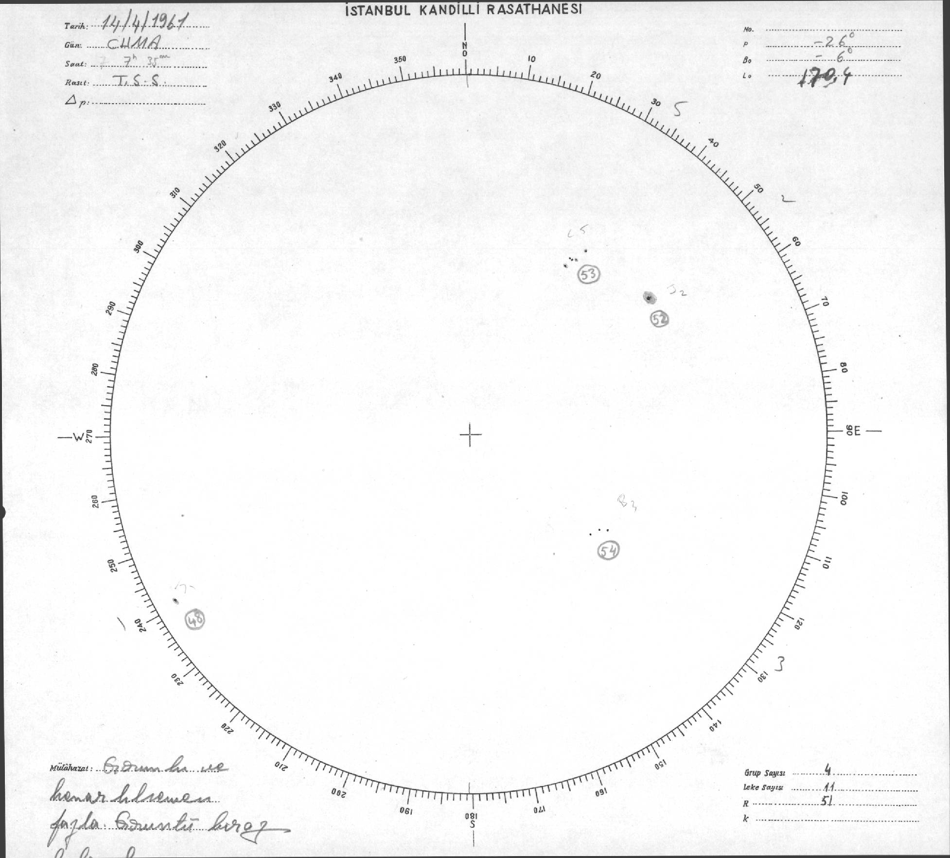 Güneş Lekesi Çizimleri / Kandilli Sunspot Drawings