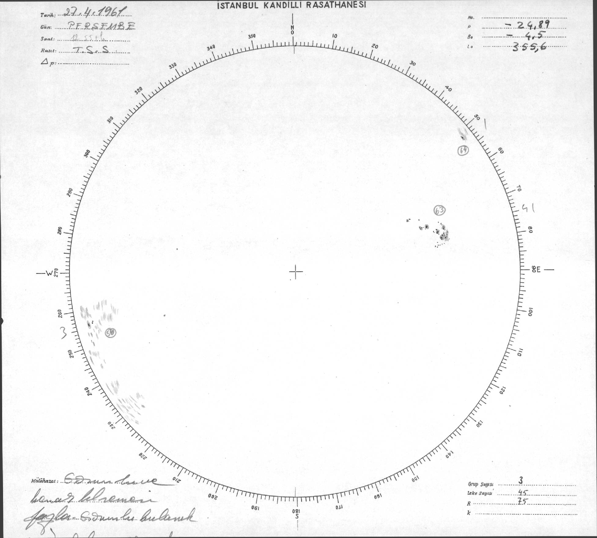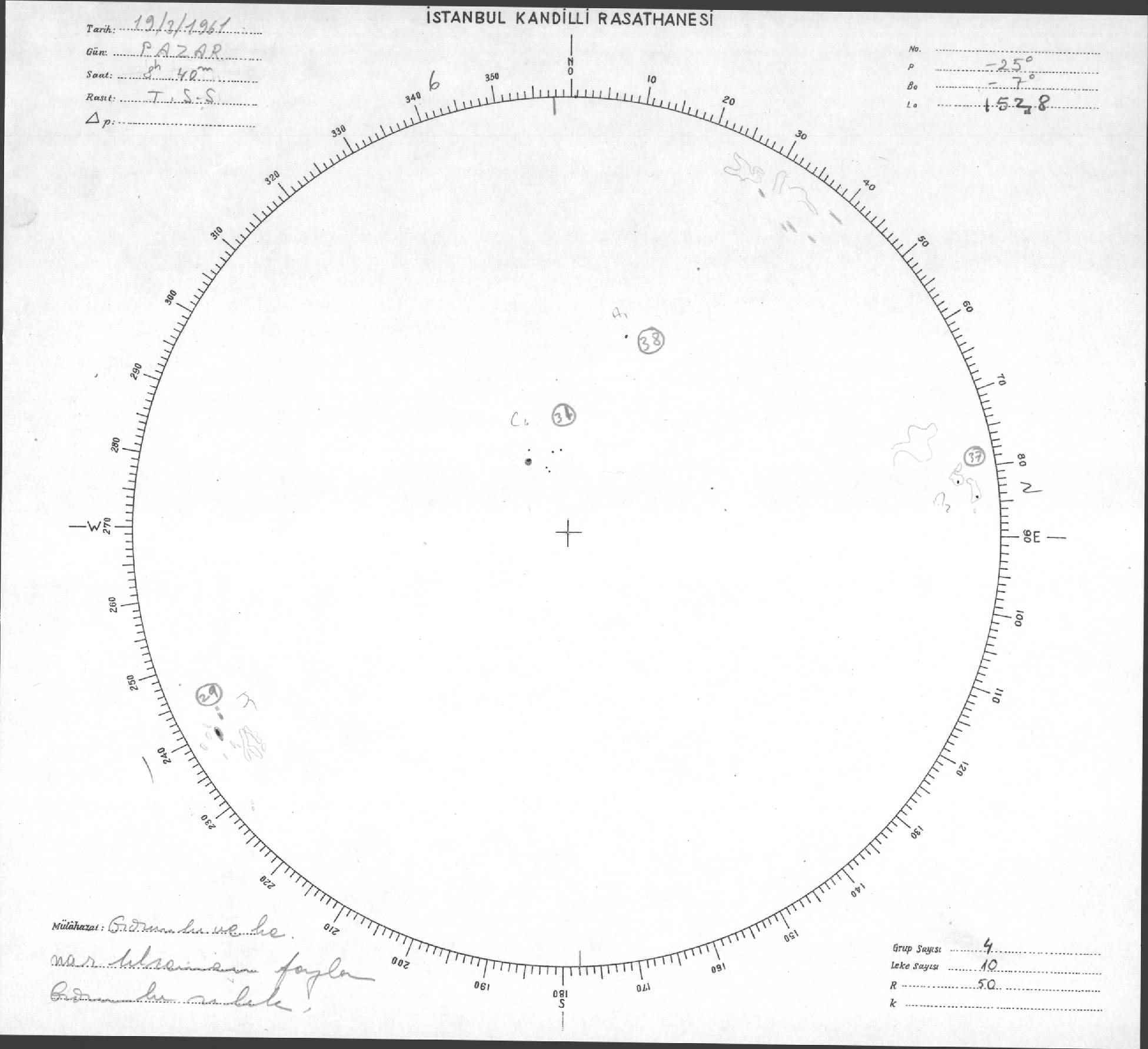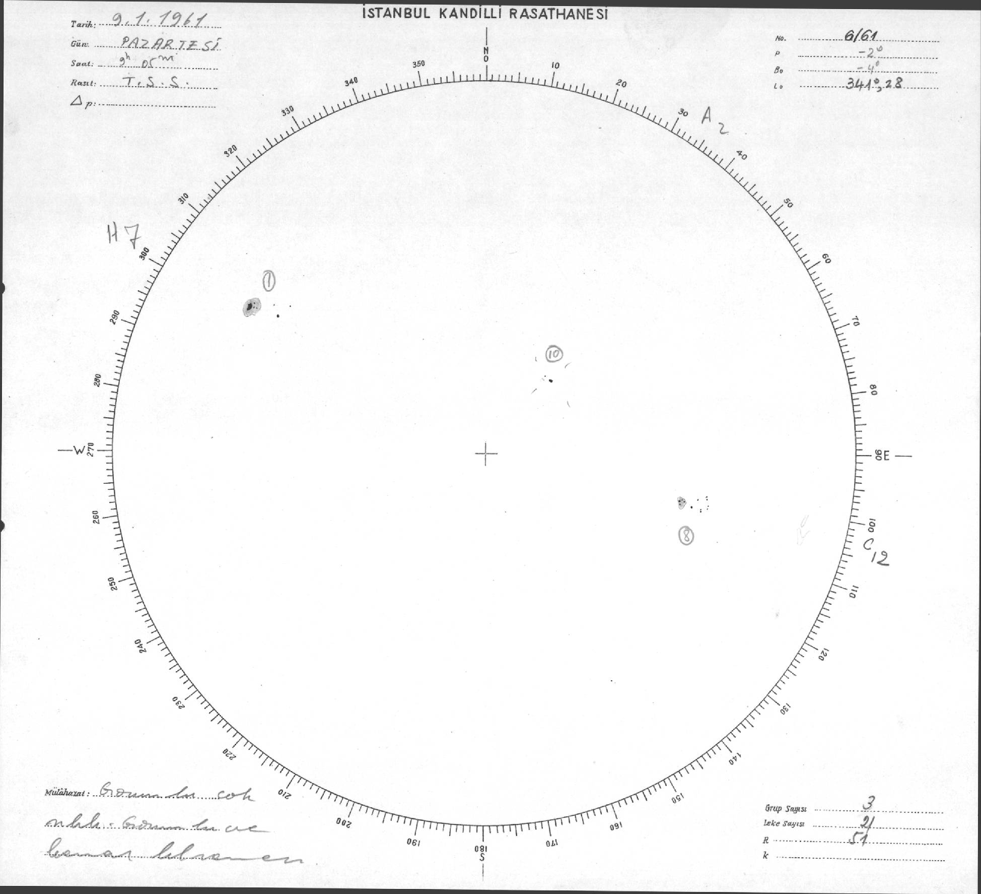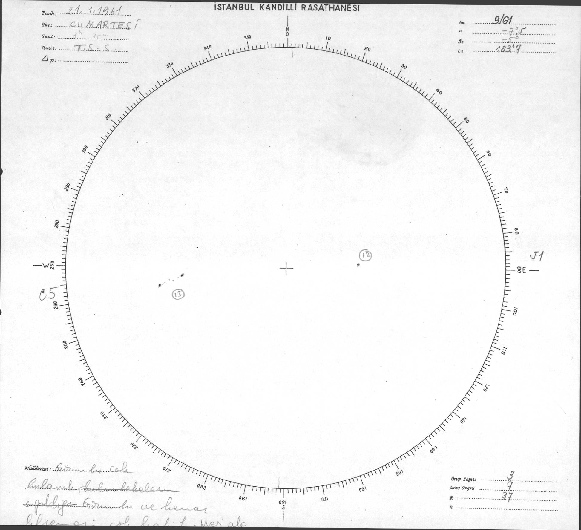 Güneş Lekesi Çizimleri / Kandilli Sunspot Drawings