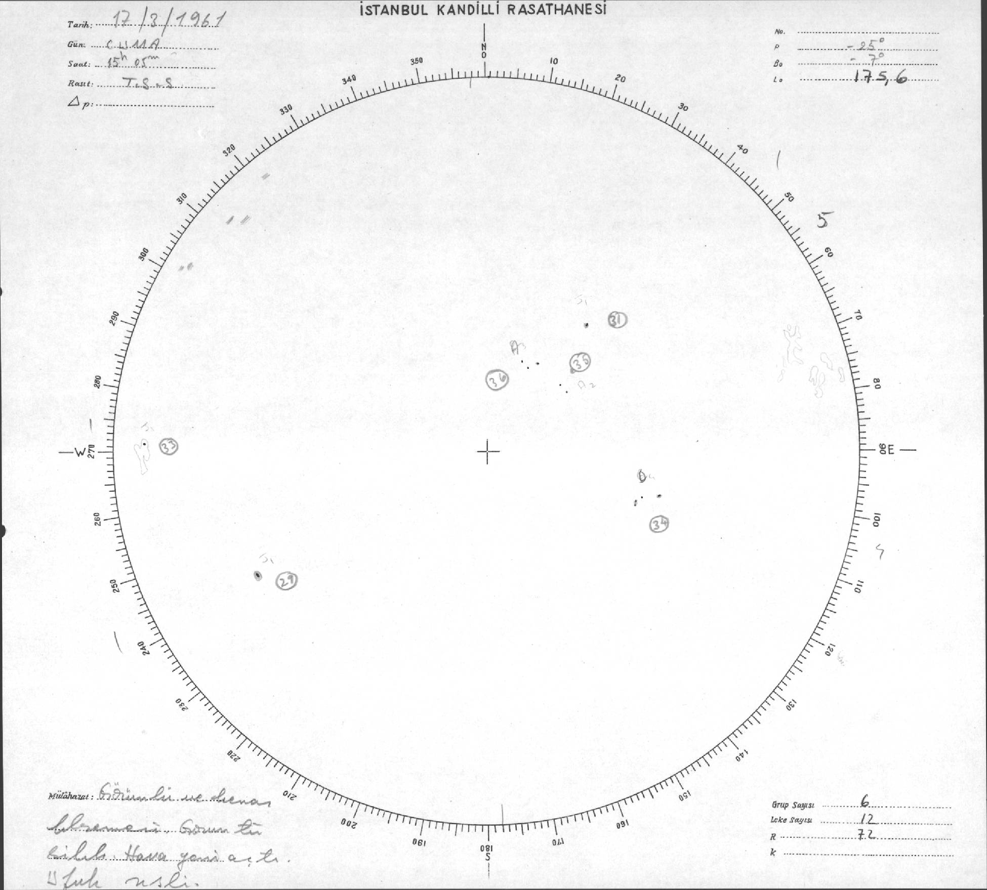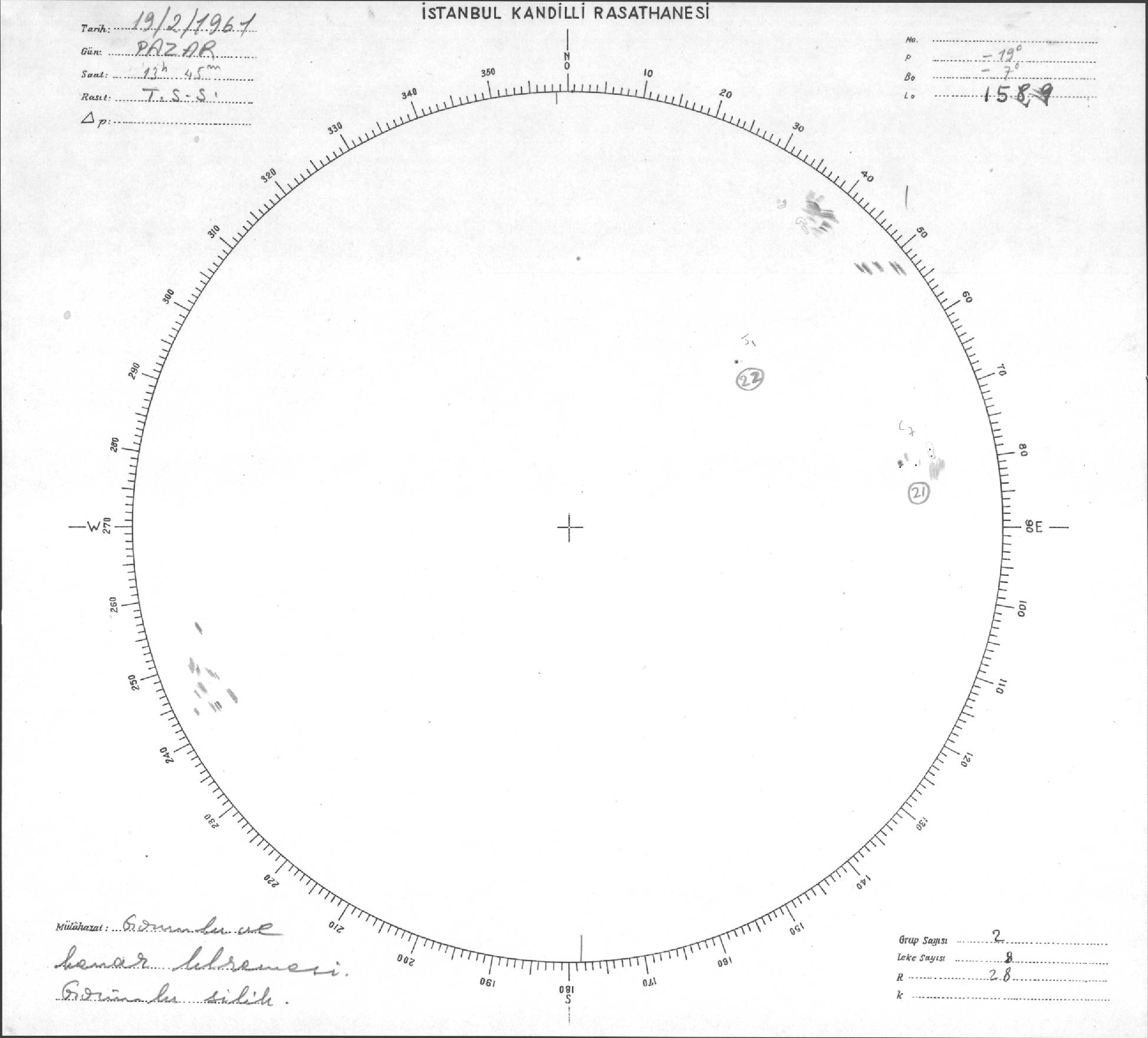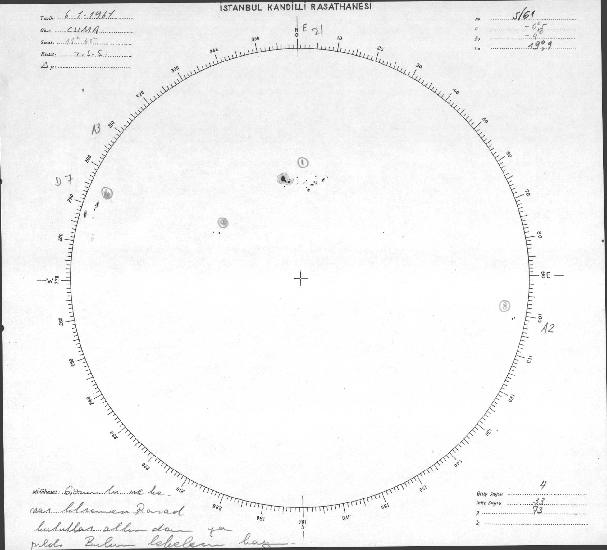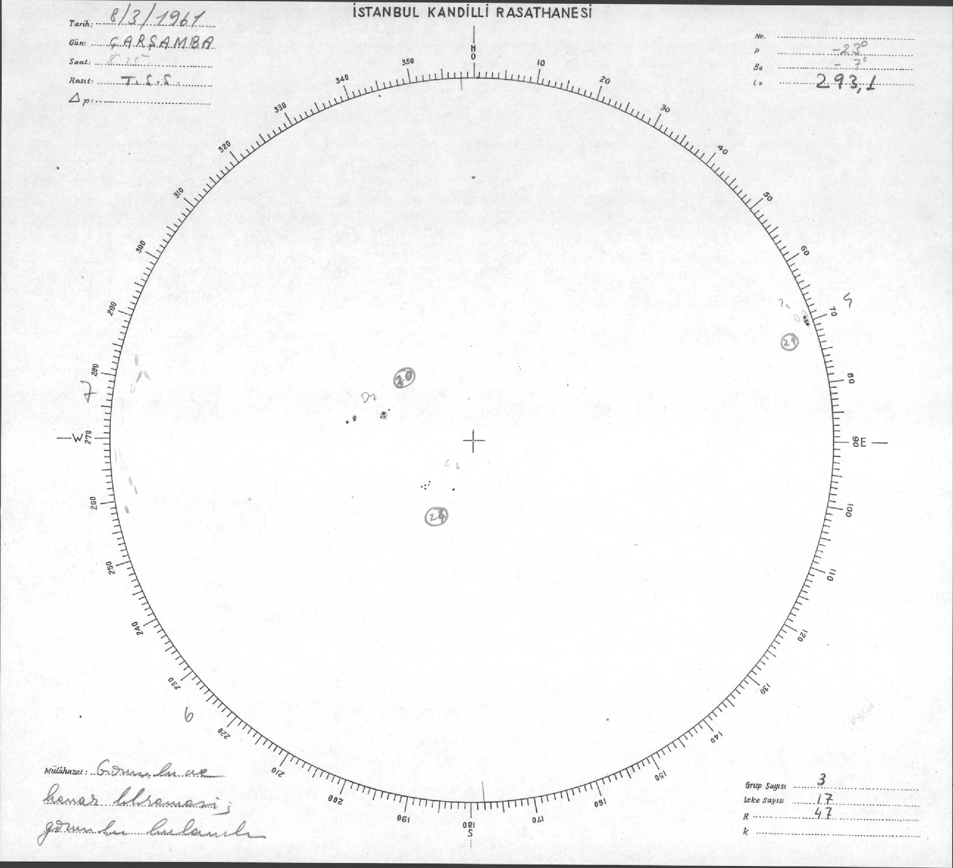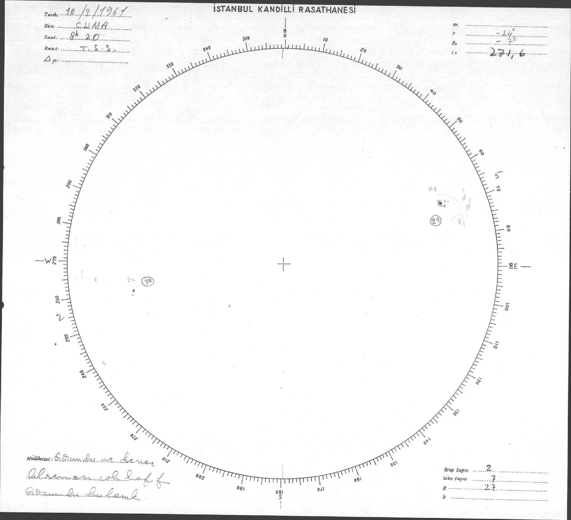Güneş Lekesi Çizimleri / Kandilli Sunspot Drawings