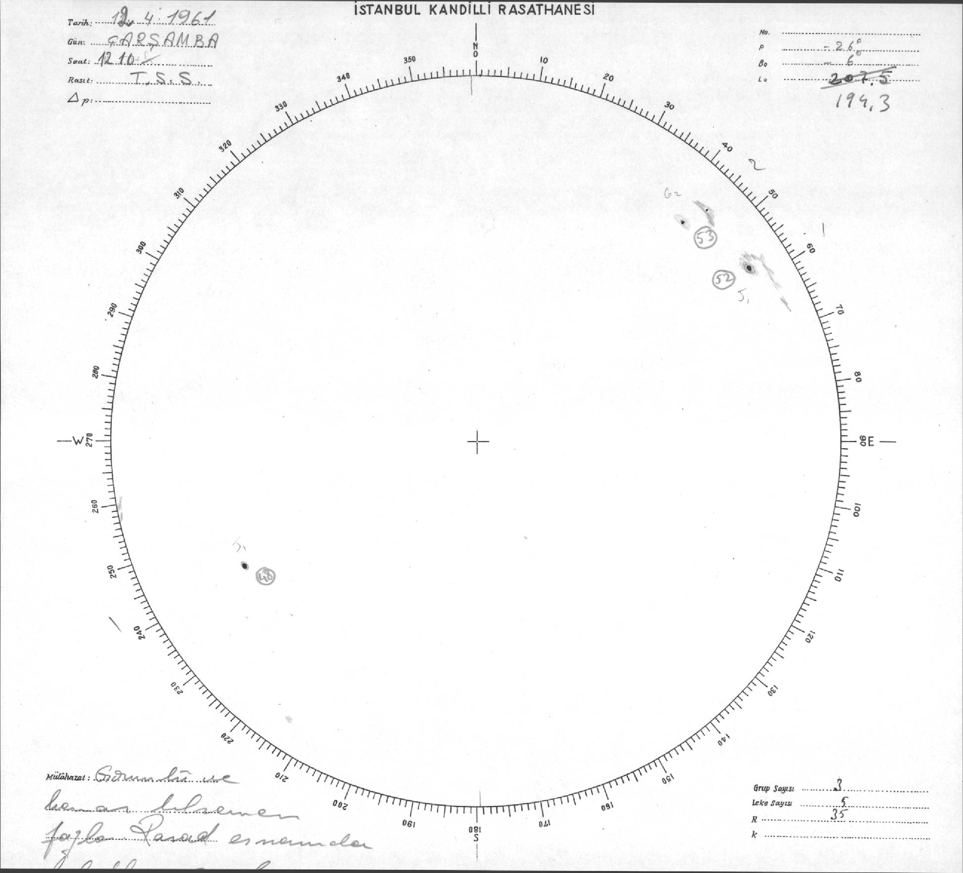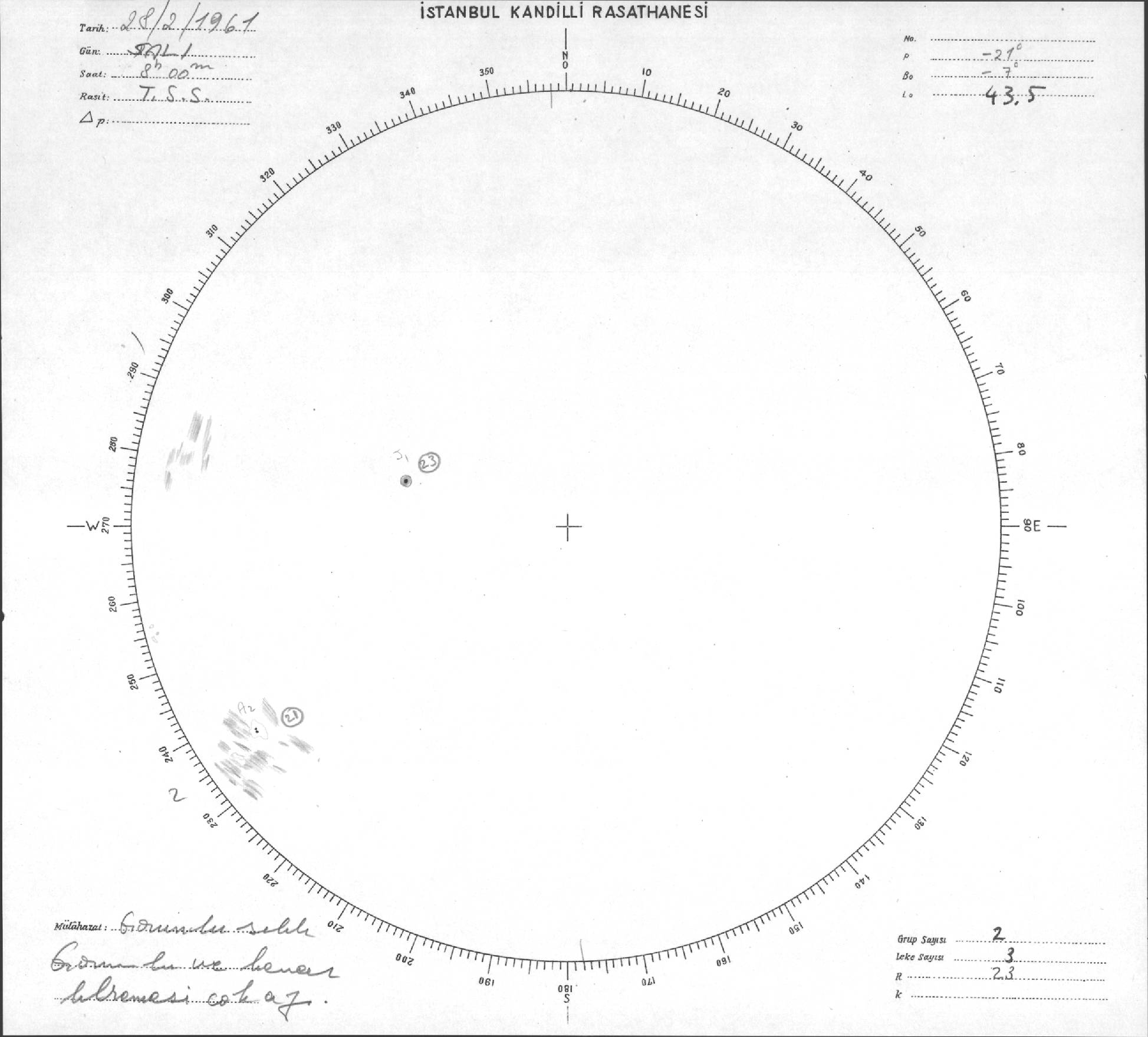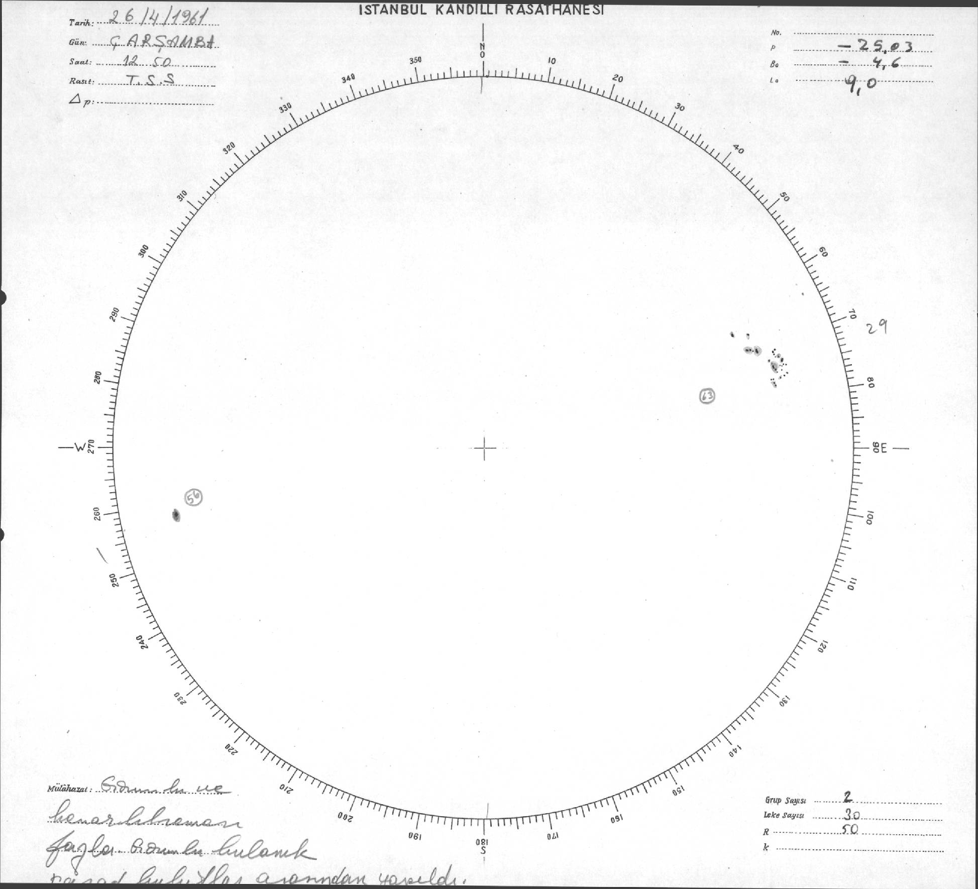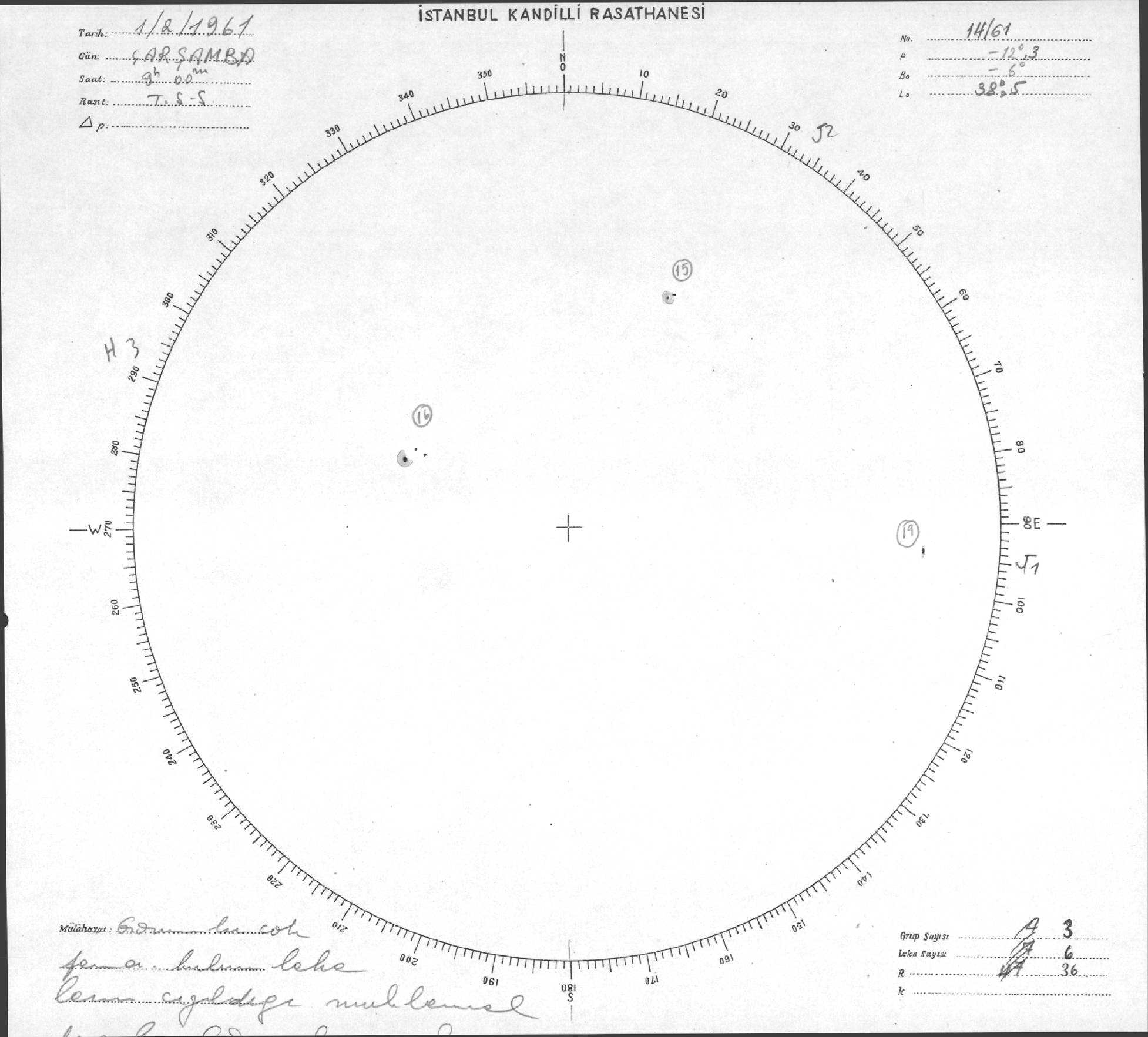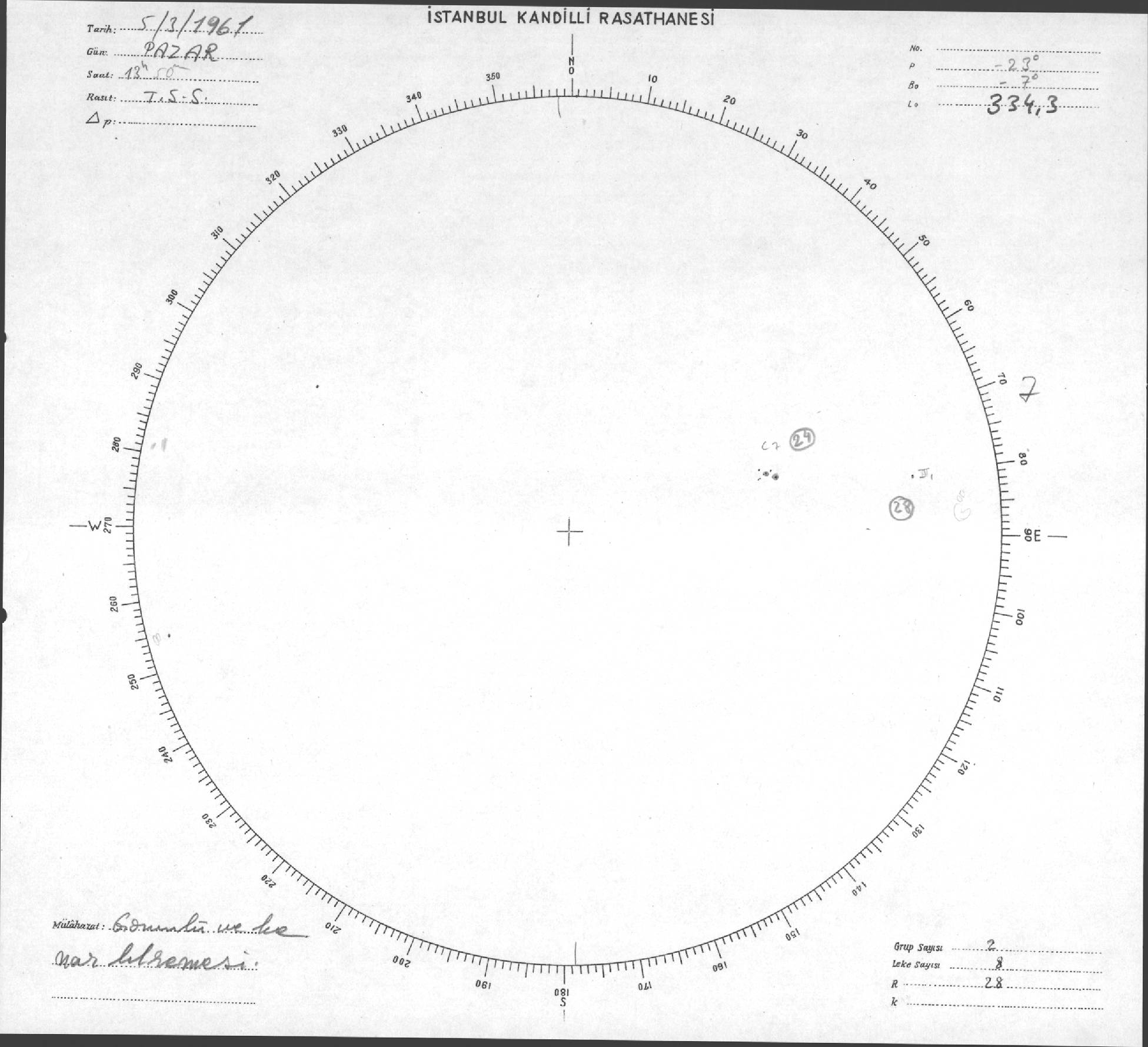 Güneş Lekesi Çizimleri / Kandilli Sunspot Drawings