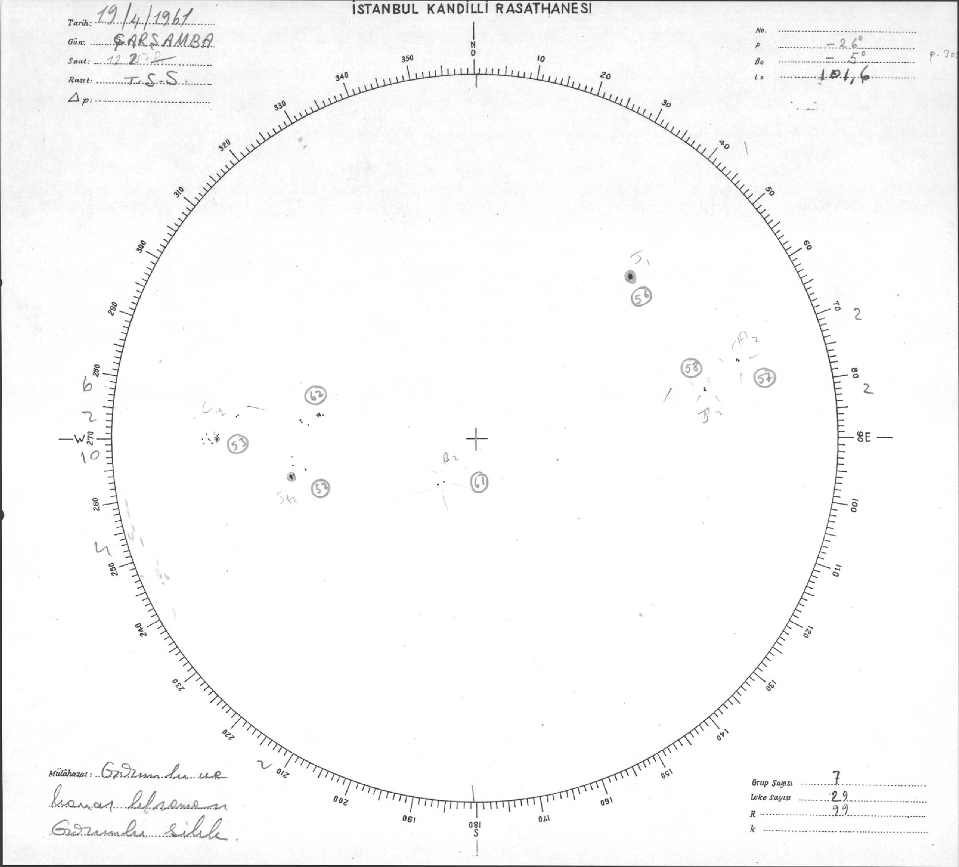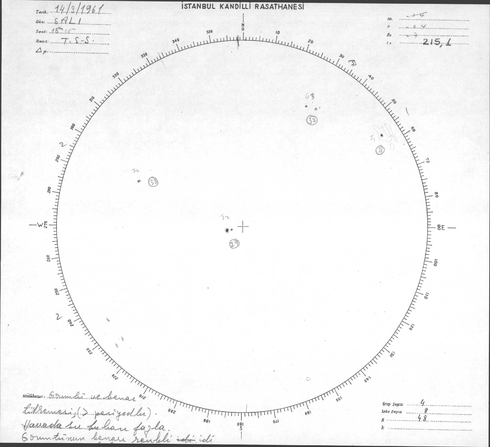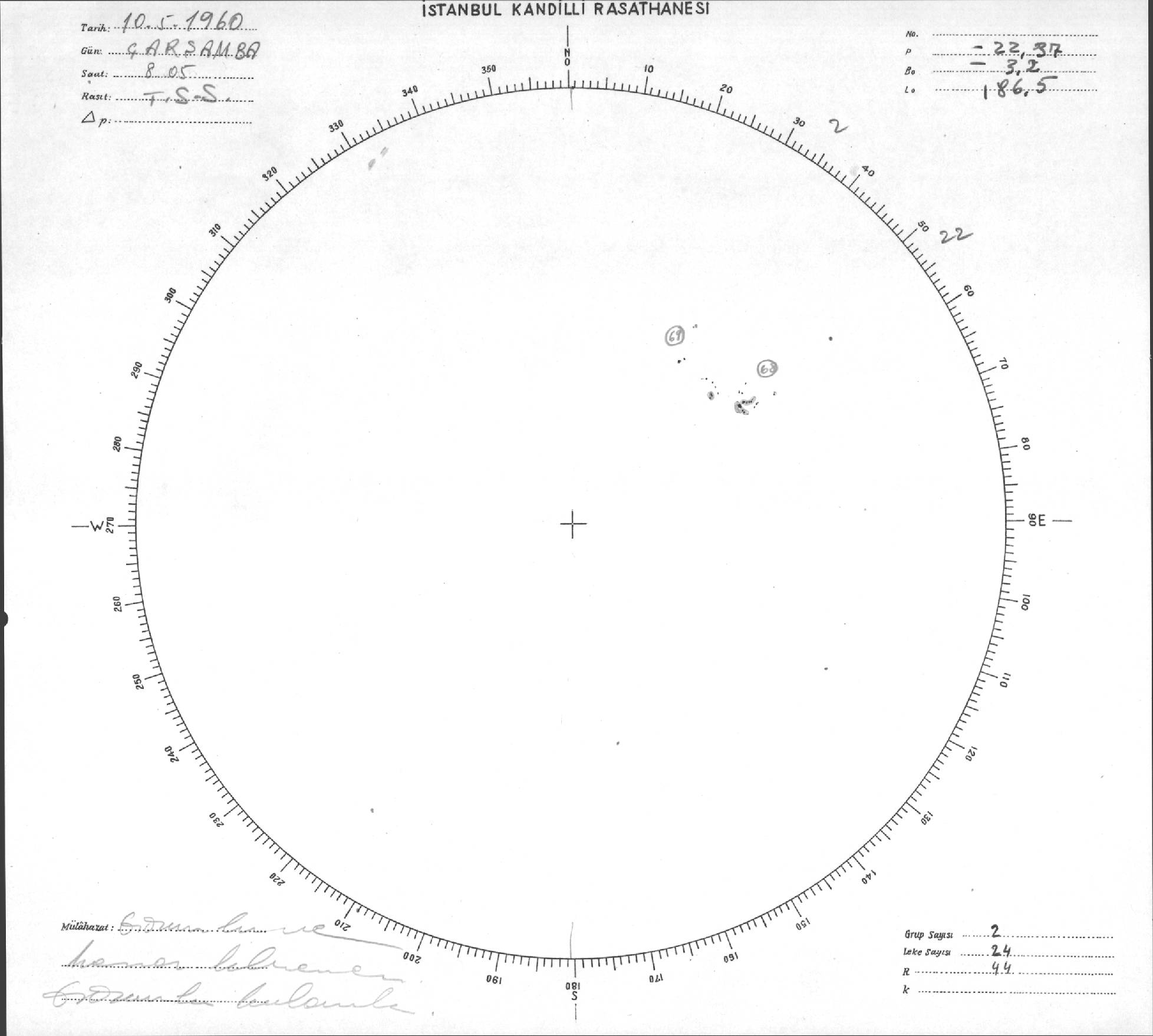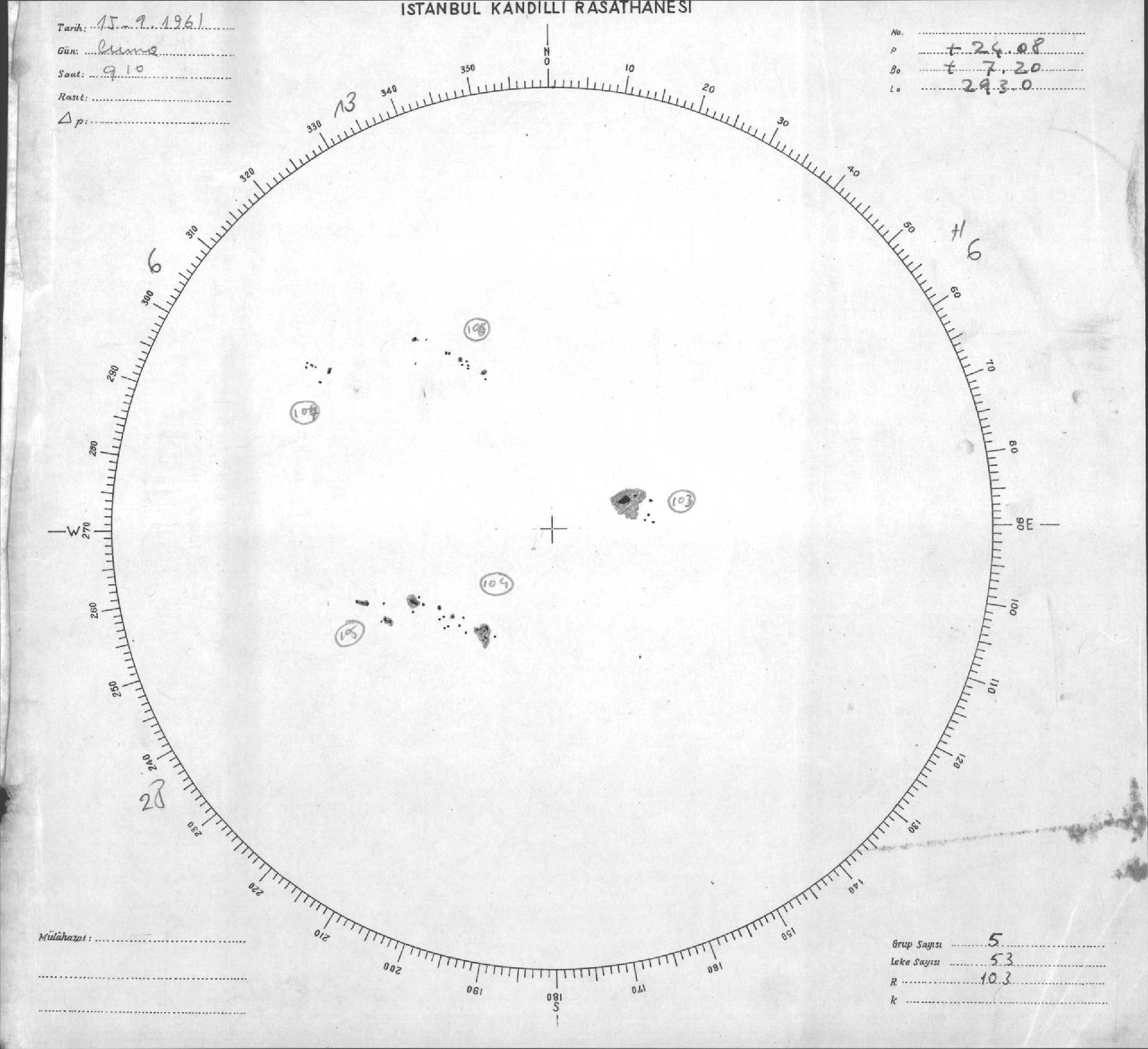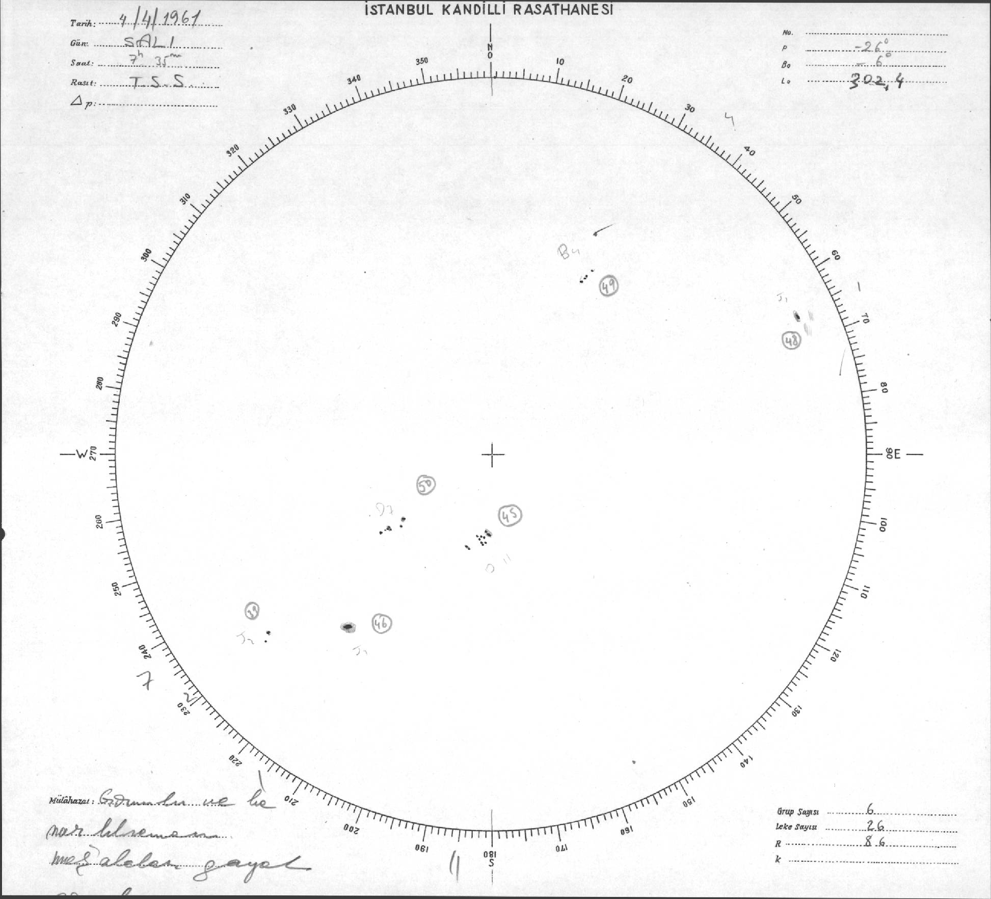 Güneş Lekesi Çizimleri / Kandilli Sunspot Drawings