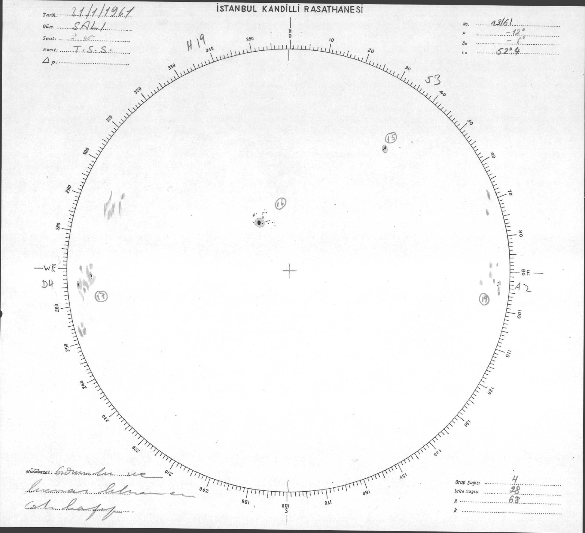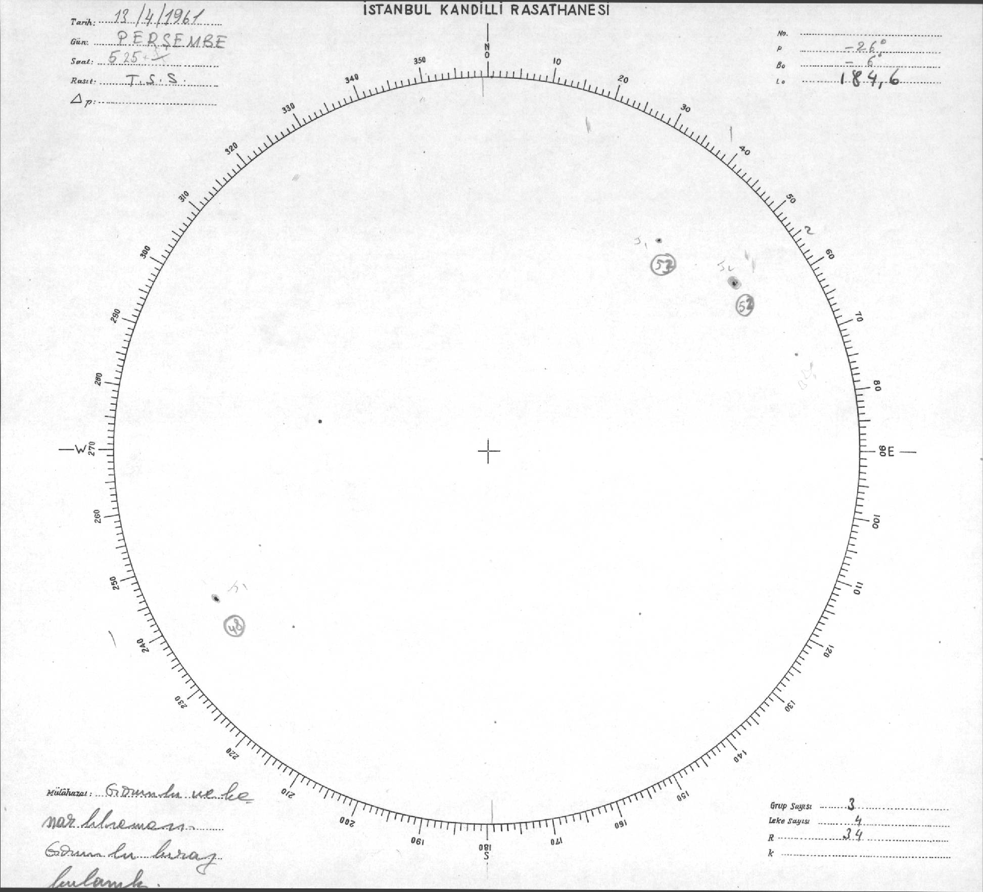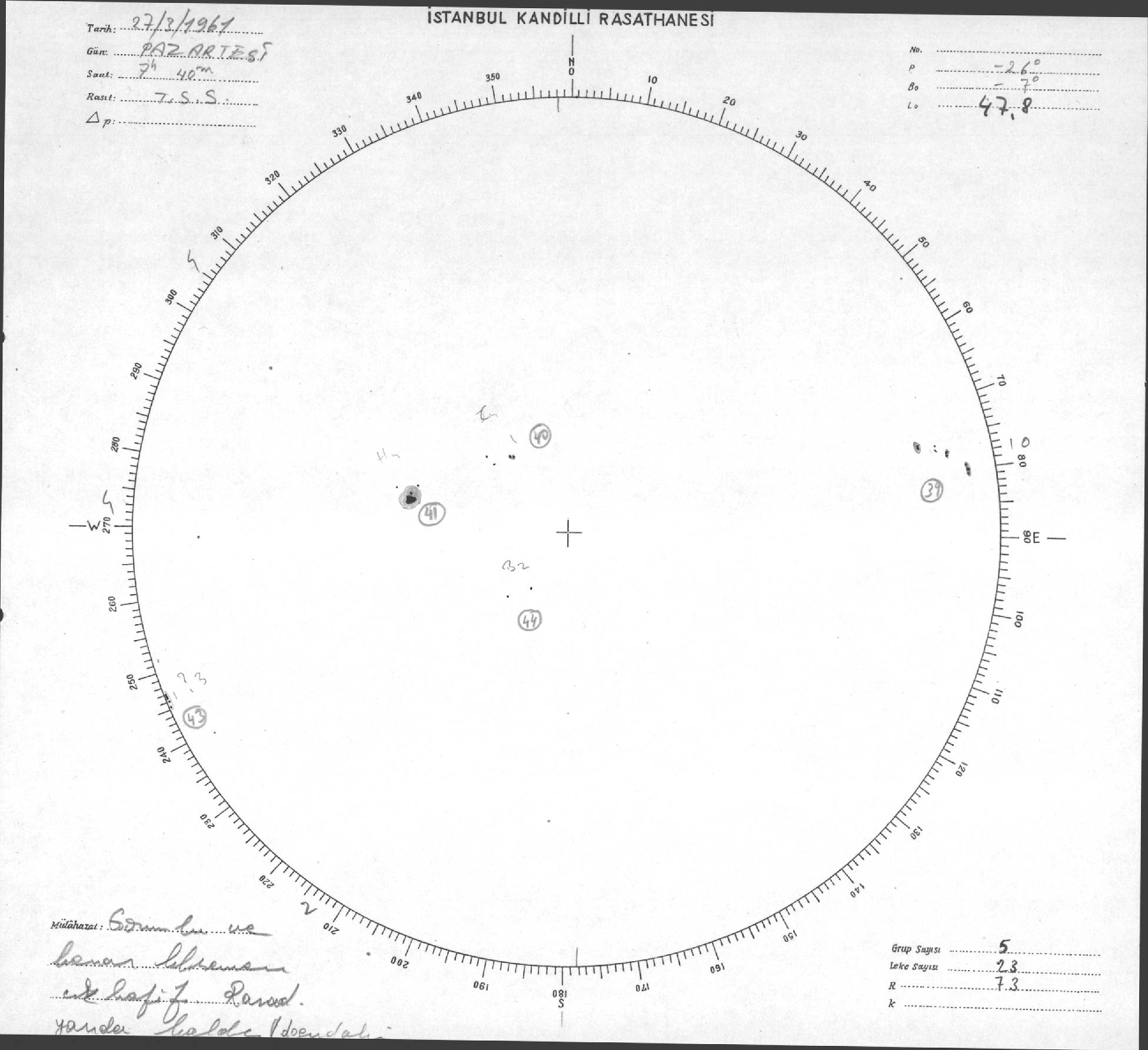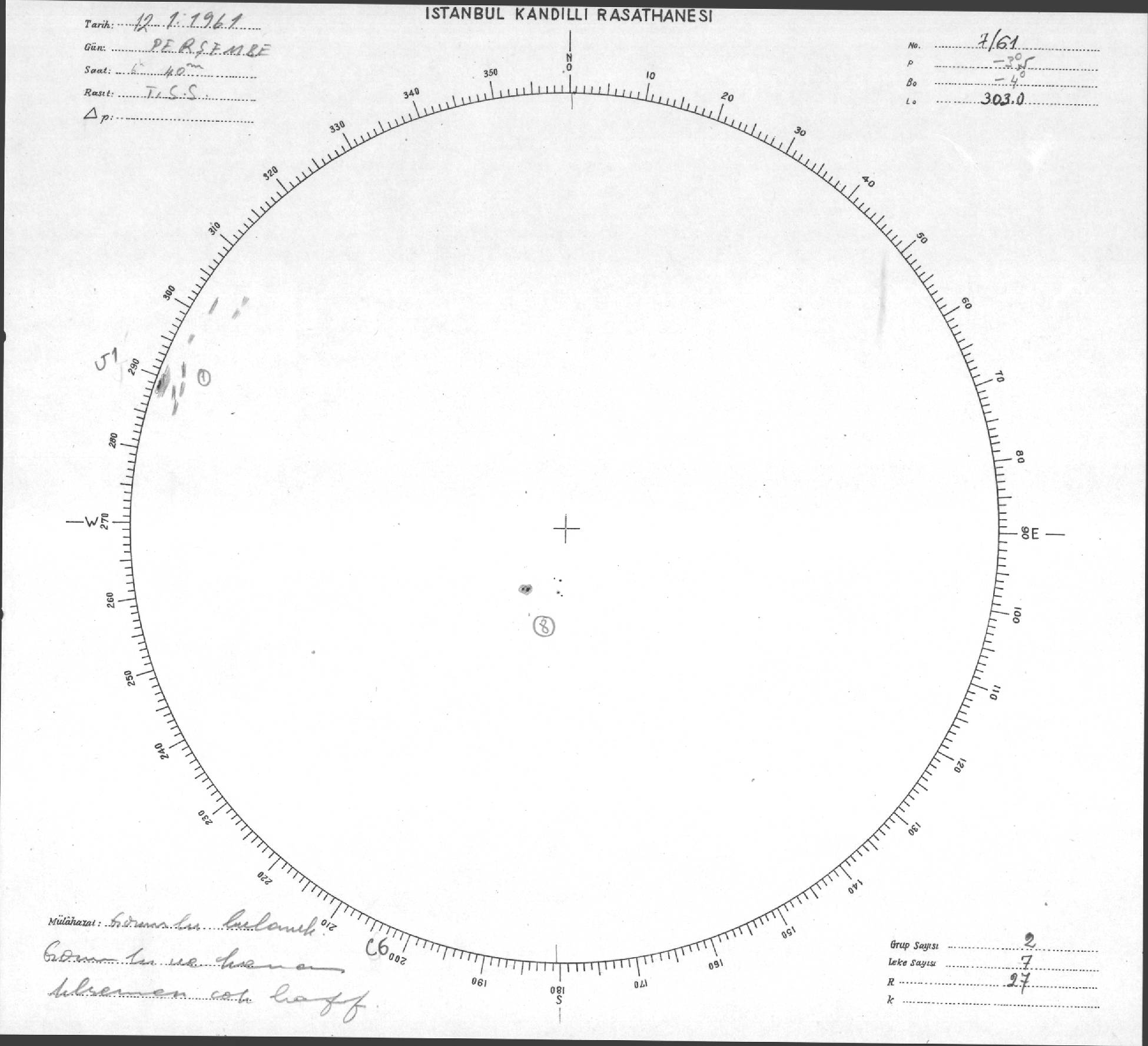 Güneş Lekesi Çizimleri / Kandilli Sunspot Drawings