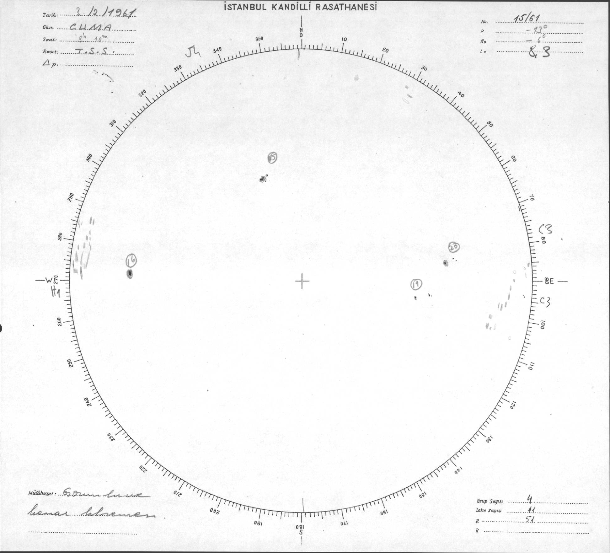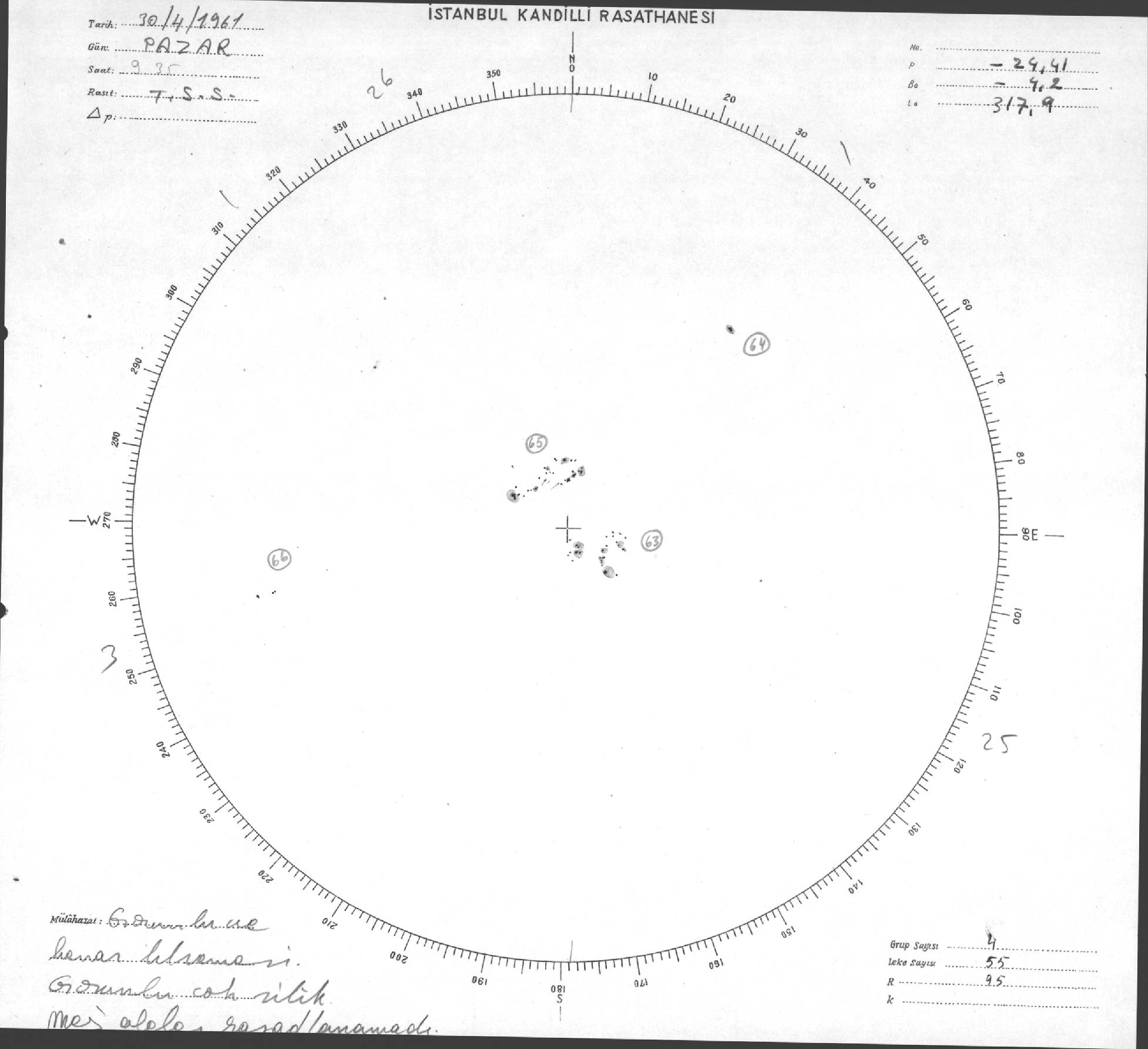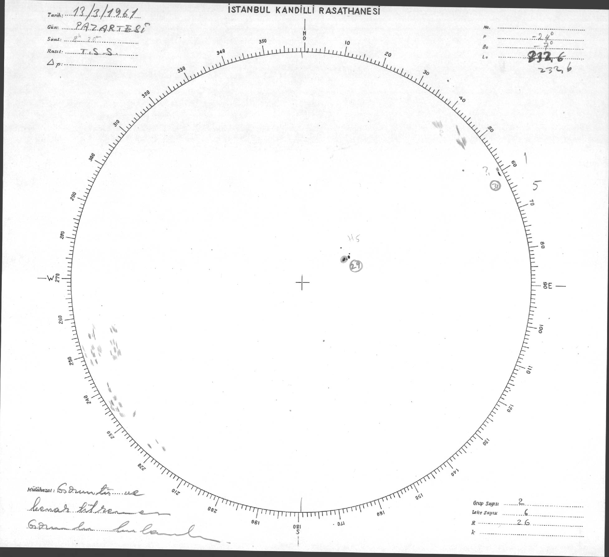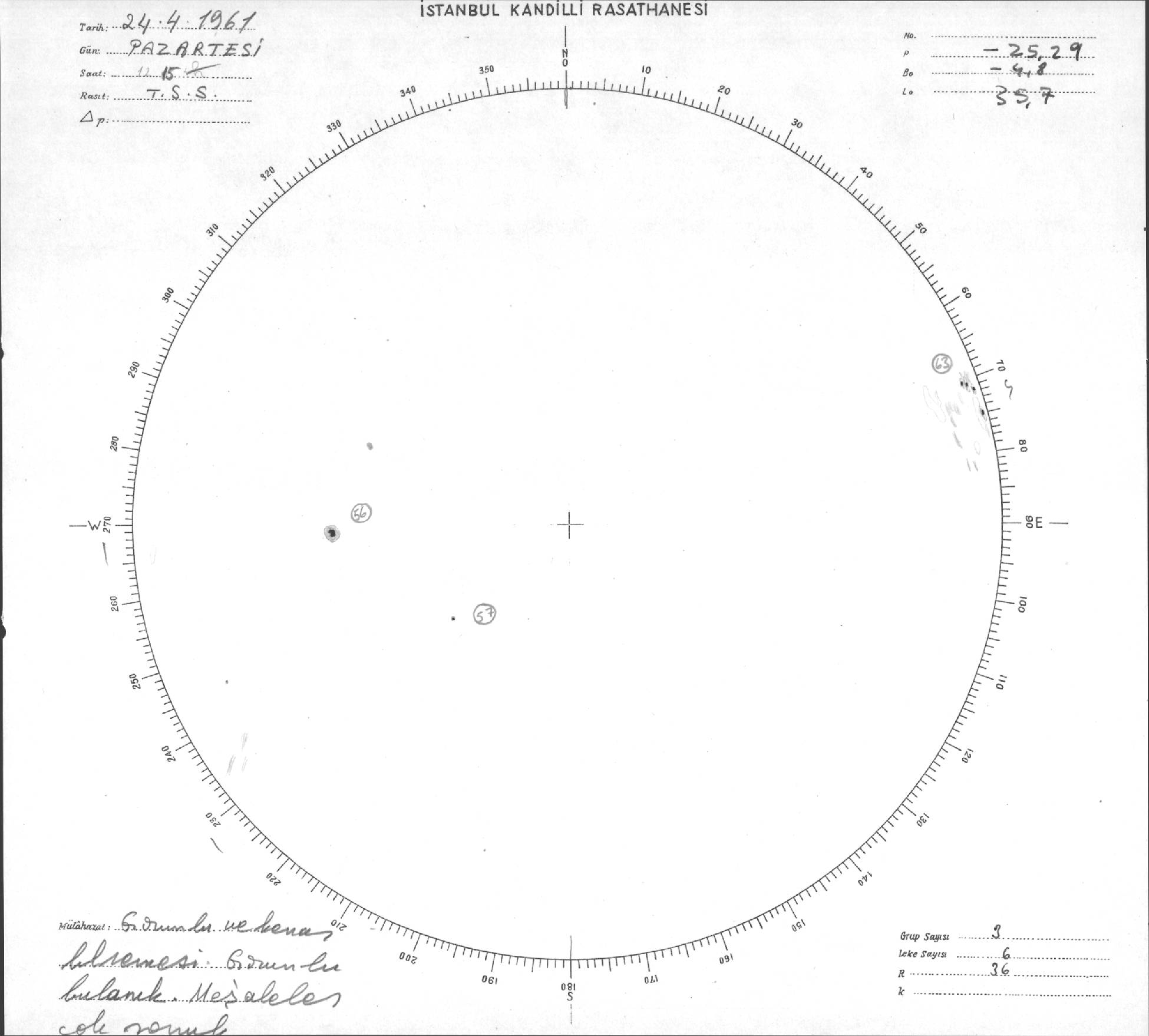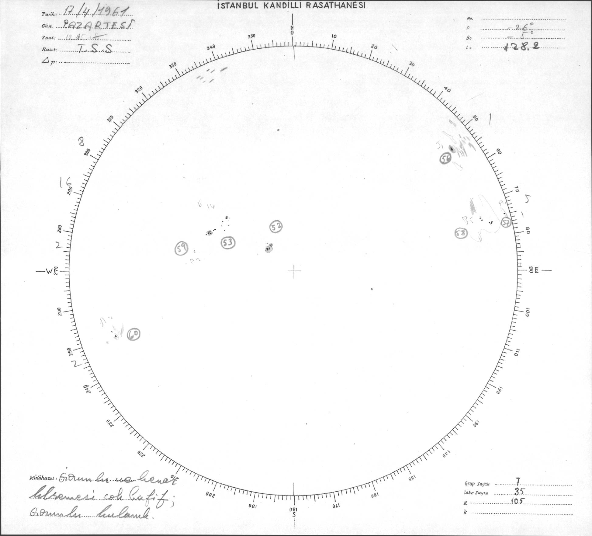 Güneş Lekesi Çizimleri / Kandilli Sunspot Drawings