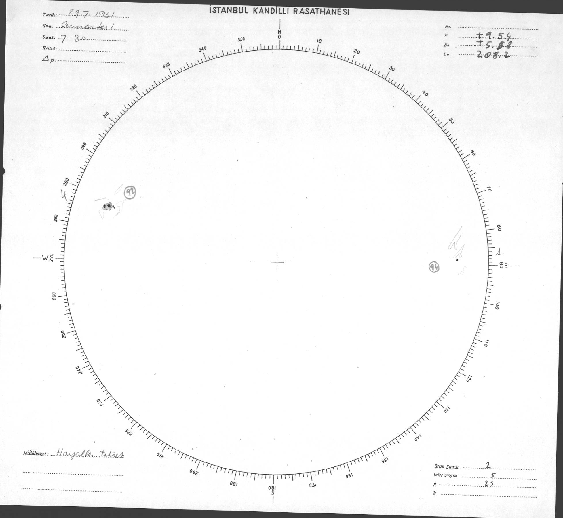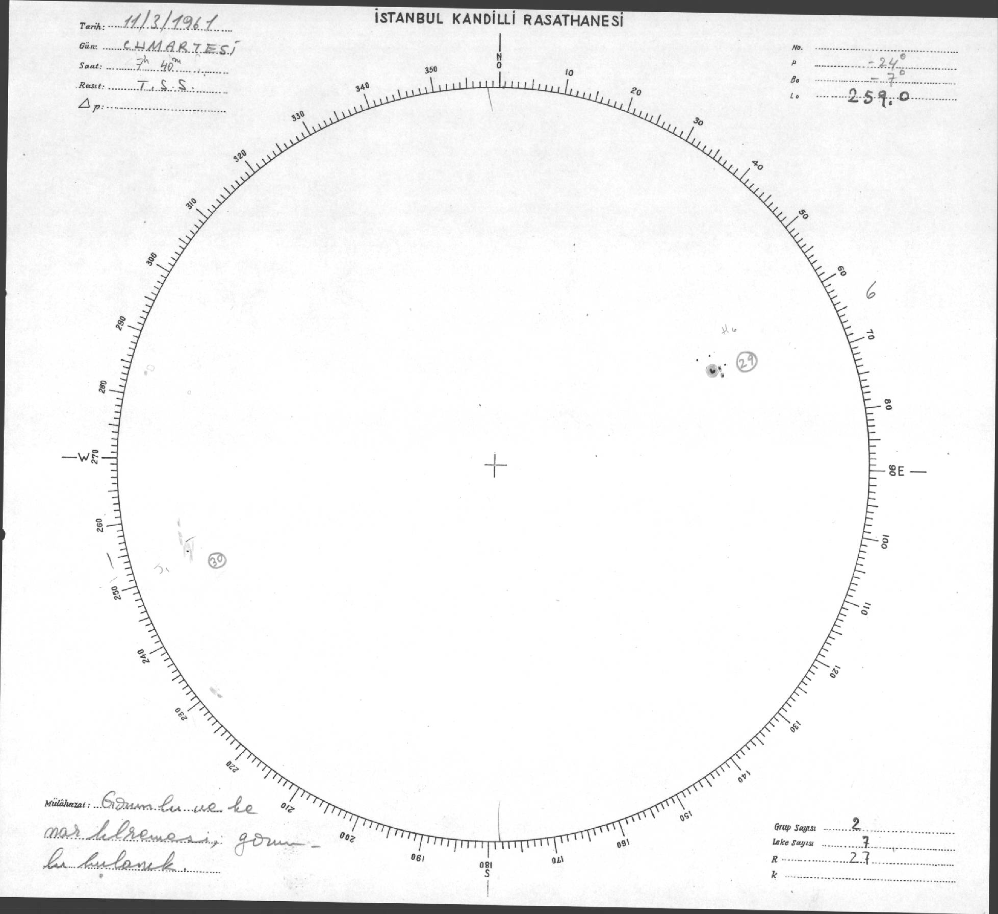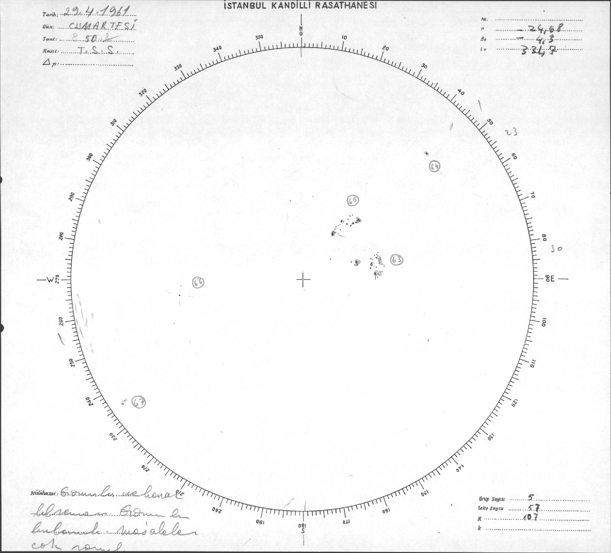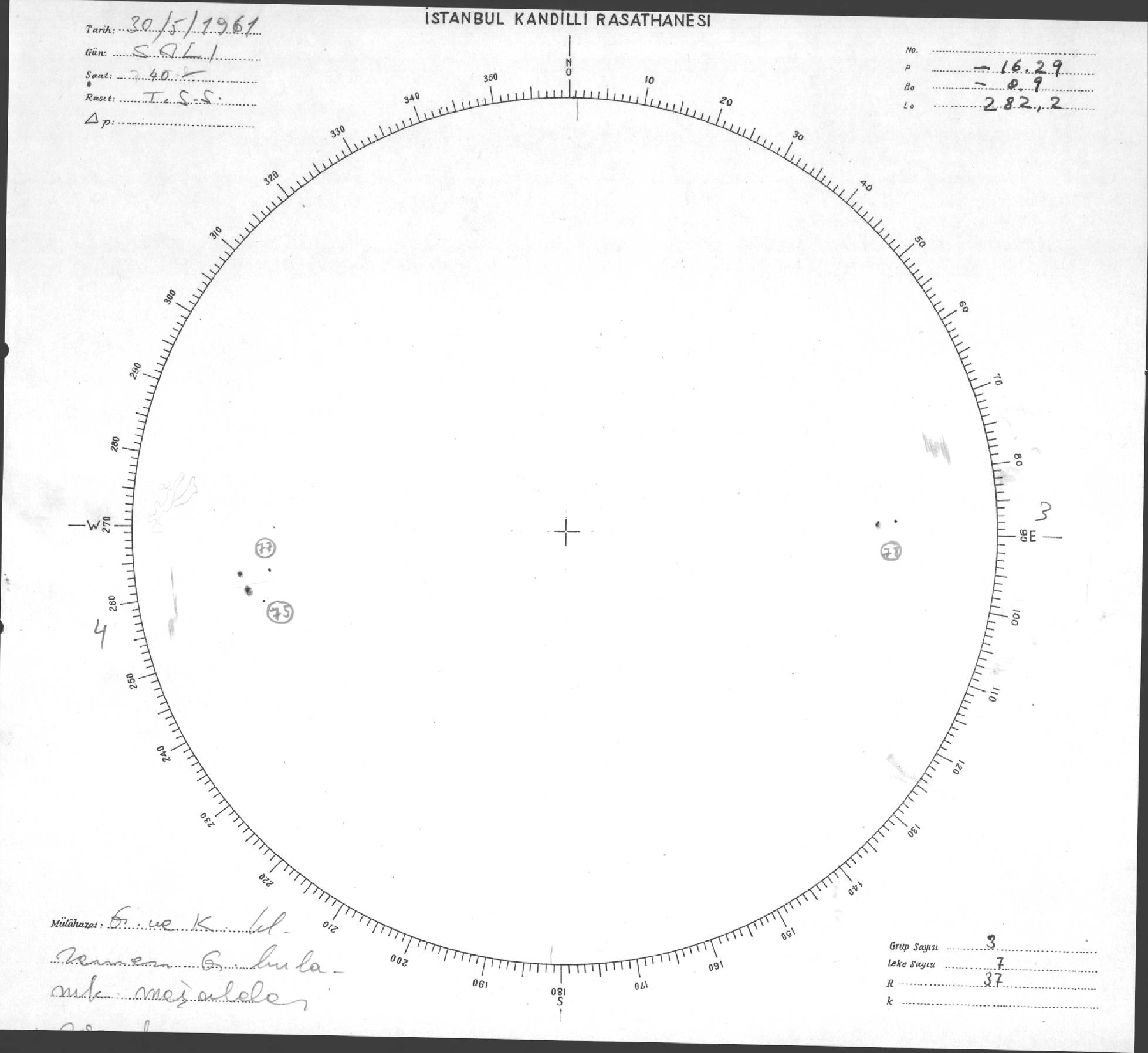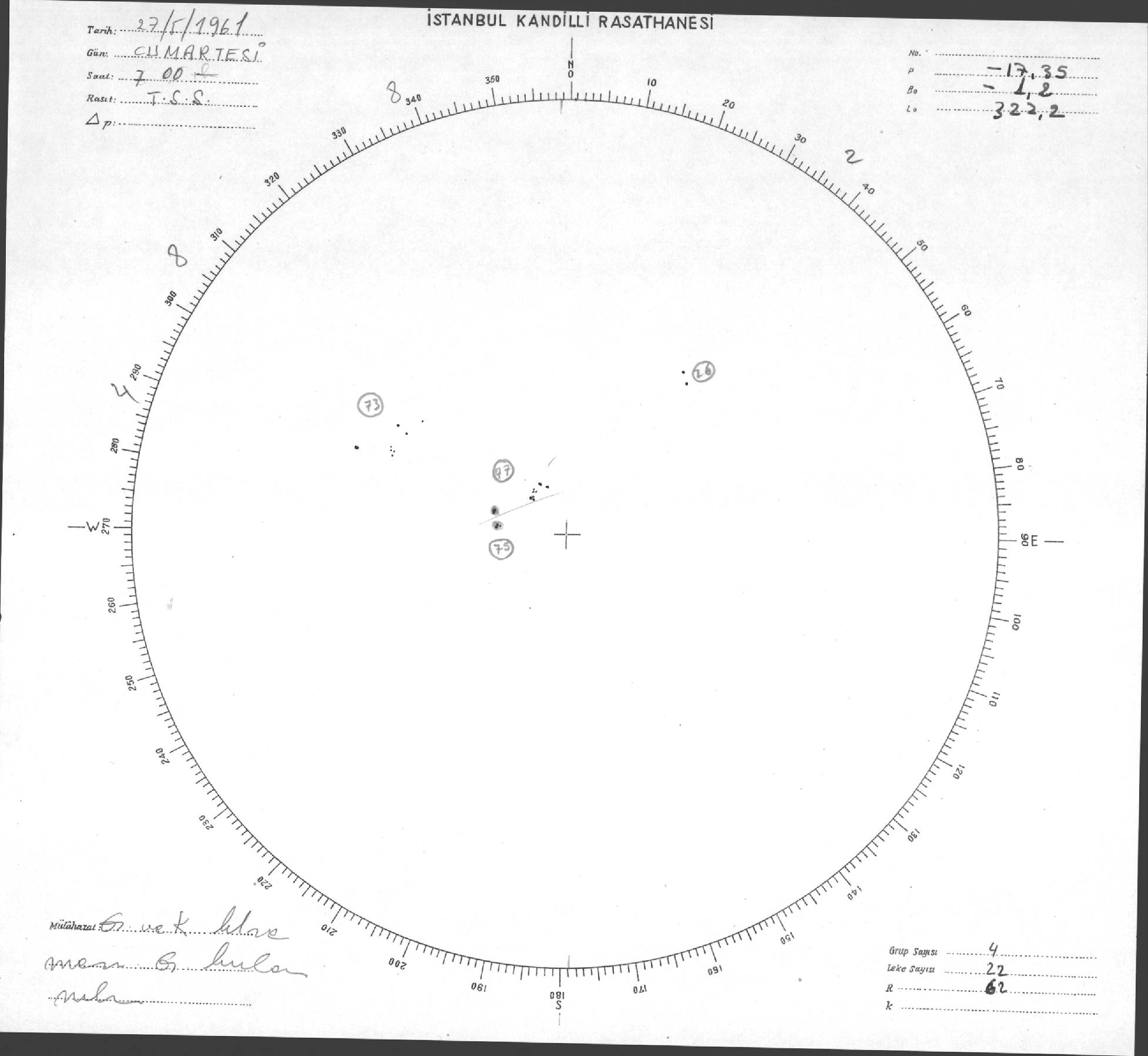 Güneş Lekesi Çizimleri / Kandilli Sunspot Drawings