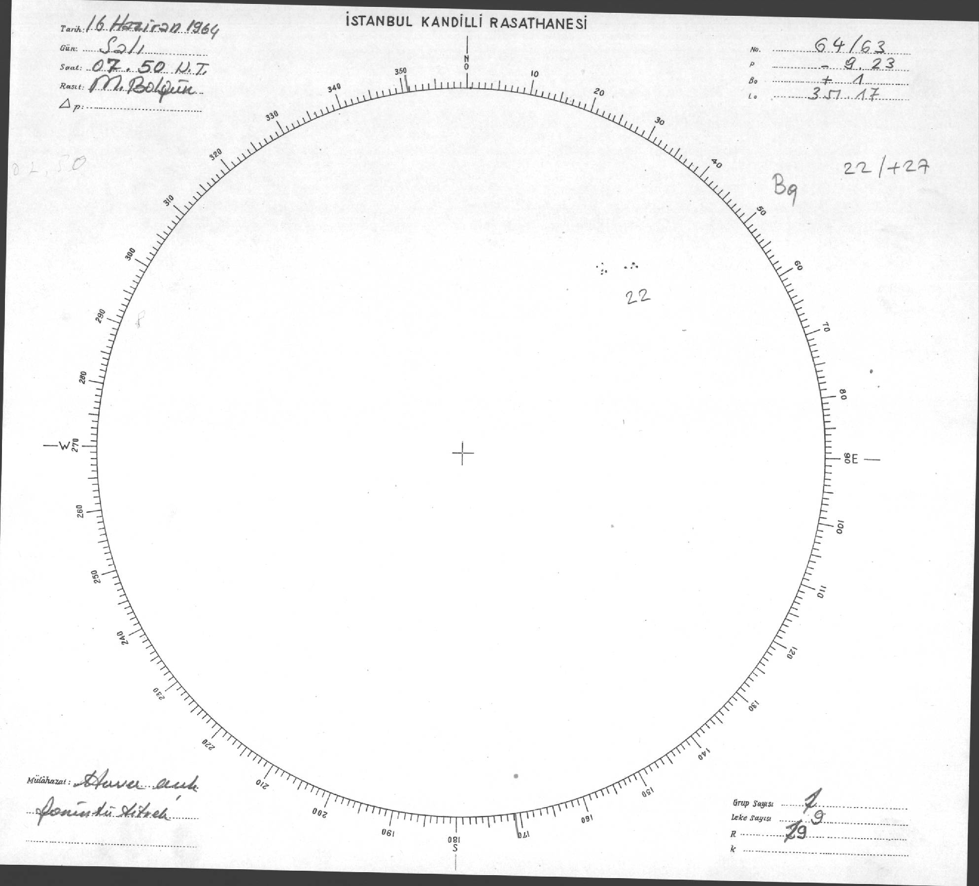 Güneş Lekesi Çizimleri / Kandilli Sunspot Drawings