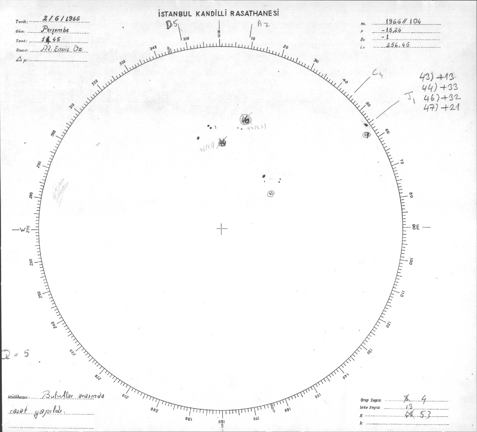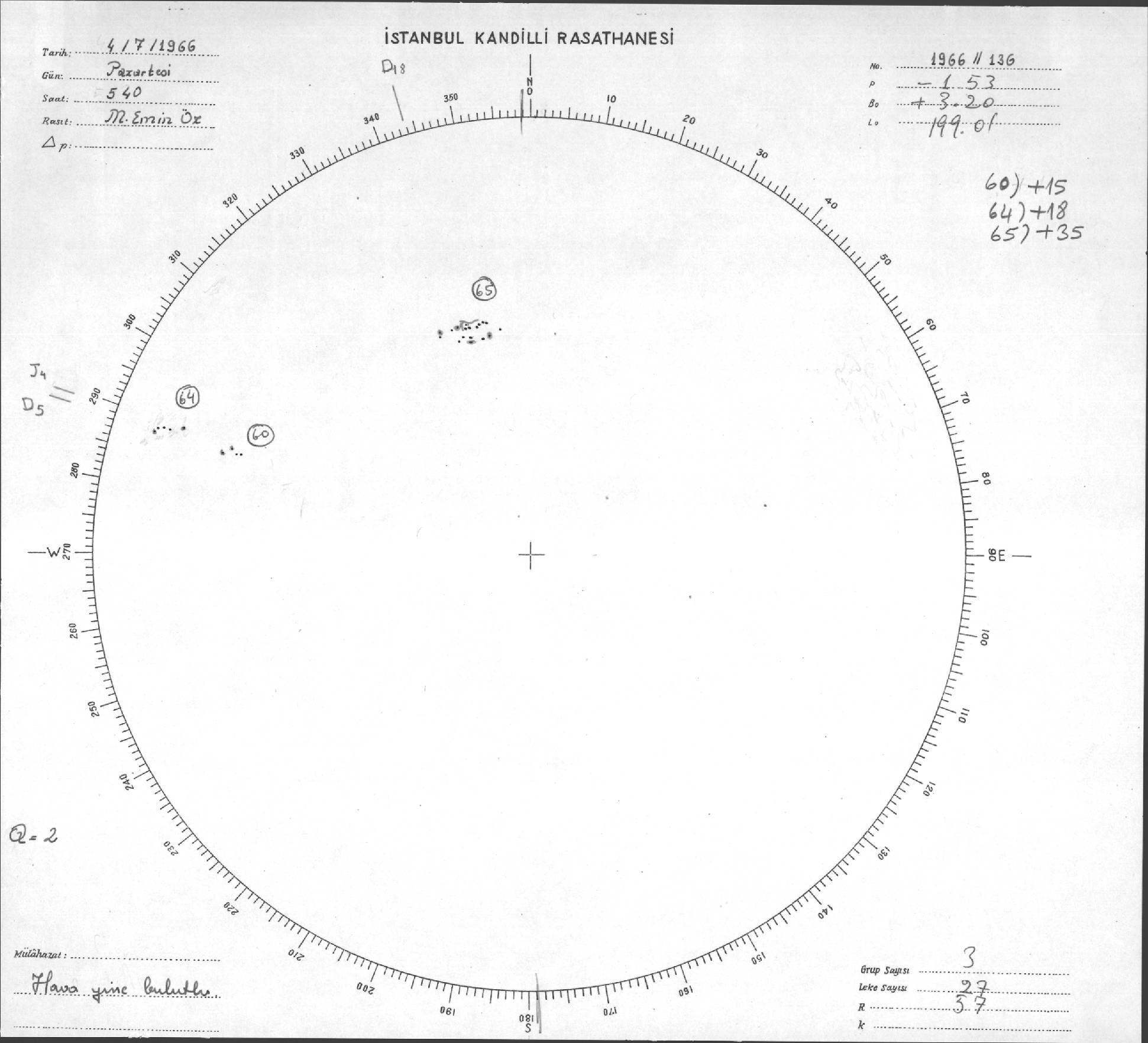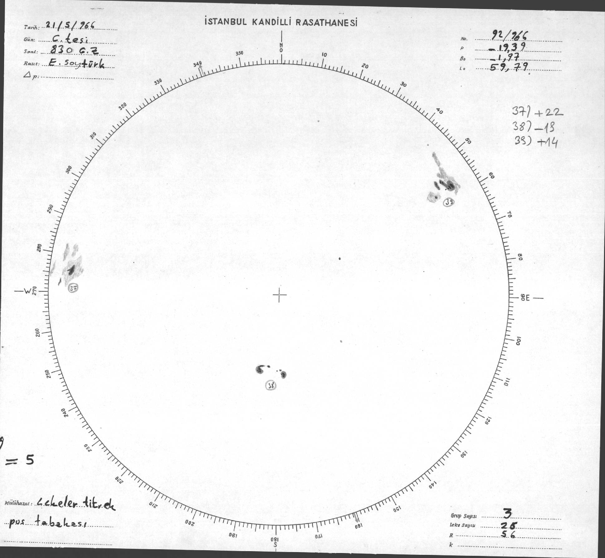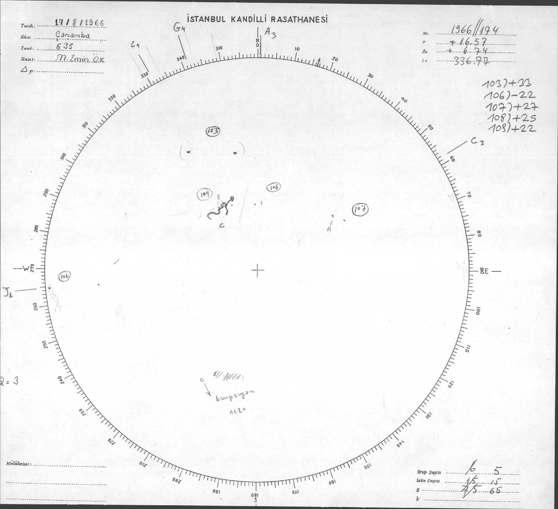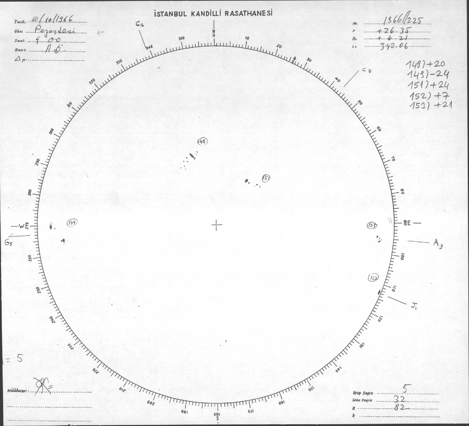 Güneş Lekesi Çizimleri / Kandilli Sunspot Drawings