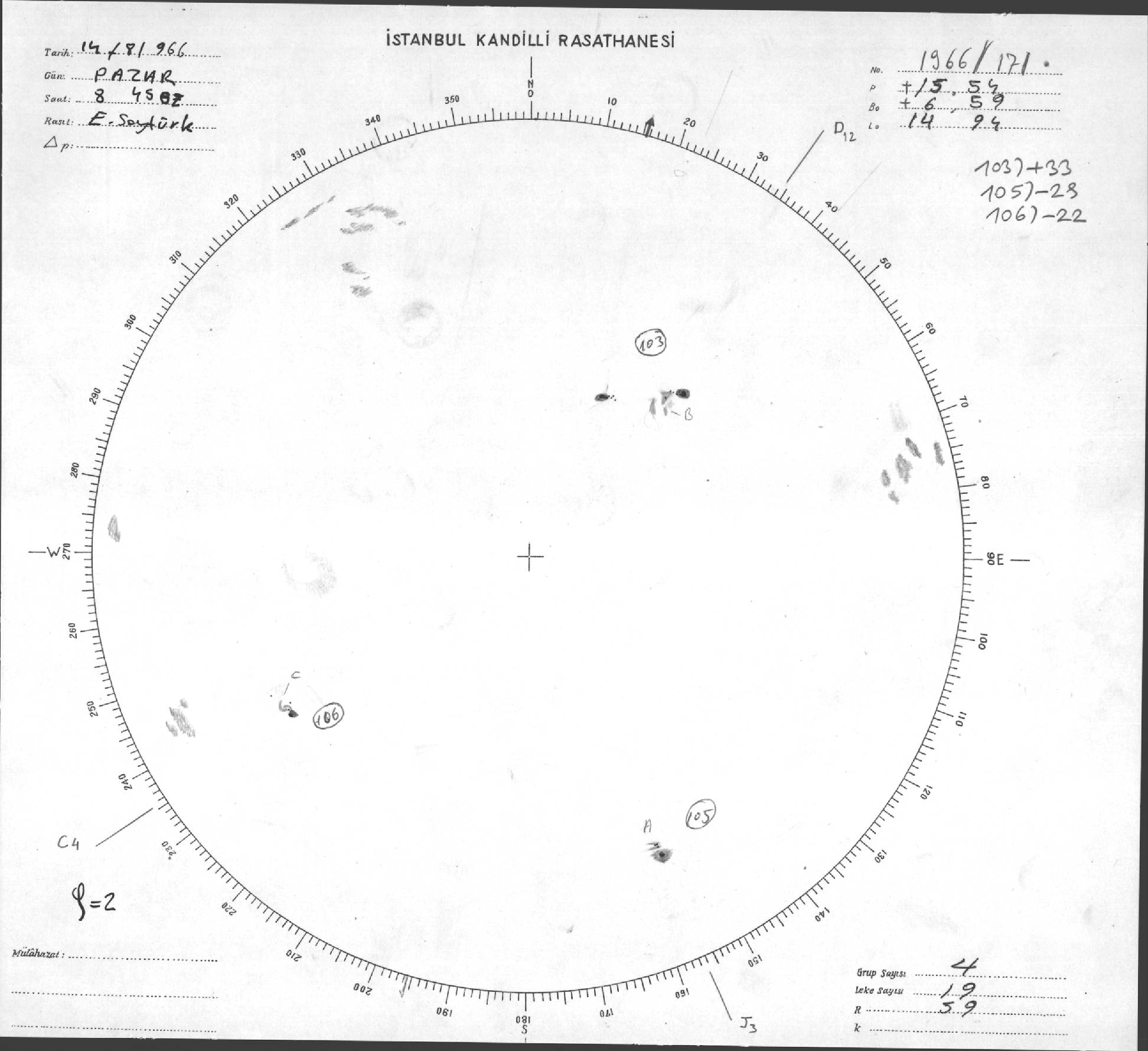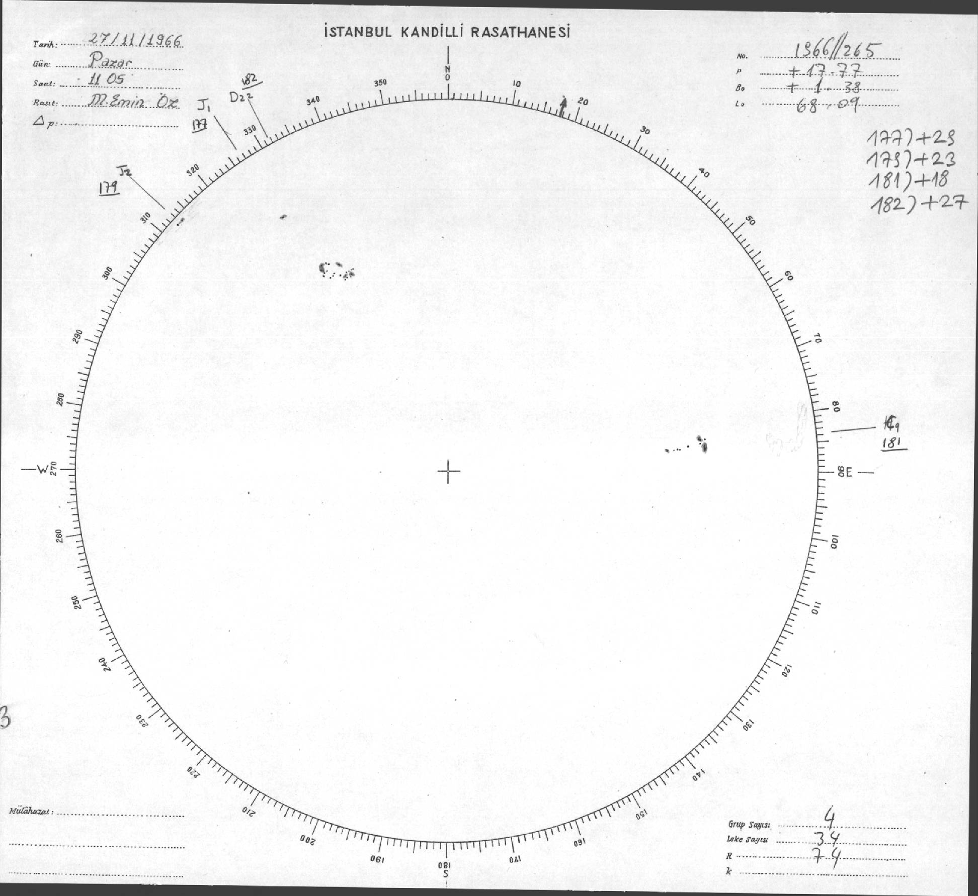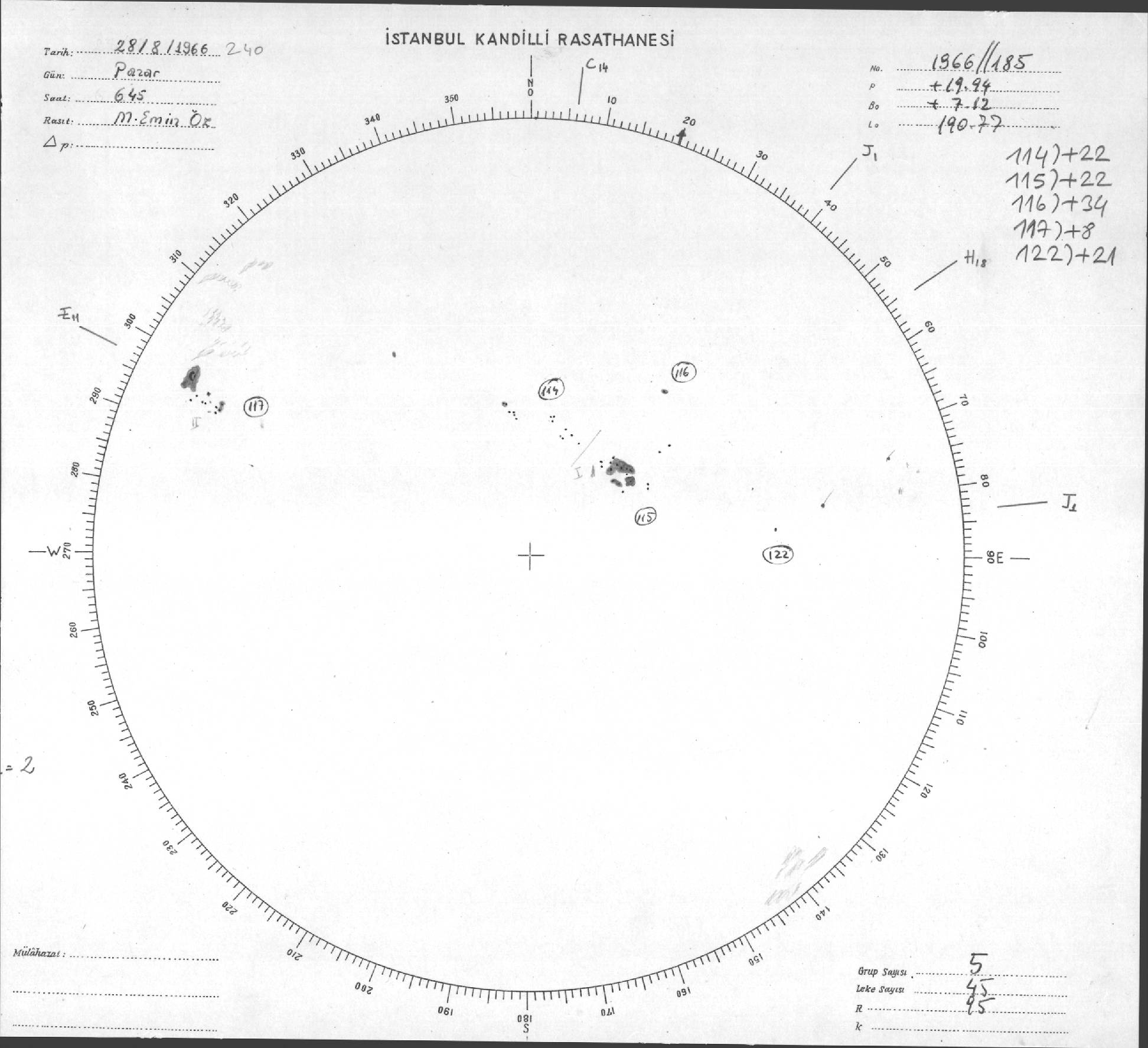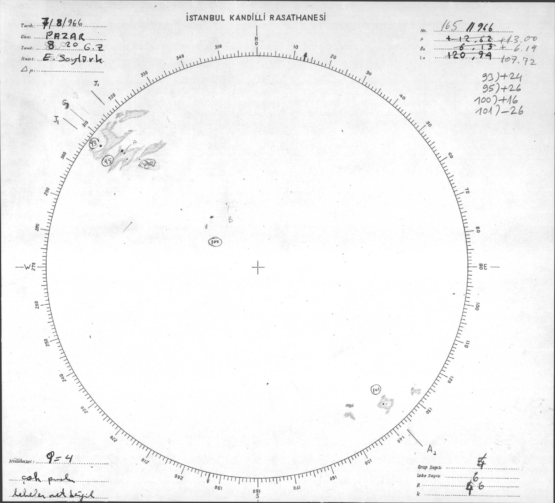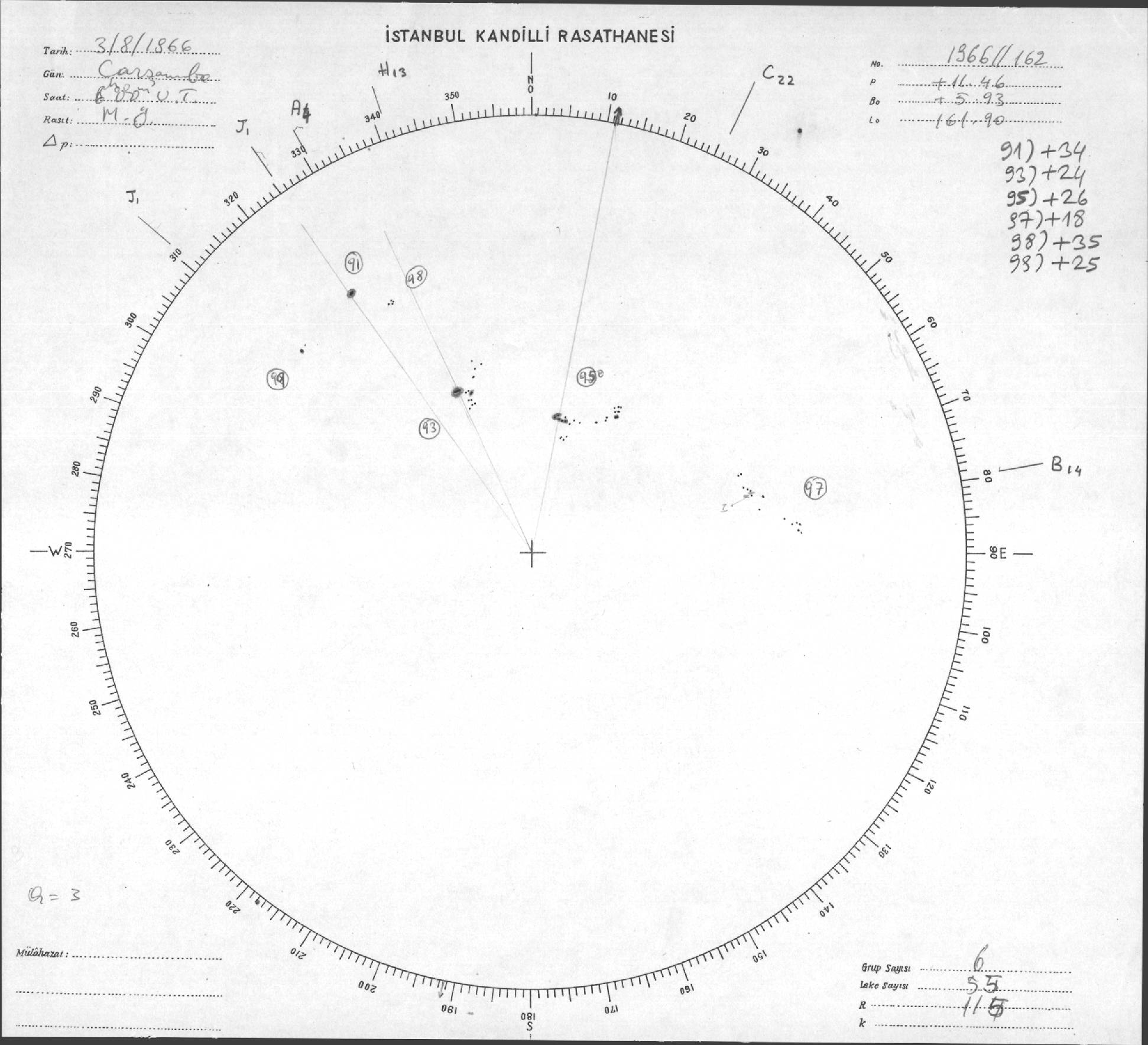 Güneş Lekesi Çizimleri / Kandilli Sunspot Drawings