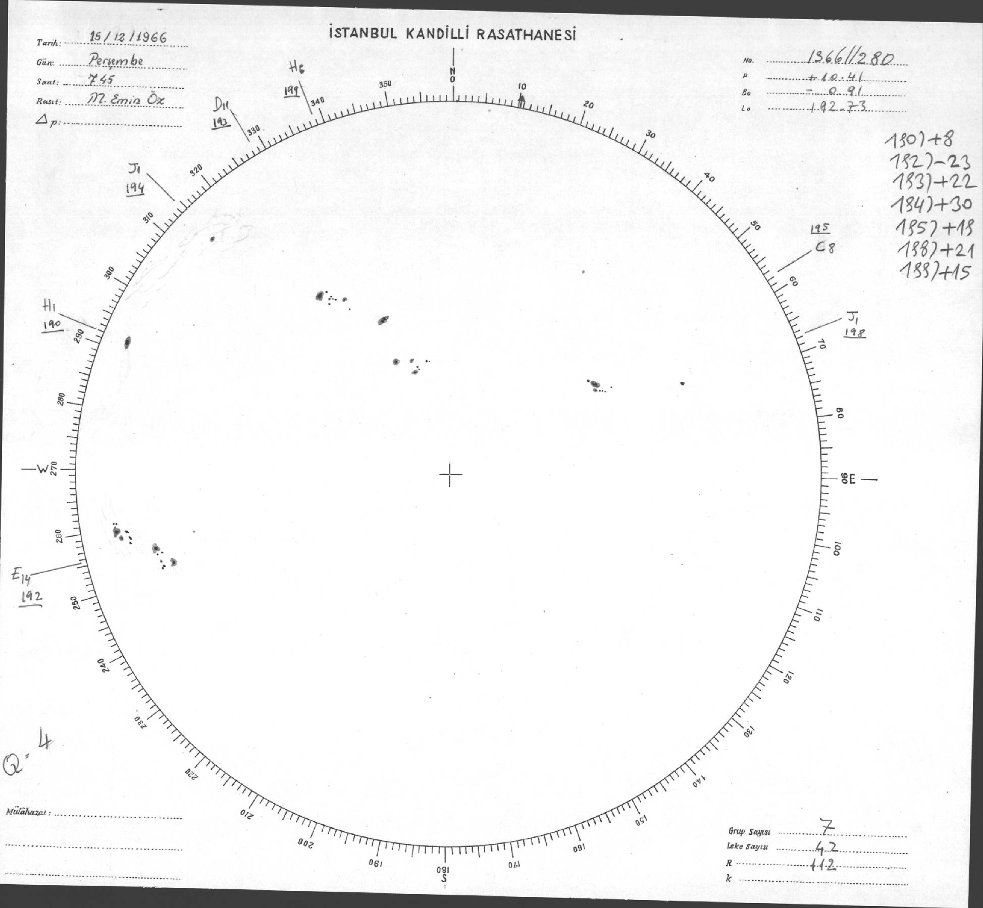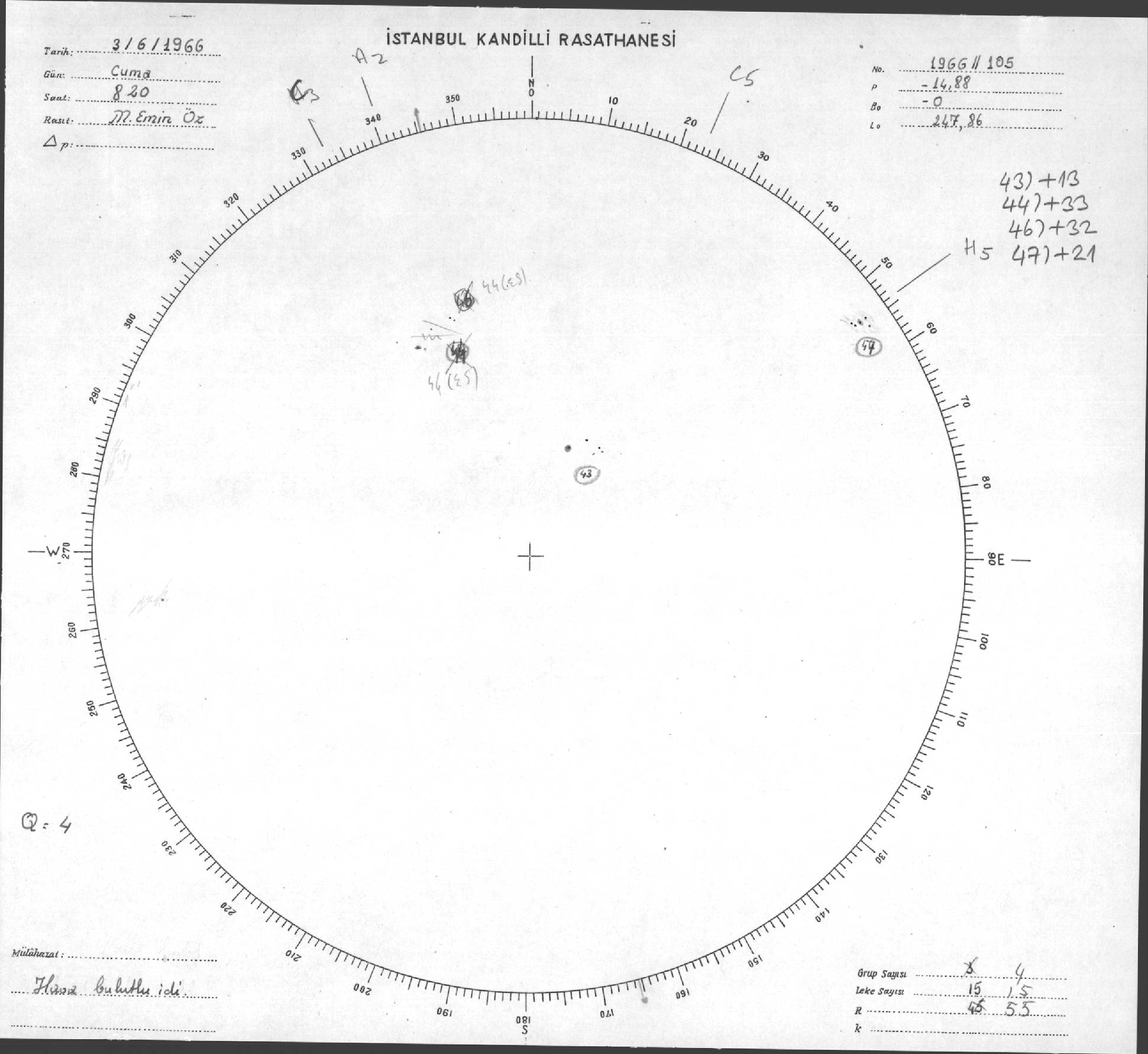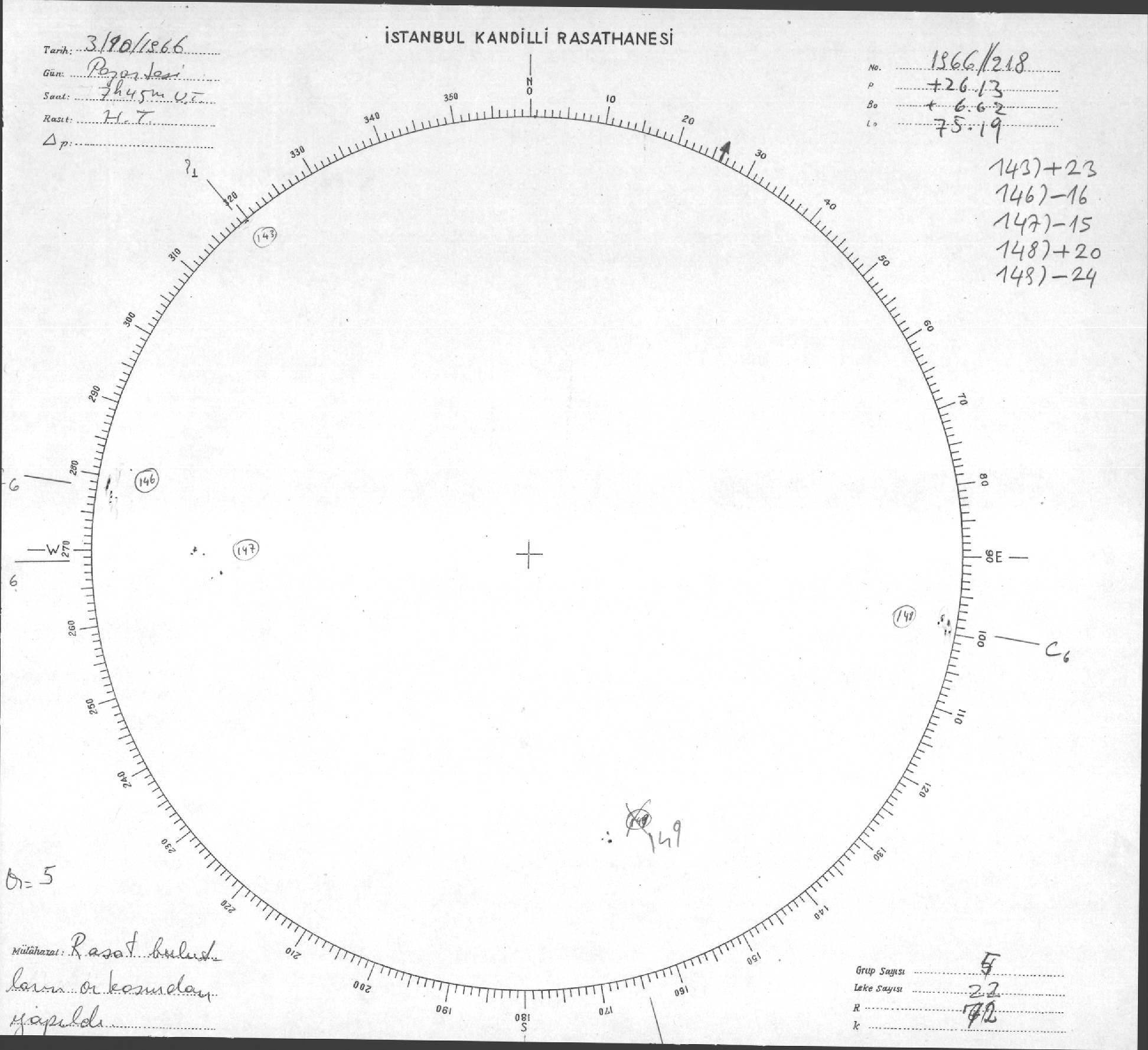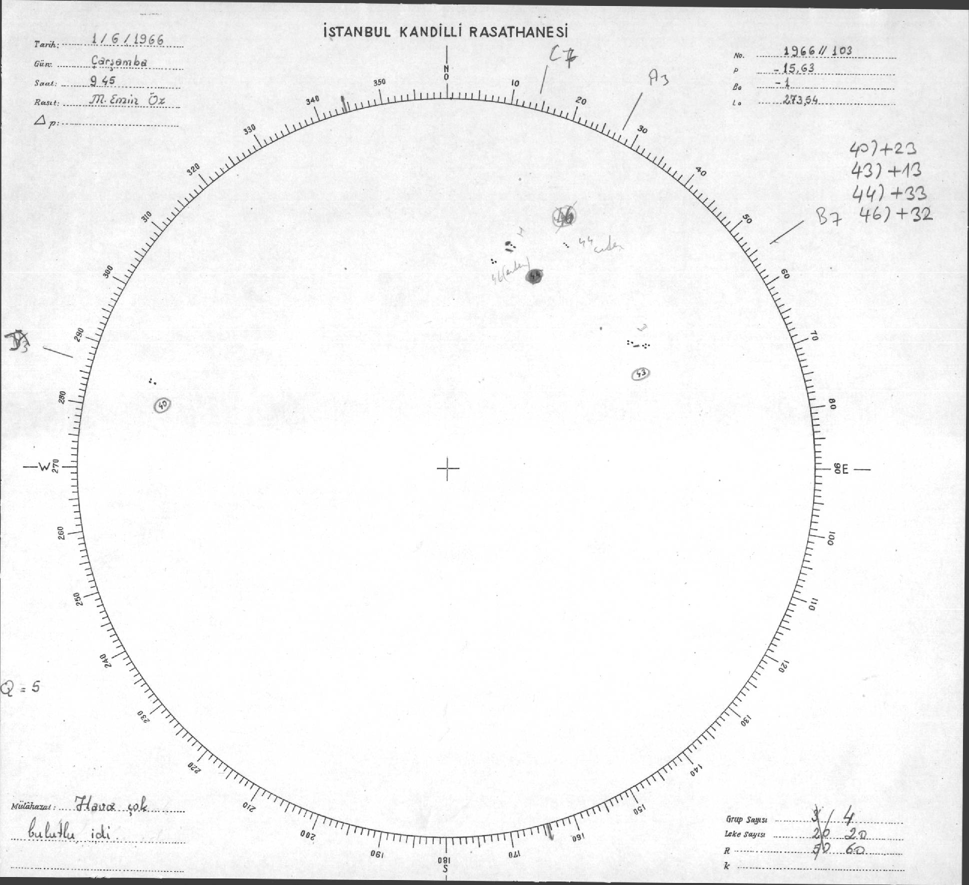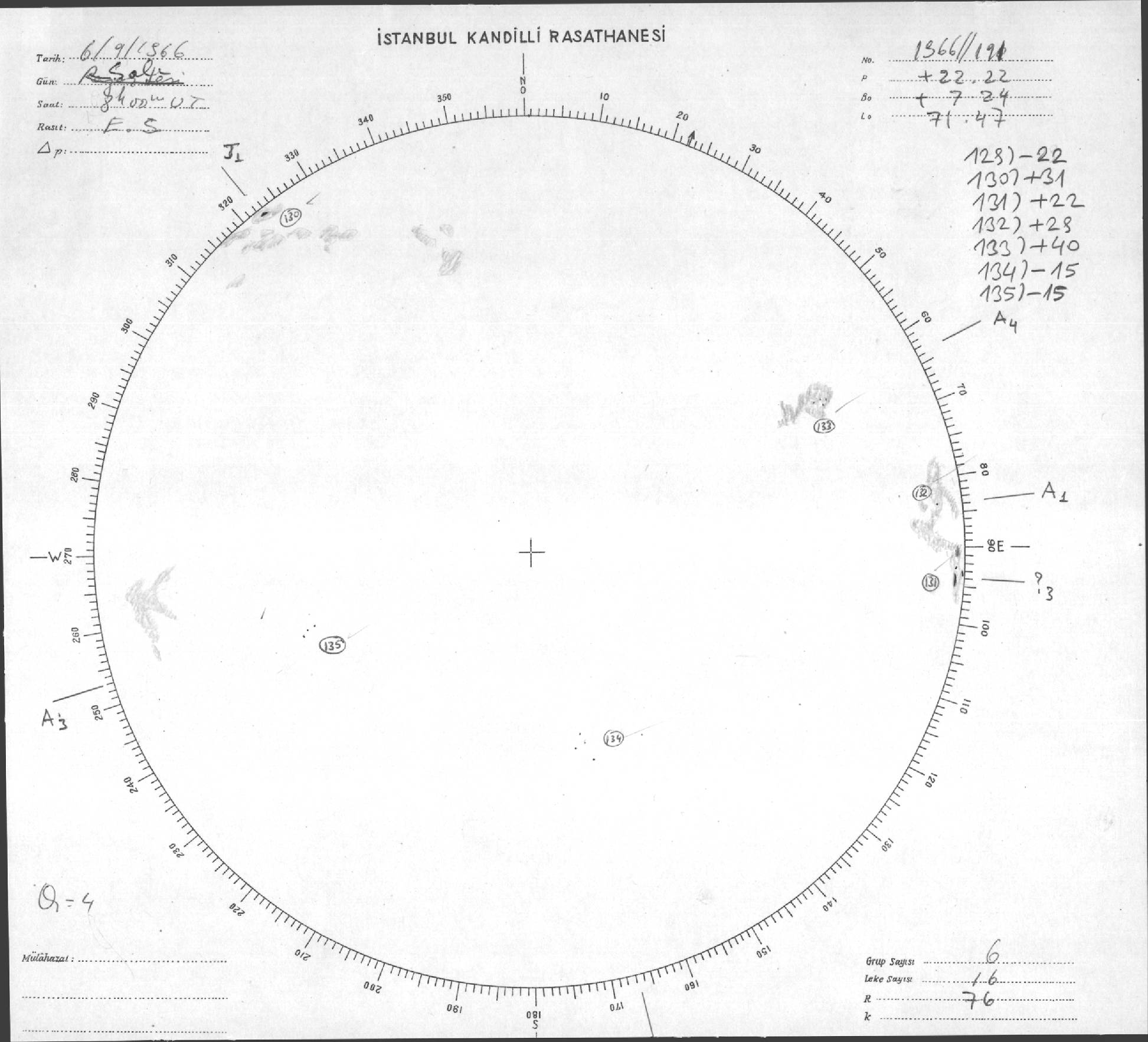 Güneş Lekesi Çizimleri / Kandilli Sunspot Drawings