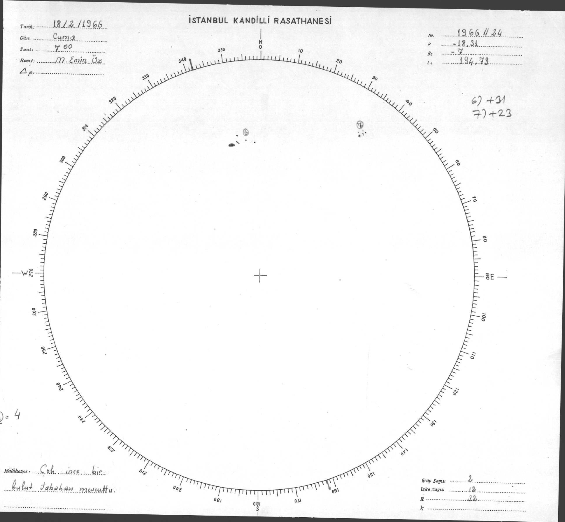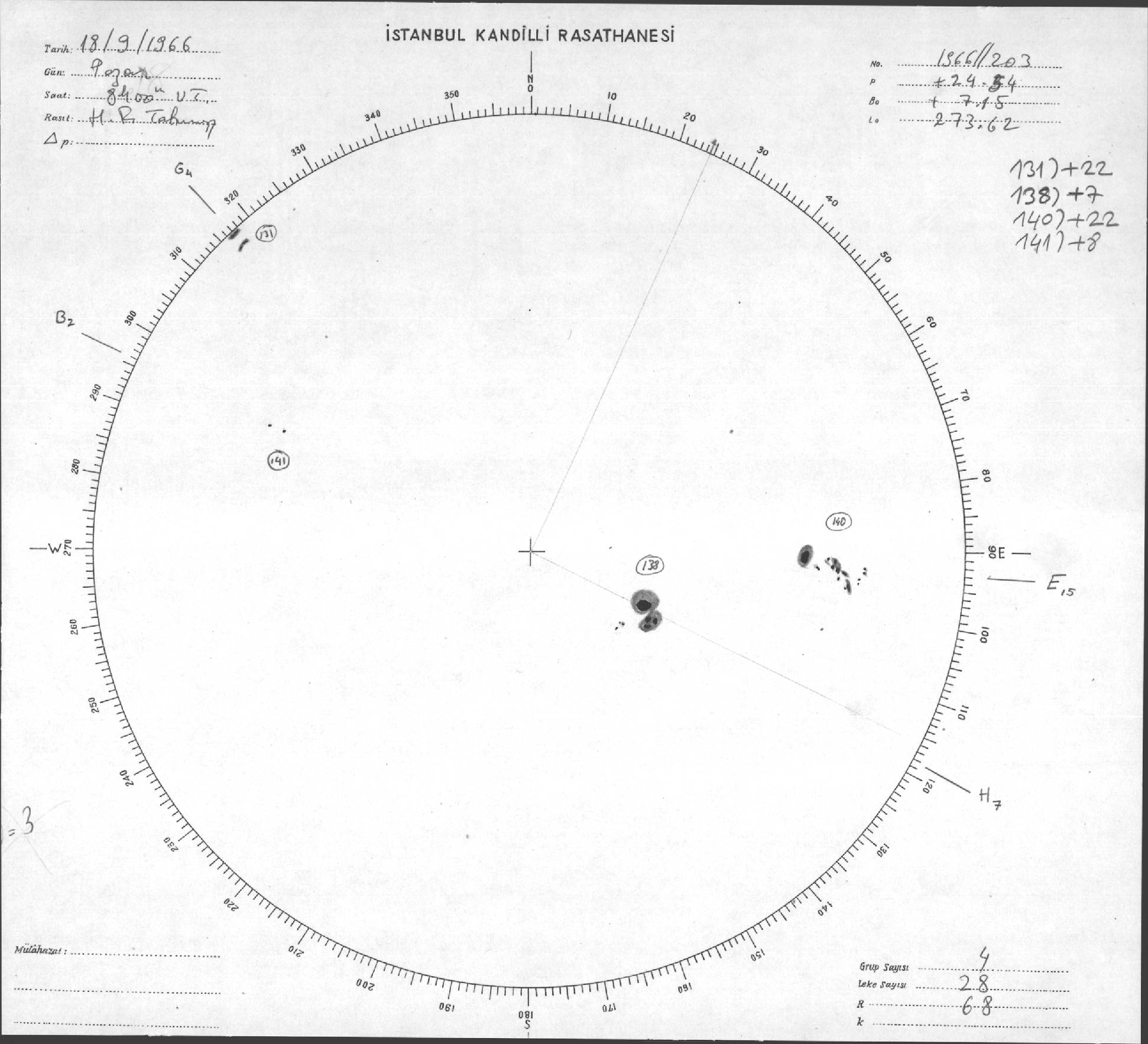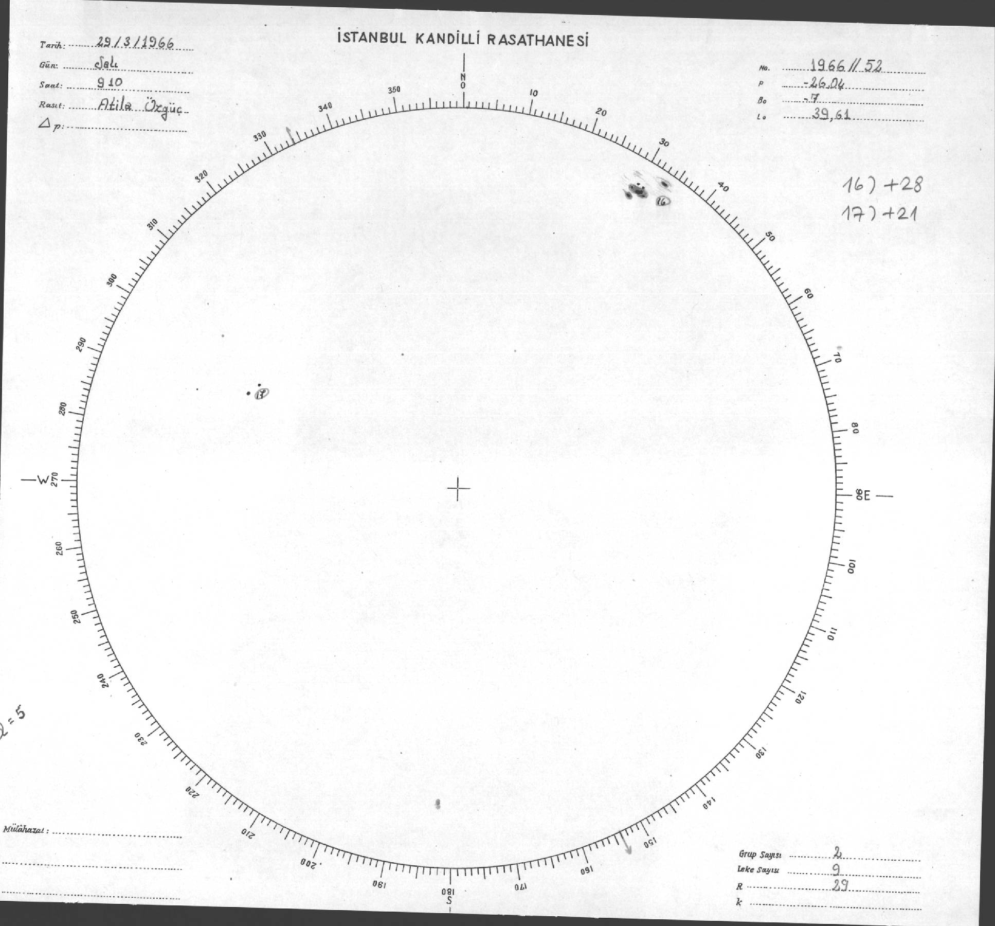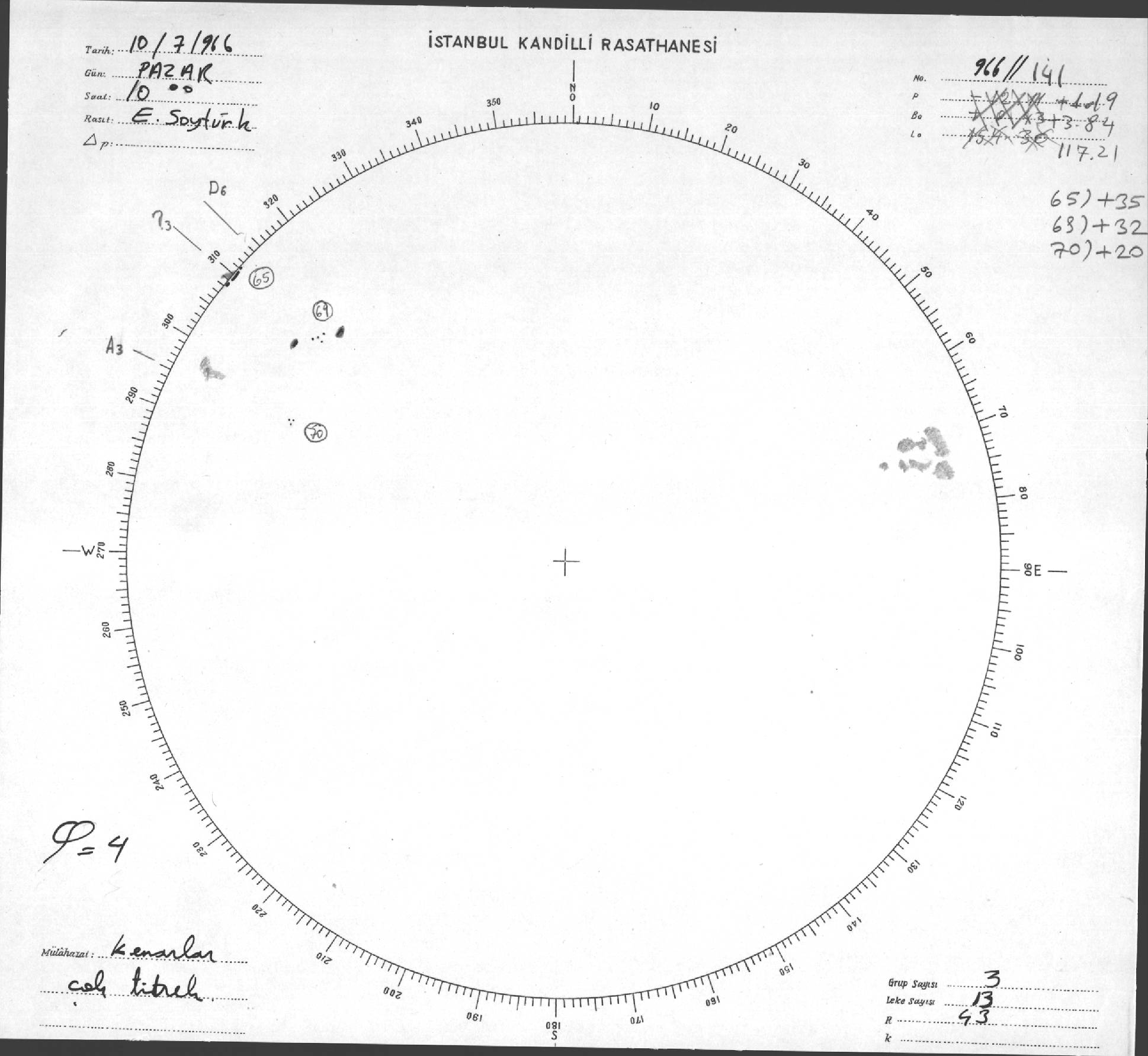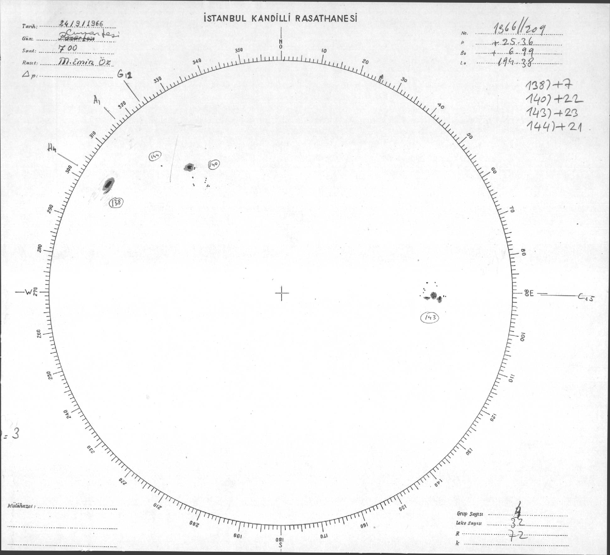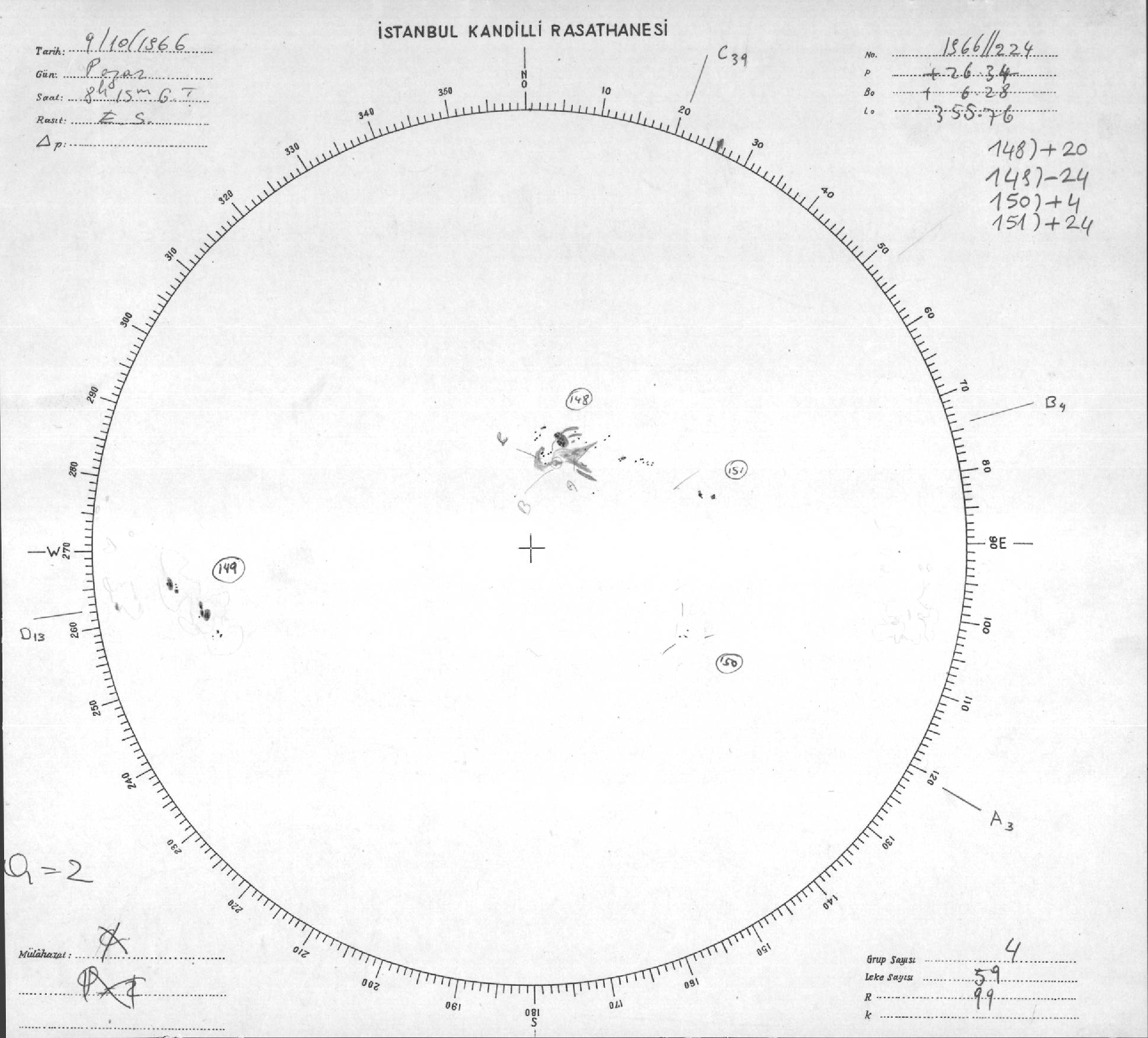 Güneş Lekesi Çizimleri / Kandilli Sunspot Drawings