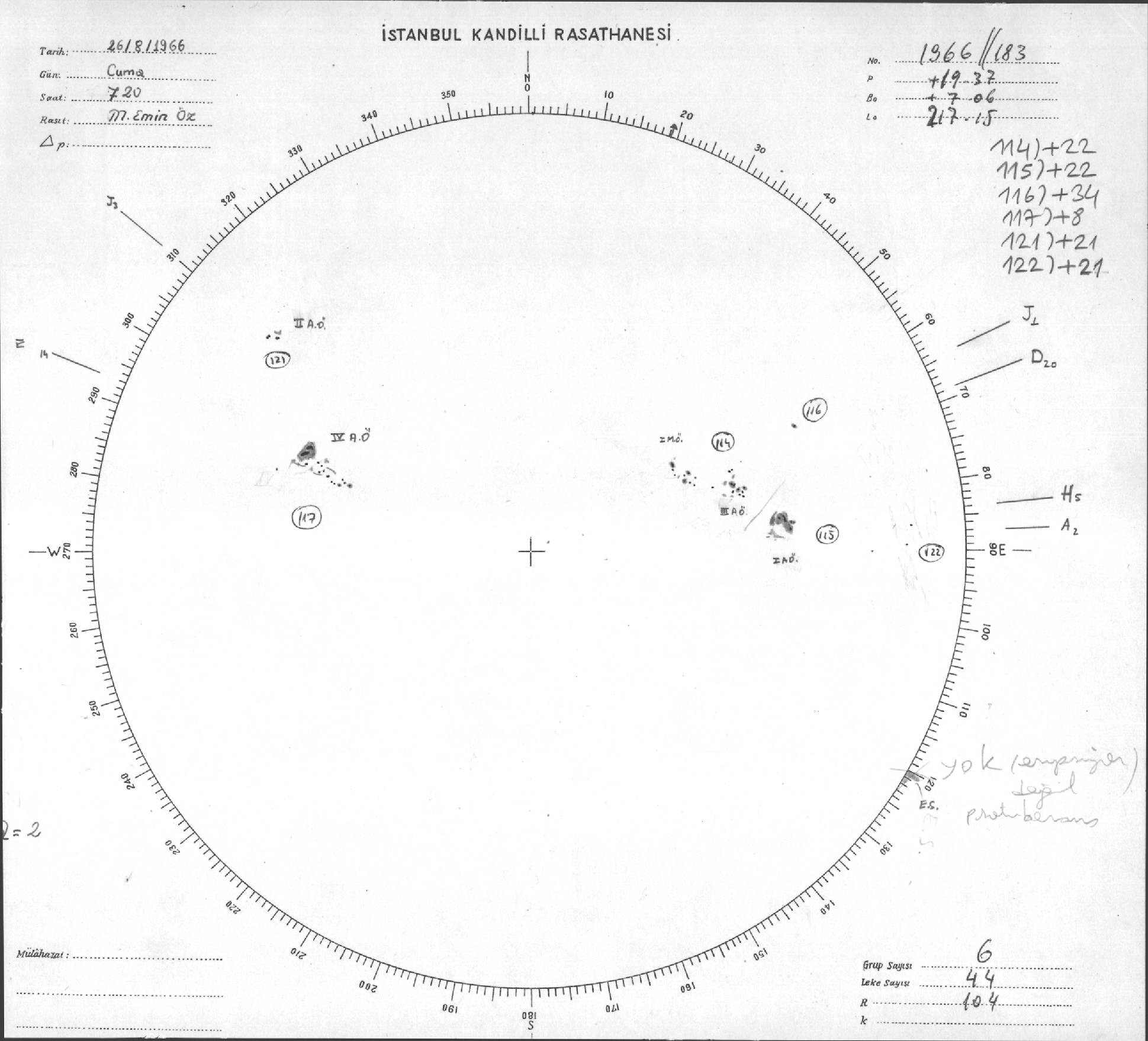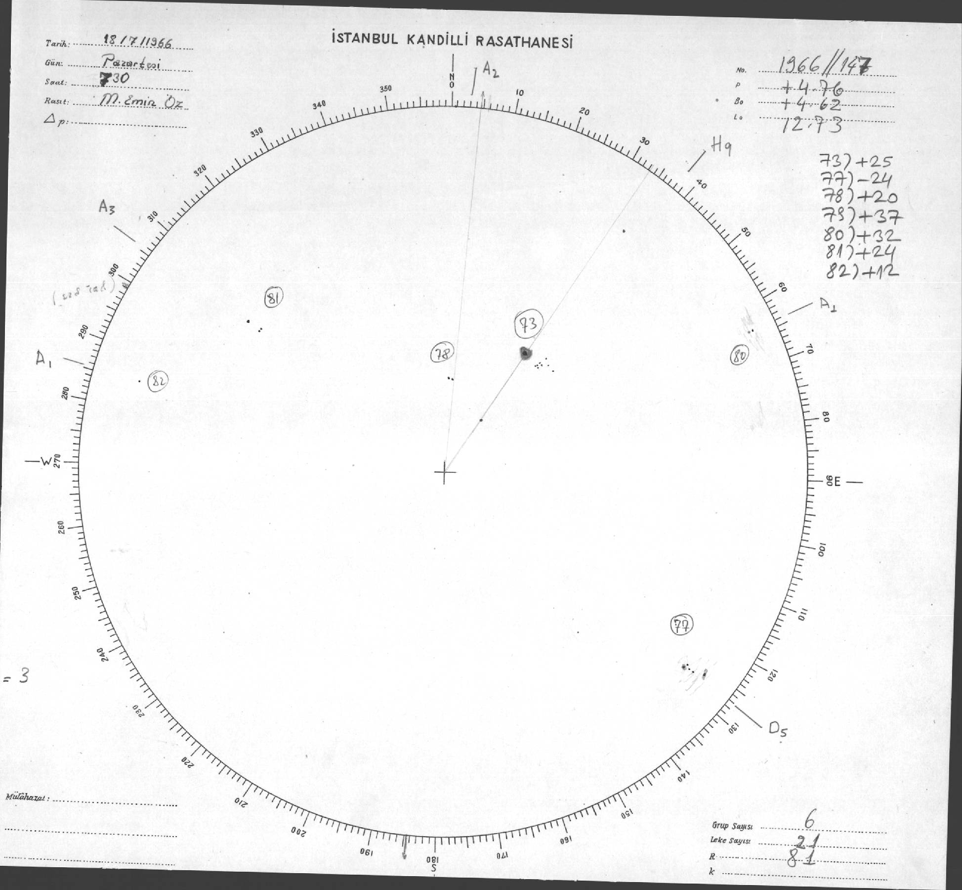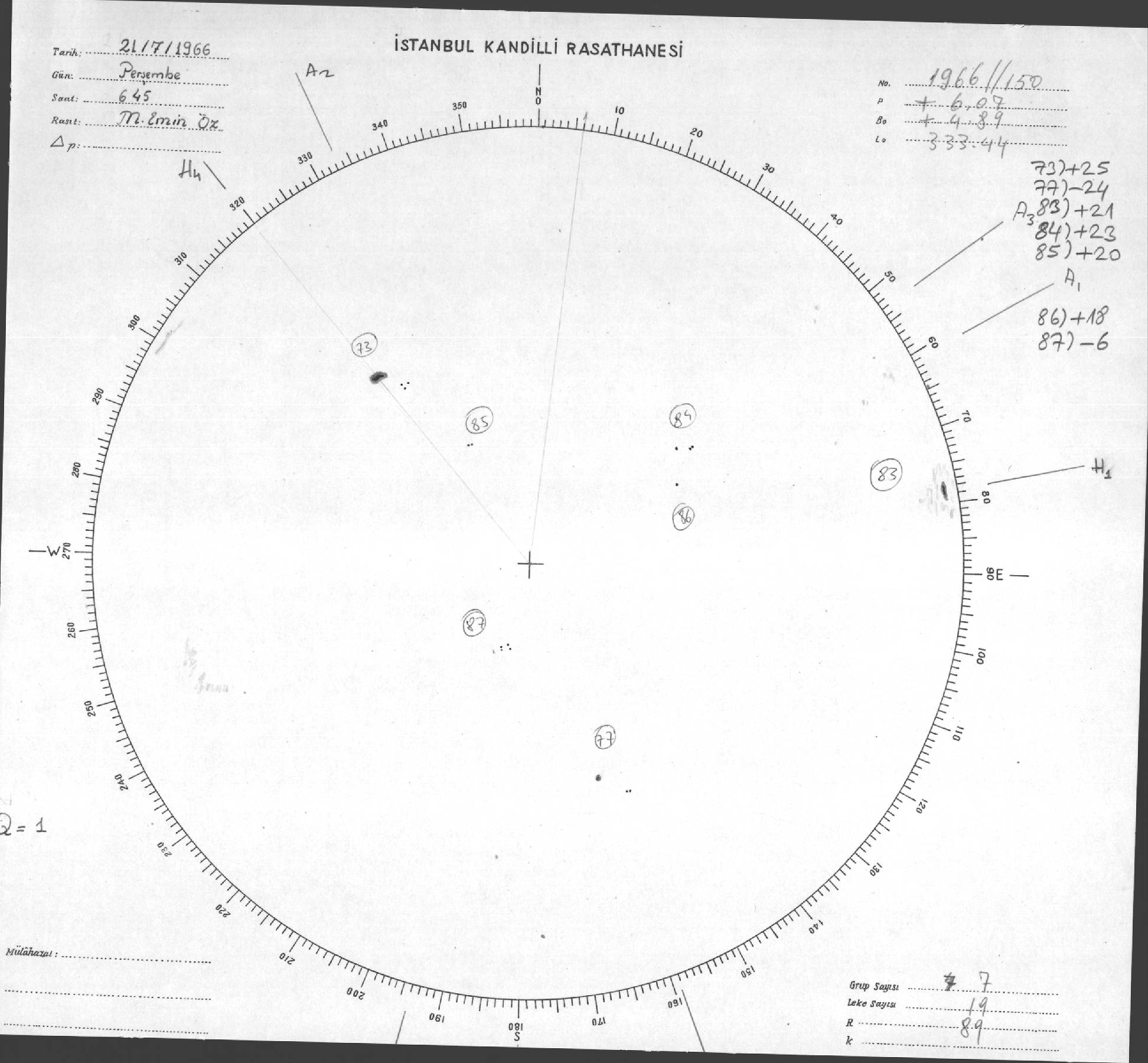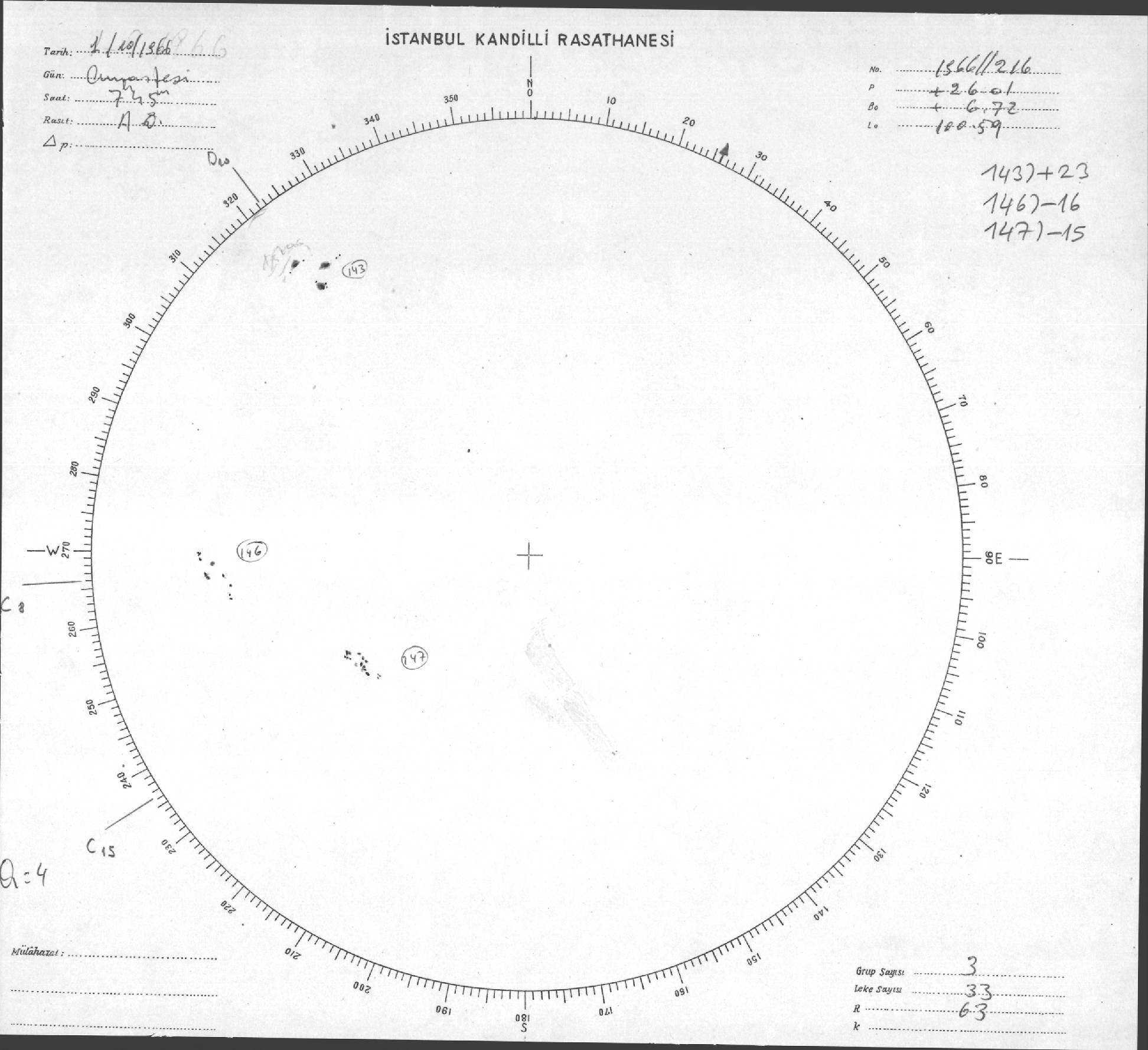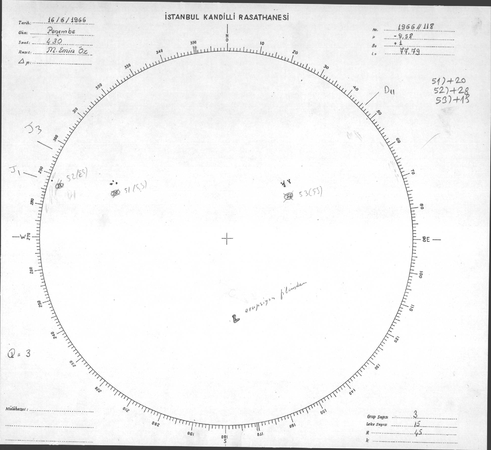 Güneş Lekesi Çizimleri / Kandilli Sunspot Drawings