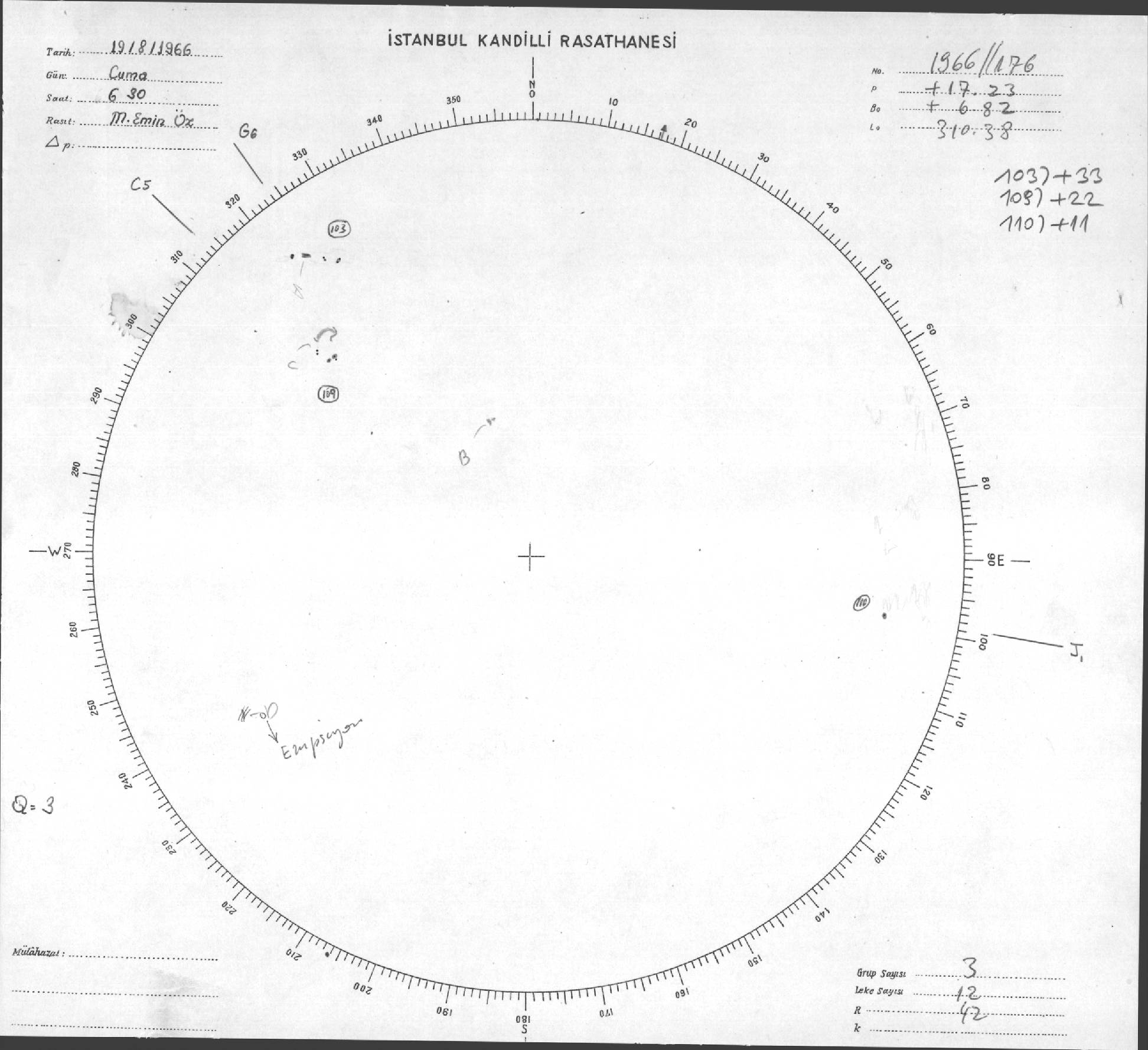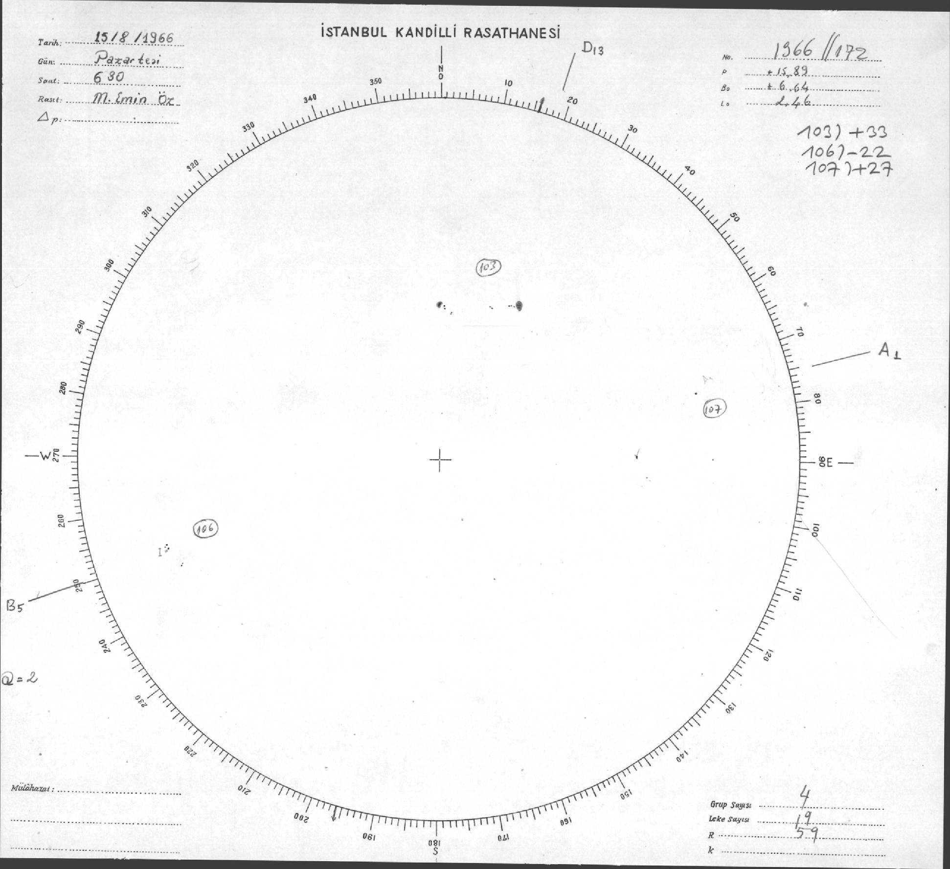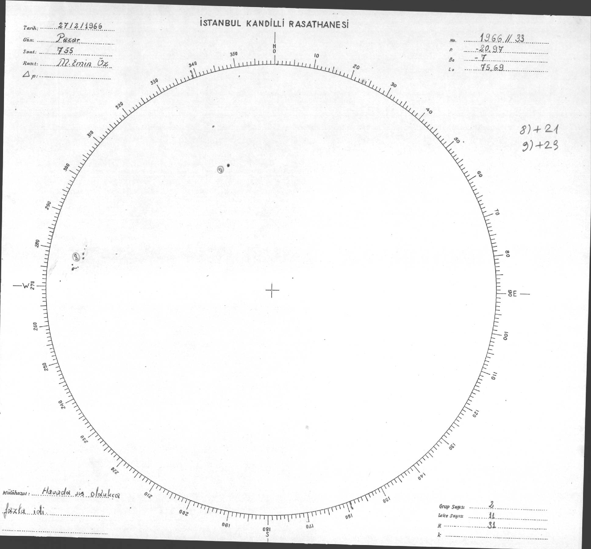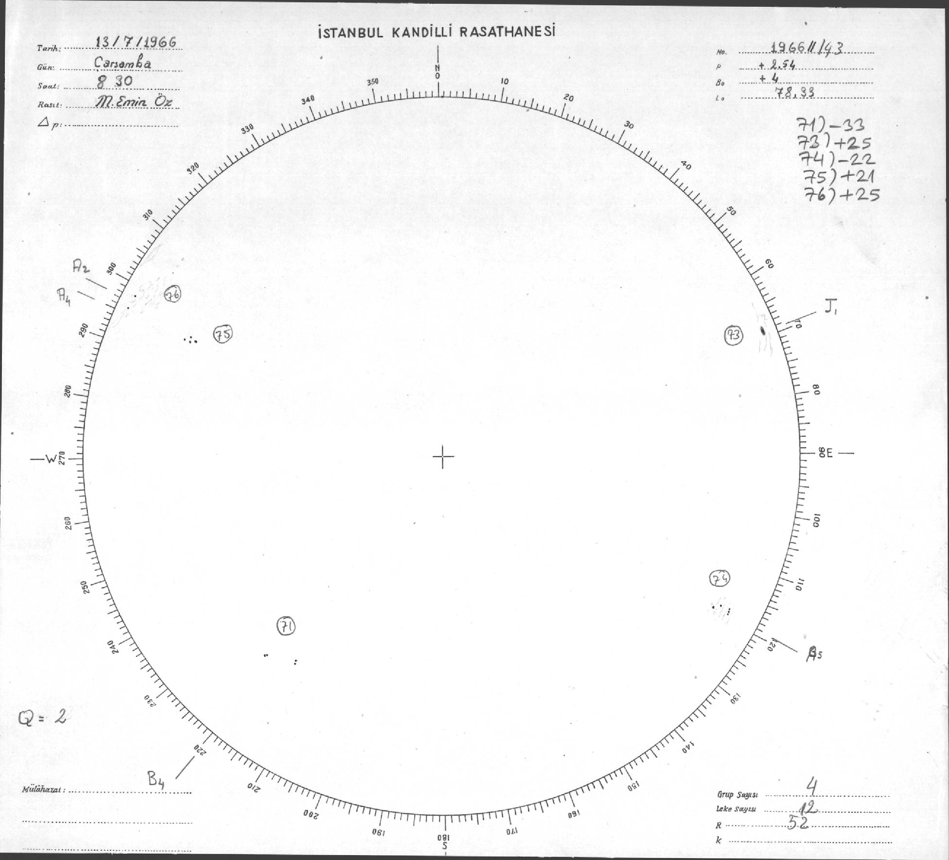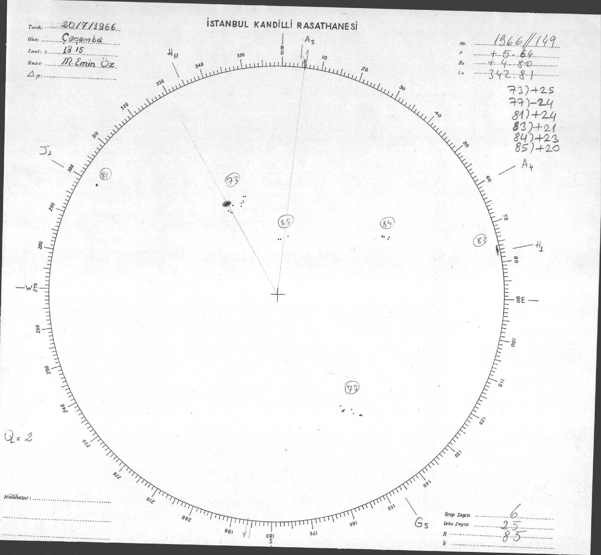 Güneş Lekesi Çizimleri / Kandilli Sunspot Drawings