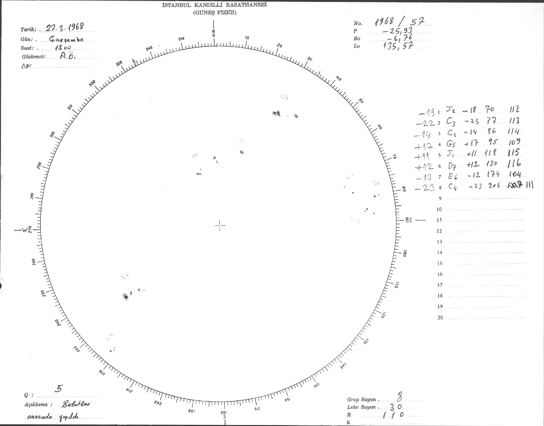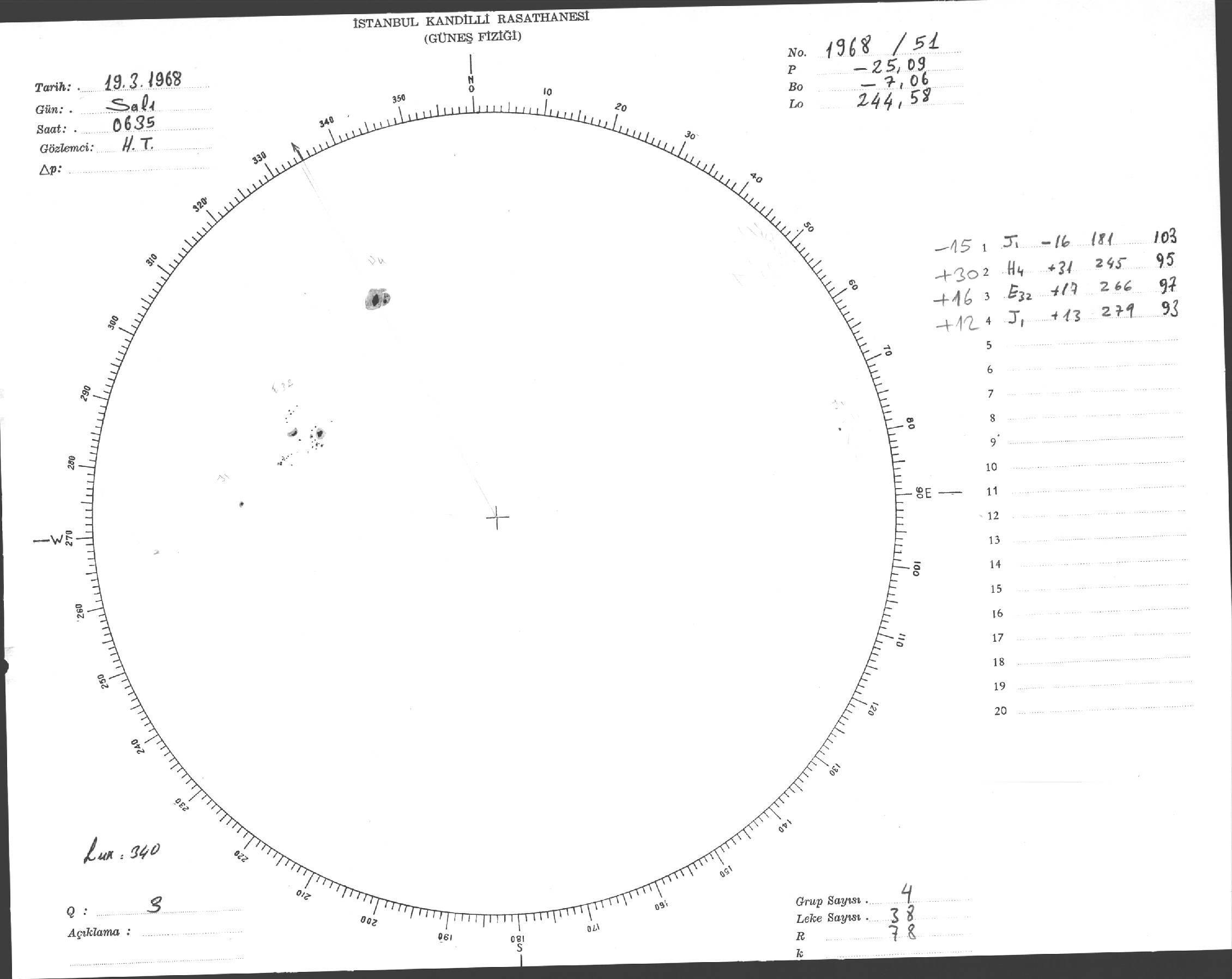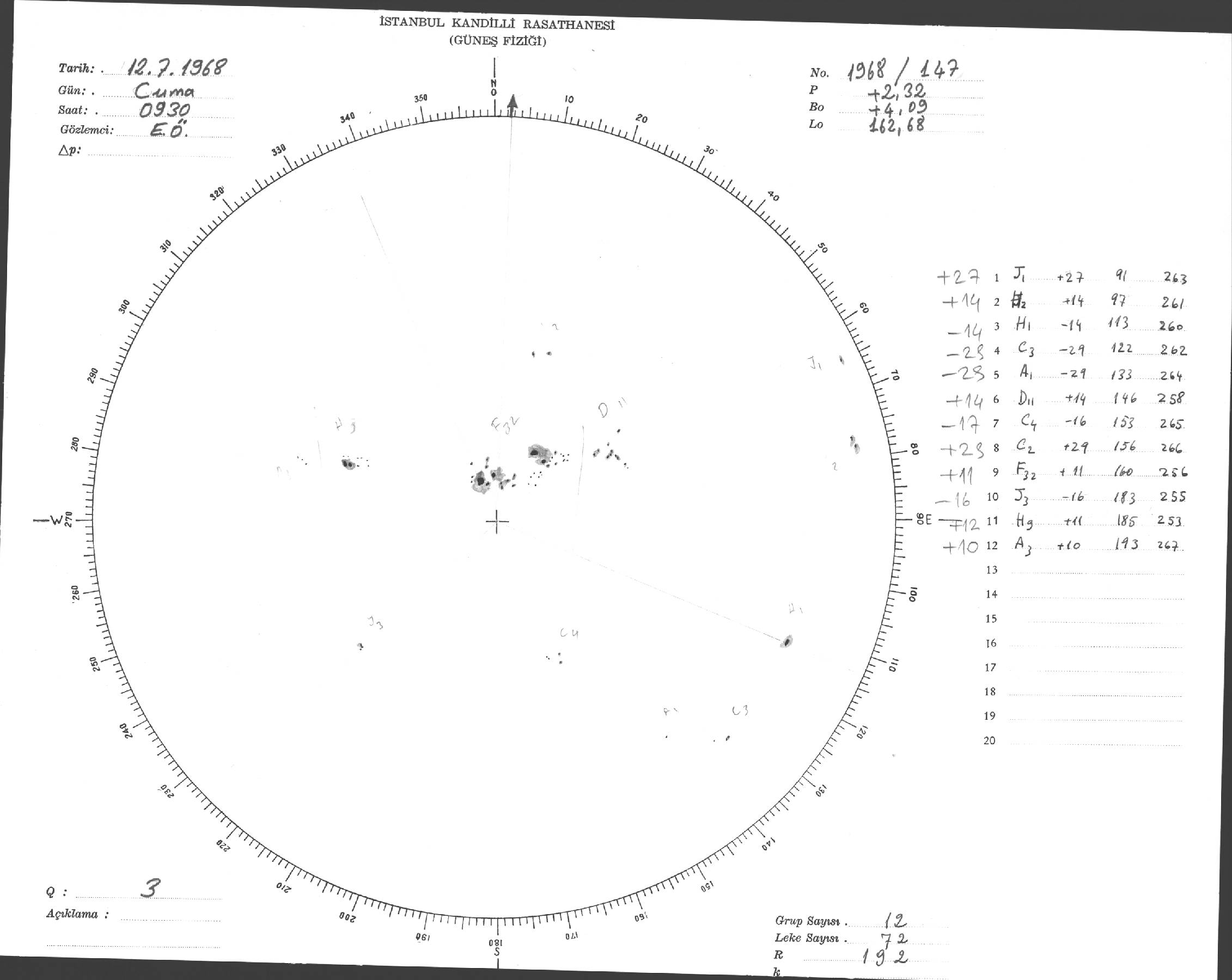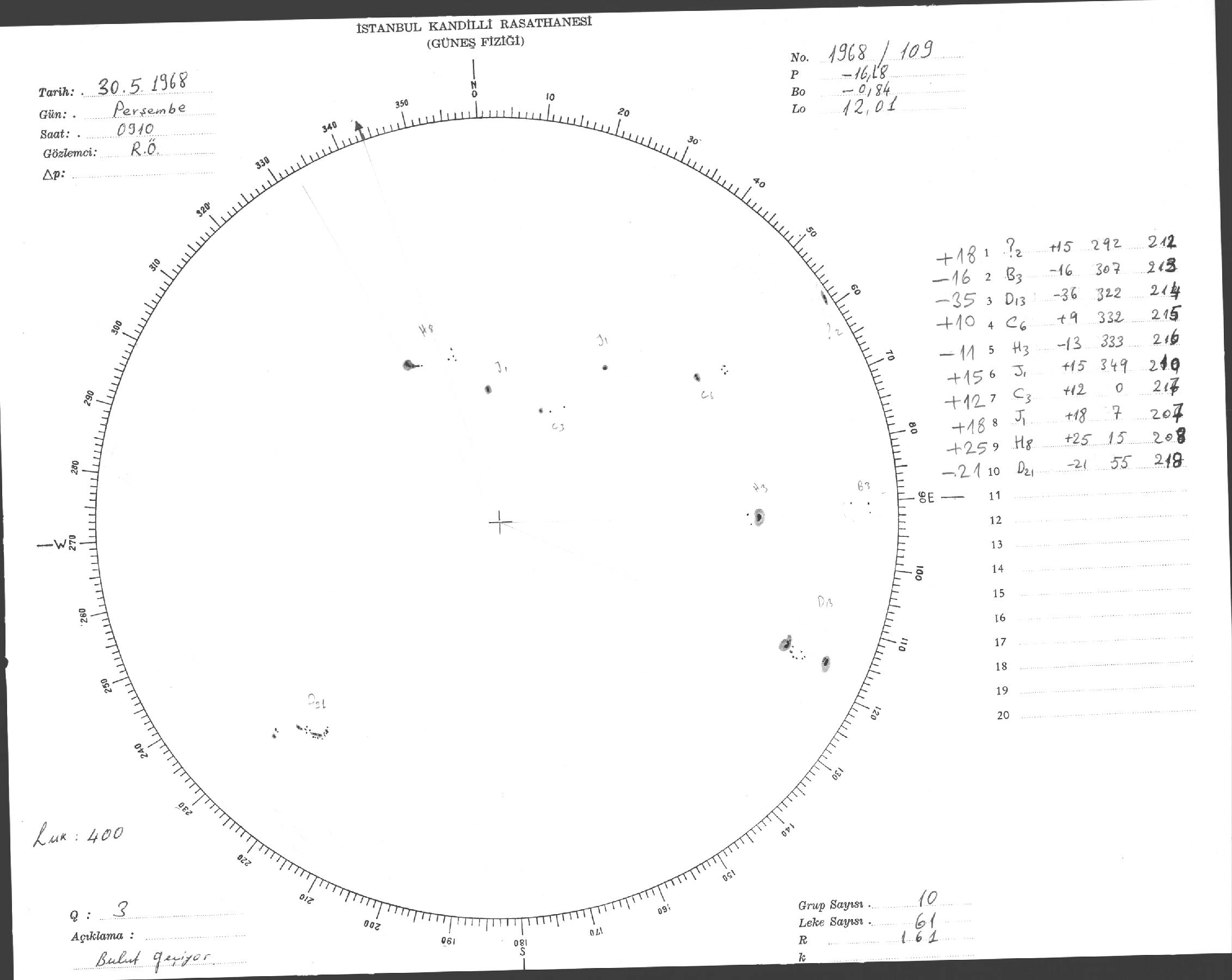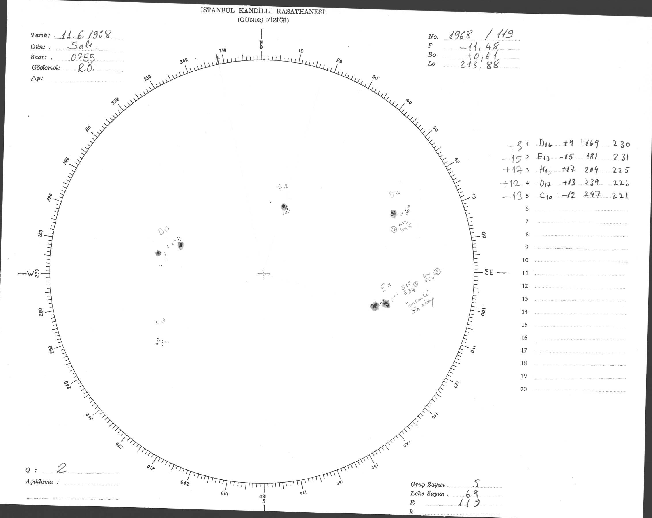 Güneş Lekesi Çizimleri / Kandilli Sunspot Drawings