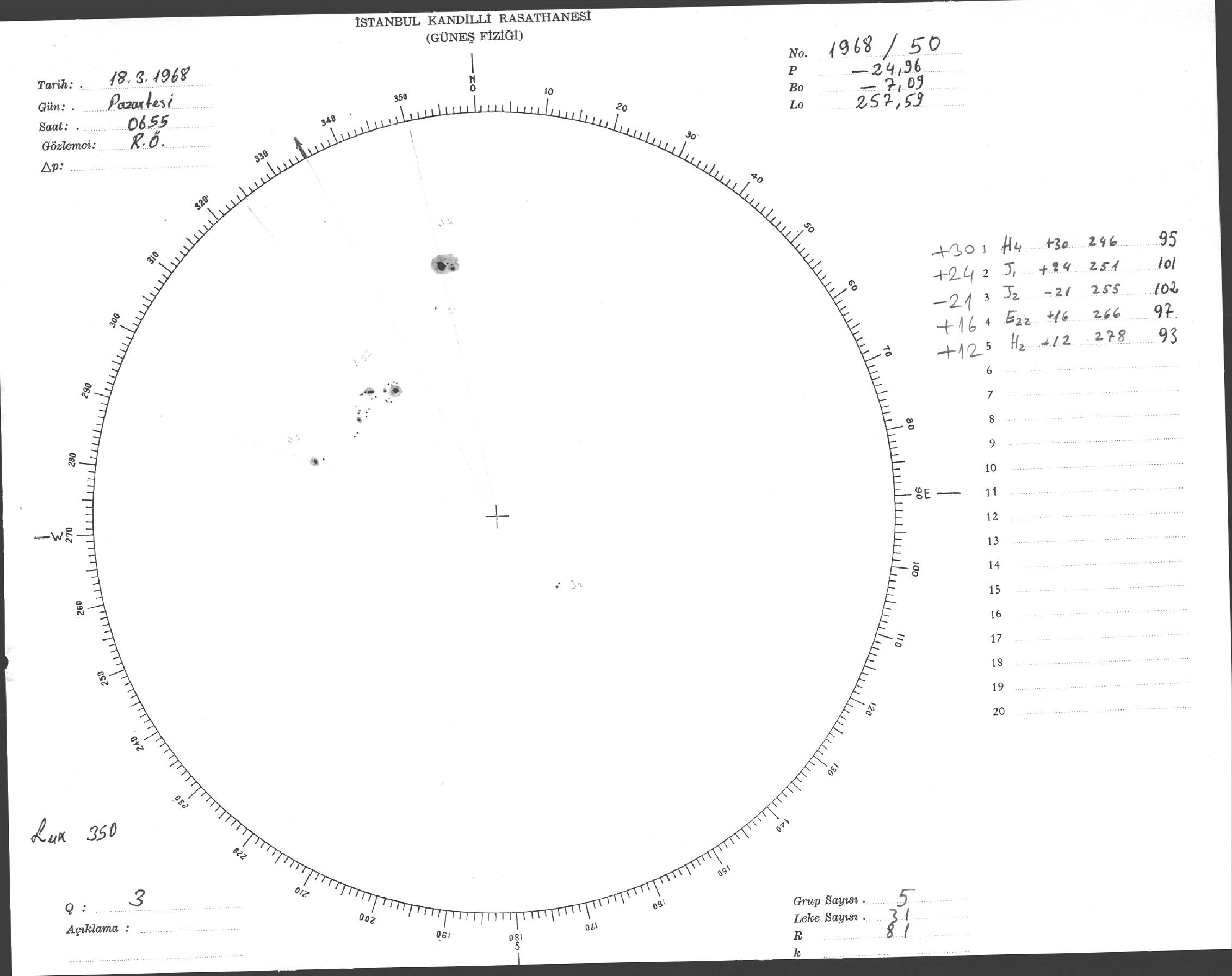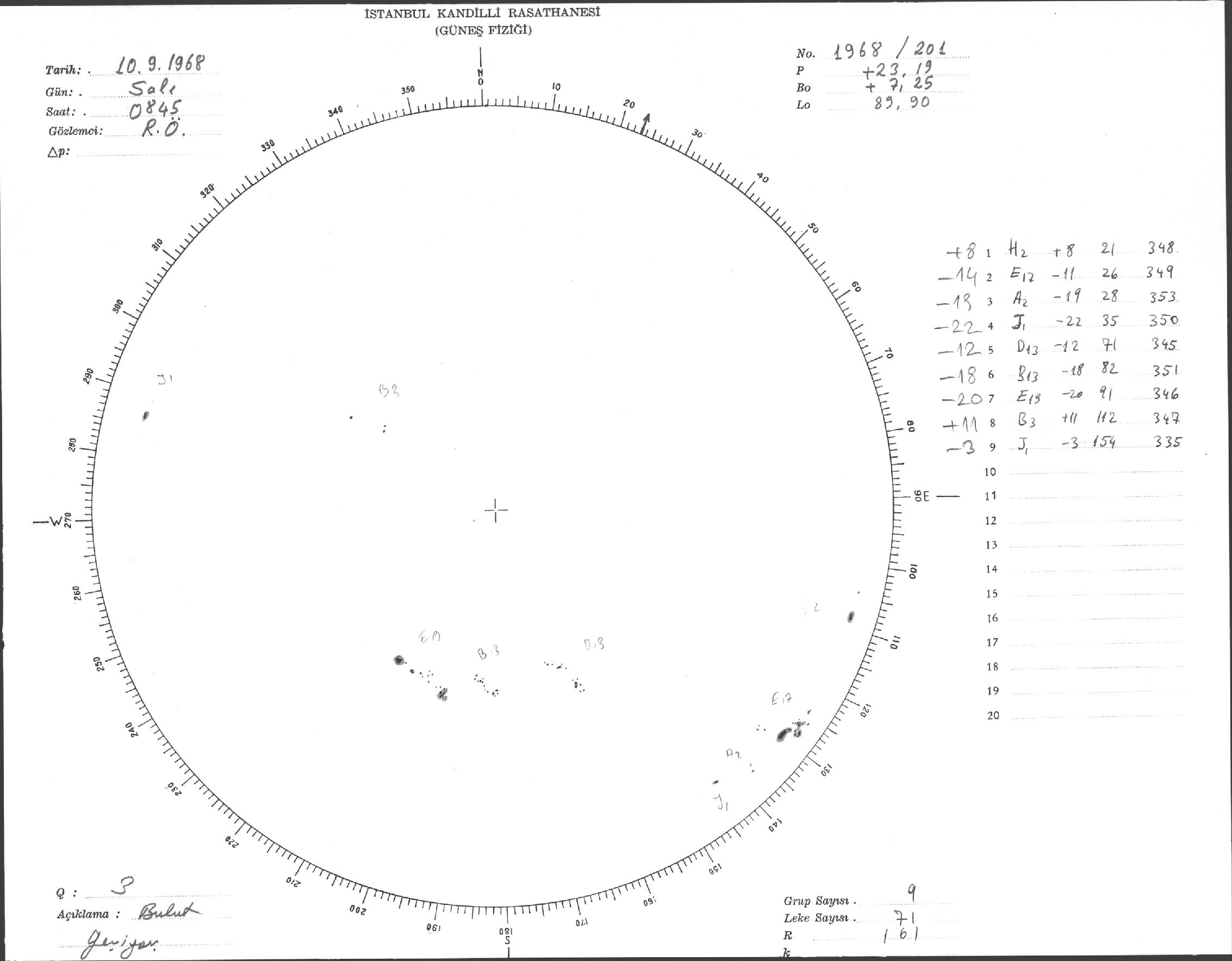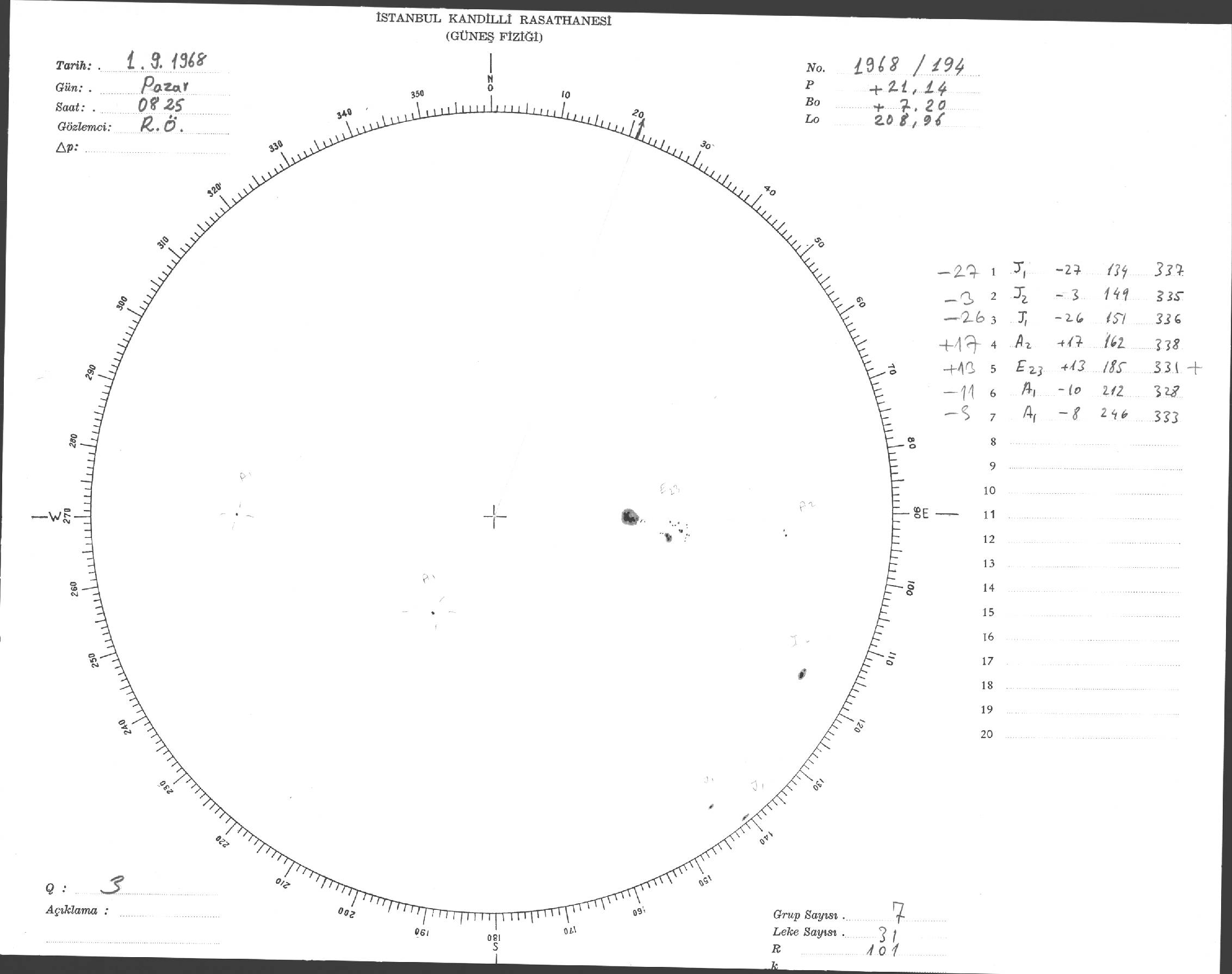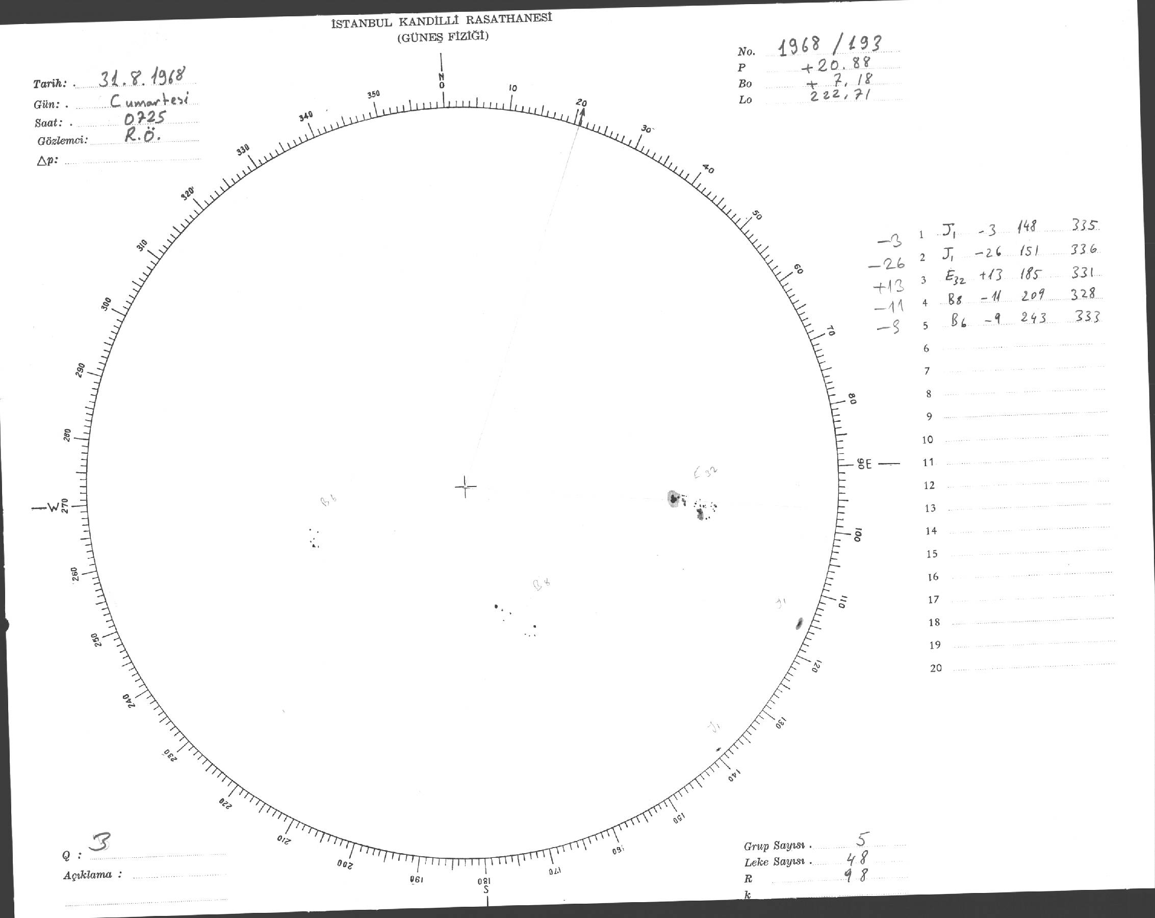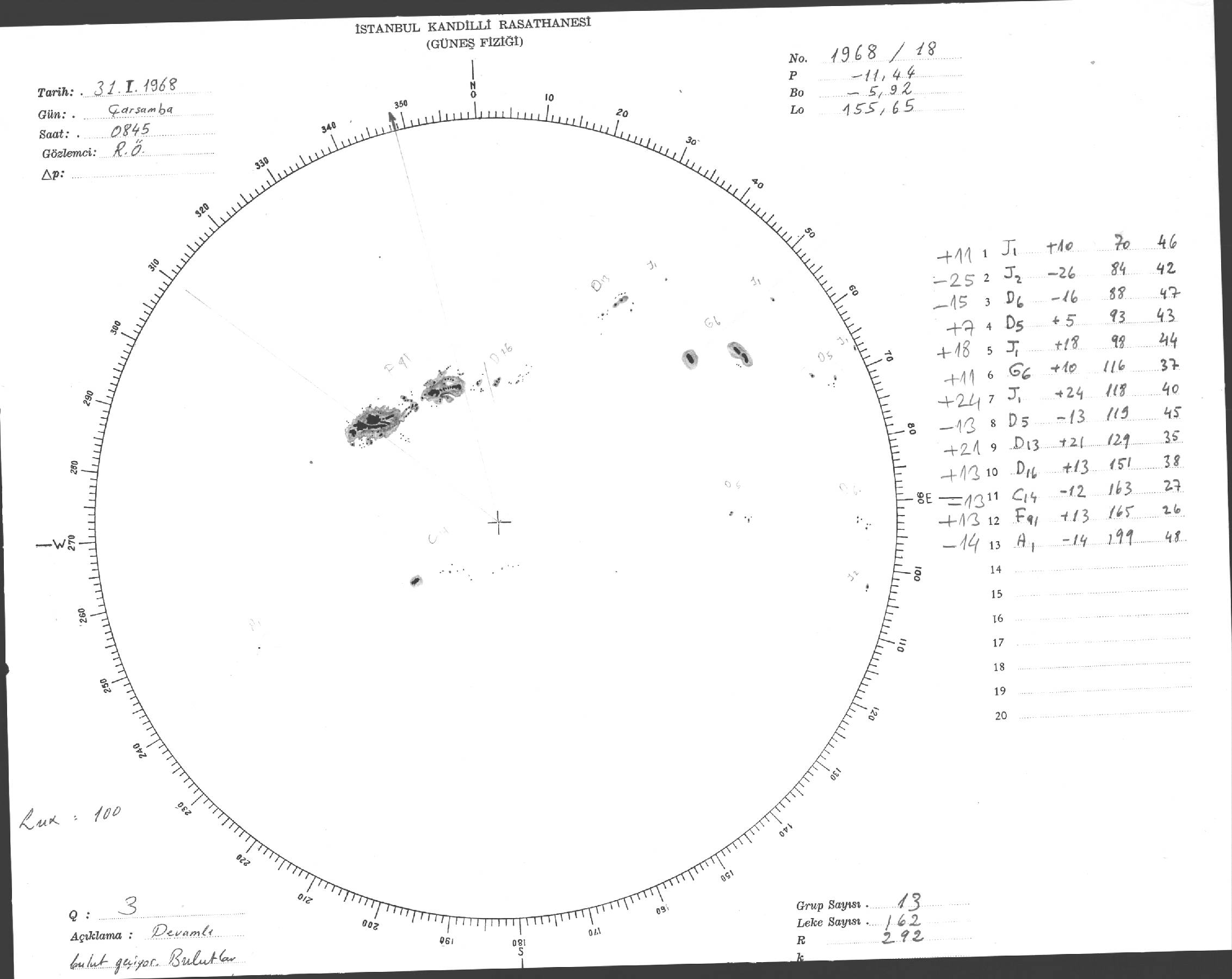 Güneş Lekesi Çizimleri / Kandilli Sunspot Drawings