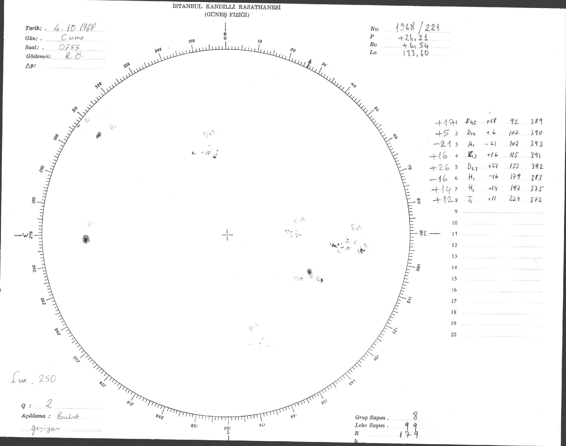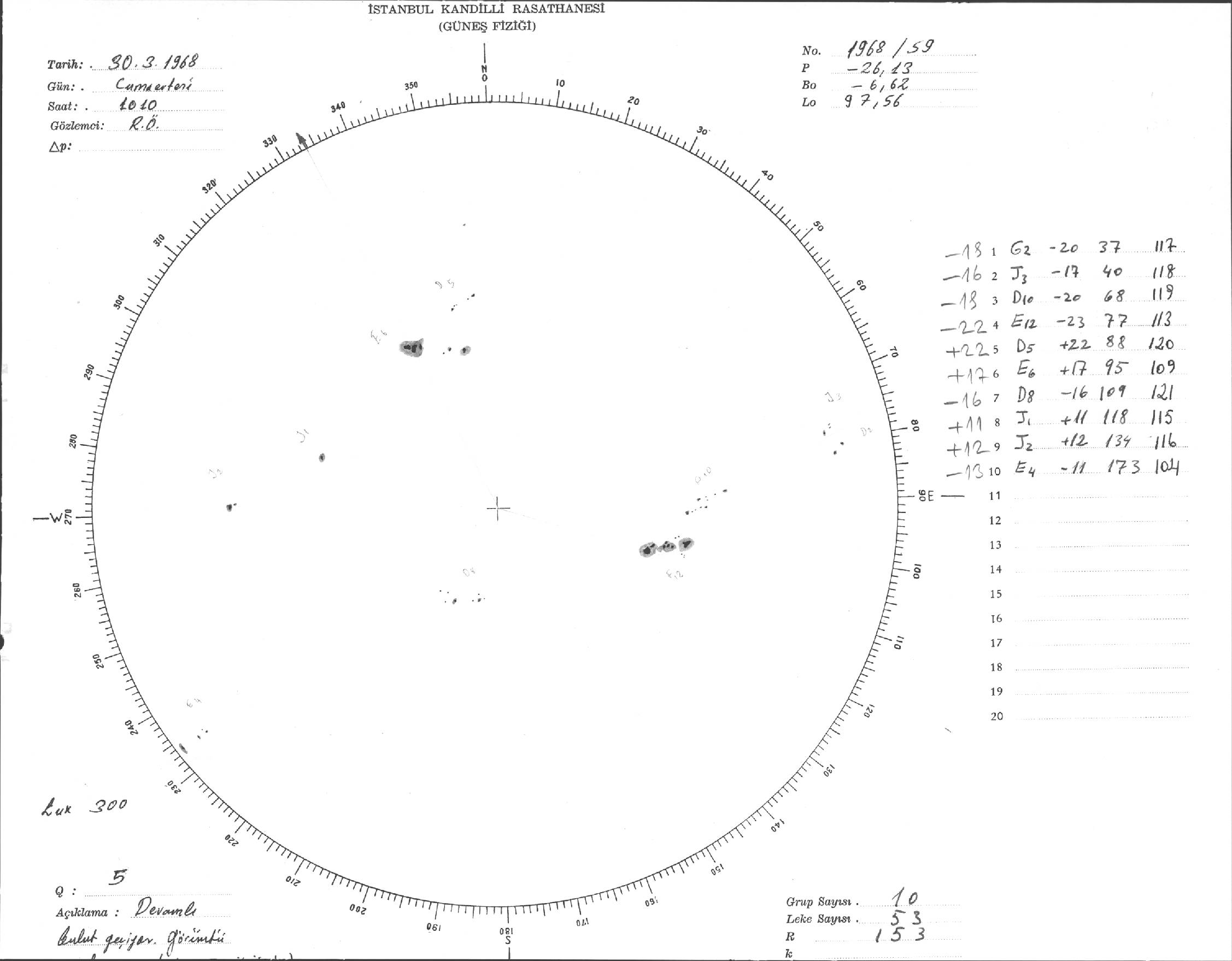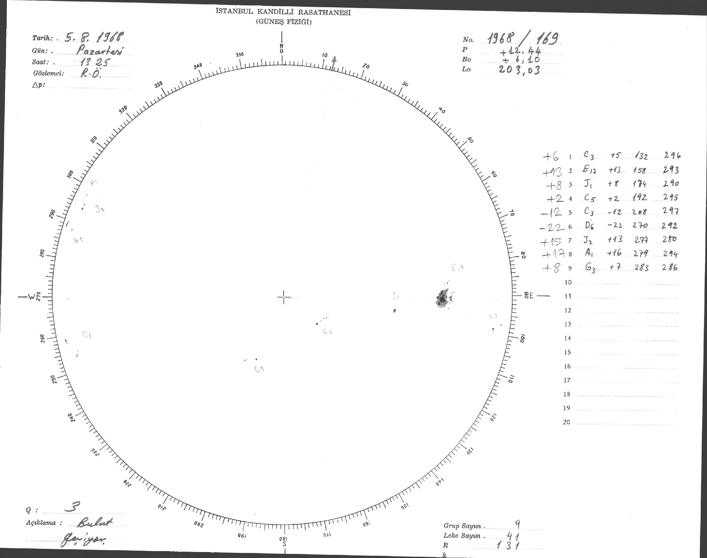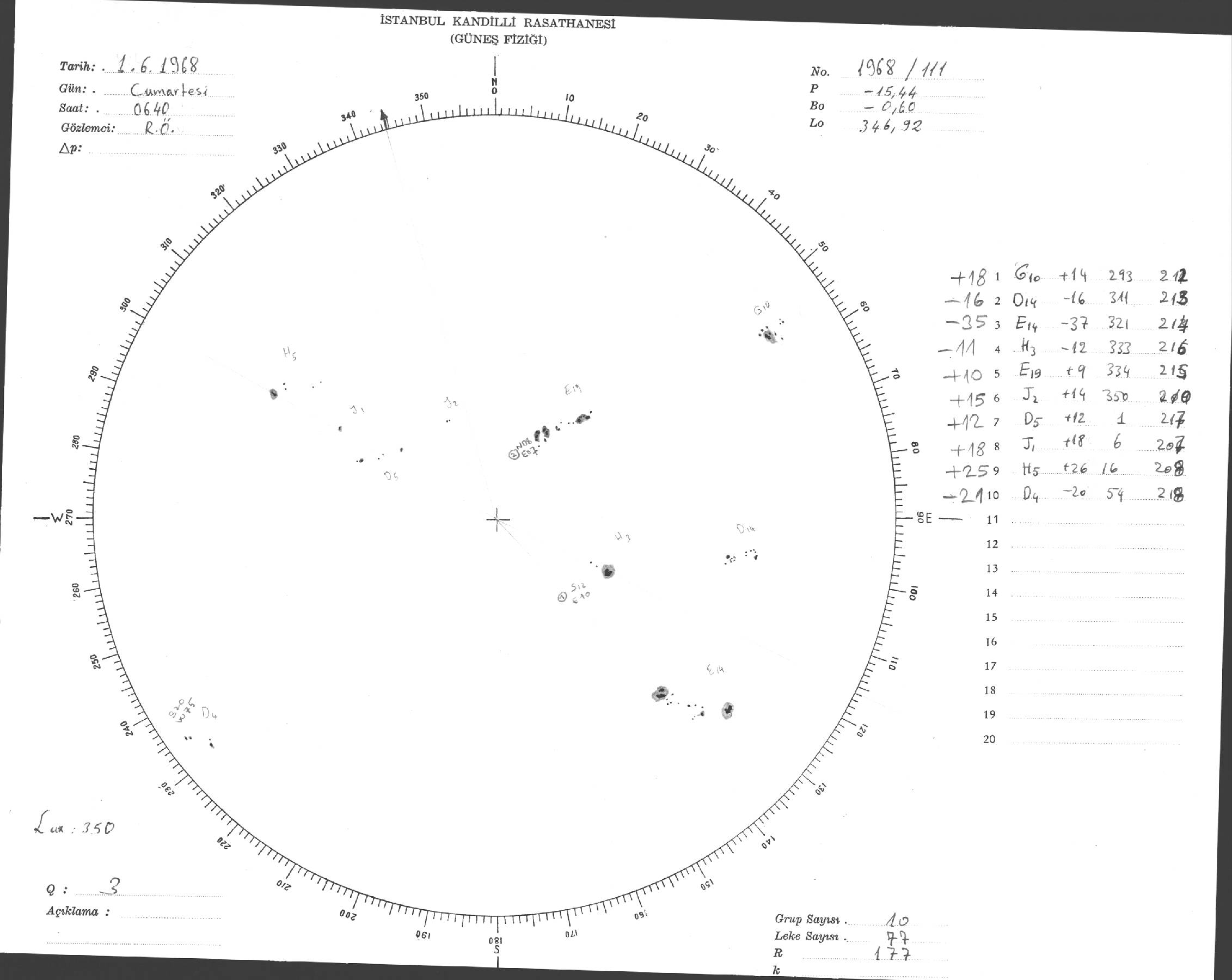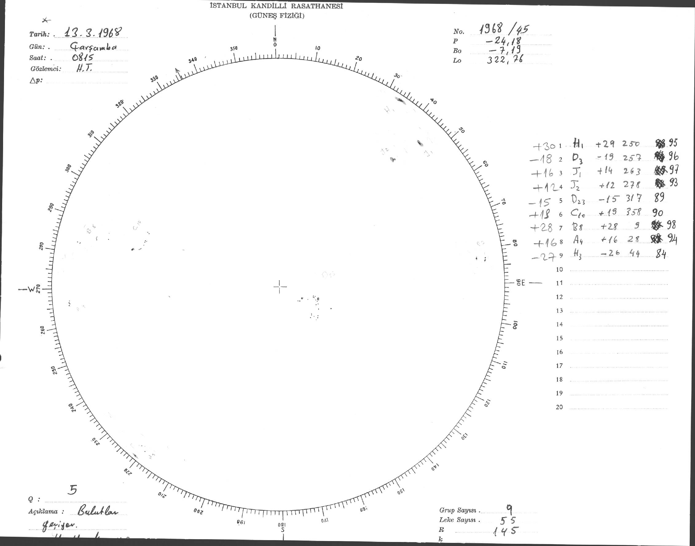 Güneş Lekesi Çizimleri / Kandilli Sunspot Drawings