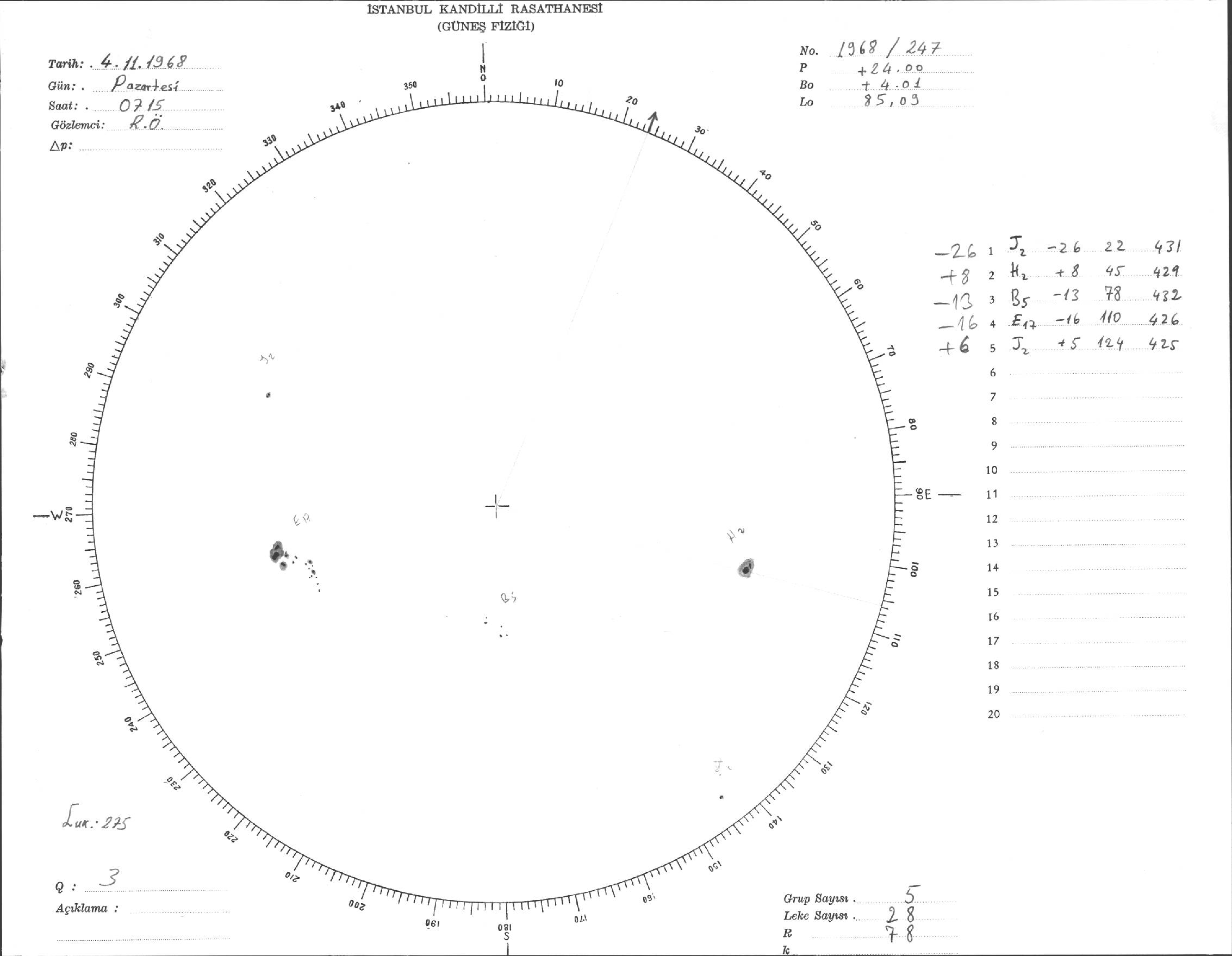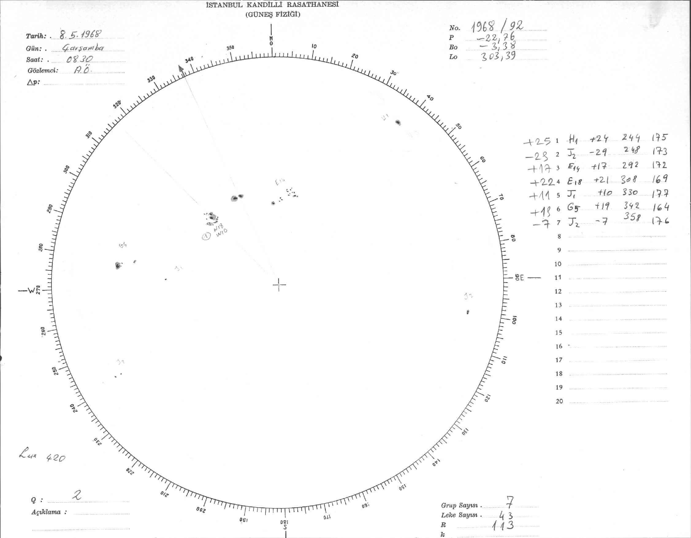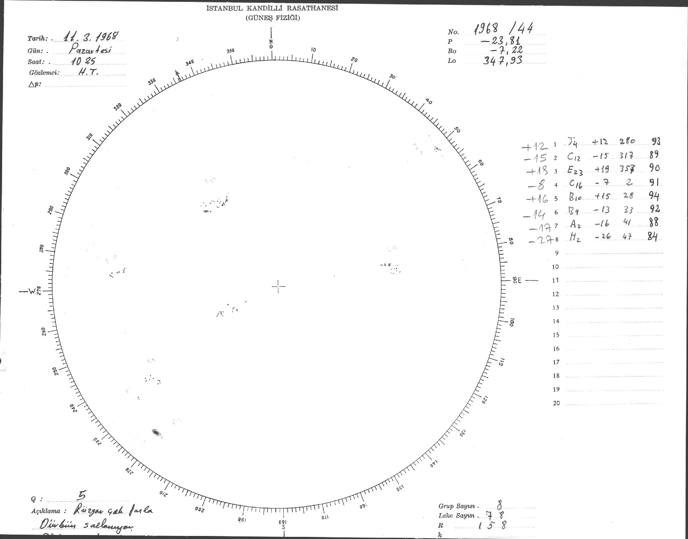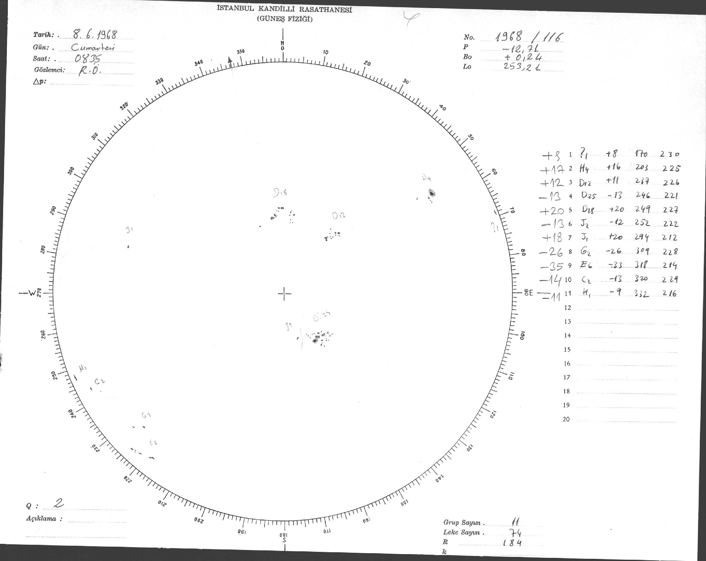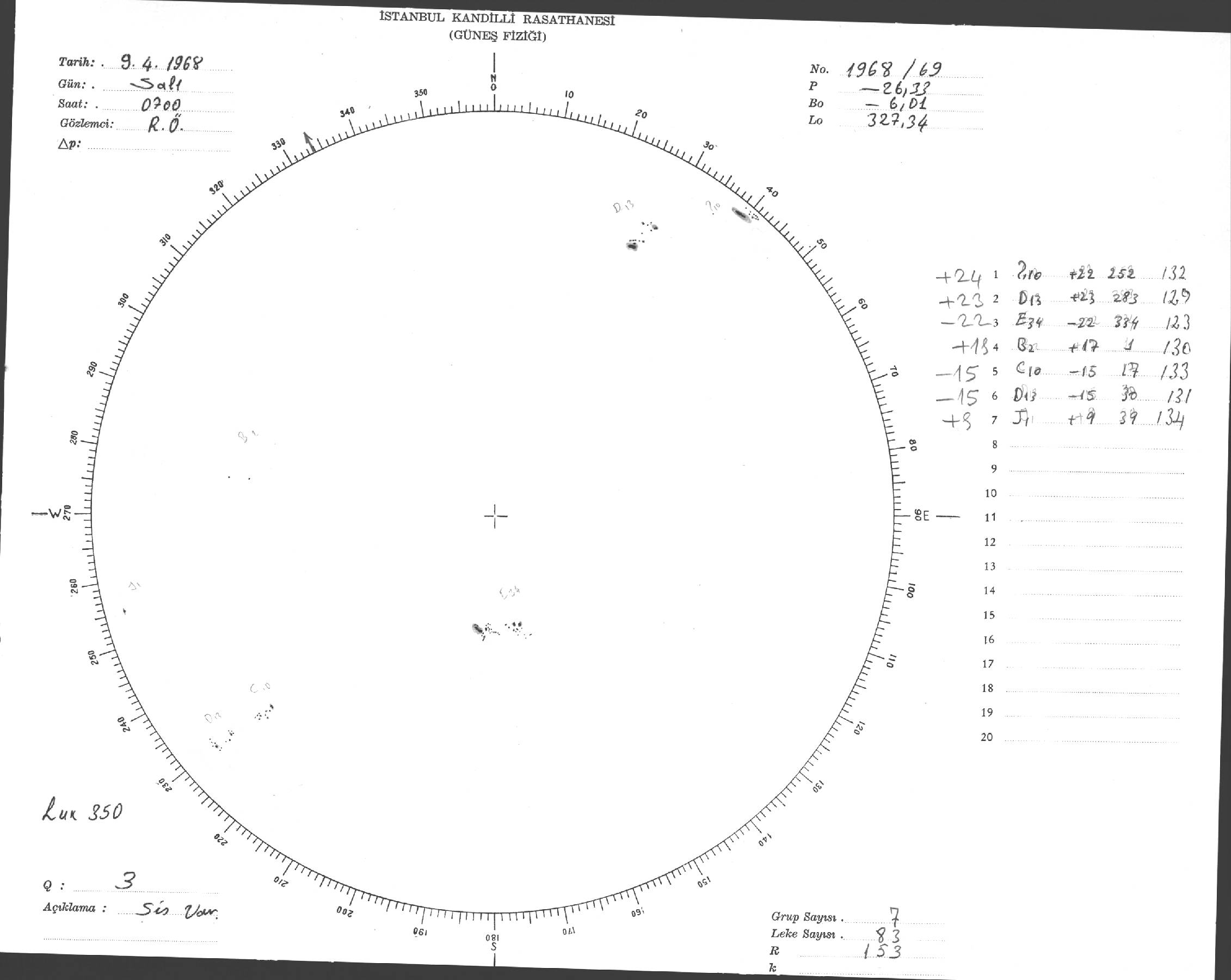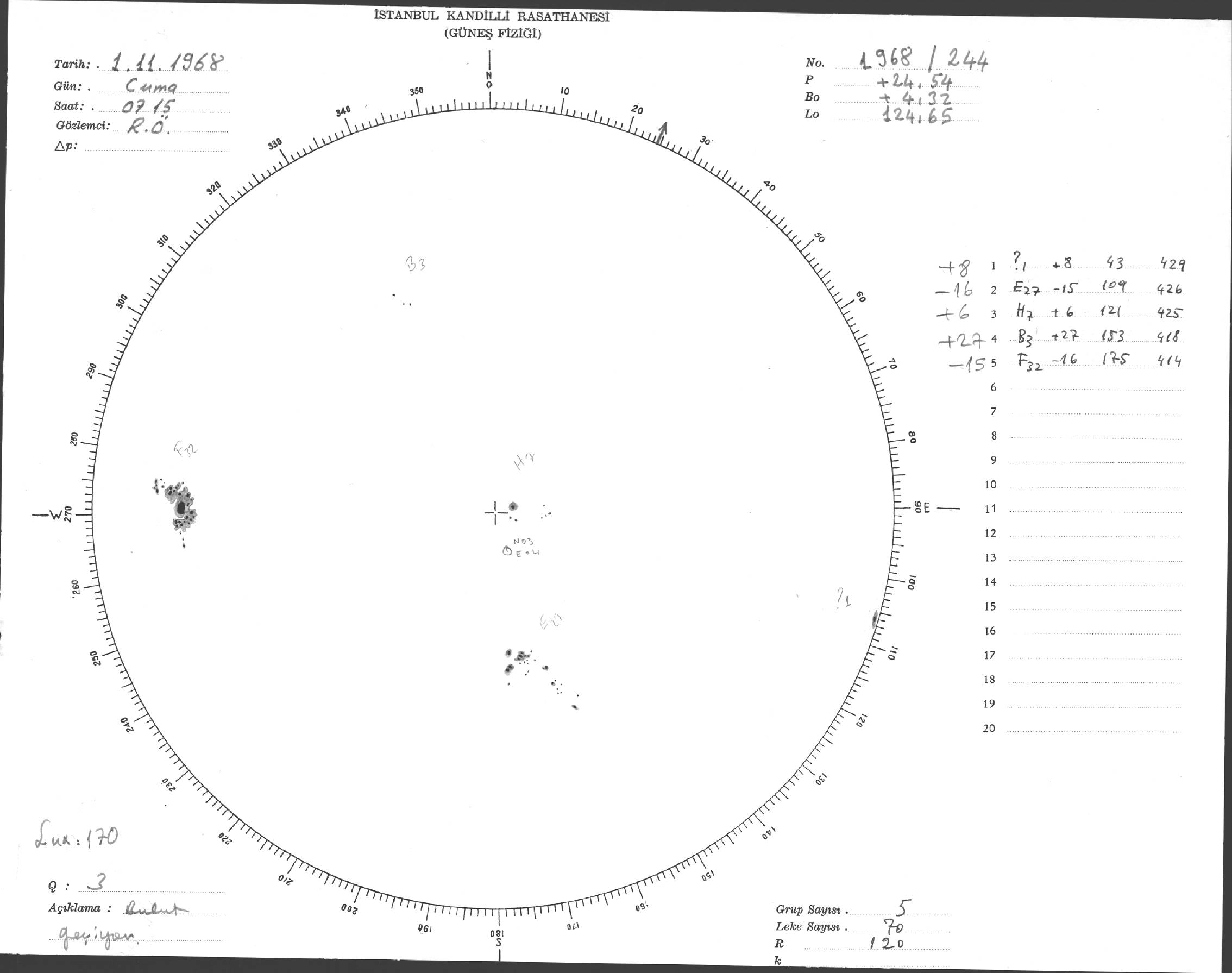 Güneş Lekesi Çizimleri / Kandilli Sunspot Drawings