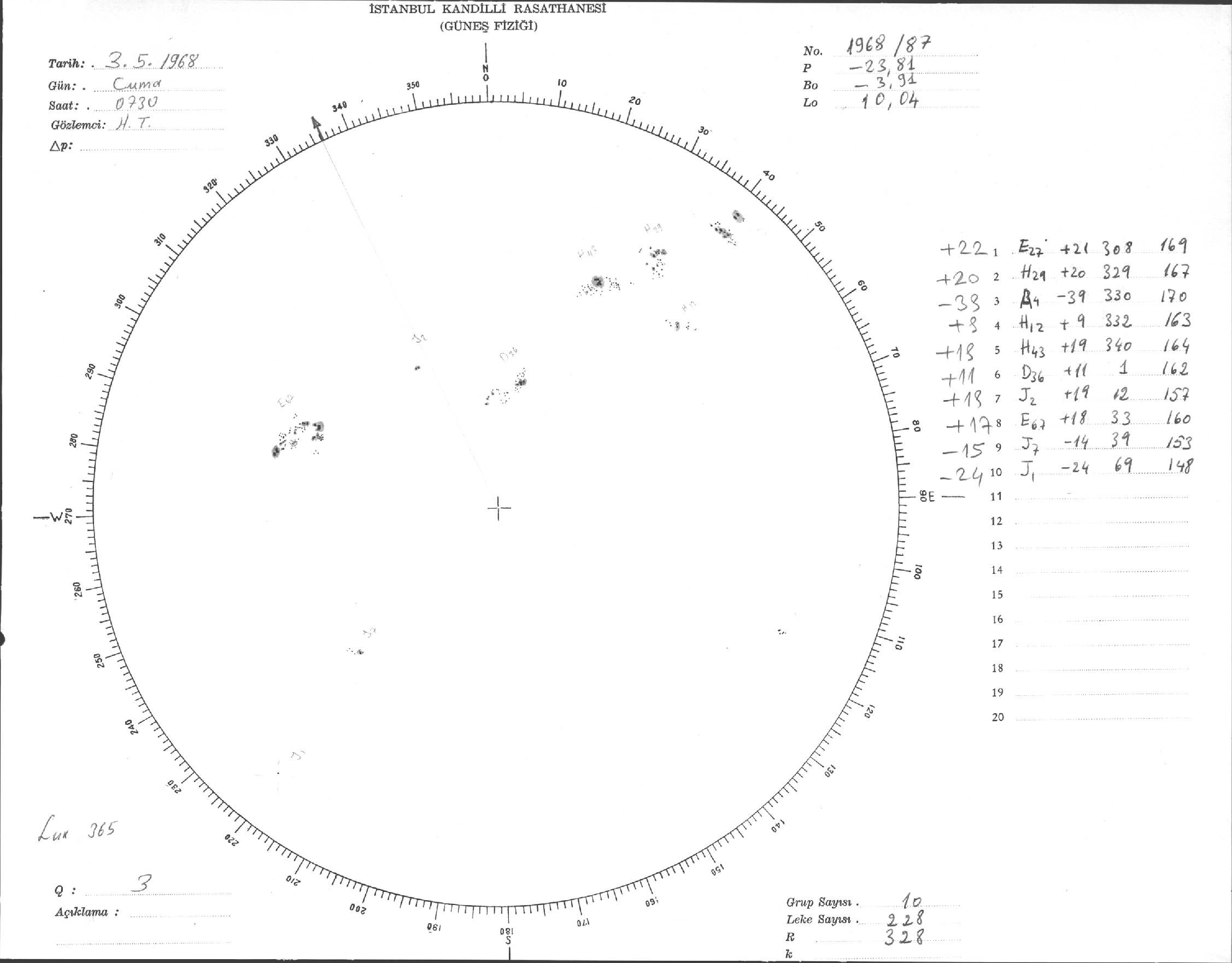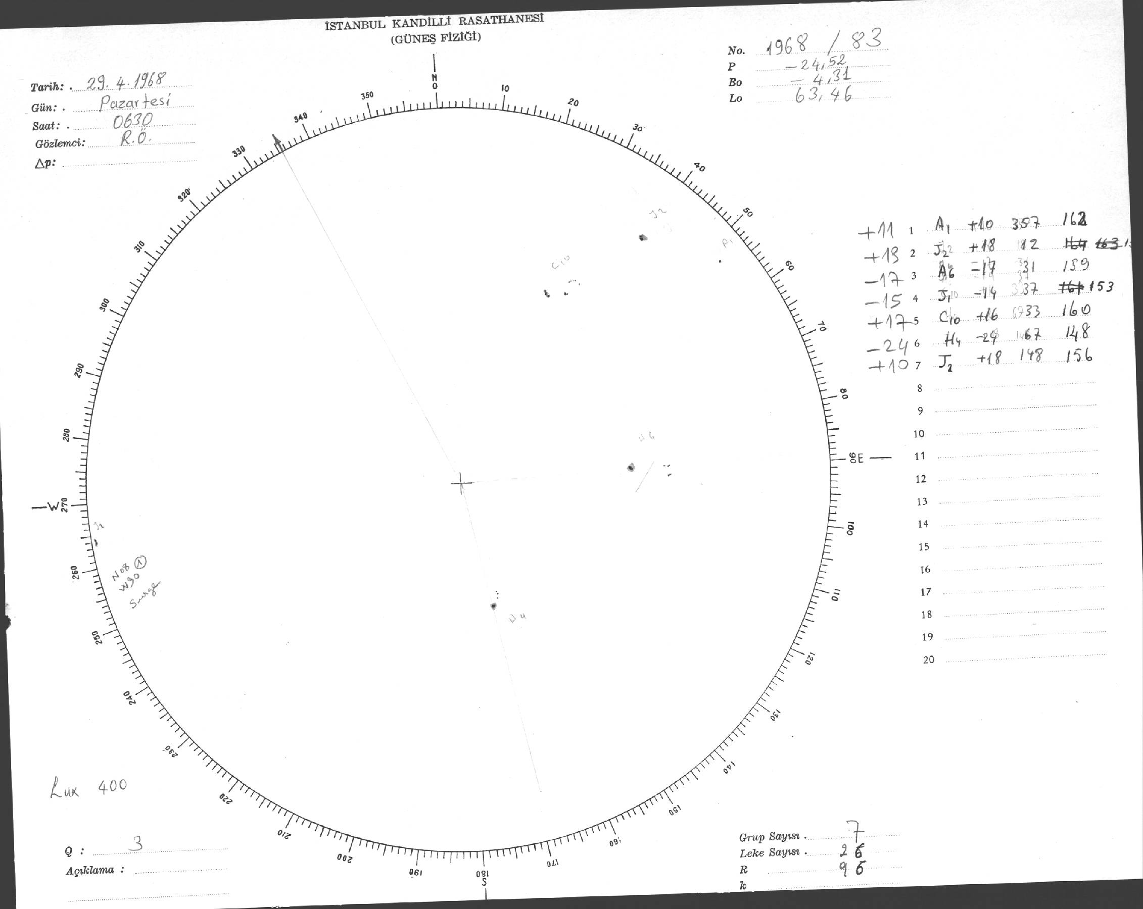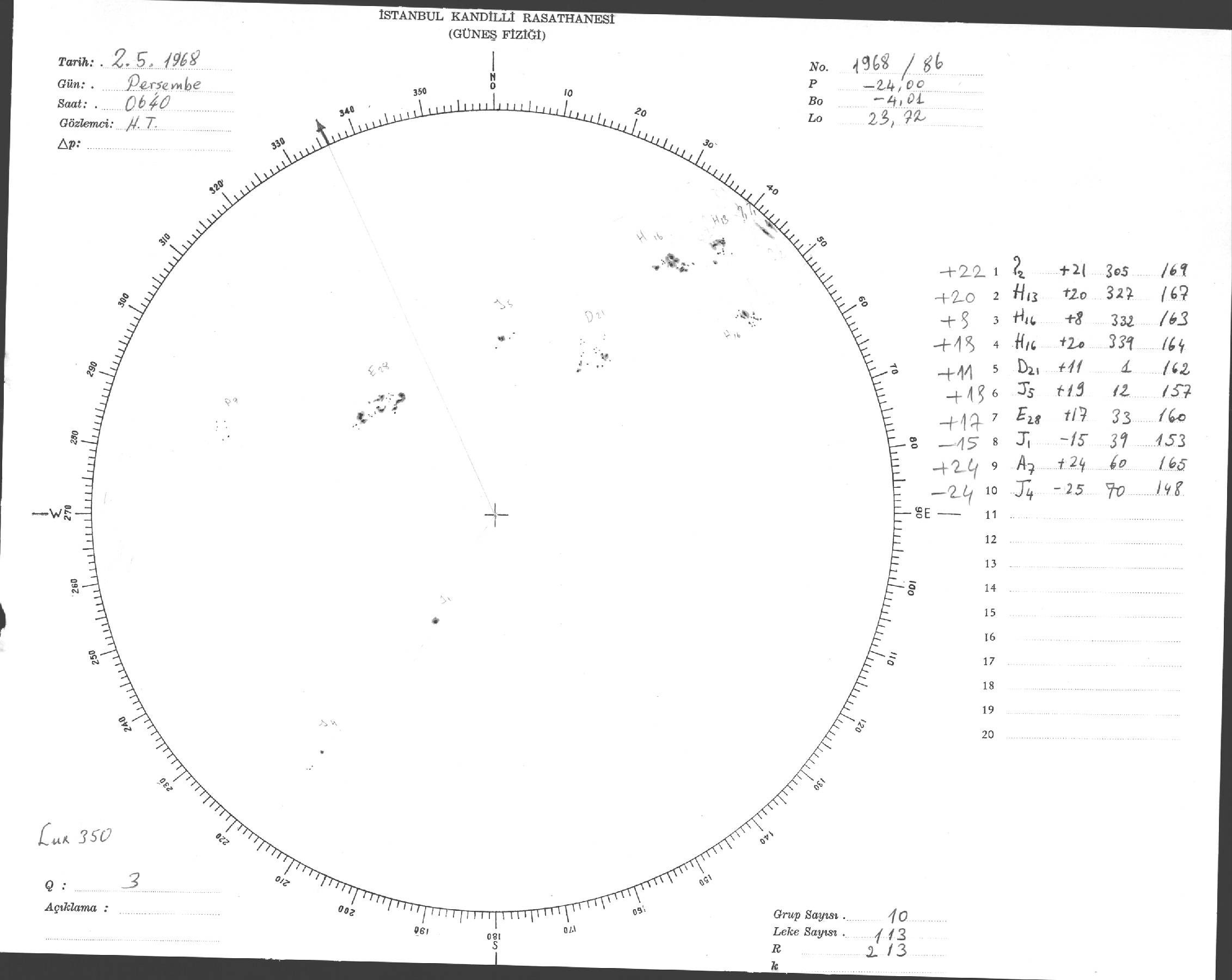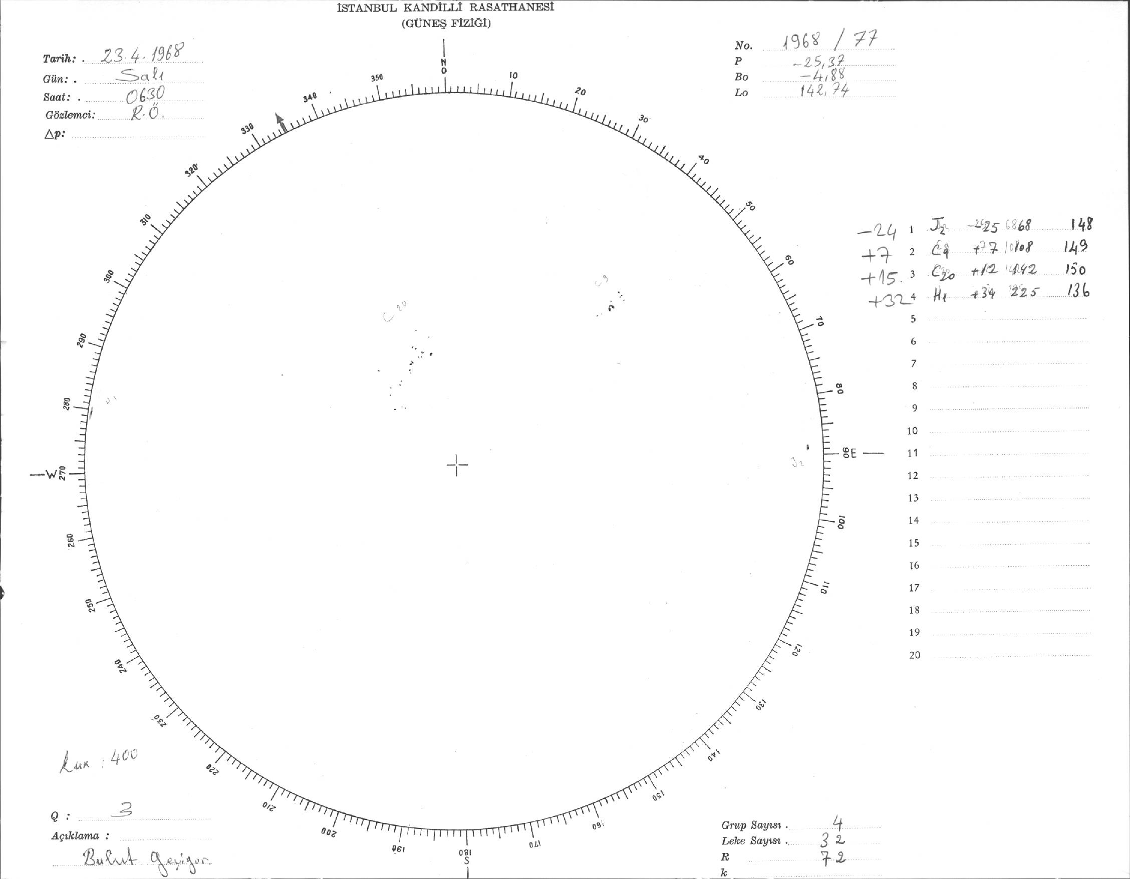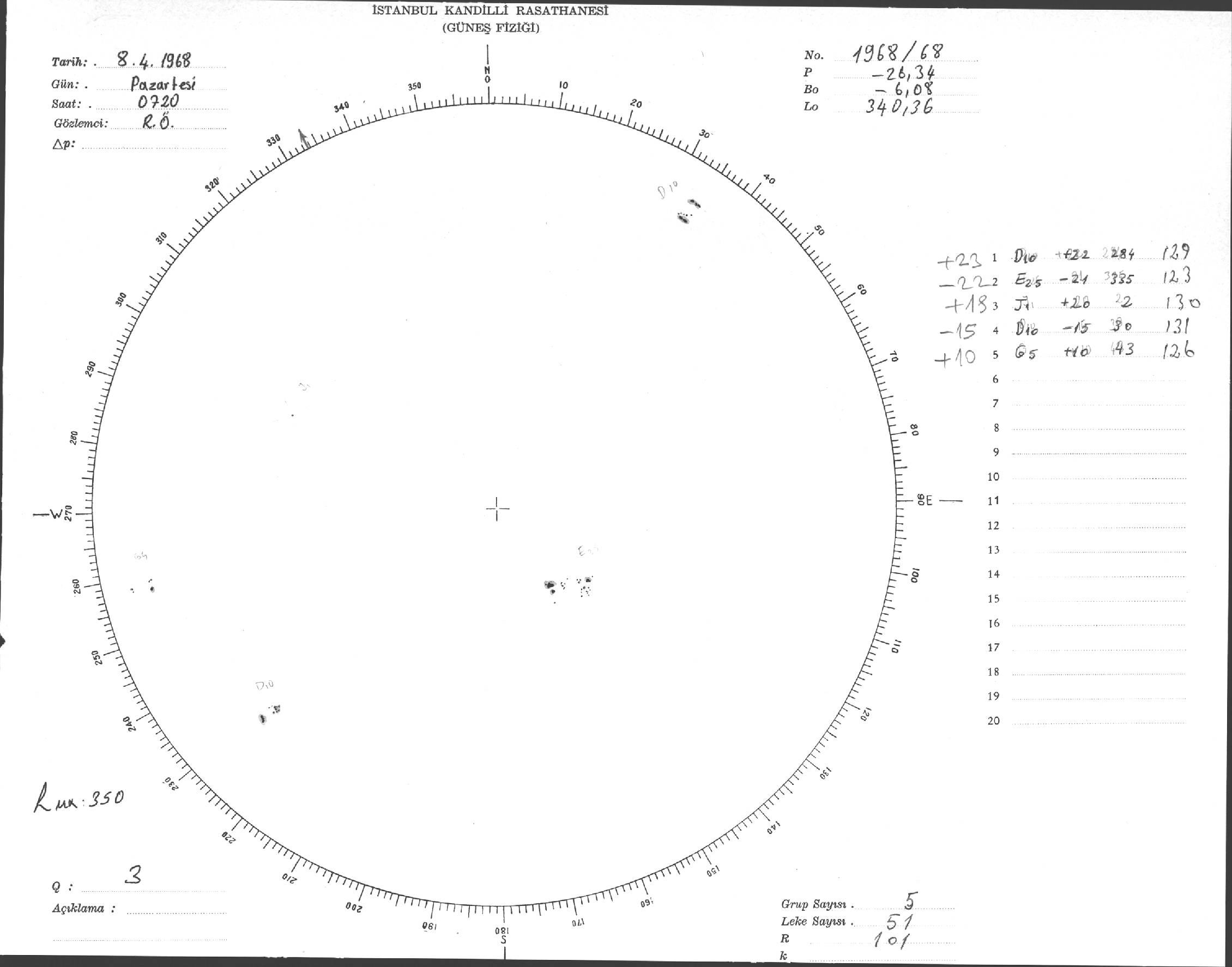 Güneş Lekesi Çizimleri / Kandilli Sunspot Drawings