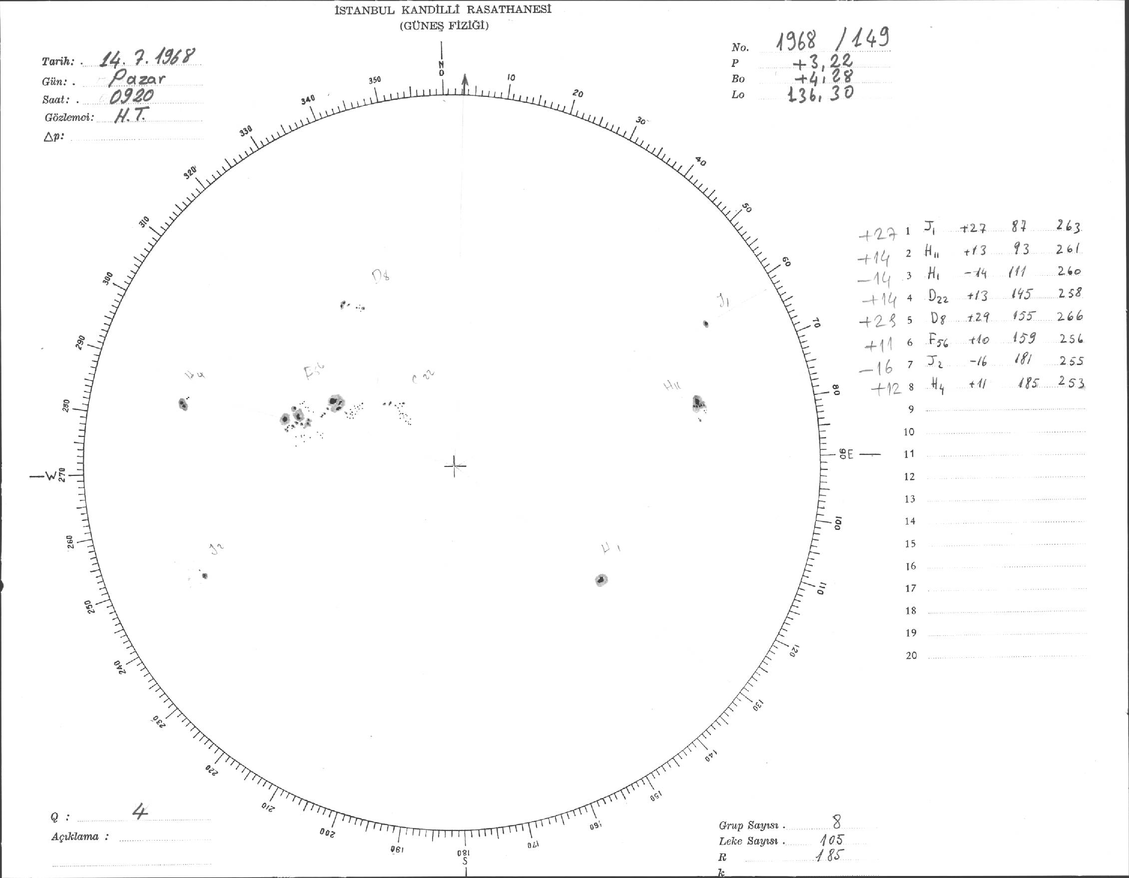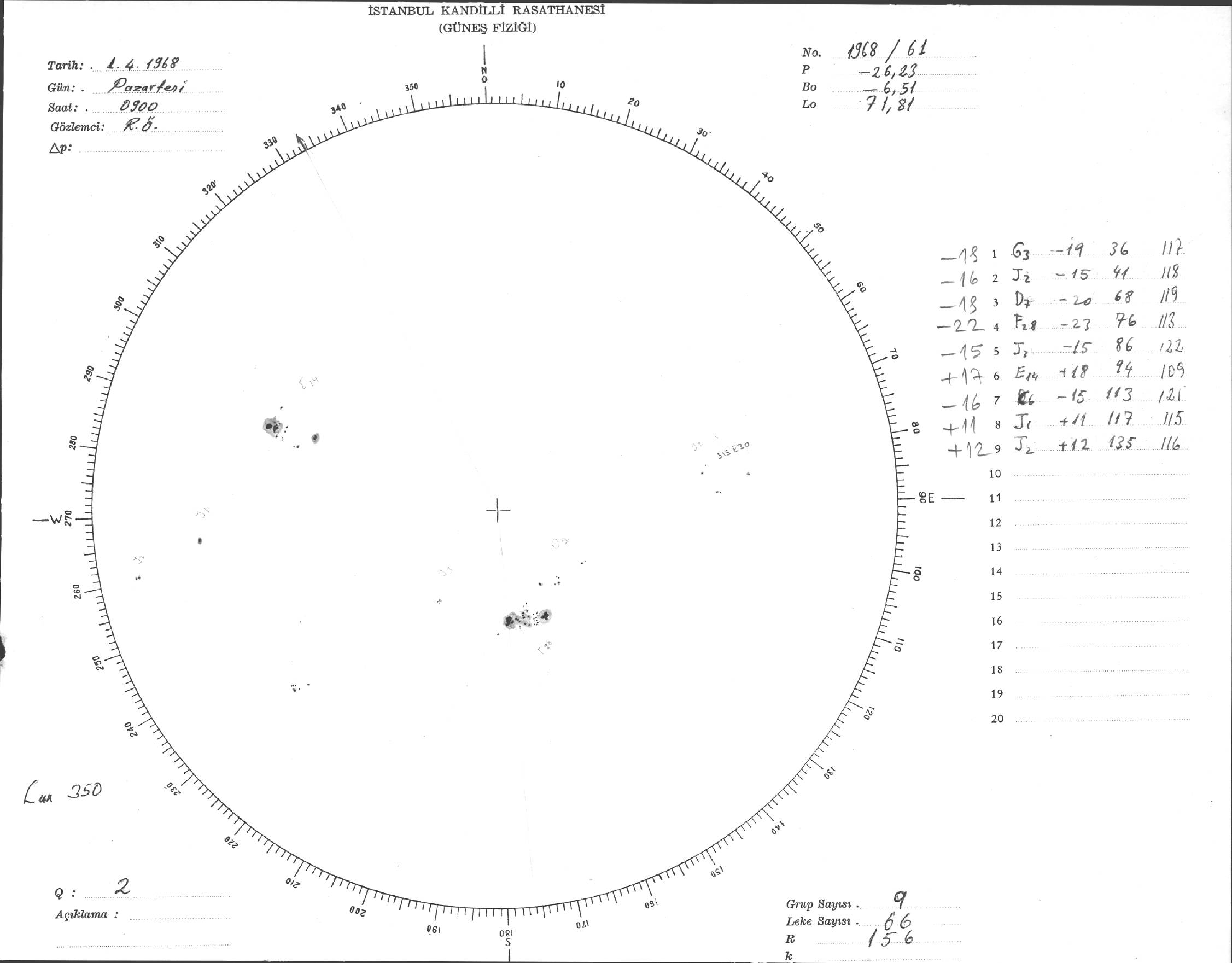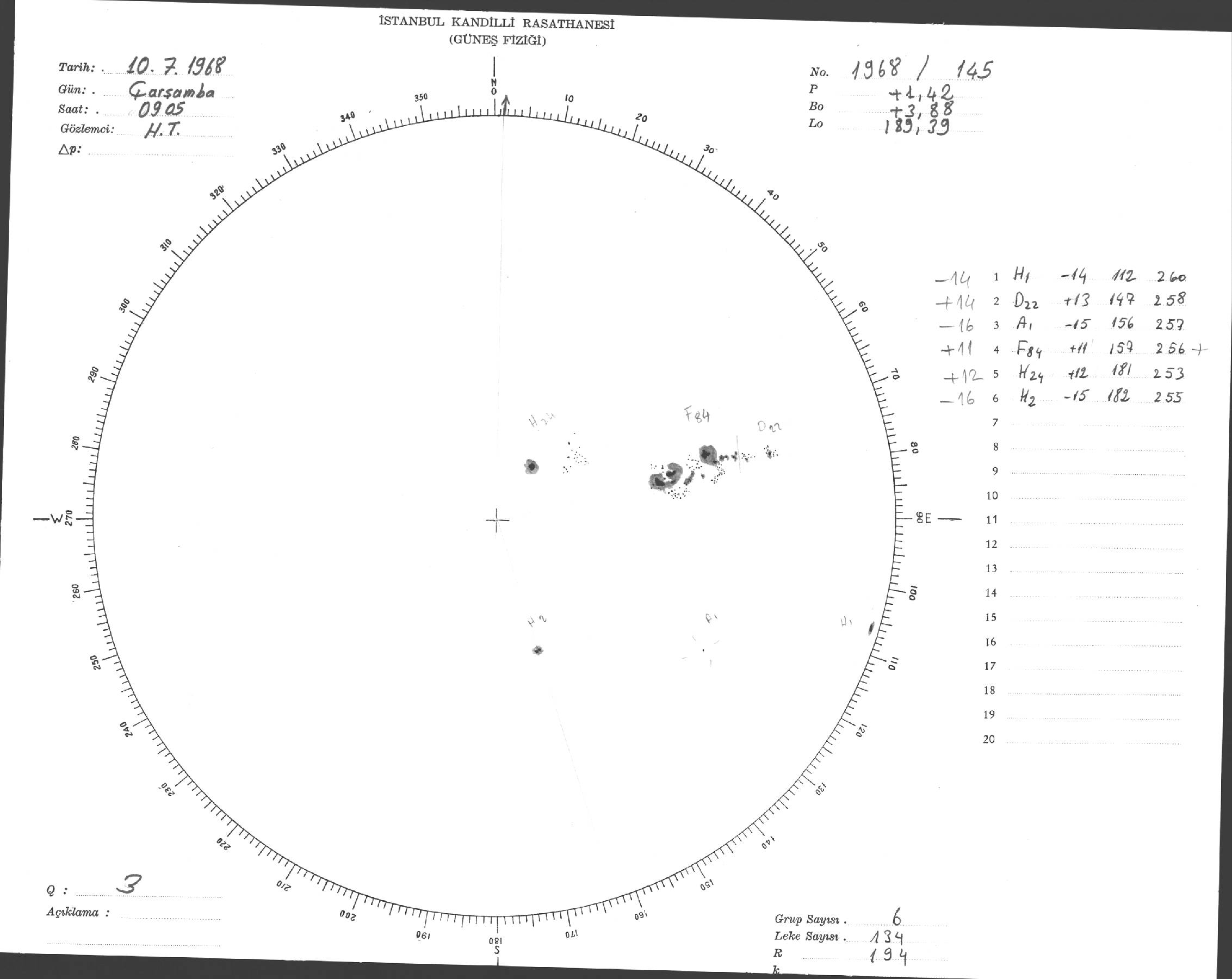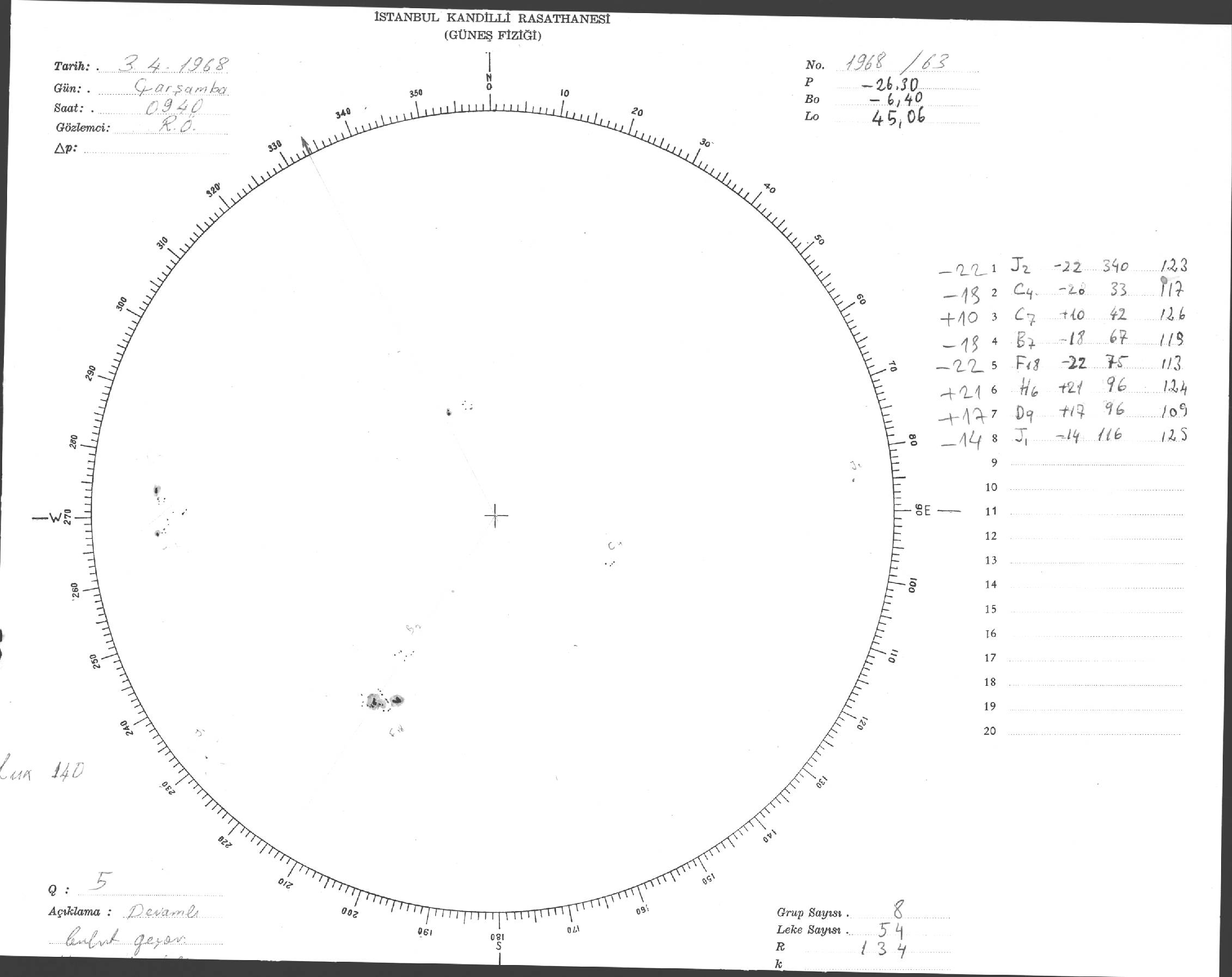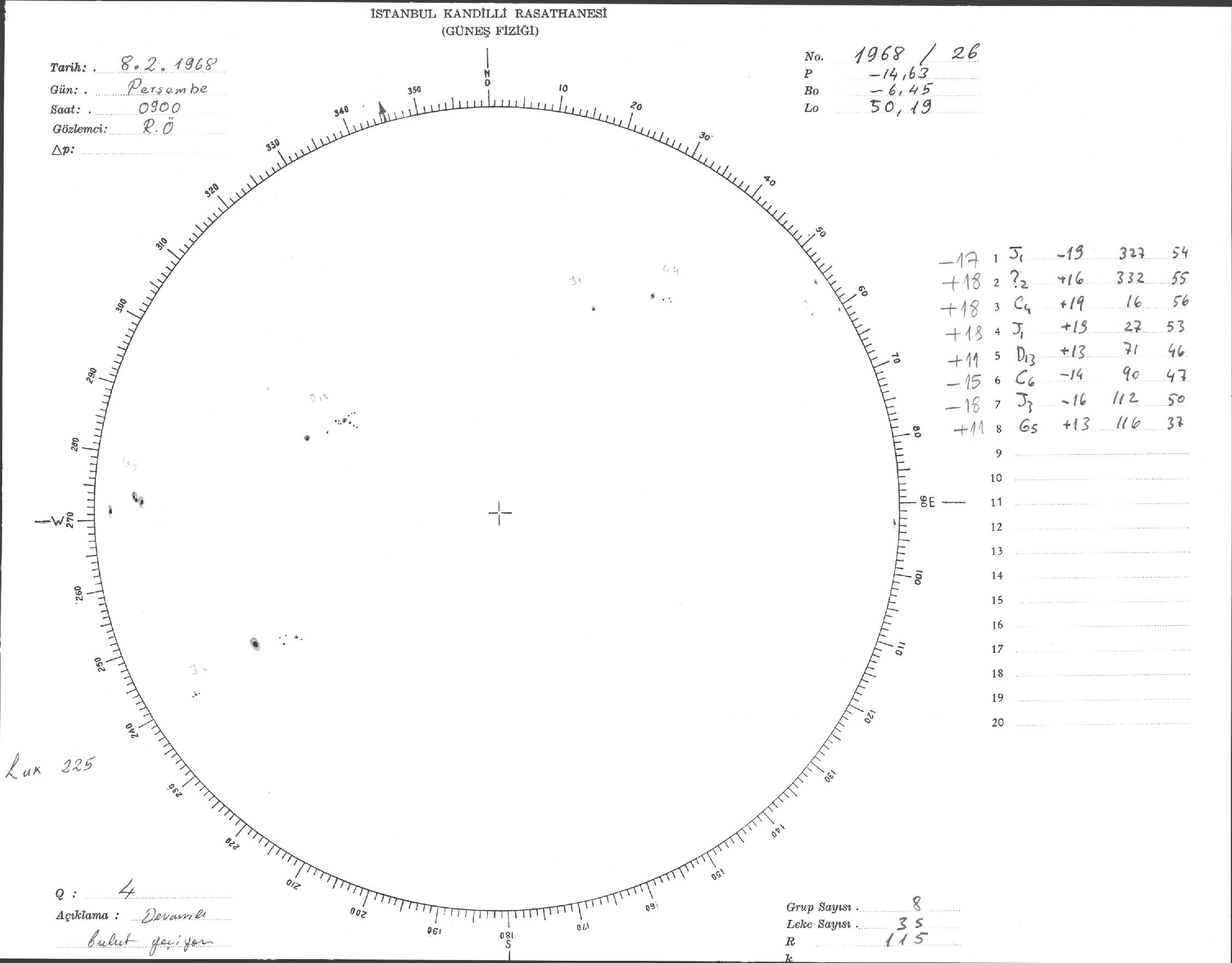Güneş Lekesi Çizimleri / Kandilli Sunspot Drawings