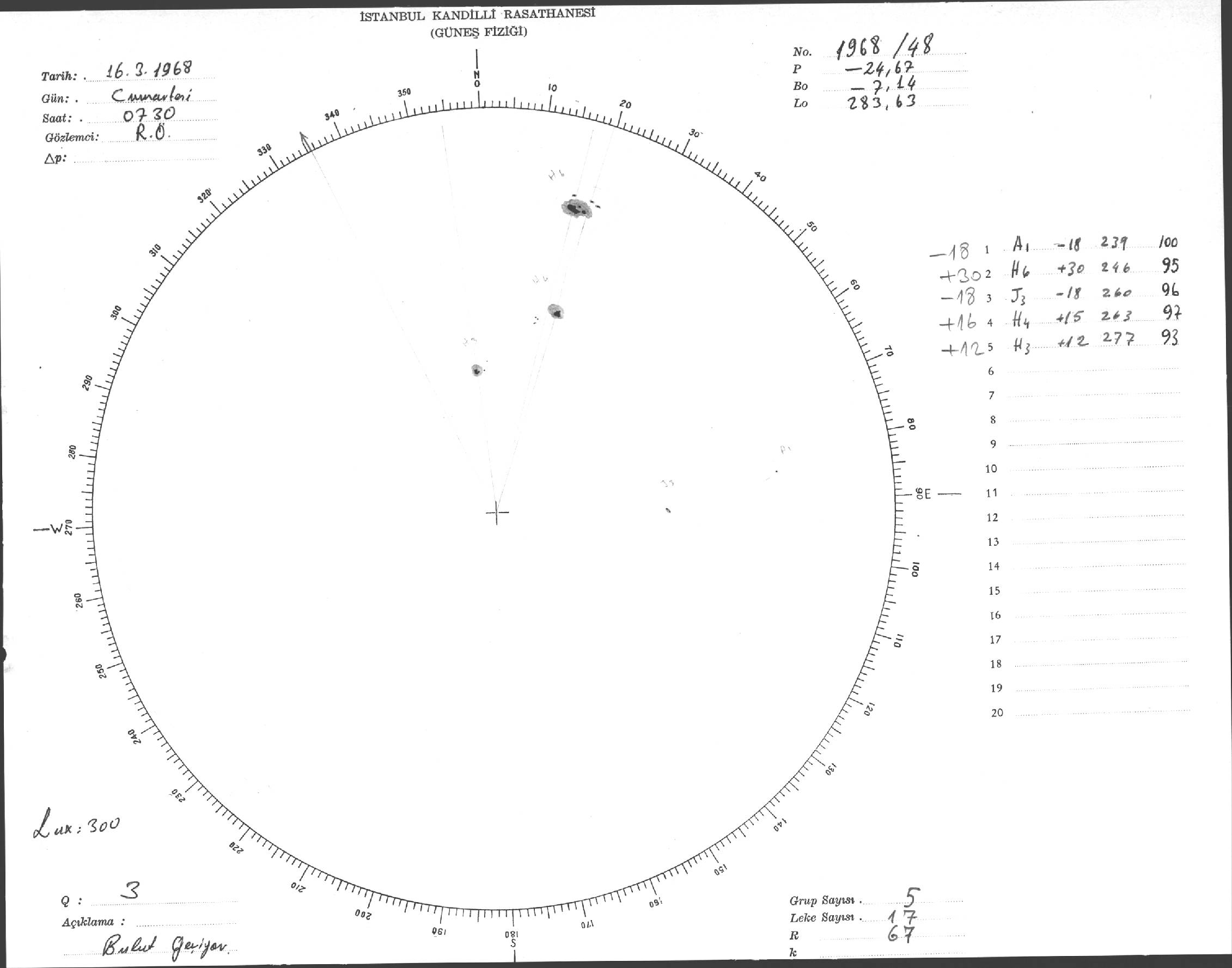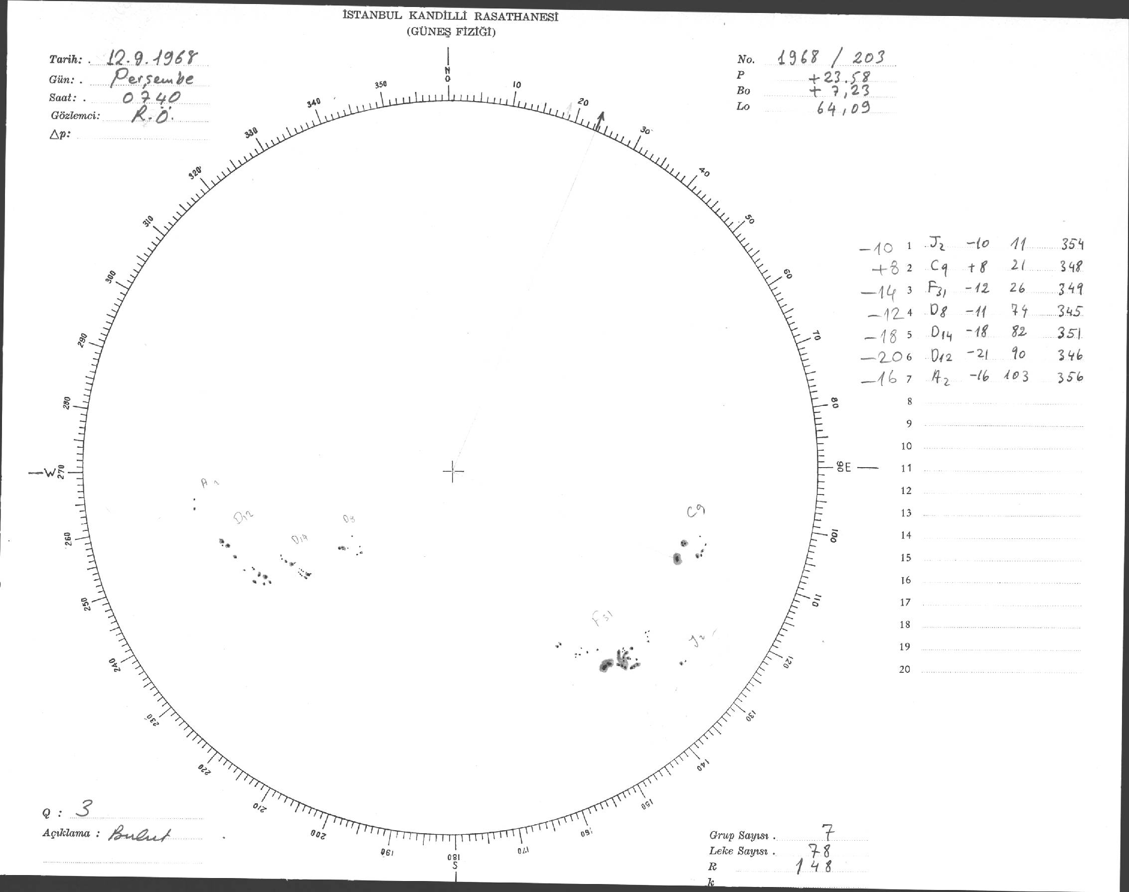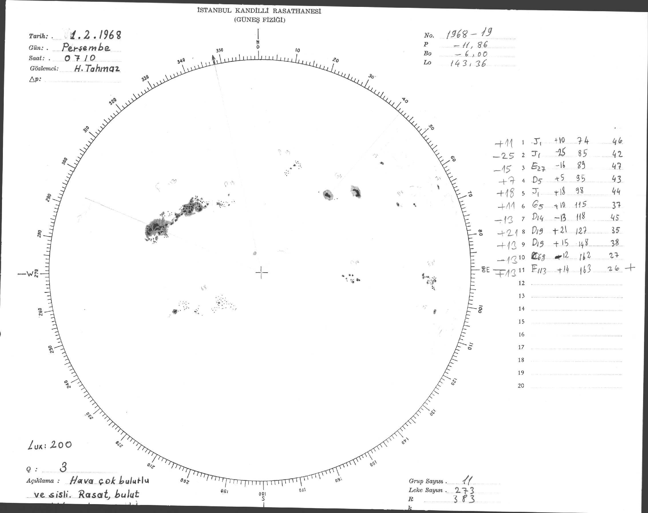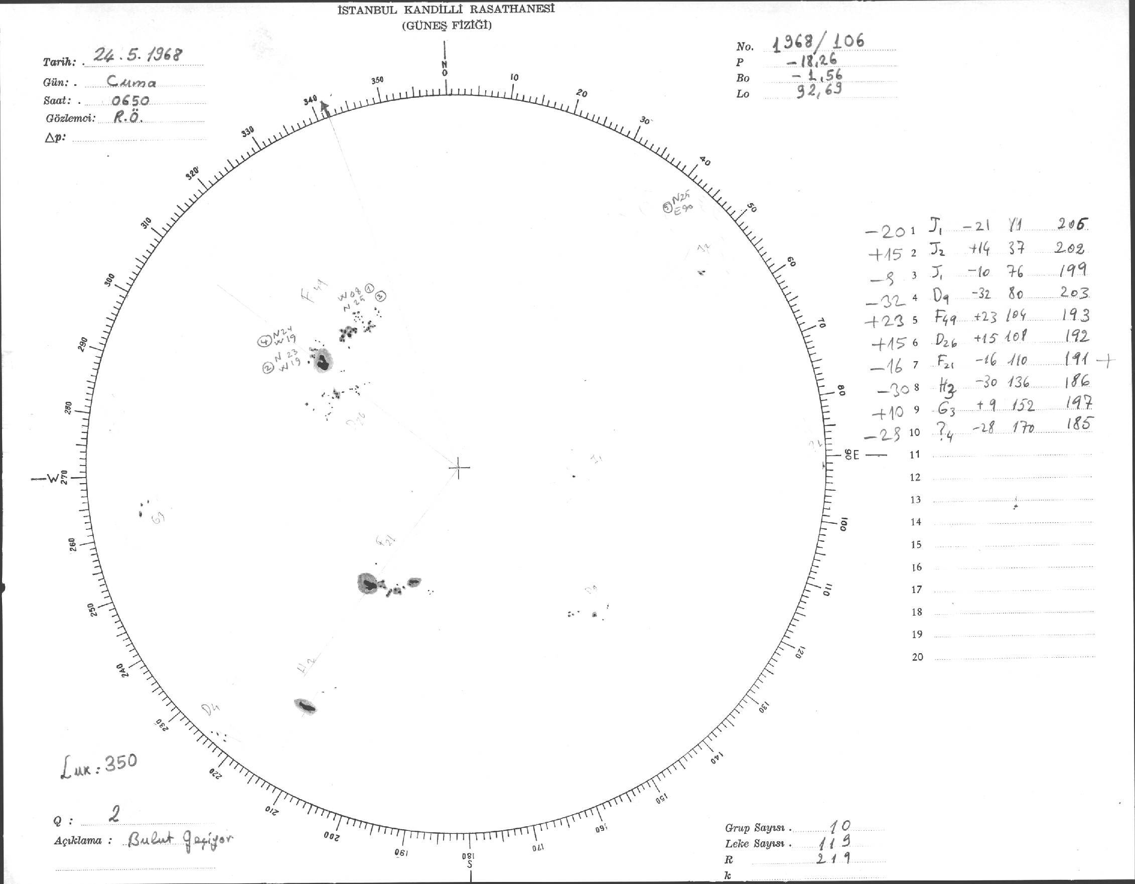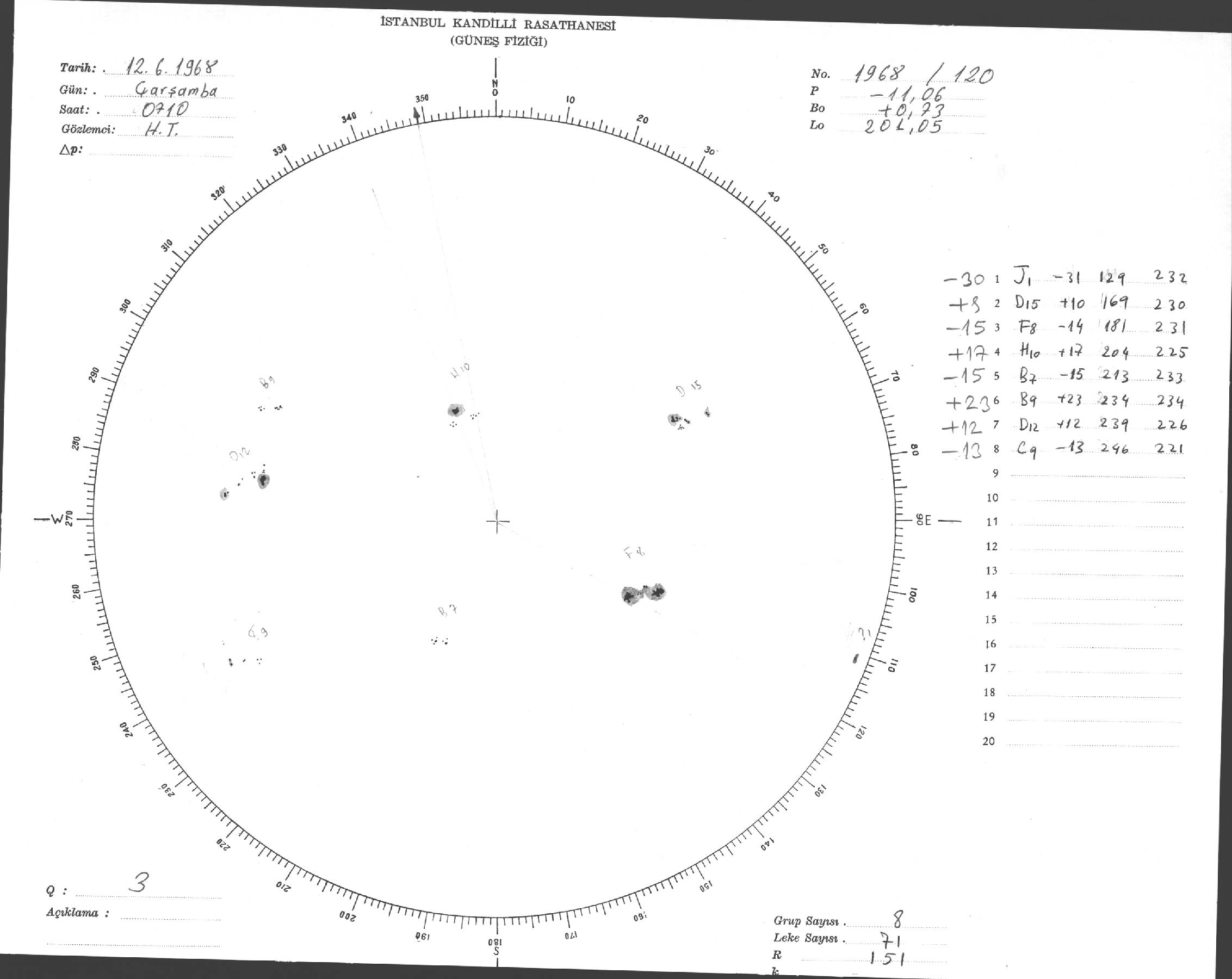 Güneş Lekesi Çizimleri / Kandilli Sunspot Drawings