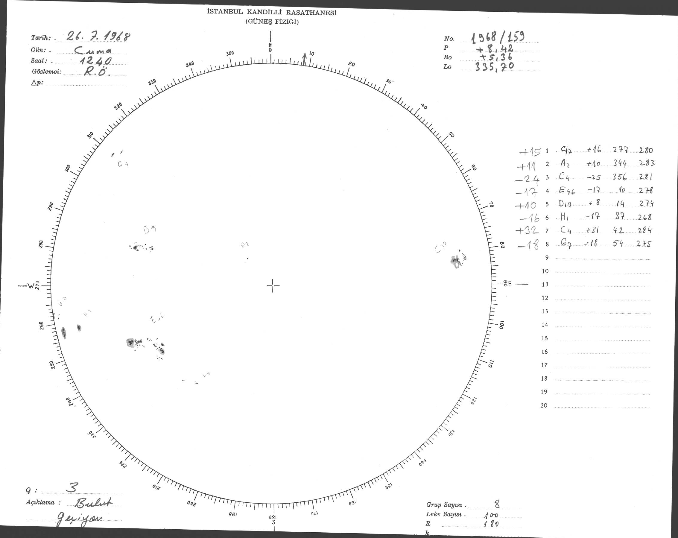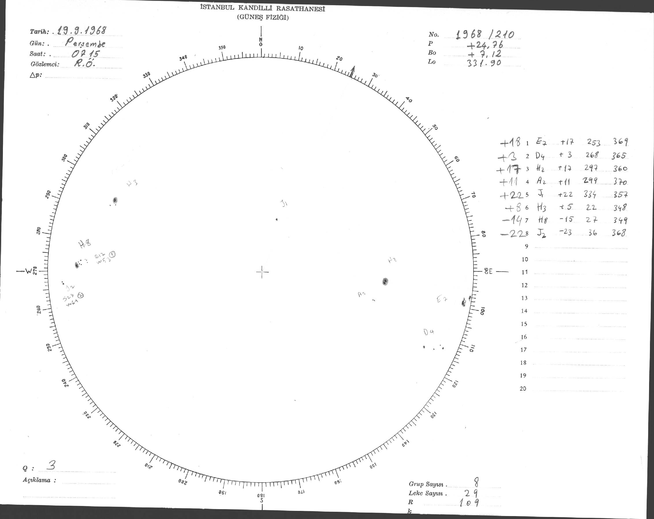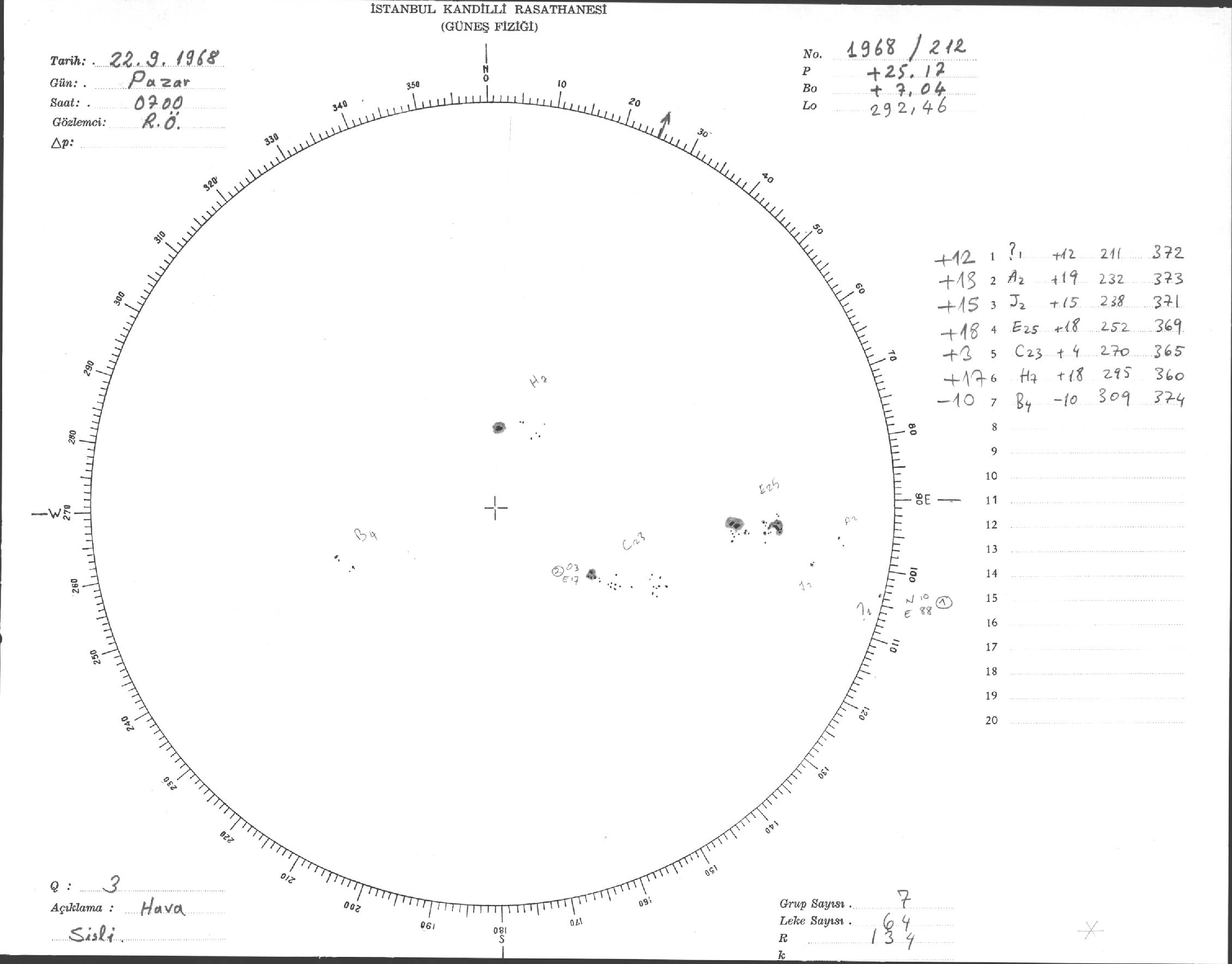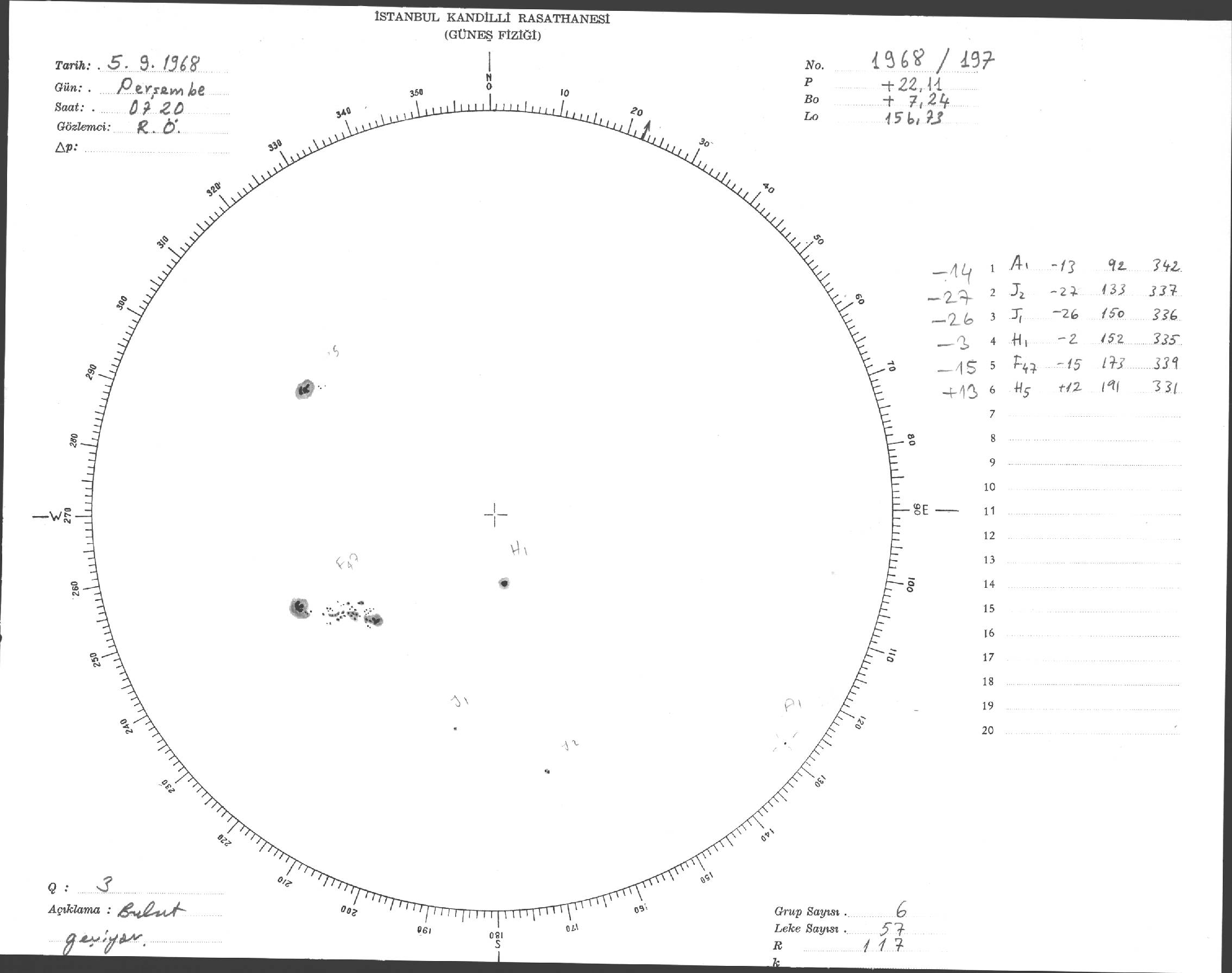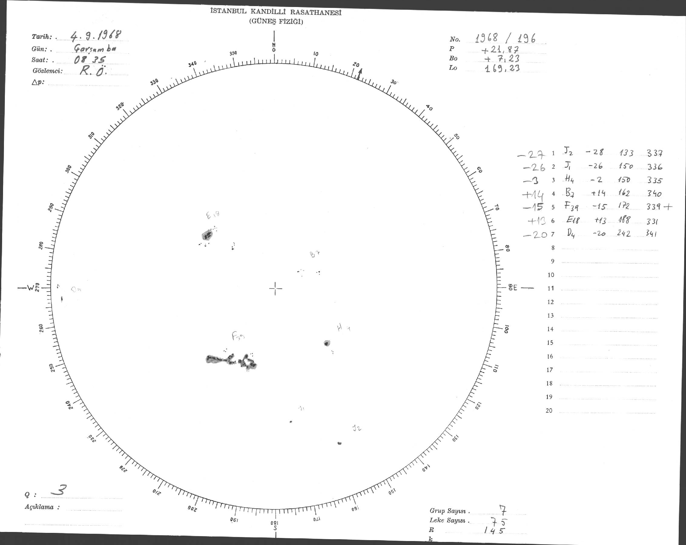 Güneş Lekesi Çizimleri / Kandilli Sunspot Drawings