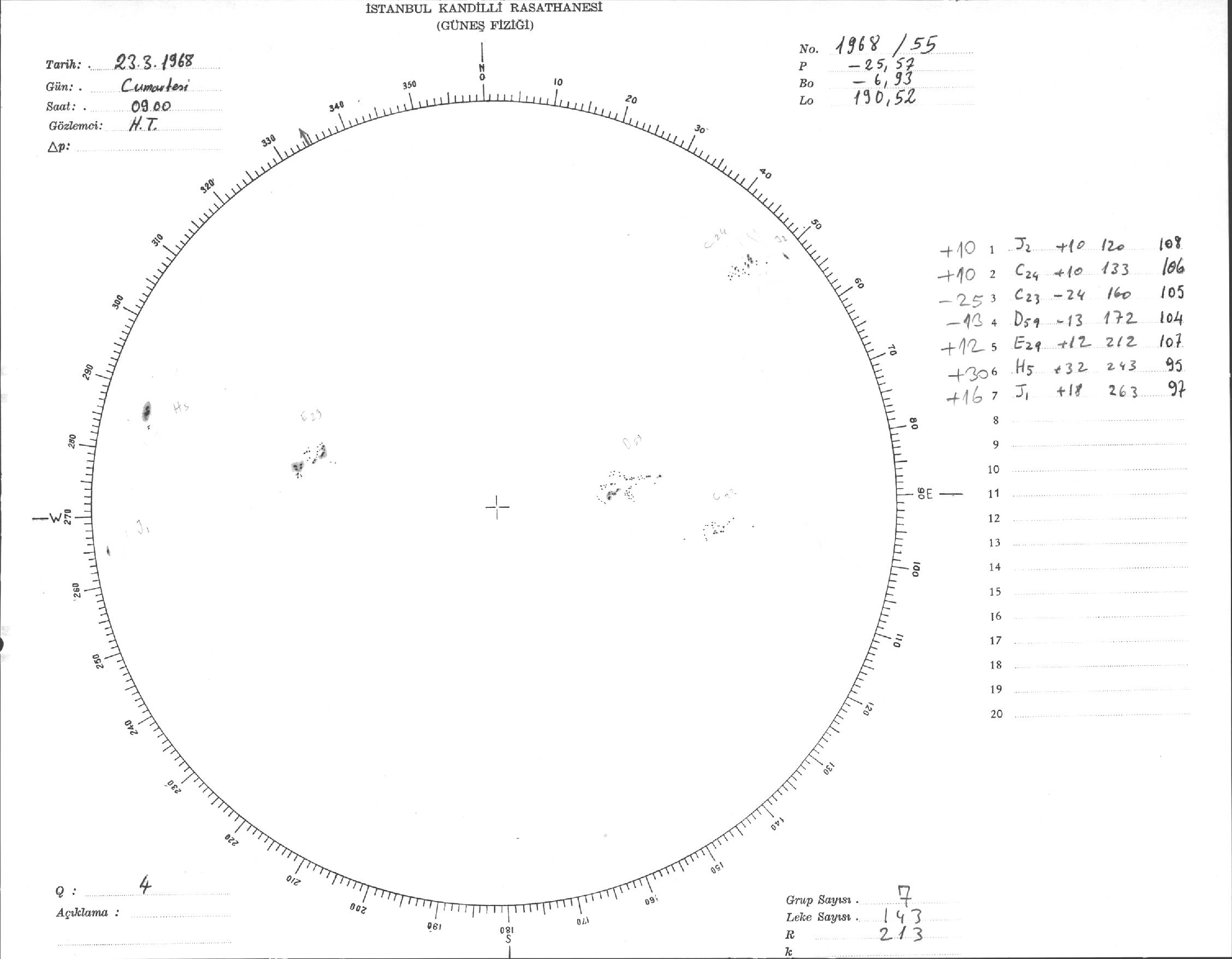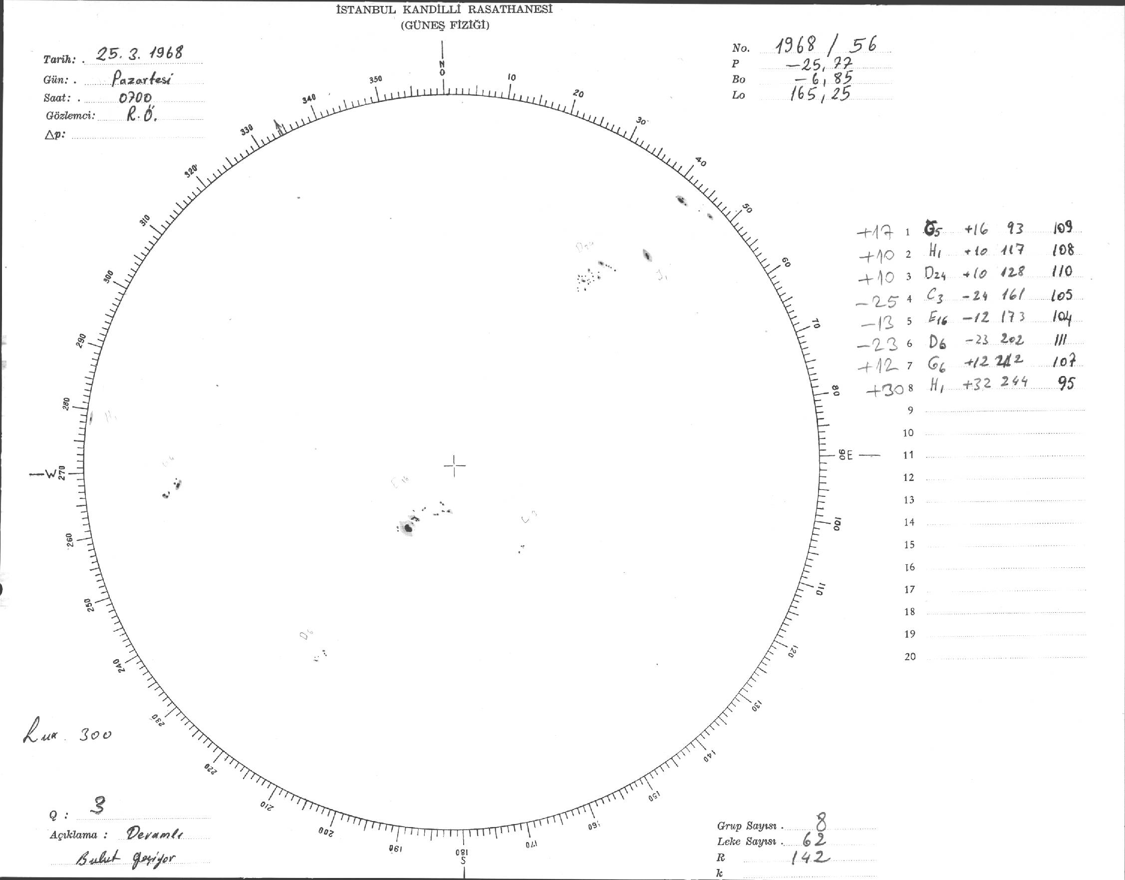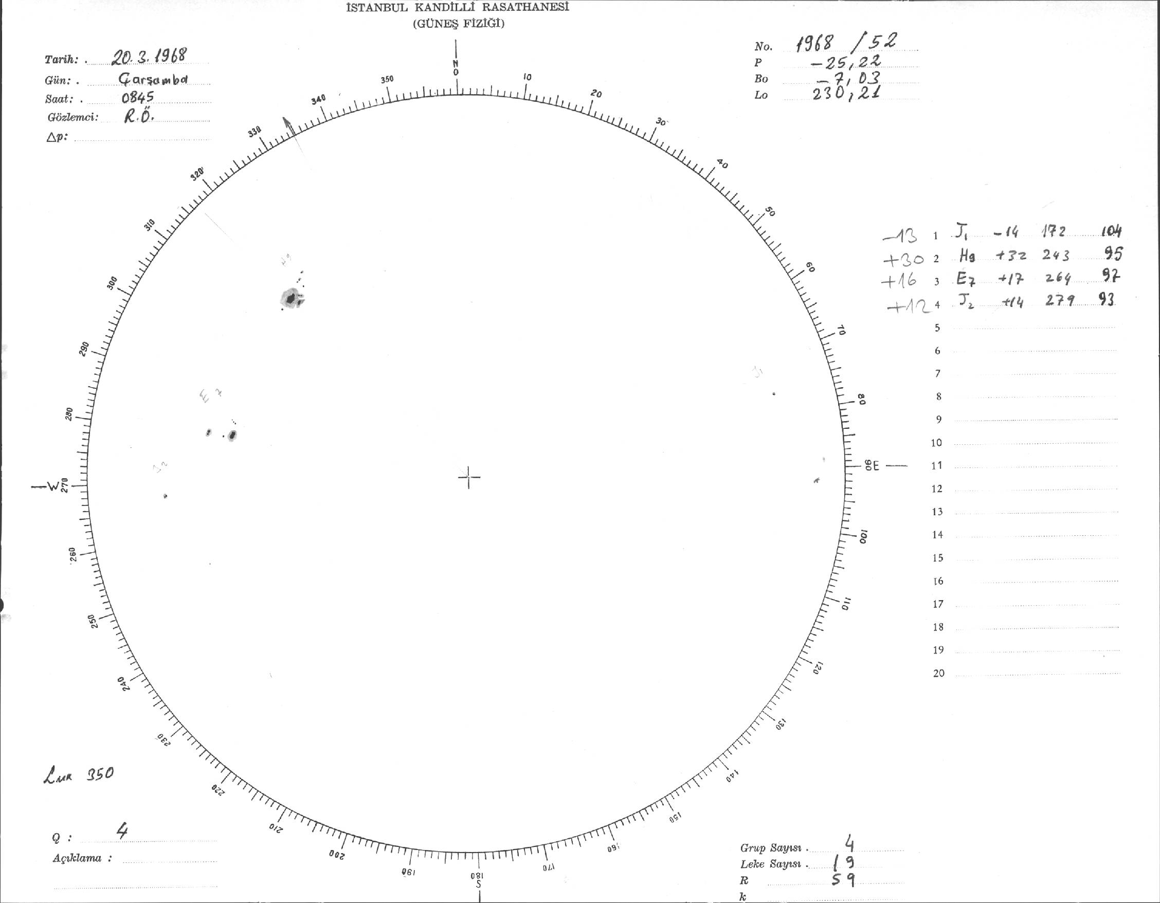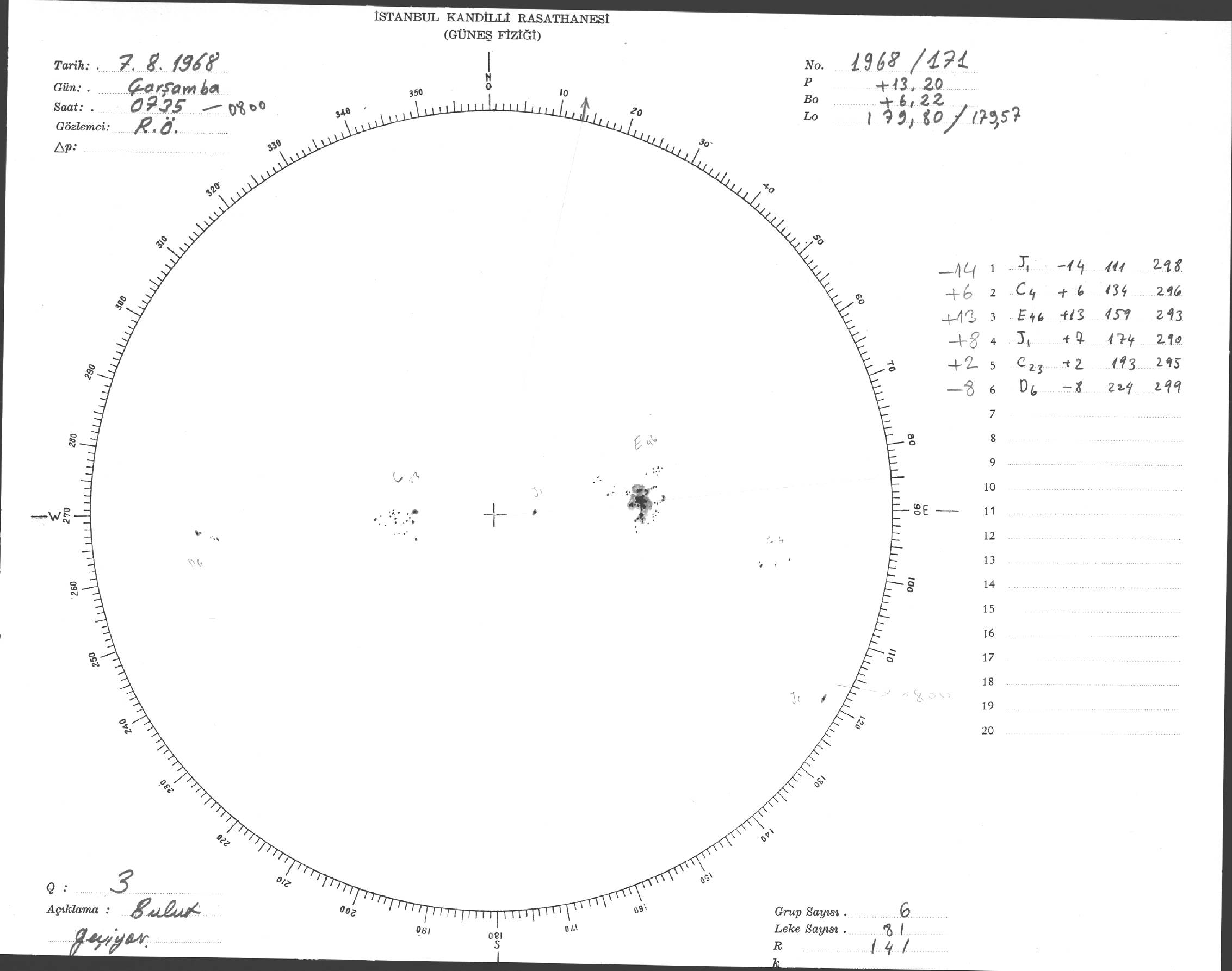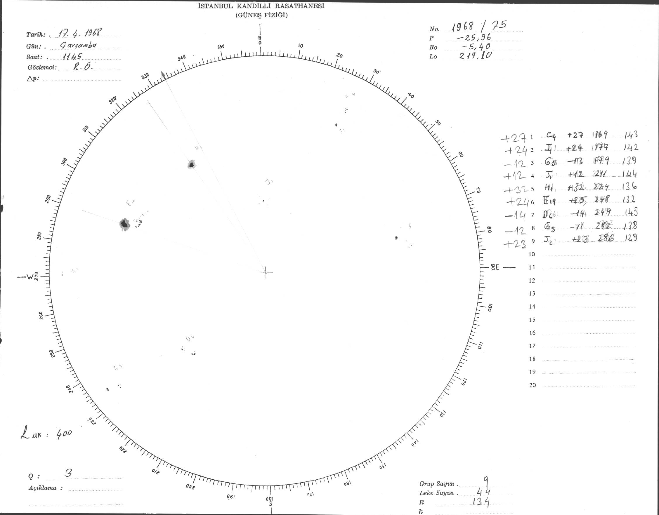 Güneş Lekesi Çizimleri / Kandilli Sunspot Drawings