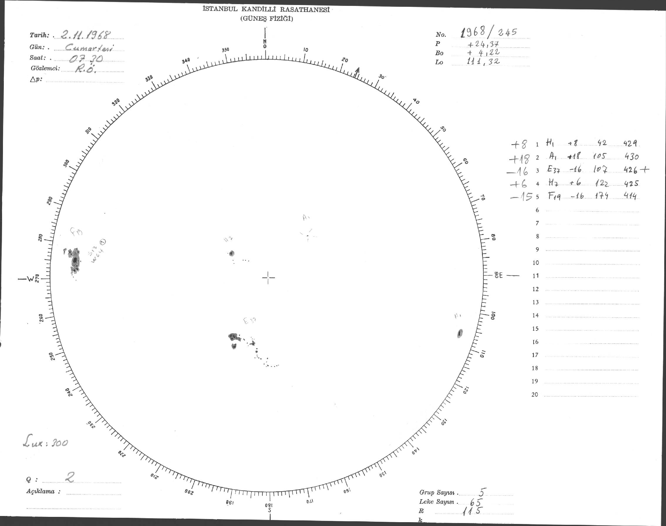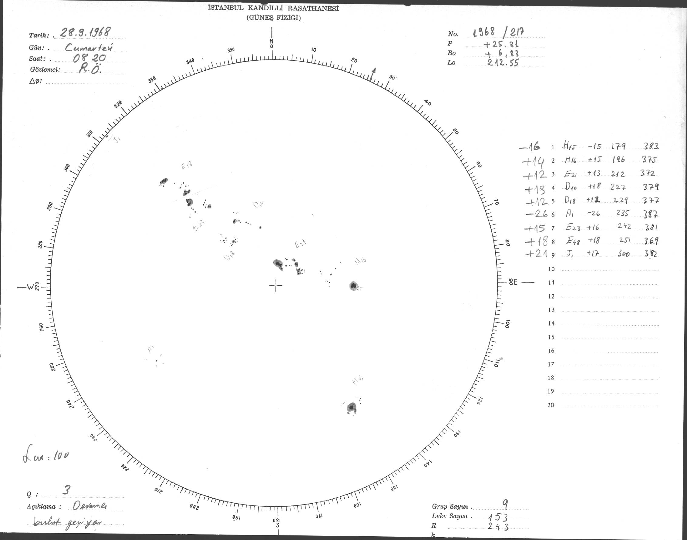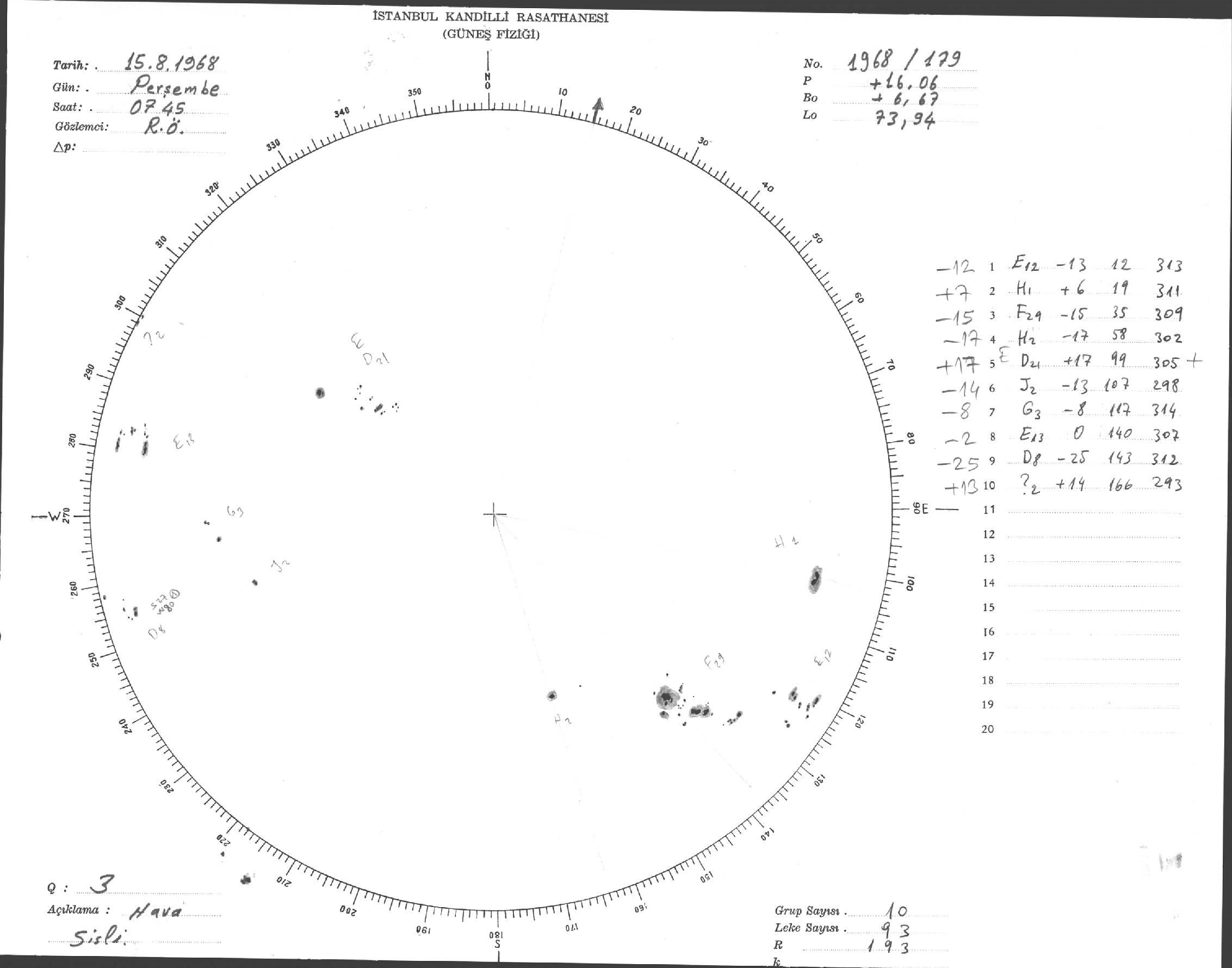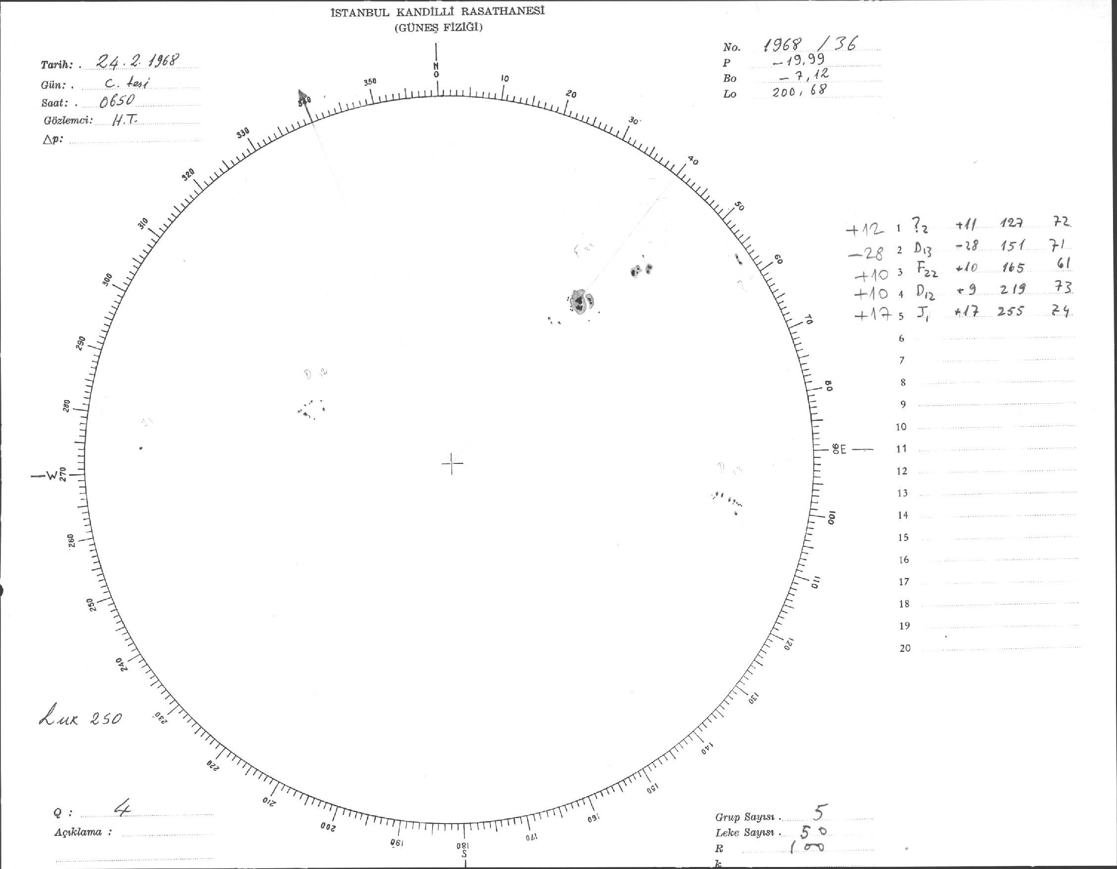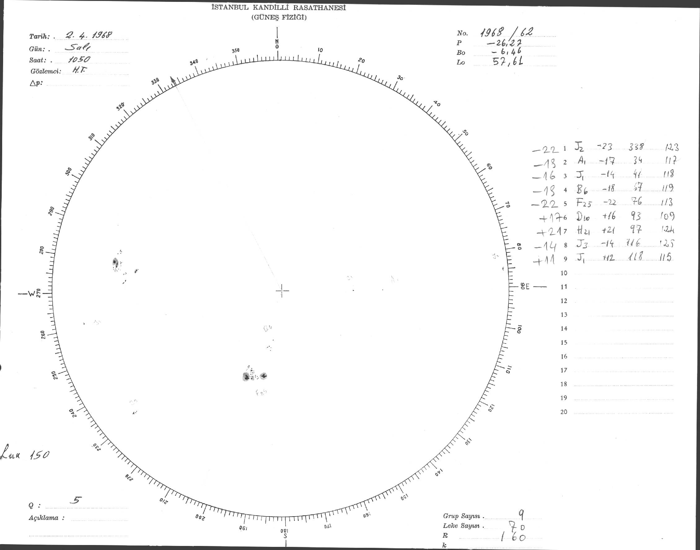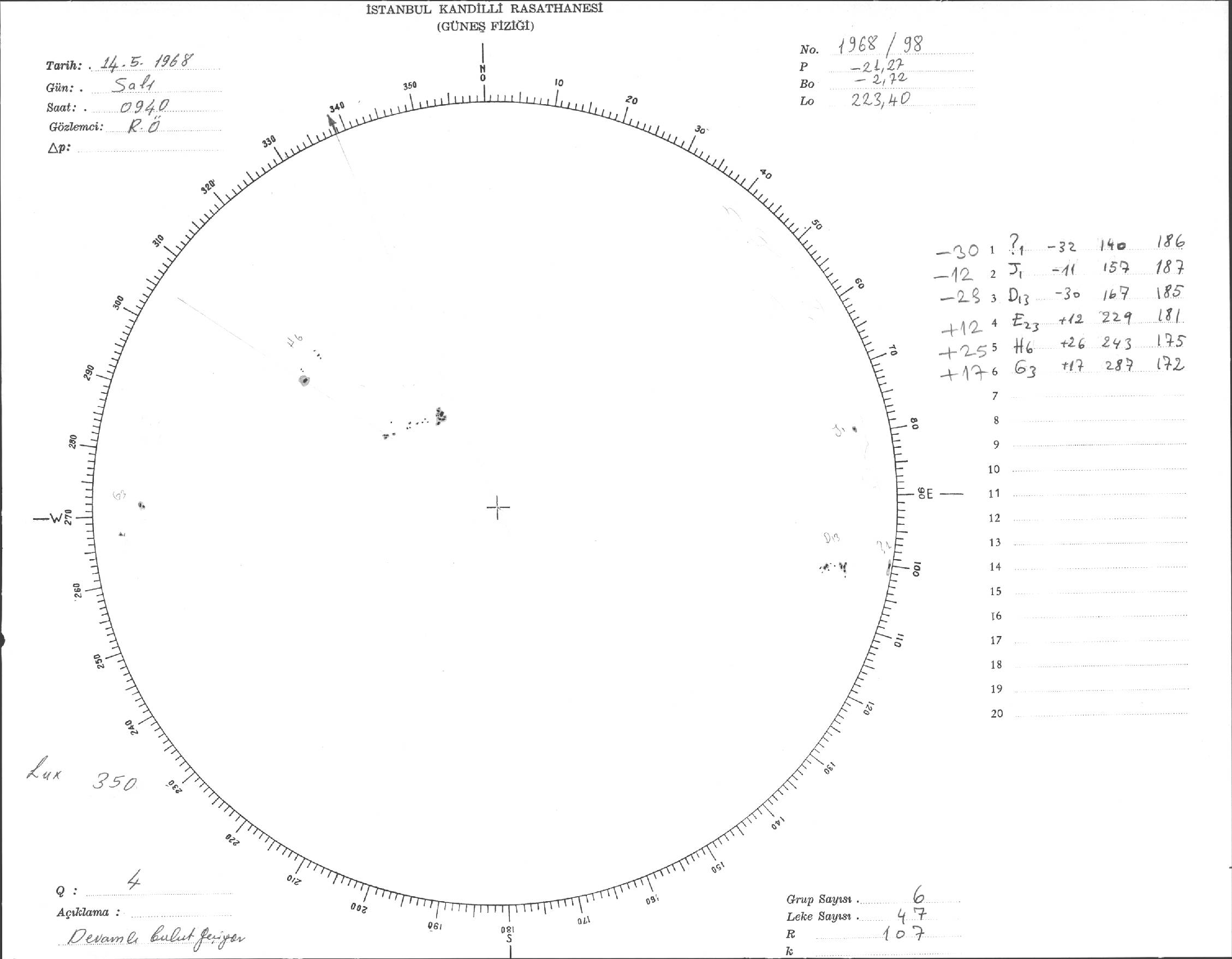 Güneş Lekesi Çizimleri / Kandilli Sunspot Drawings
