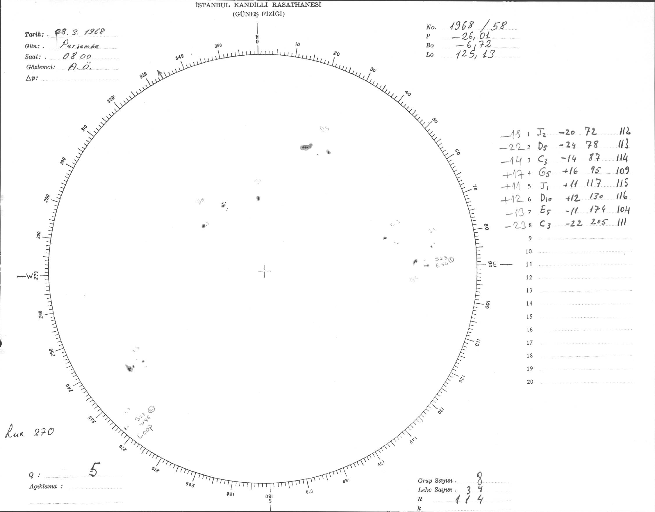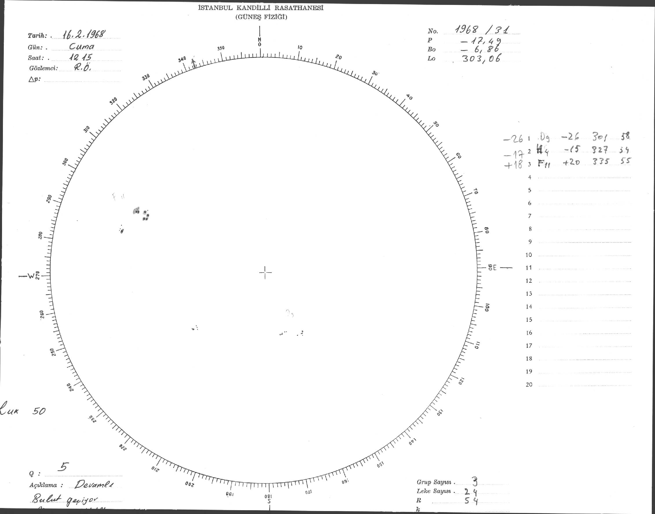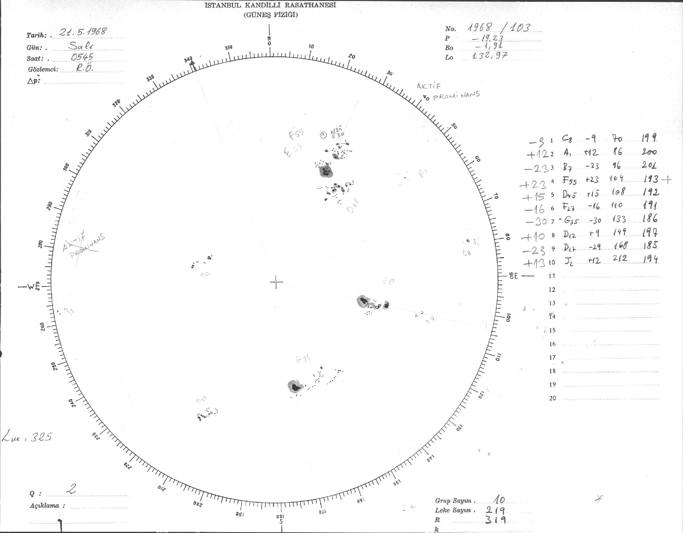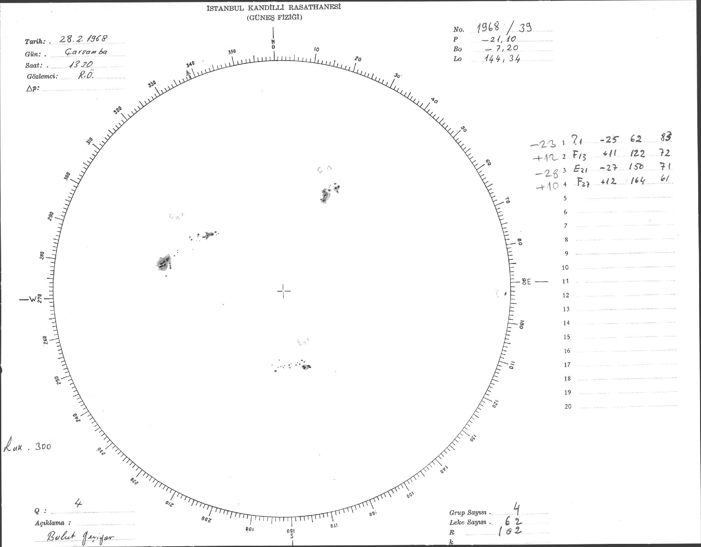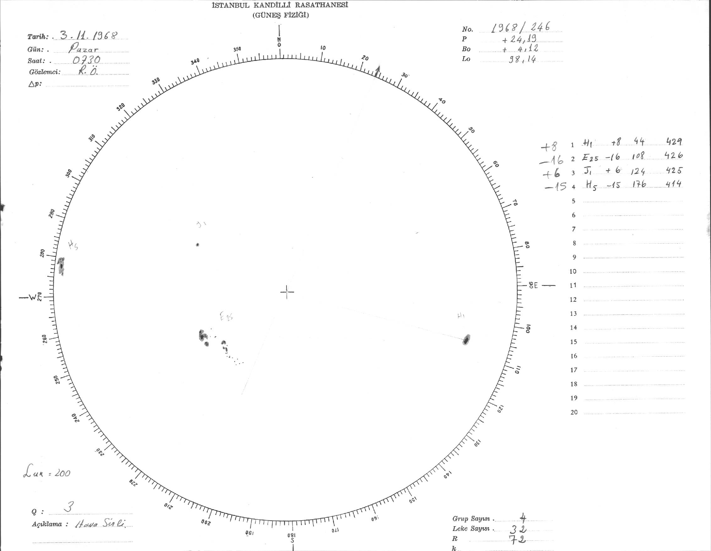 Güneş Lekesi Çizimleri / Kandilli Sunspot Drawings