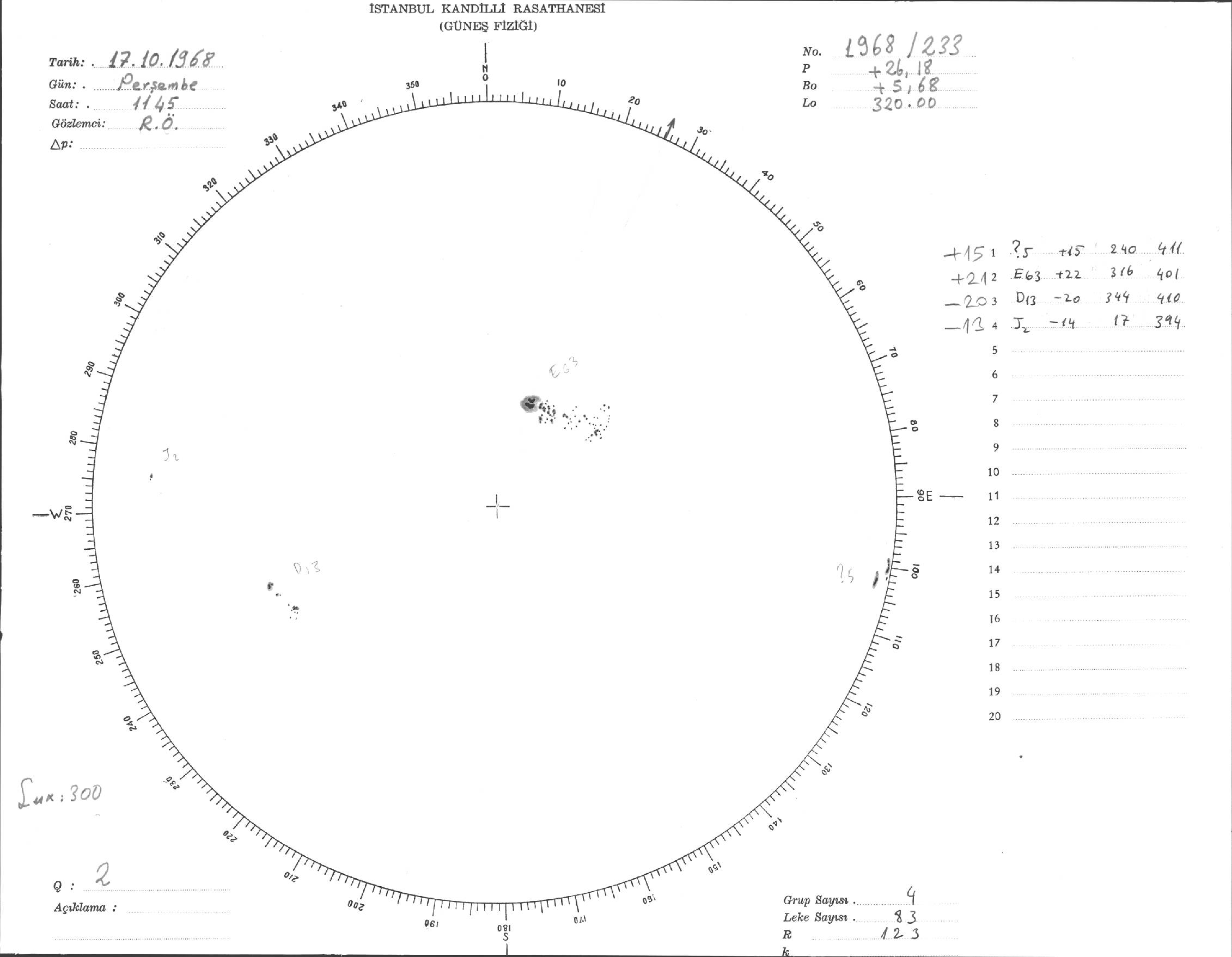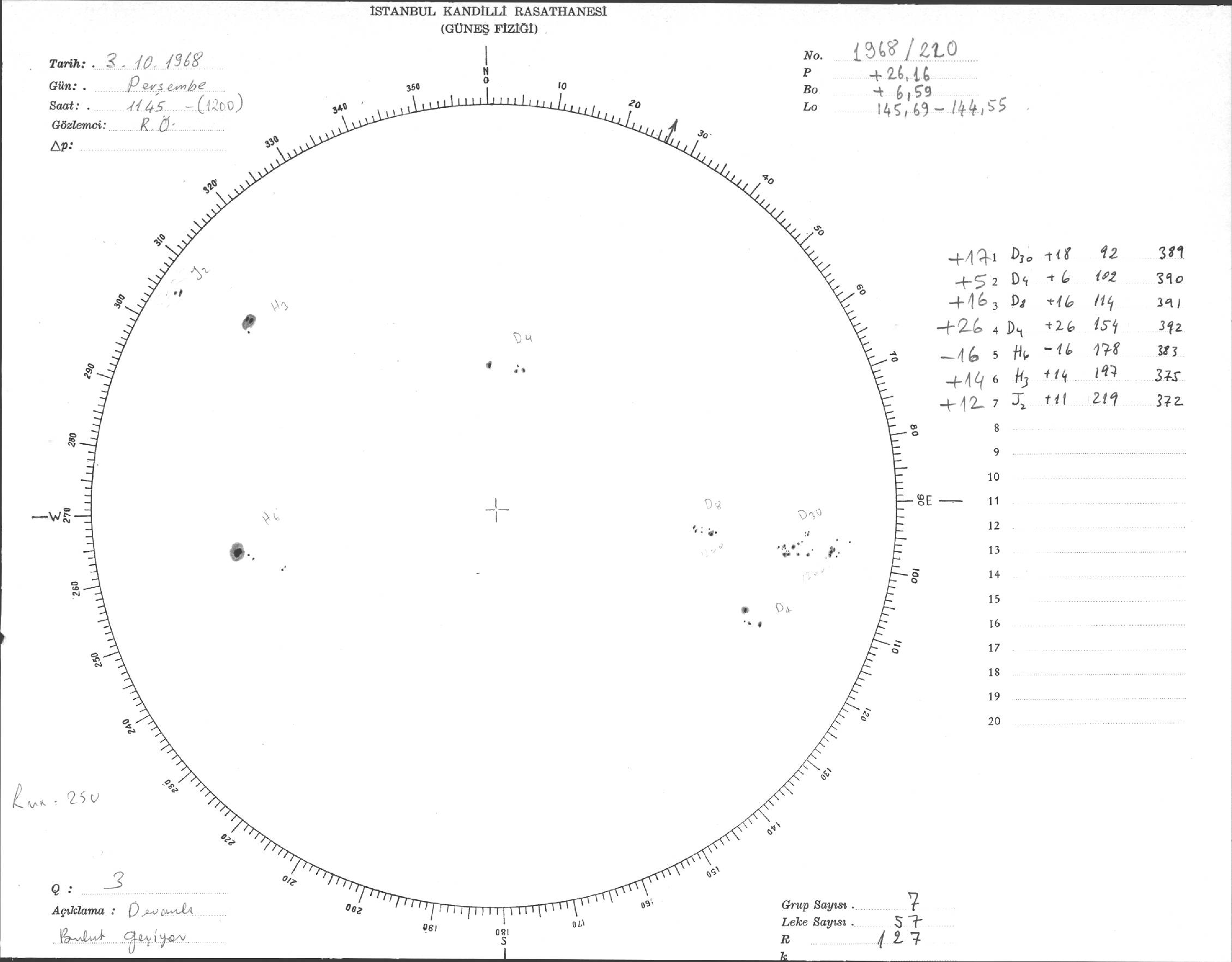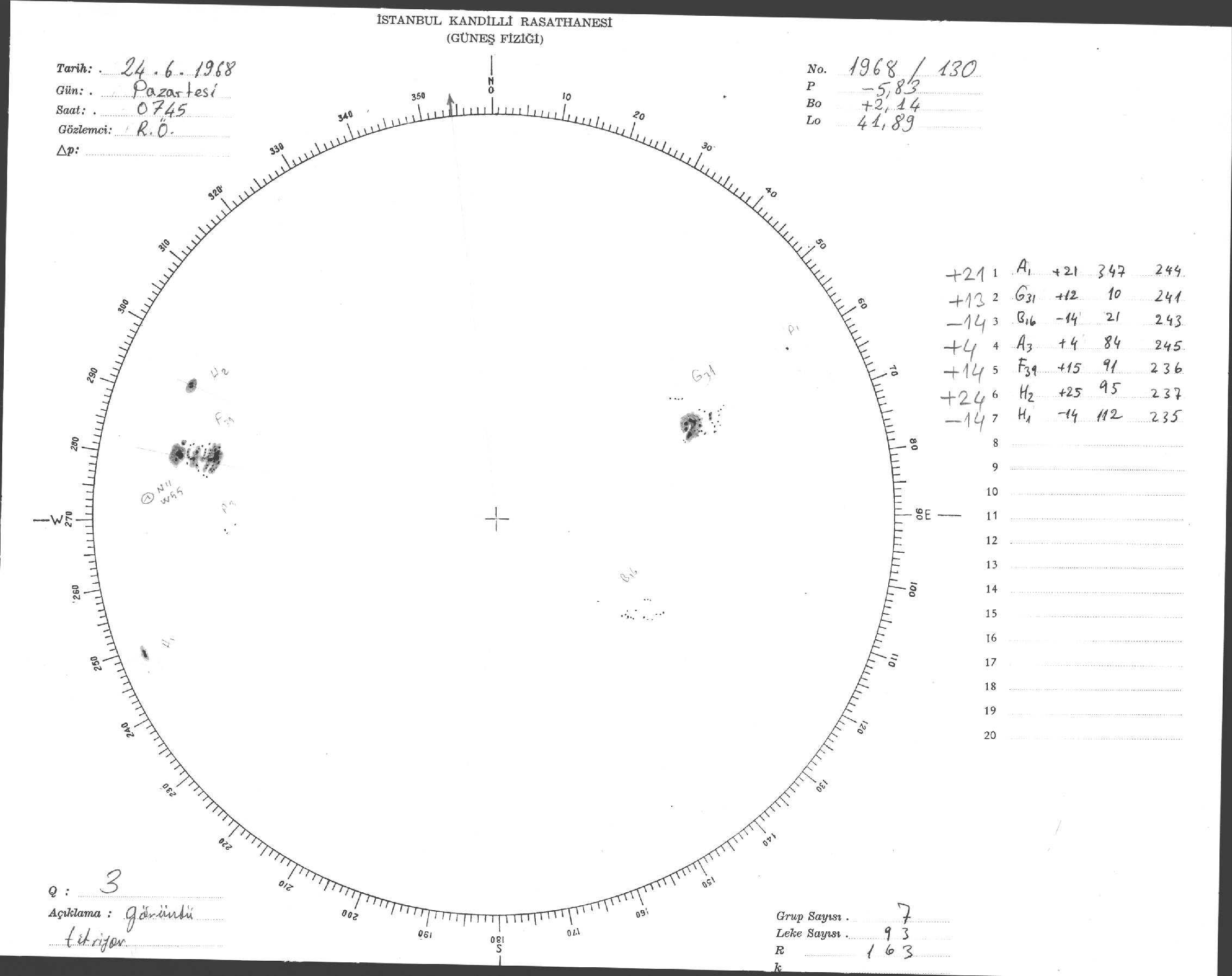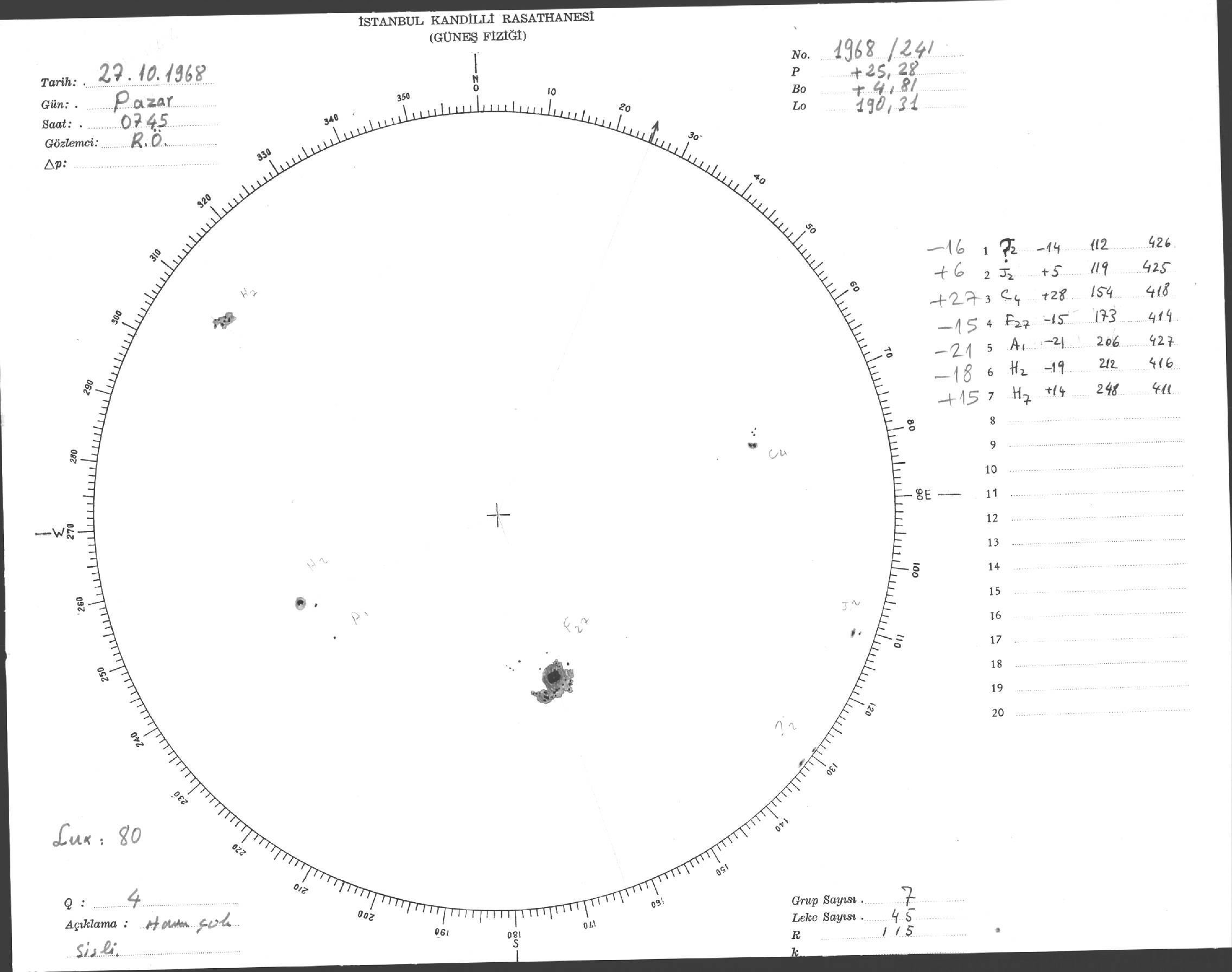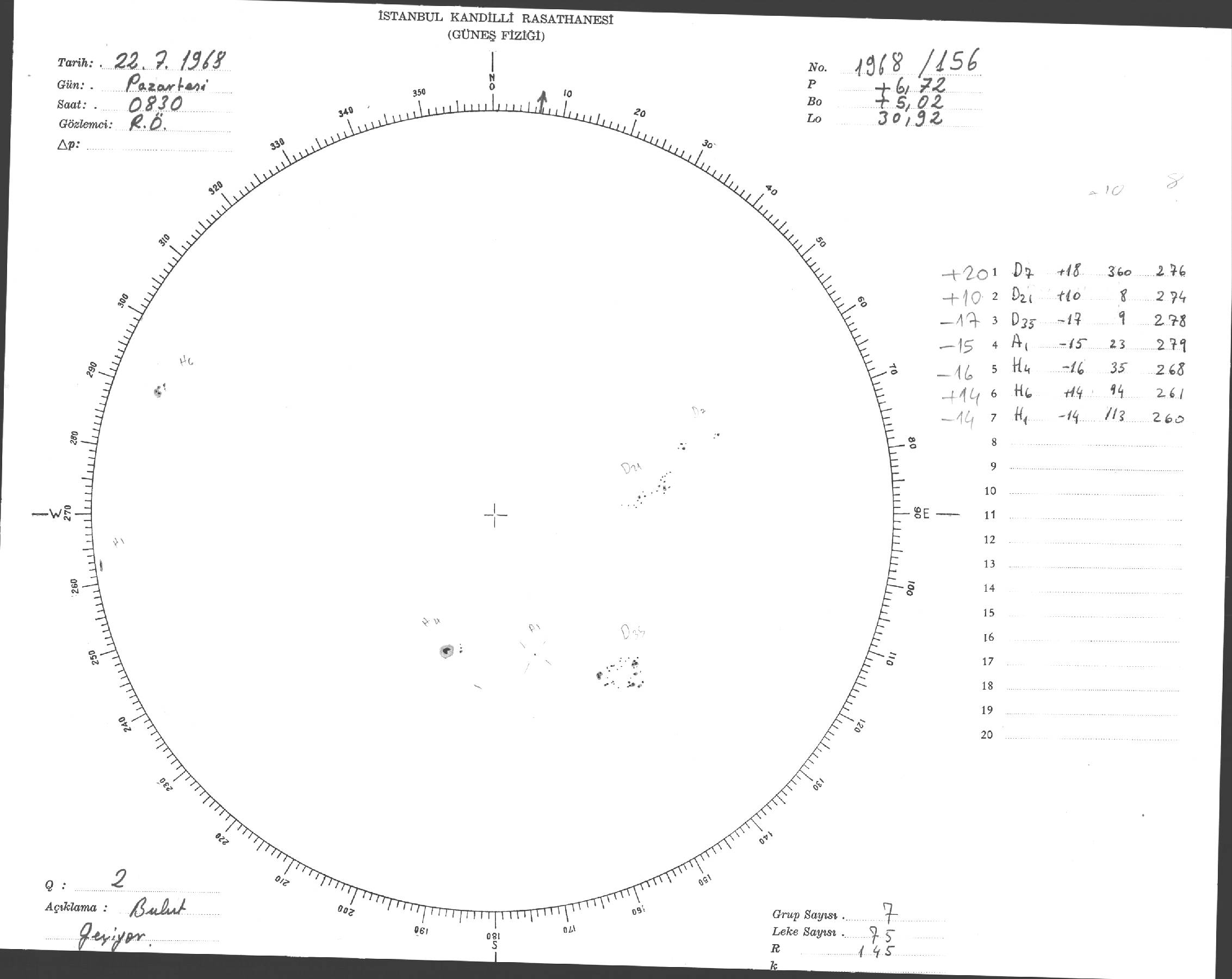Güneş Lekesi Çizimleri / Kandilli Sunspot Drawings