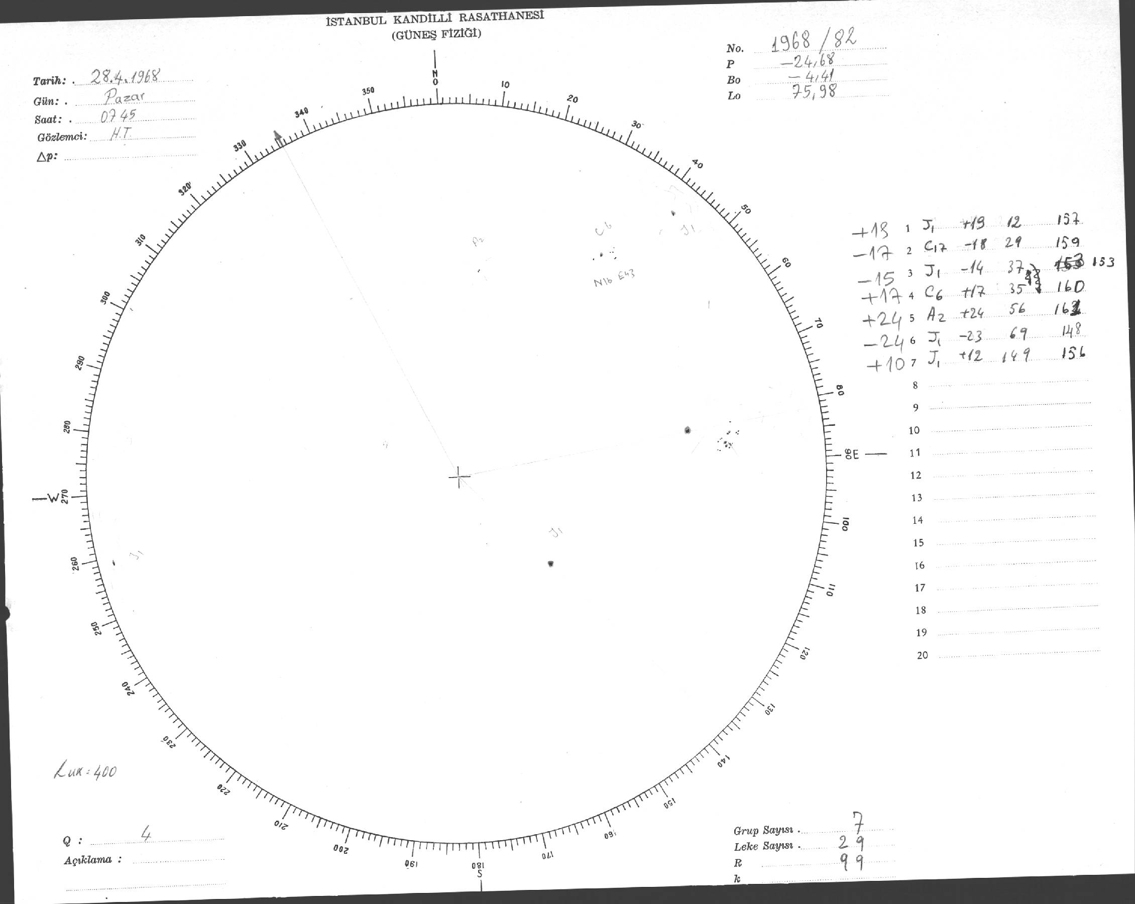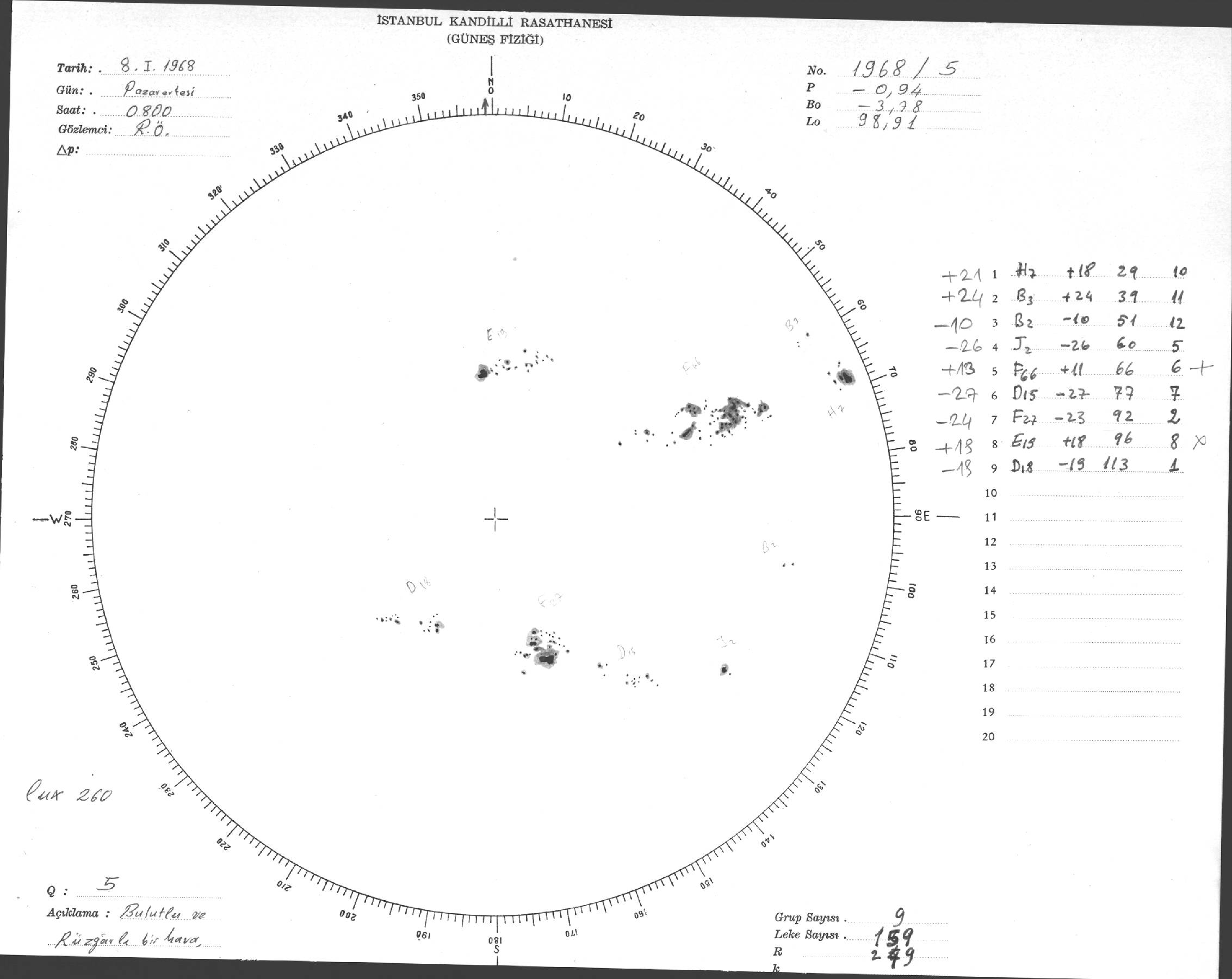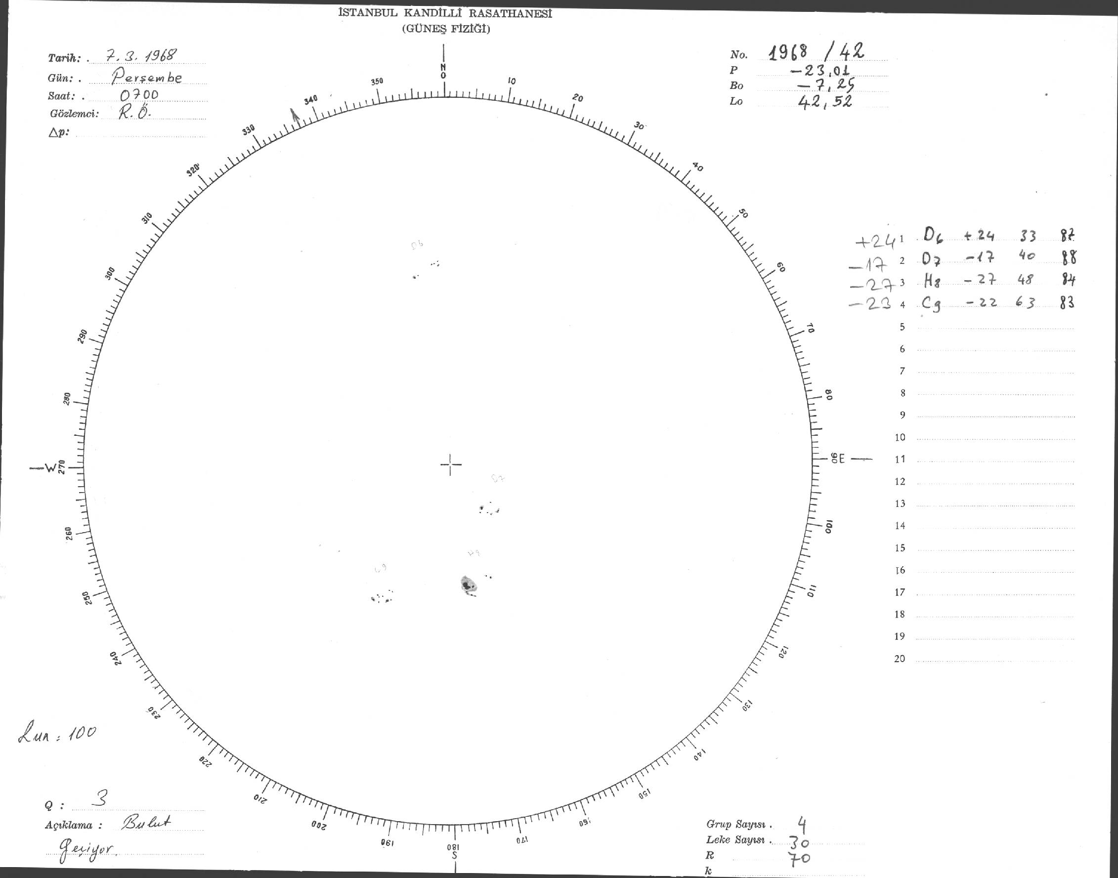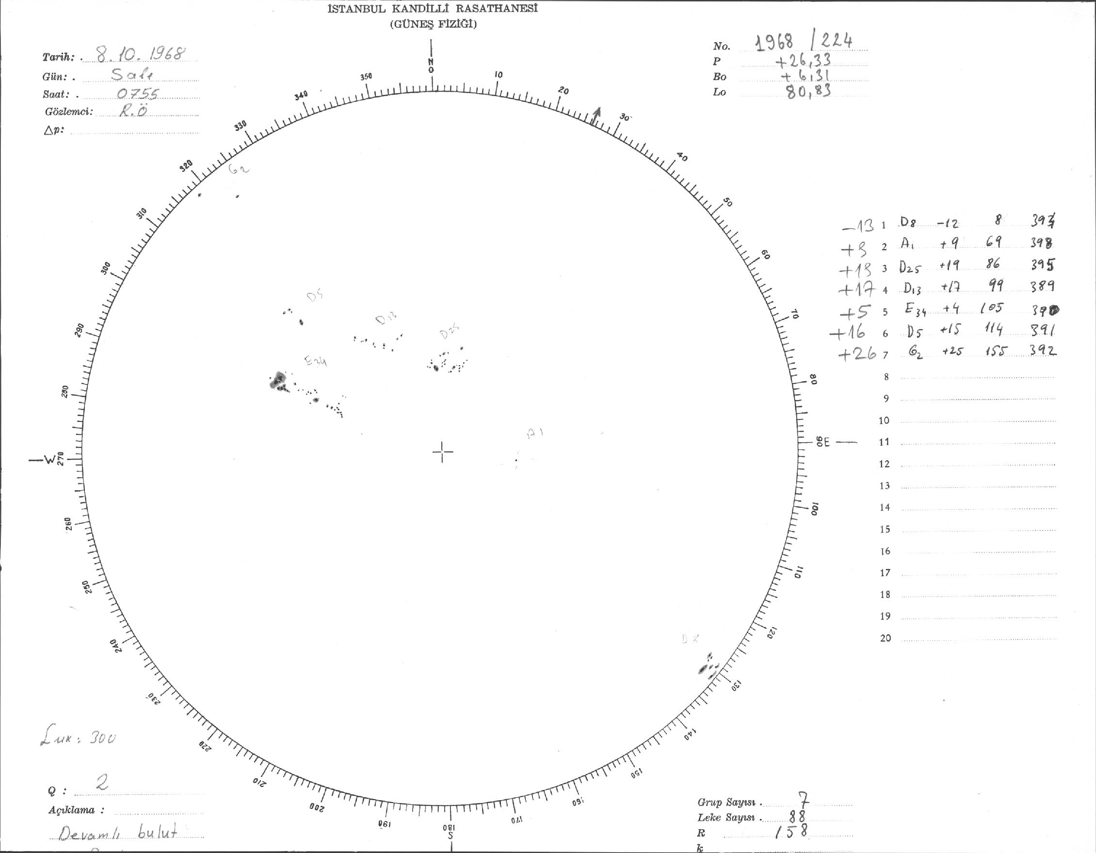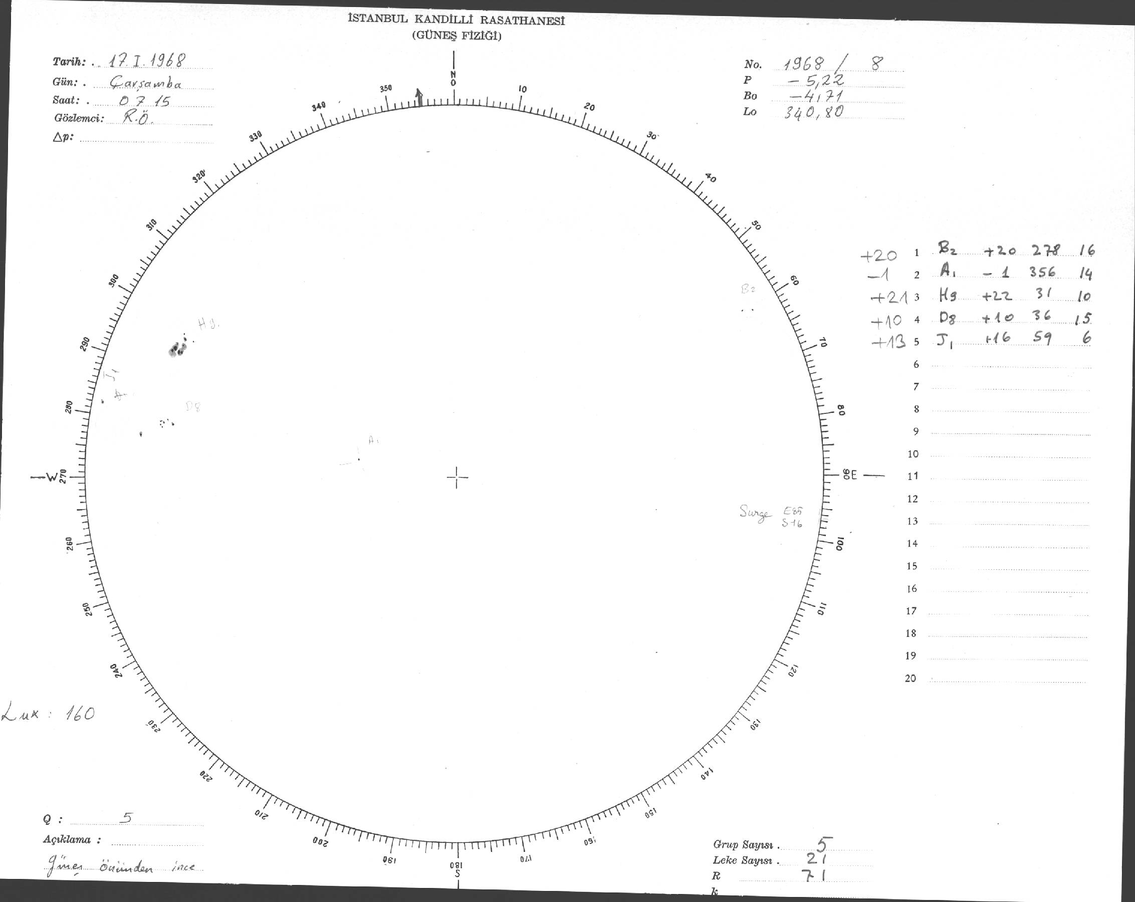 Güneş Lekesi Çizimleri / Kandilli Sunspot Drawings