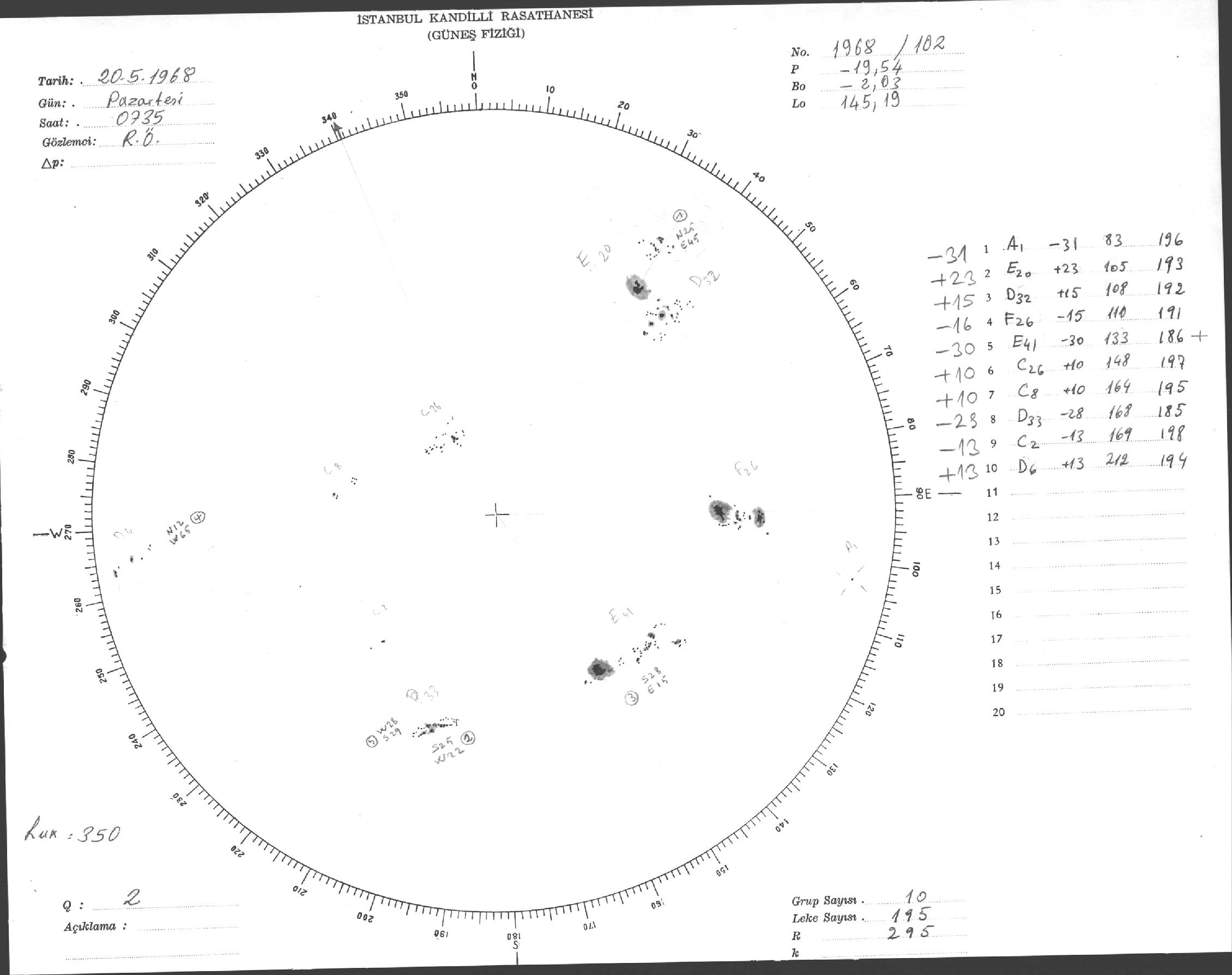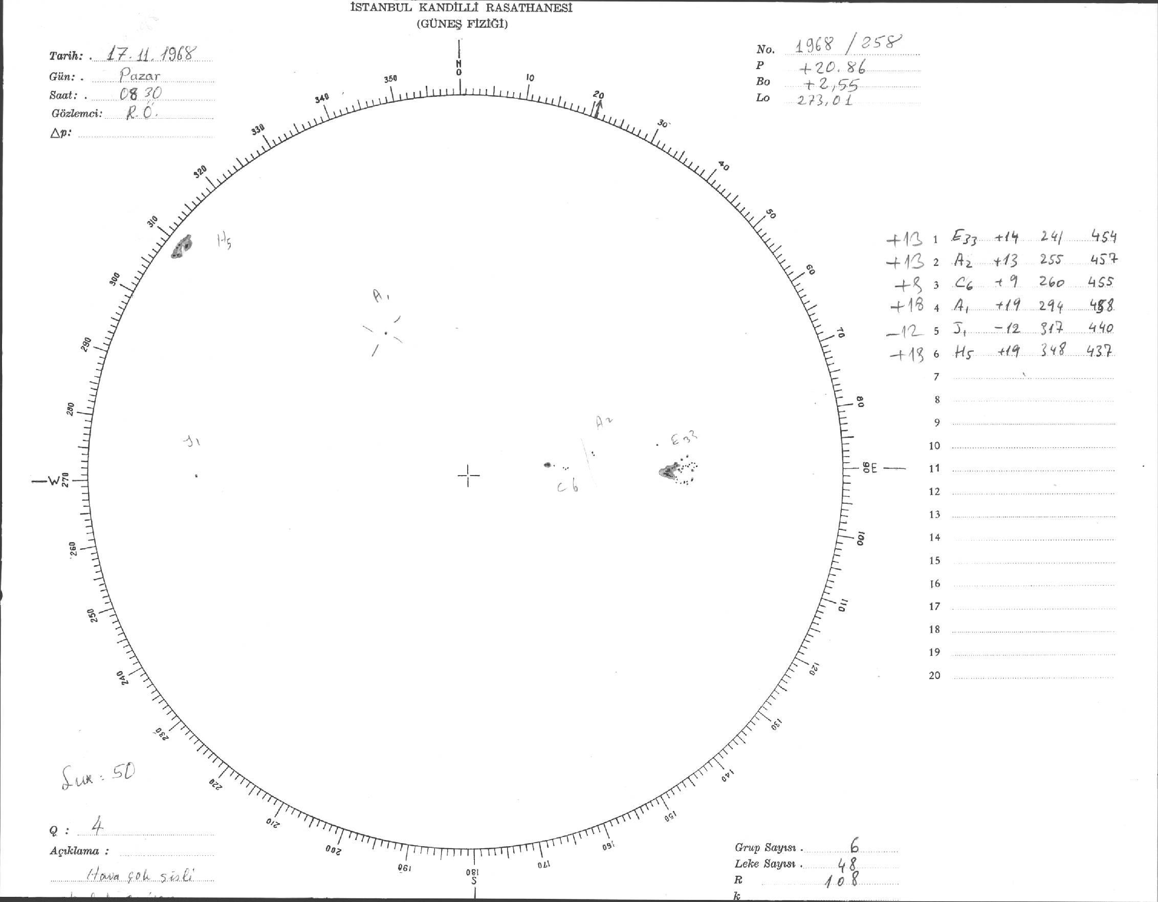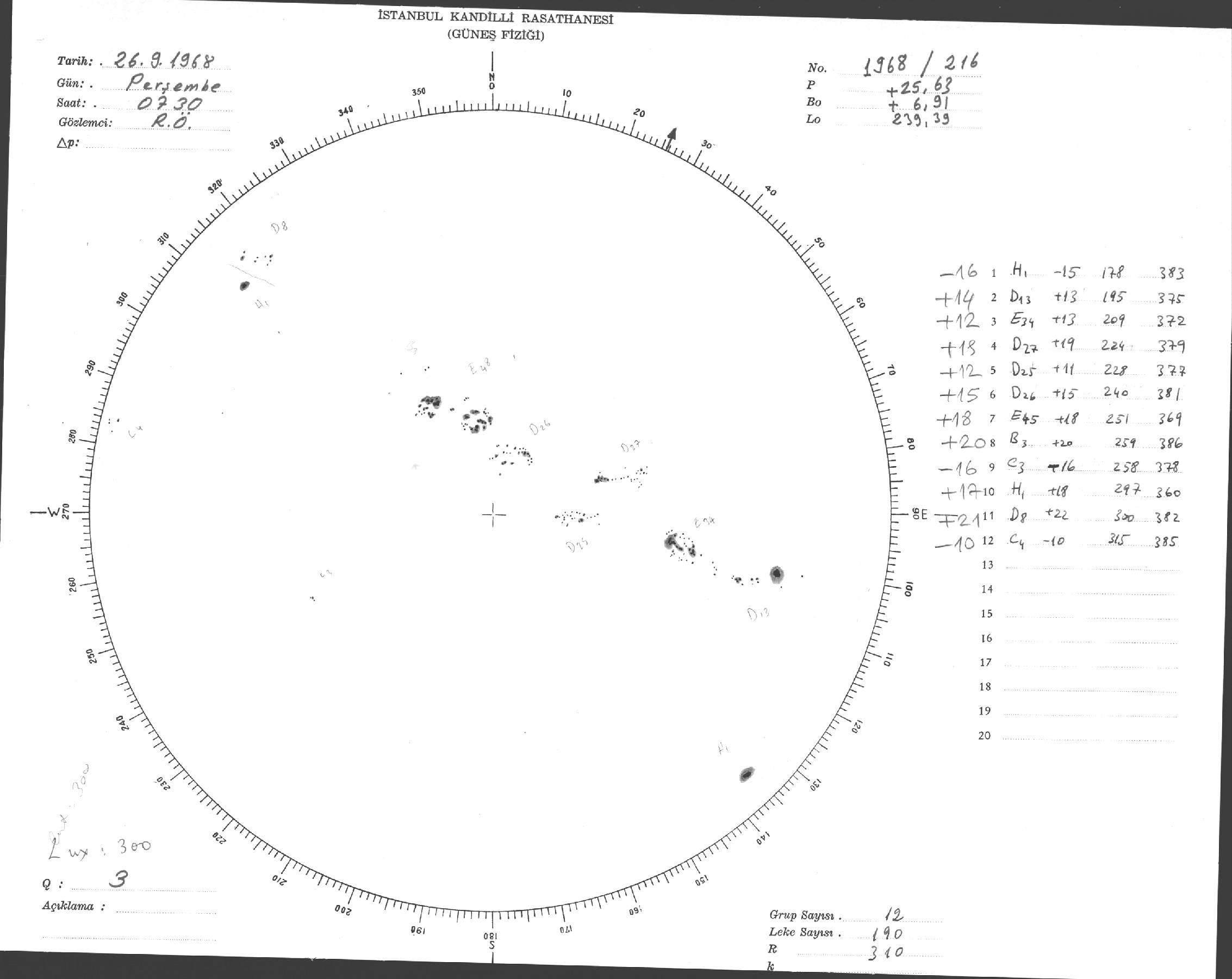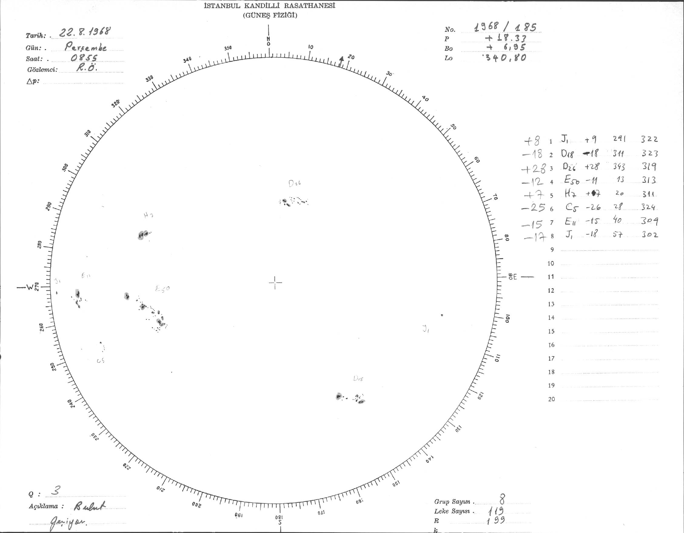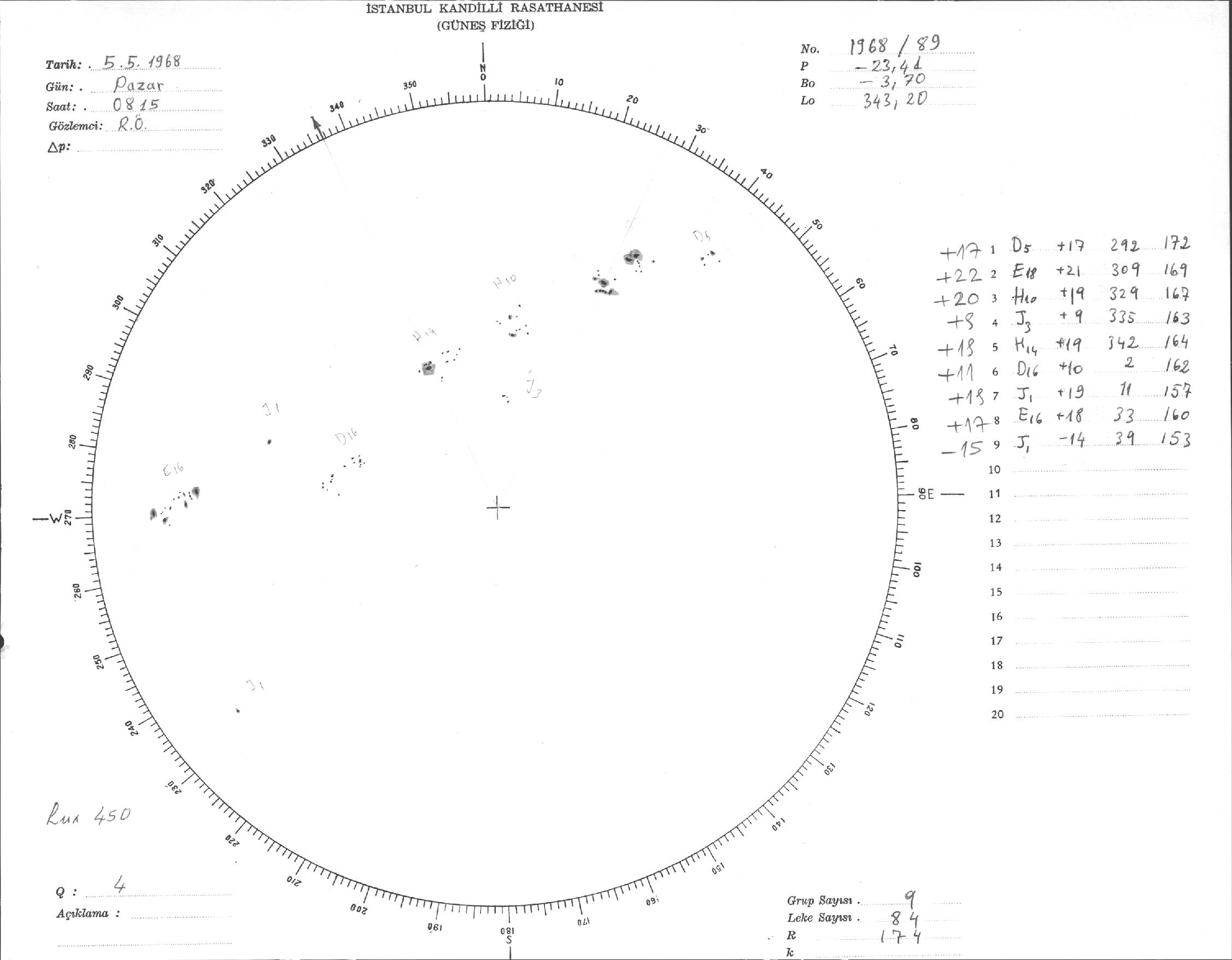 Güneş Lekesi Çizimleri / Kandilli Sunspot Drawings