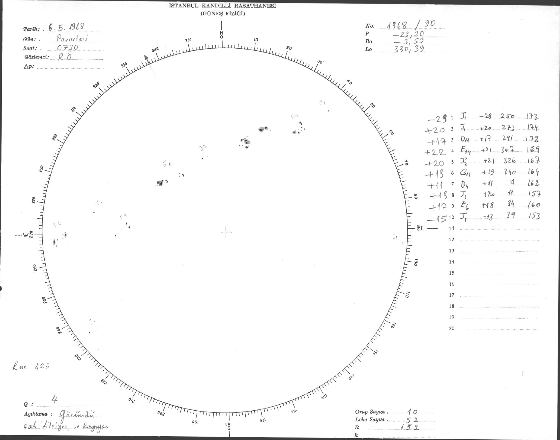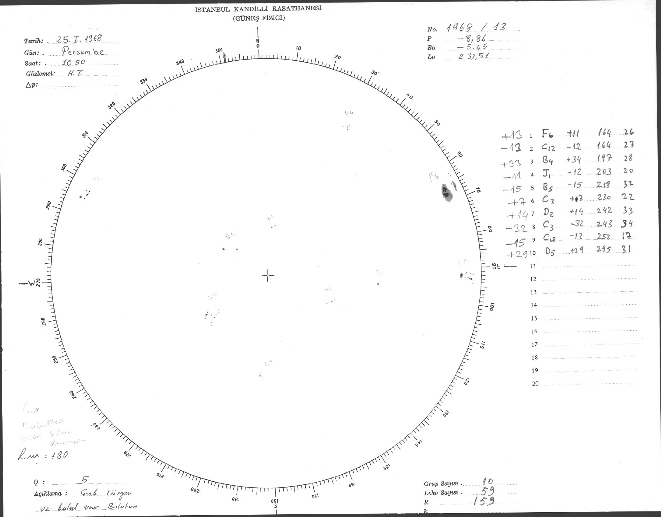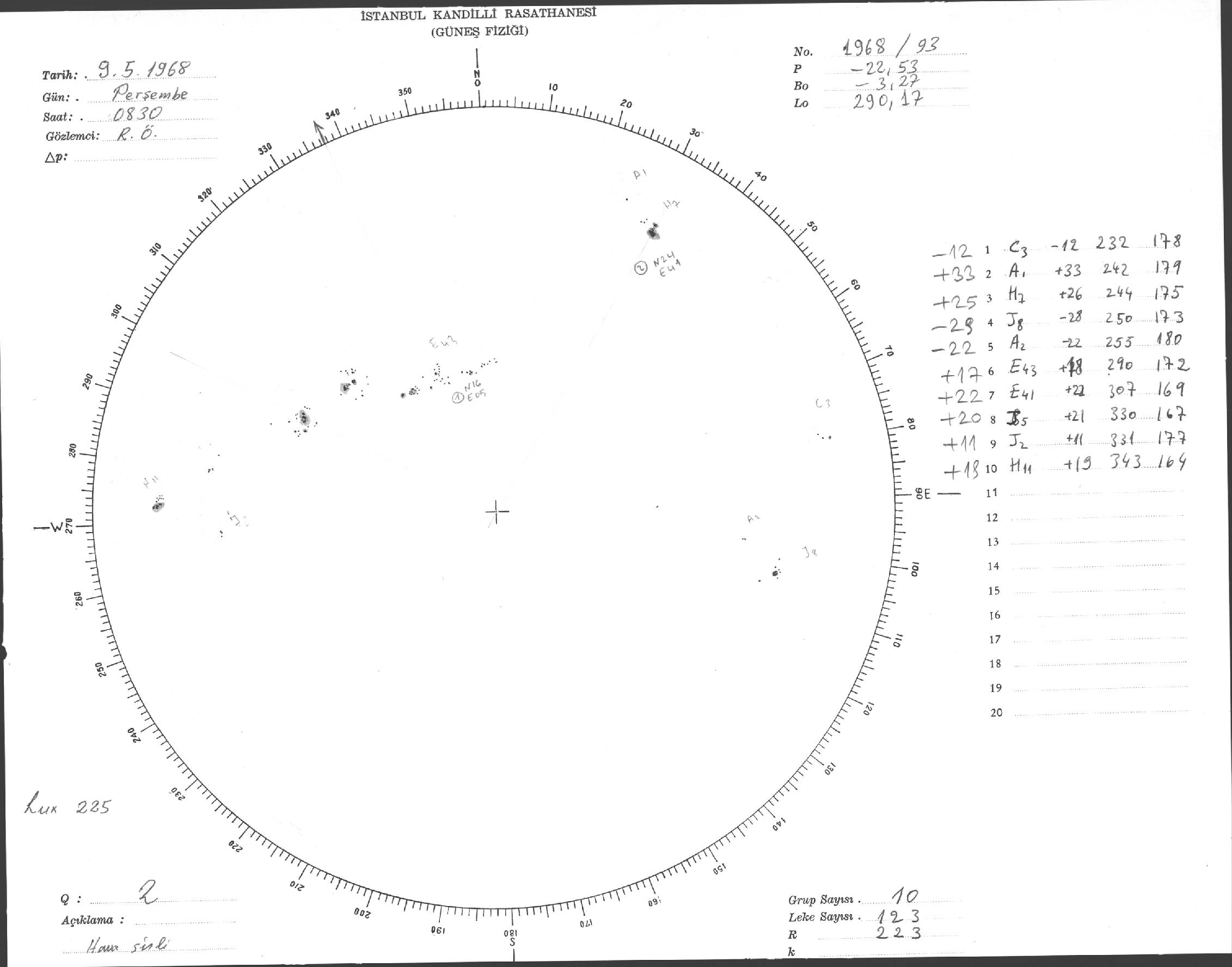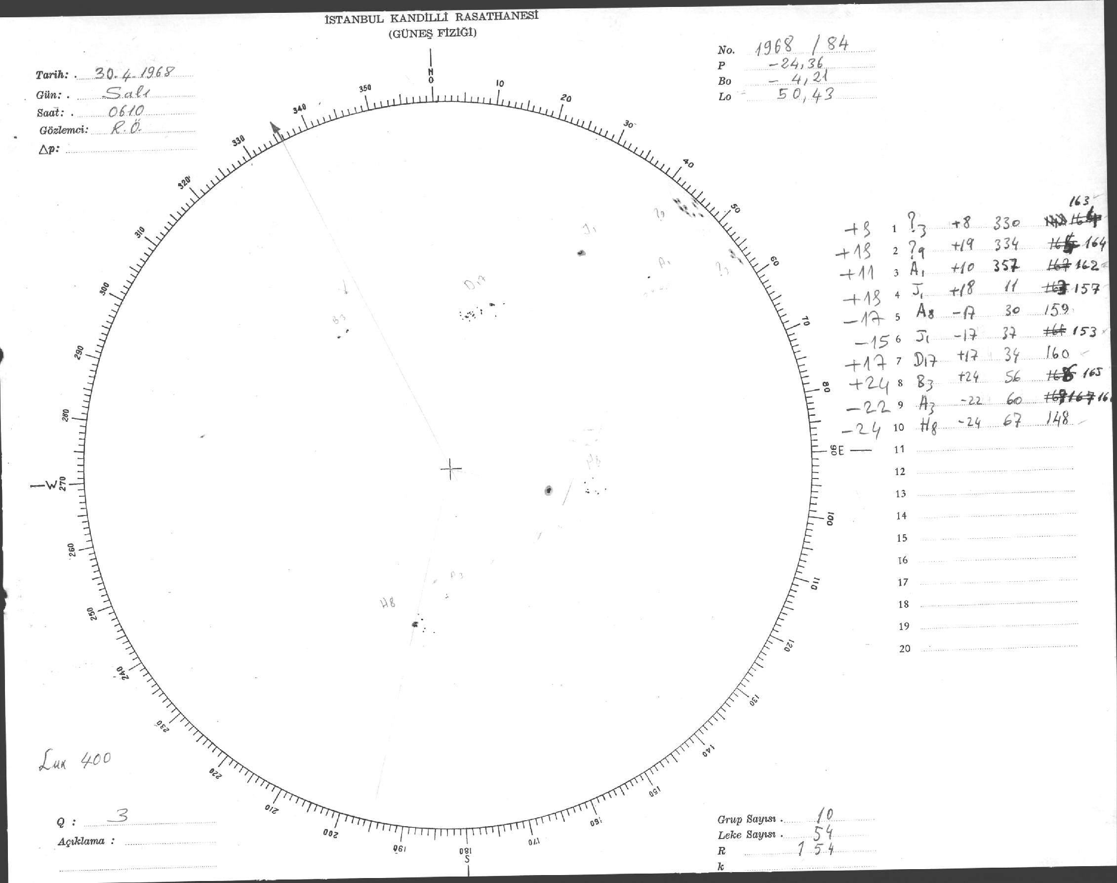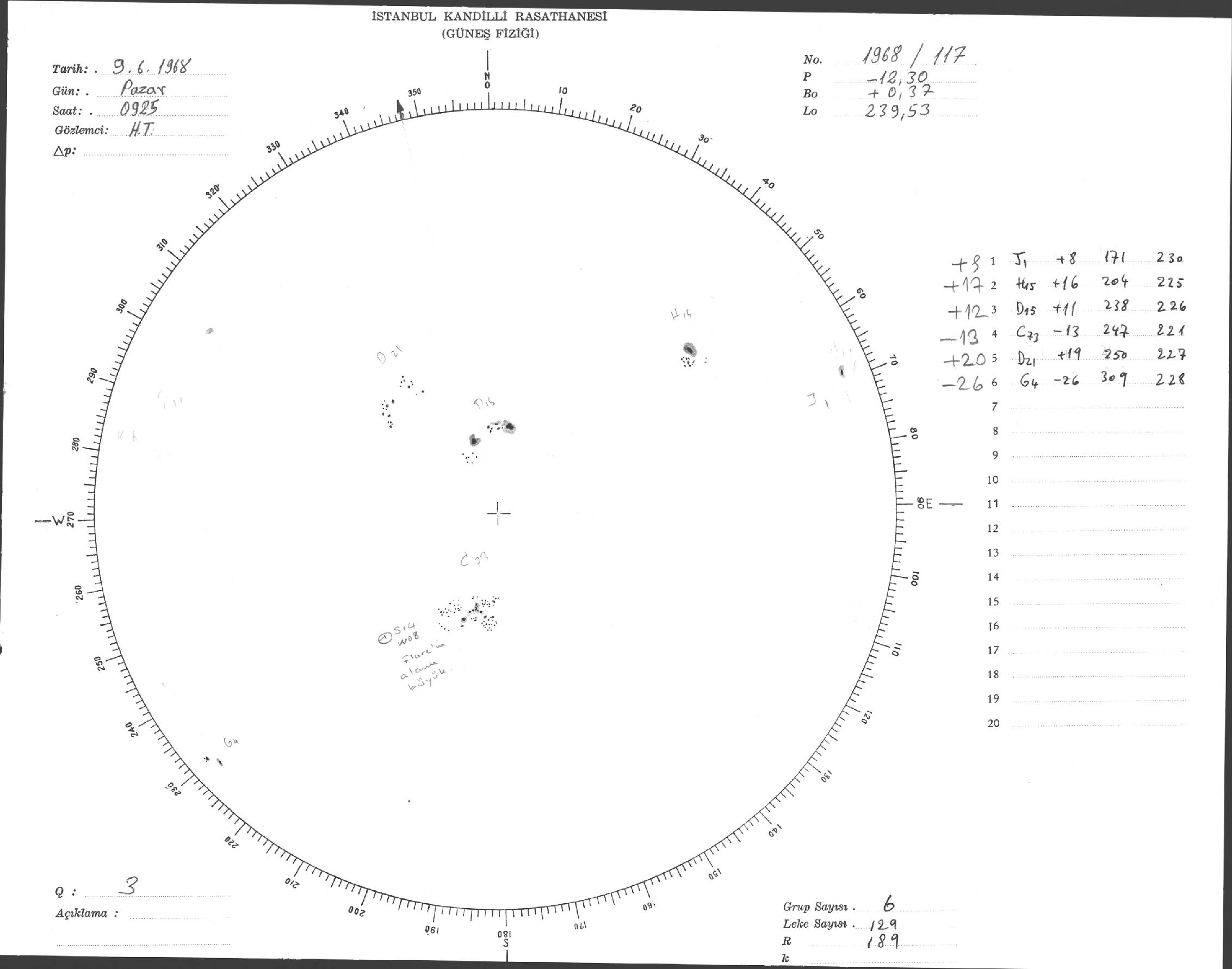 Güneş Lekesi Çizimleri / Kandilli Sunspot Drawings