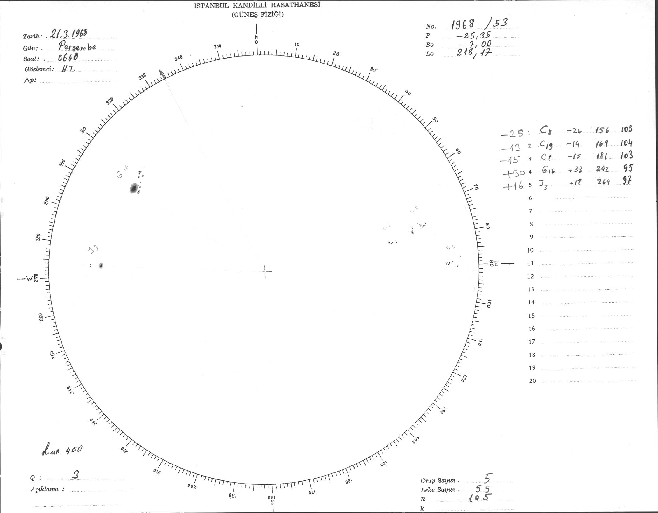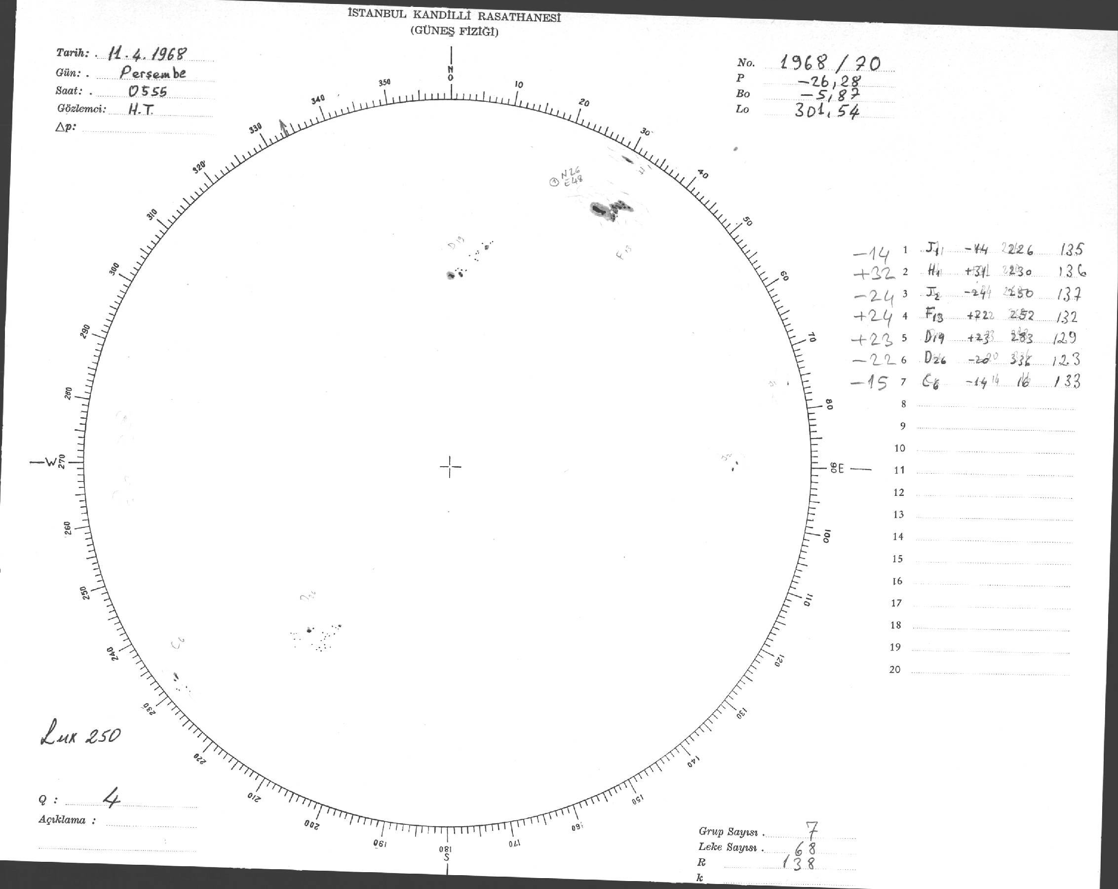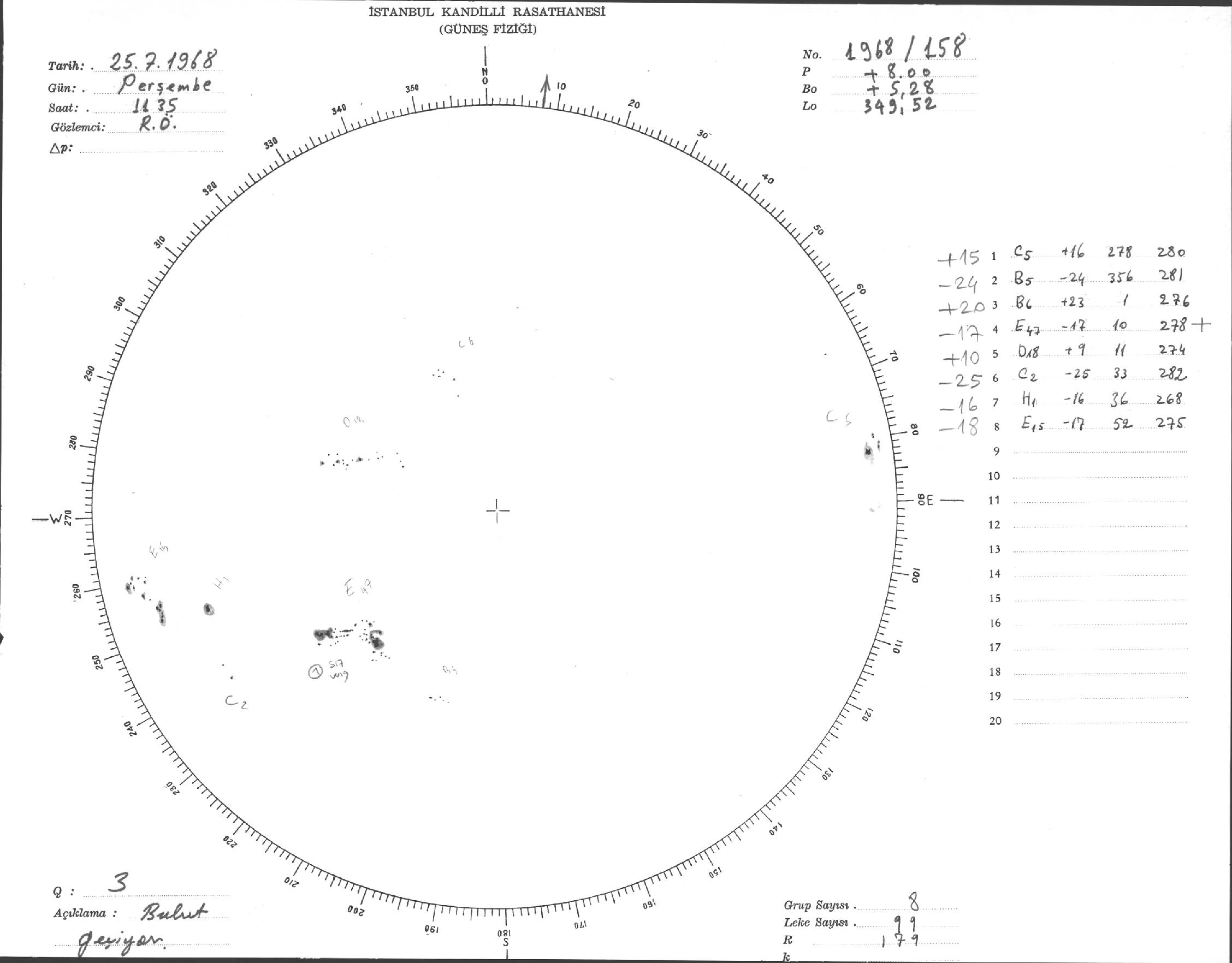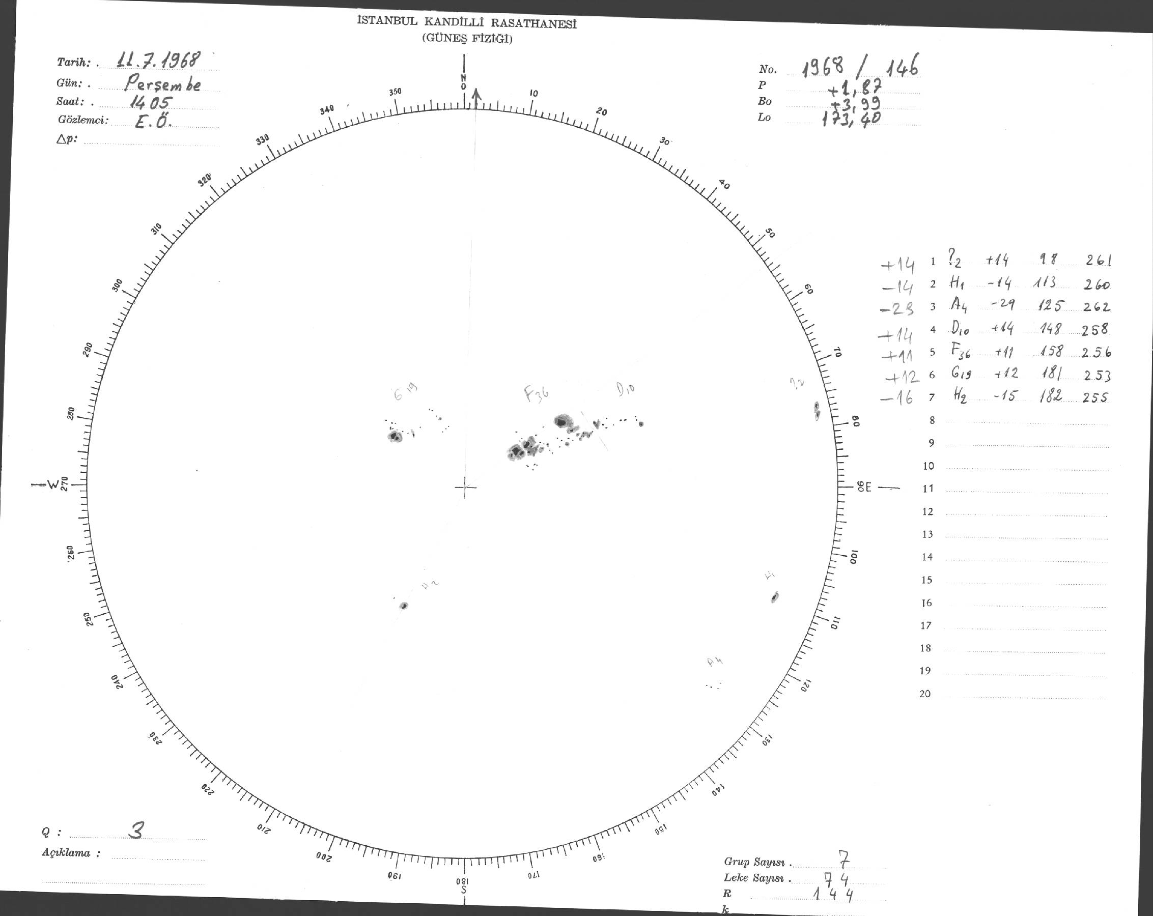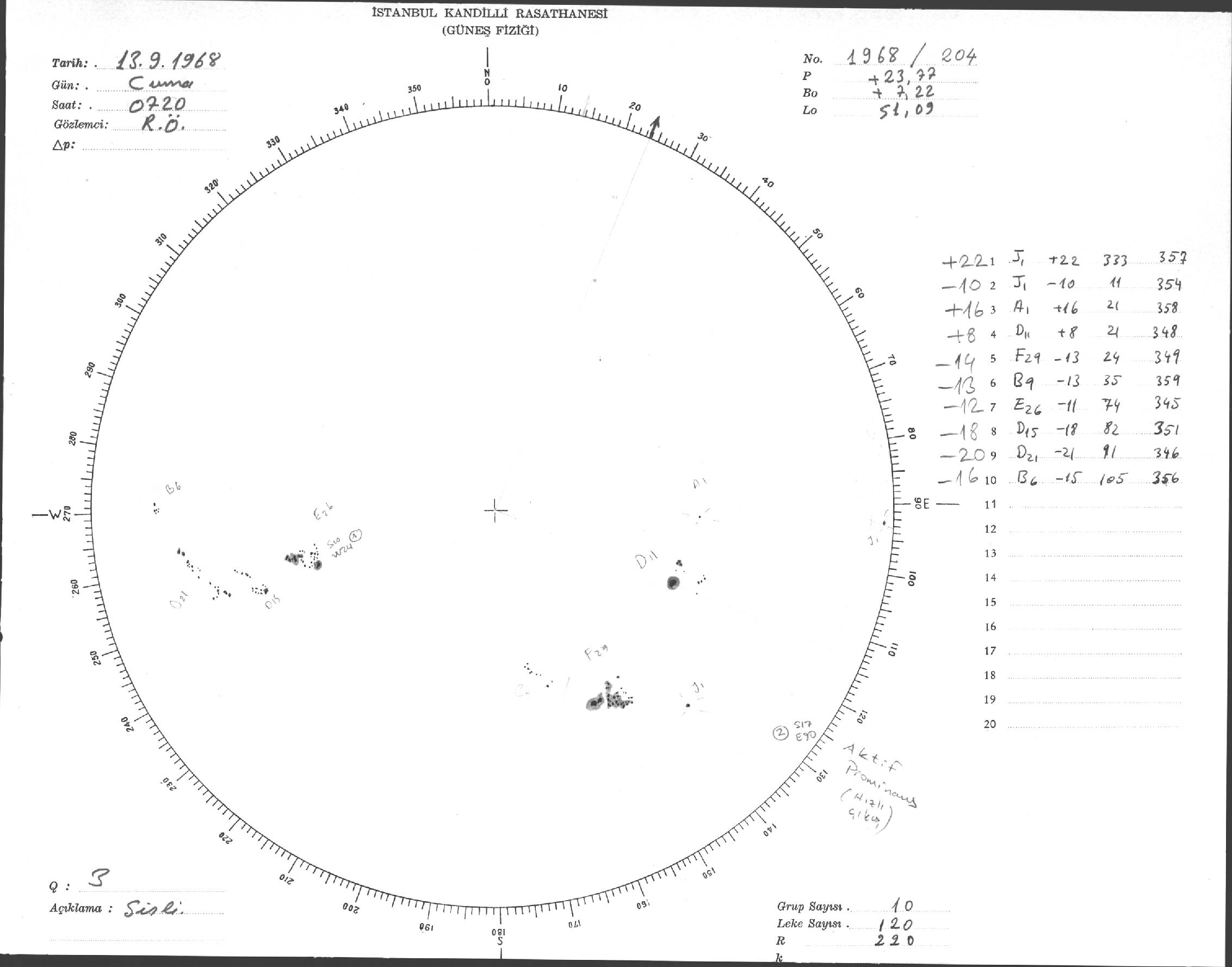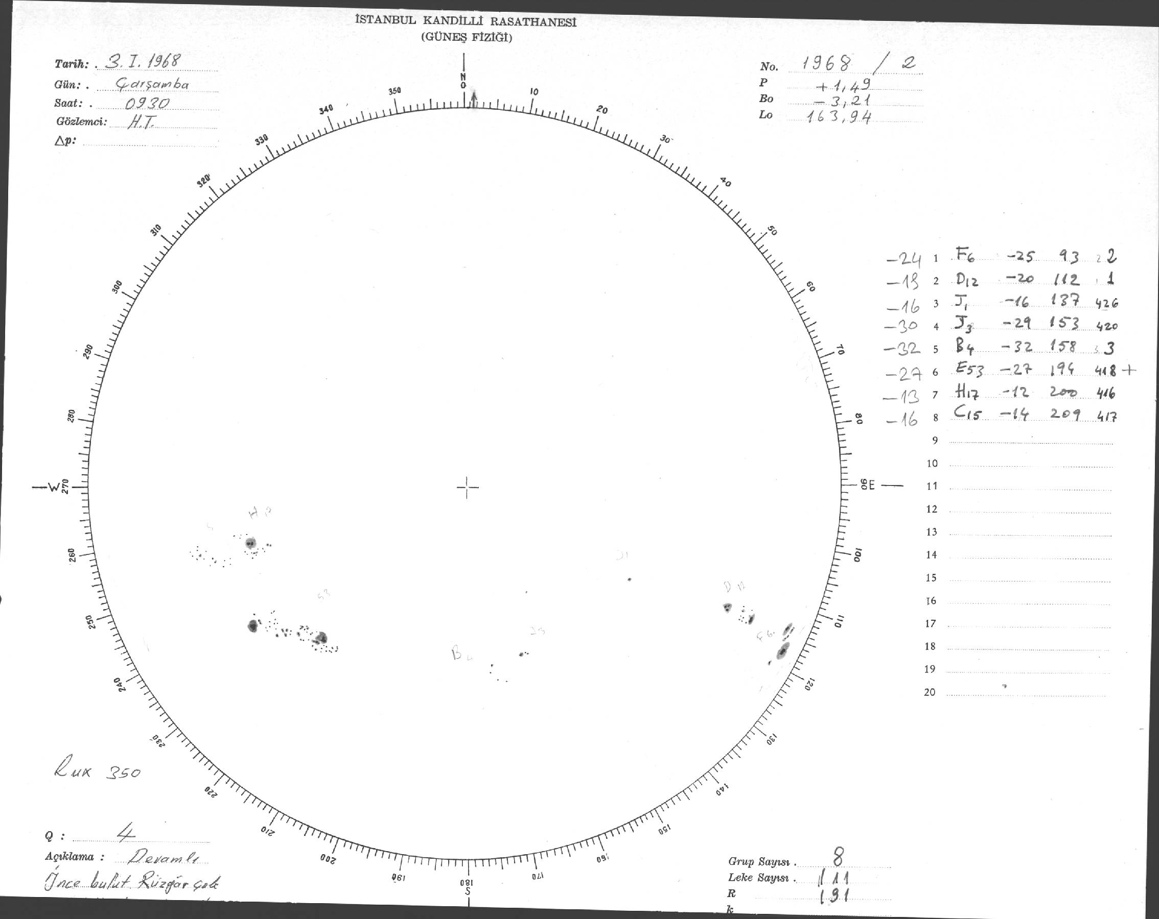 Güneş Lekesi Çizimleri / Kandilli Sunspot Drawings