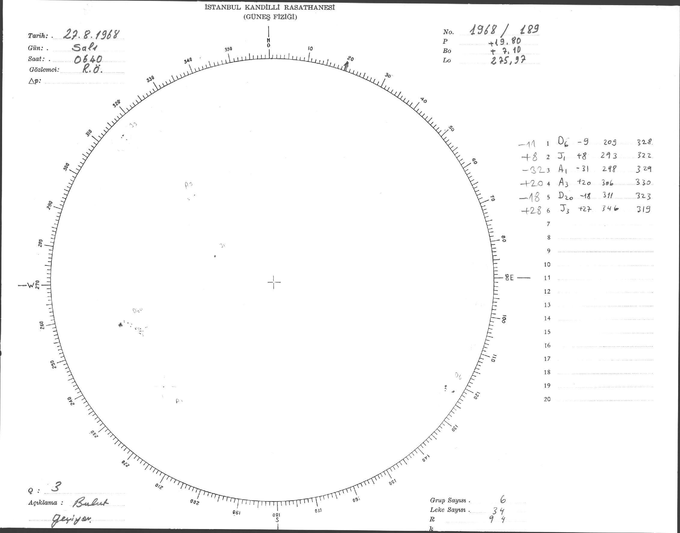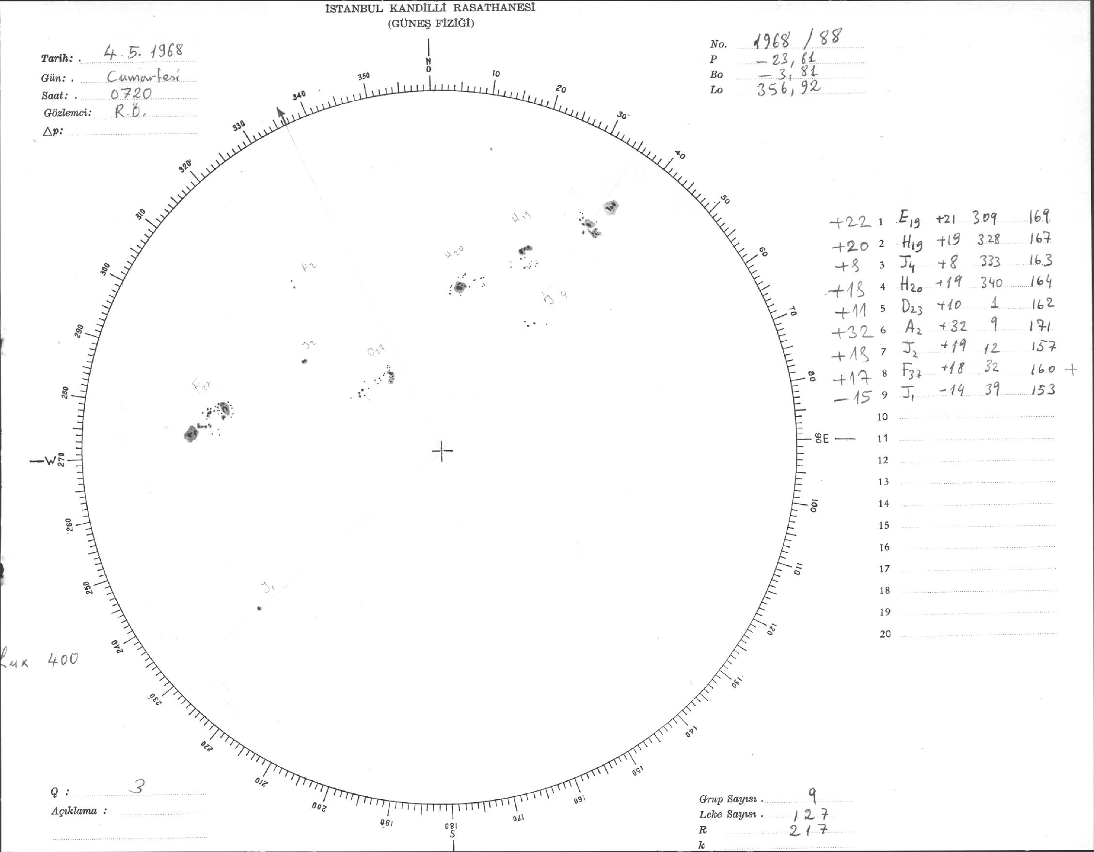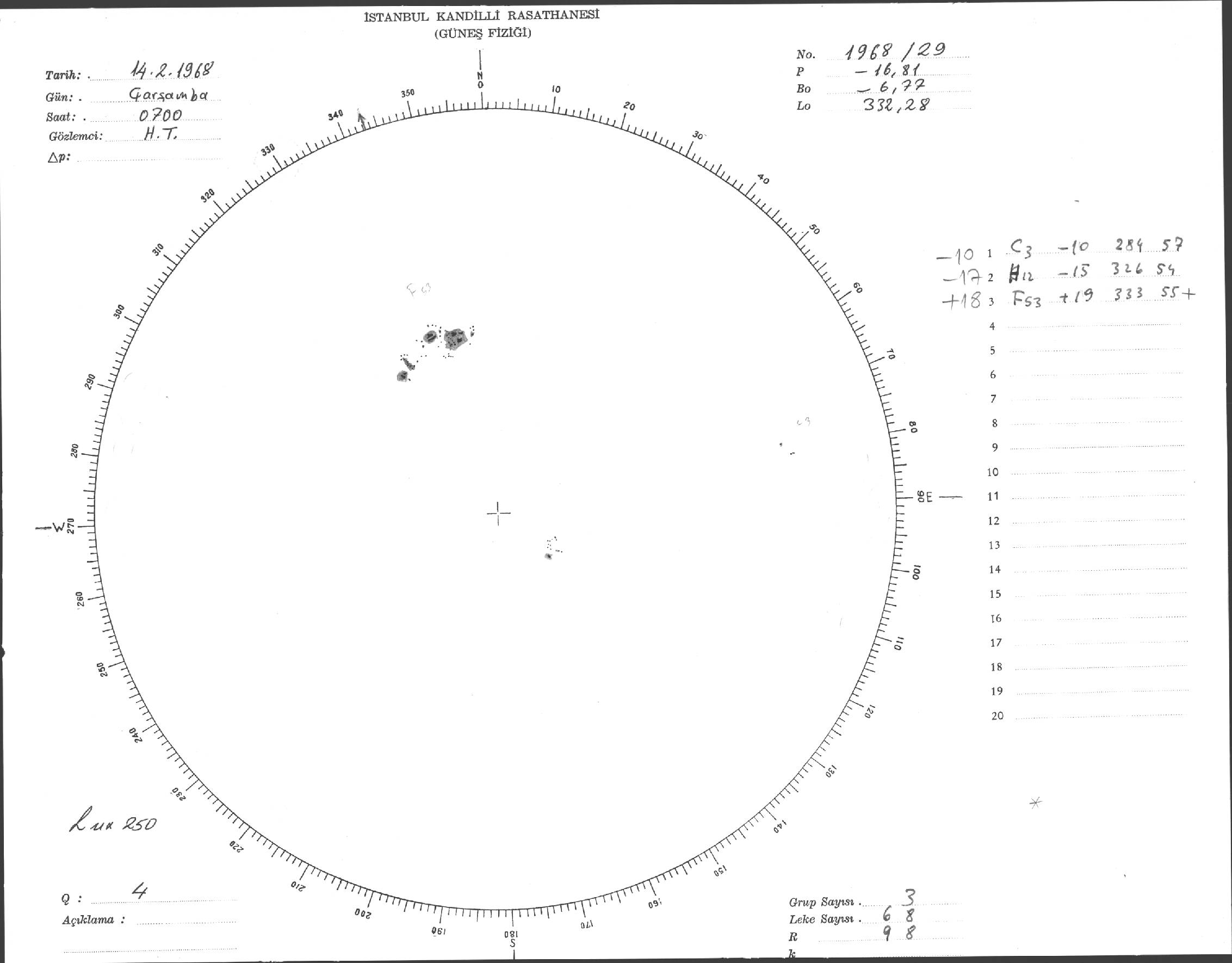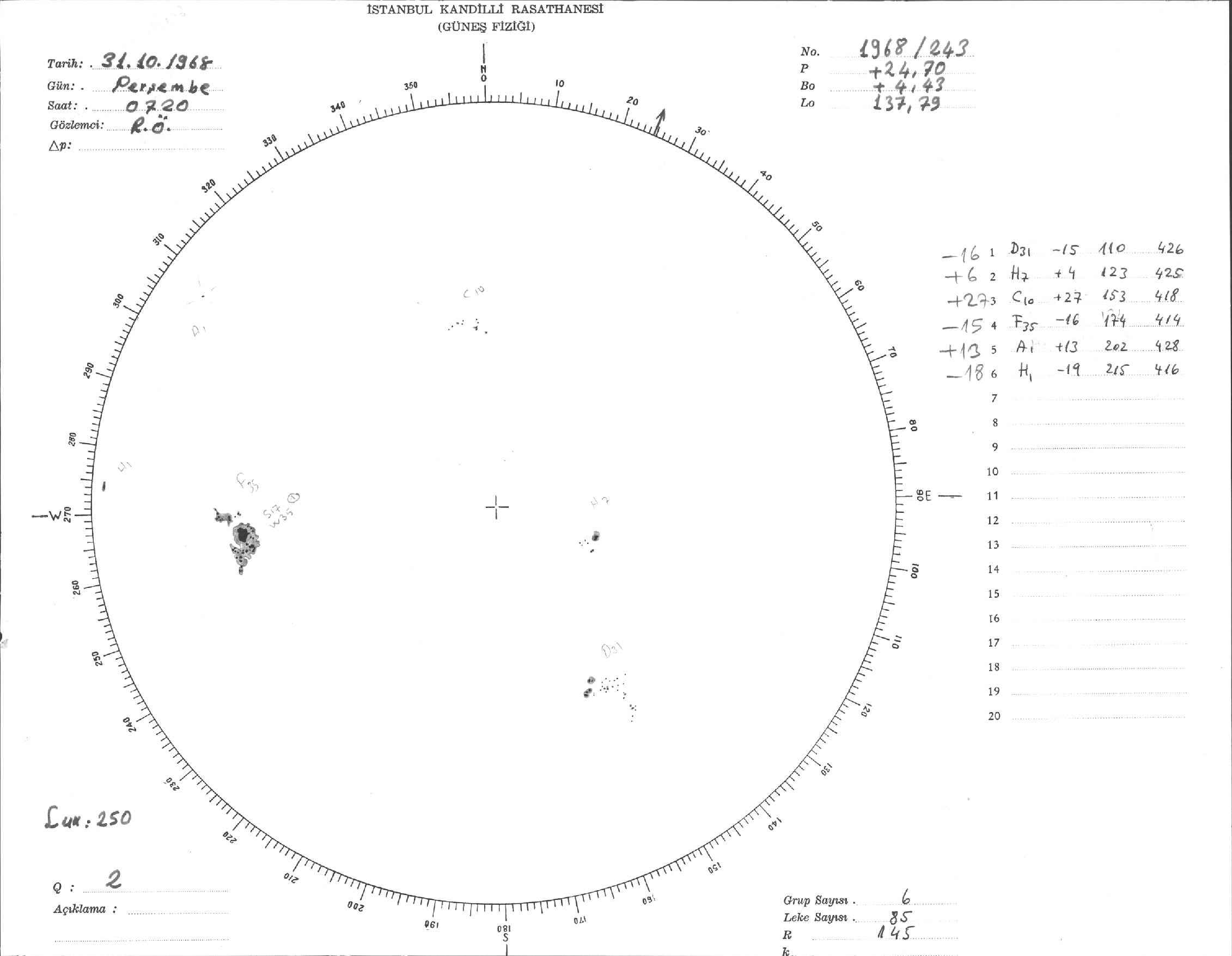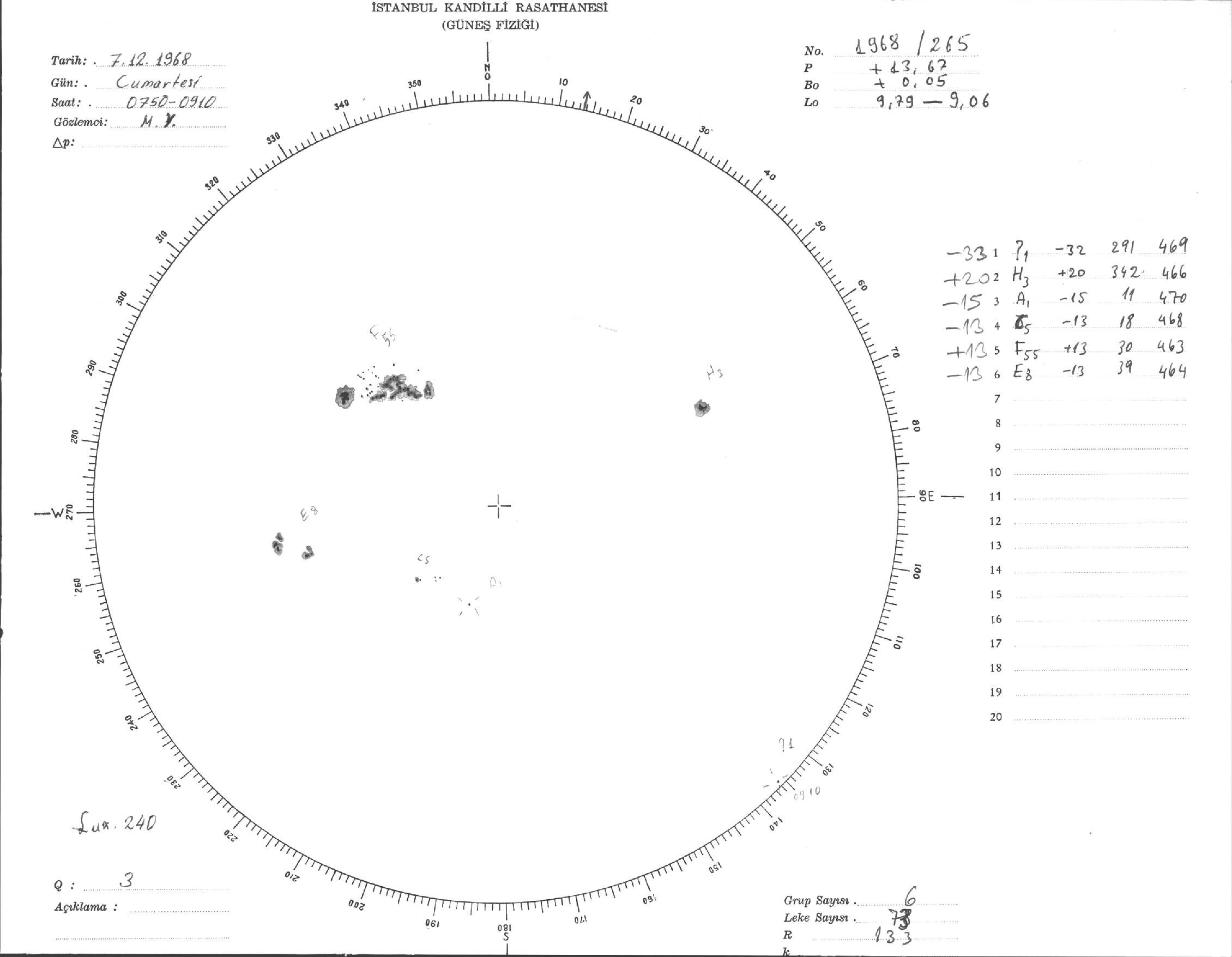 Güneş Lekesi Çizimleri / Kandilli Sunspot Drawings