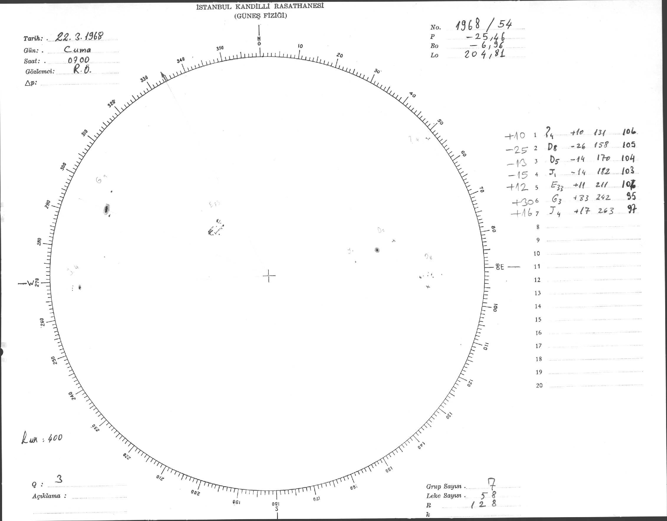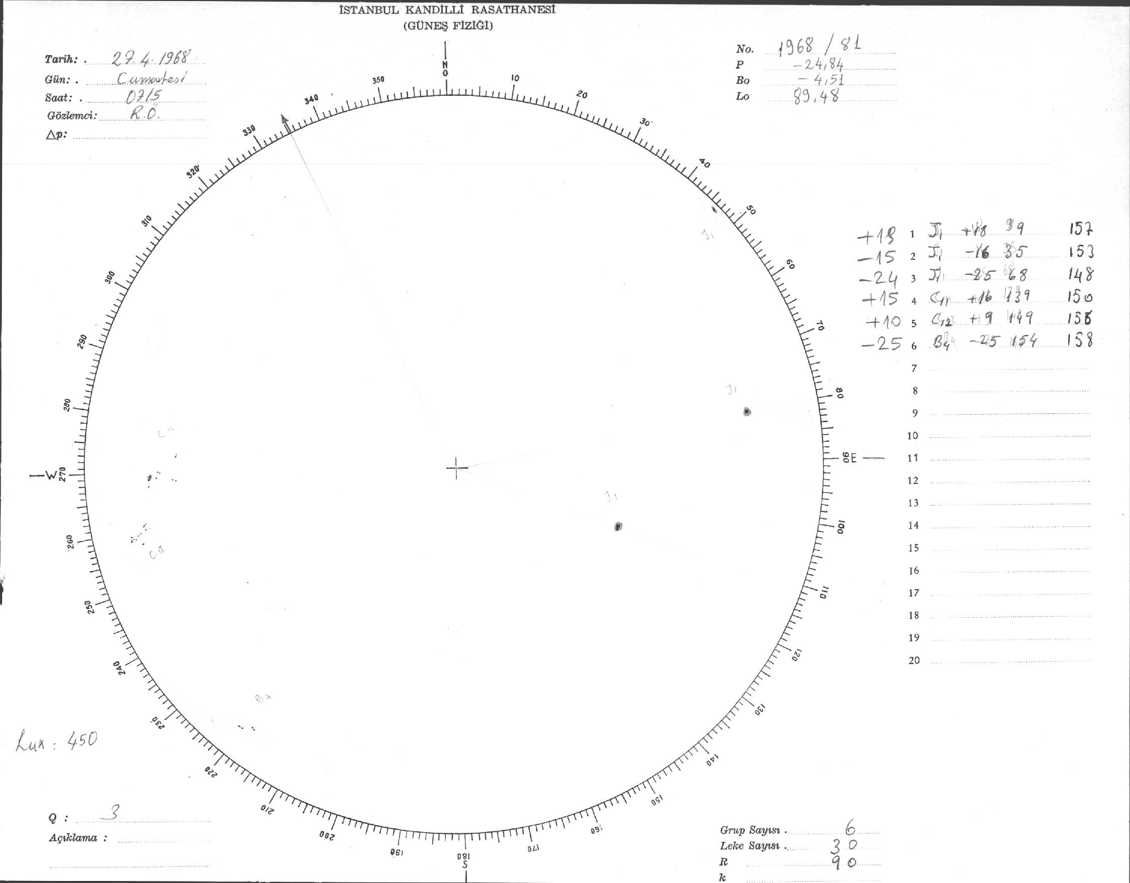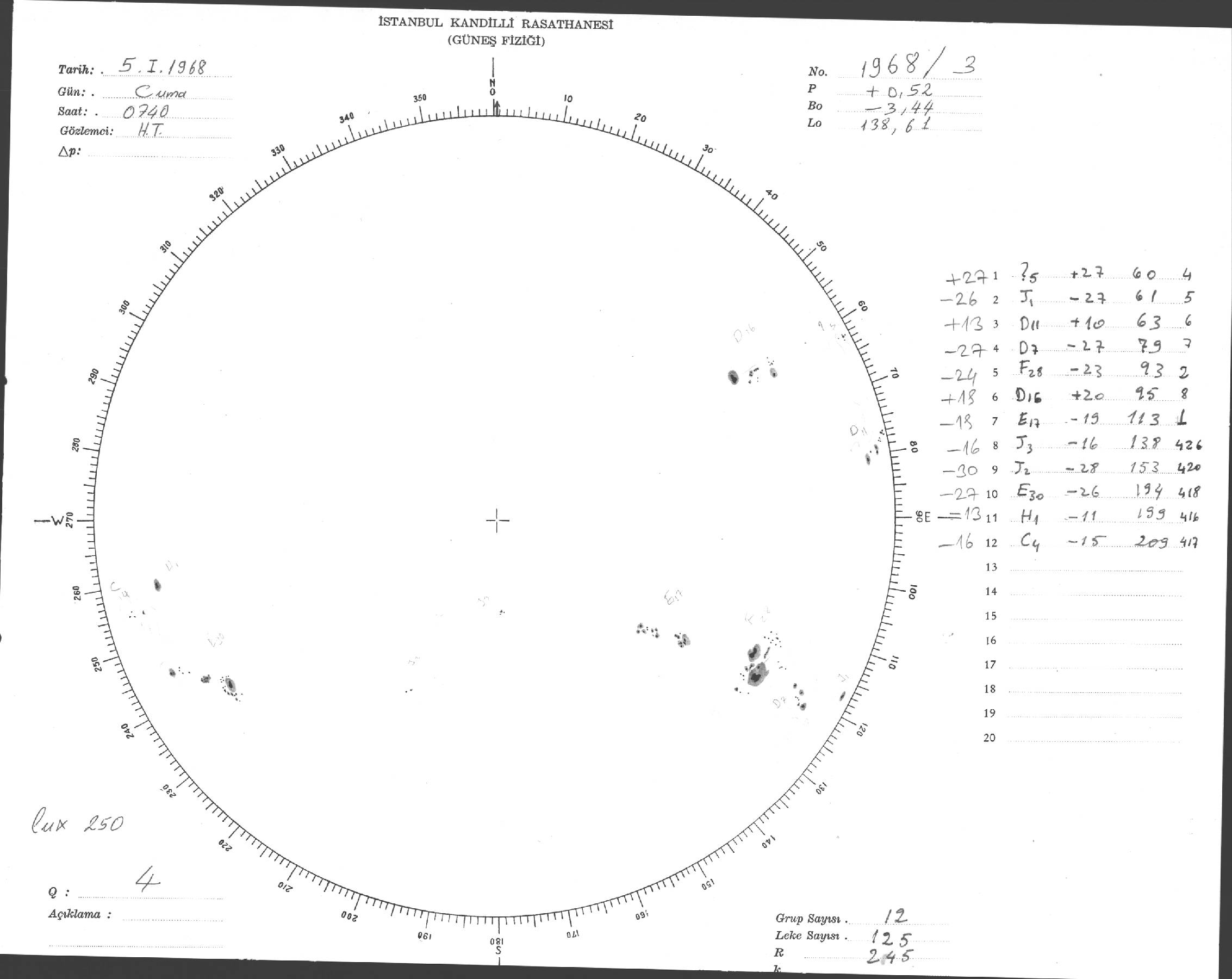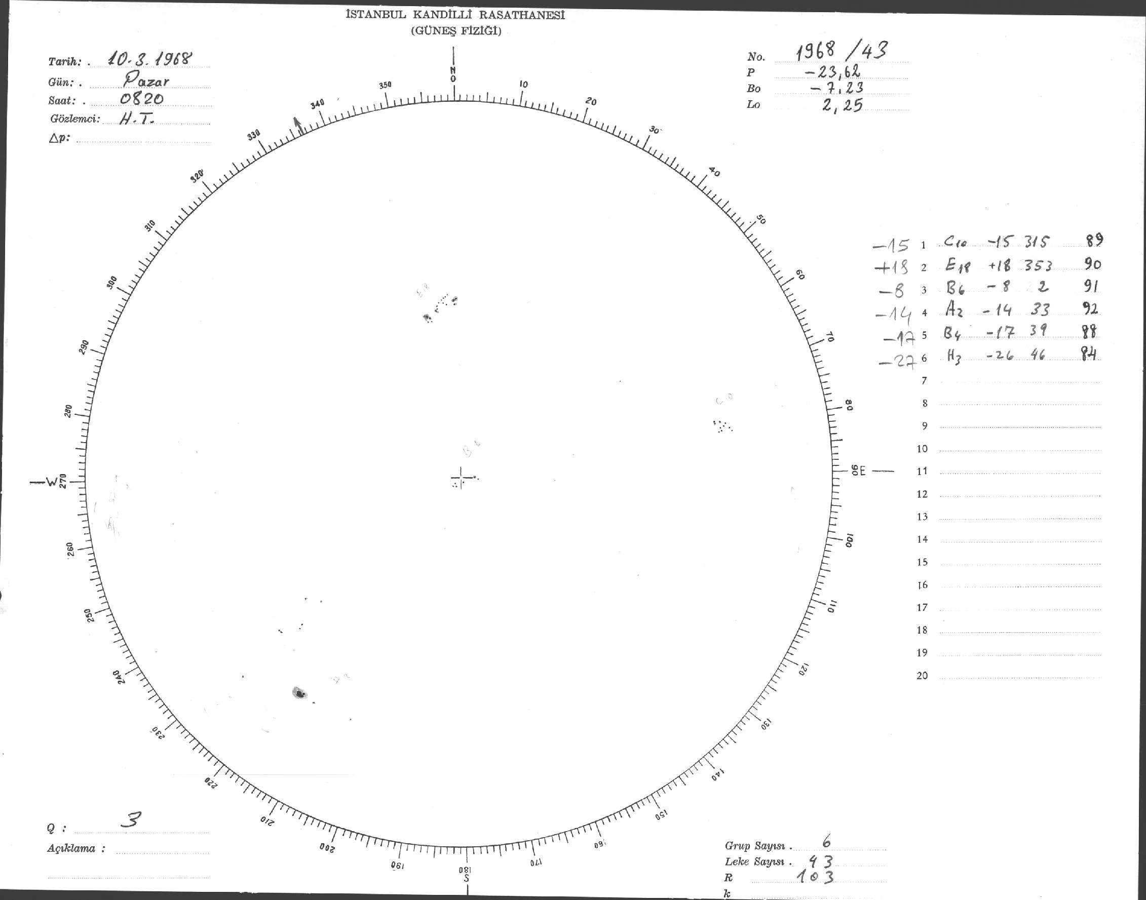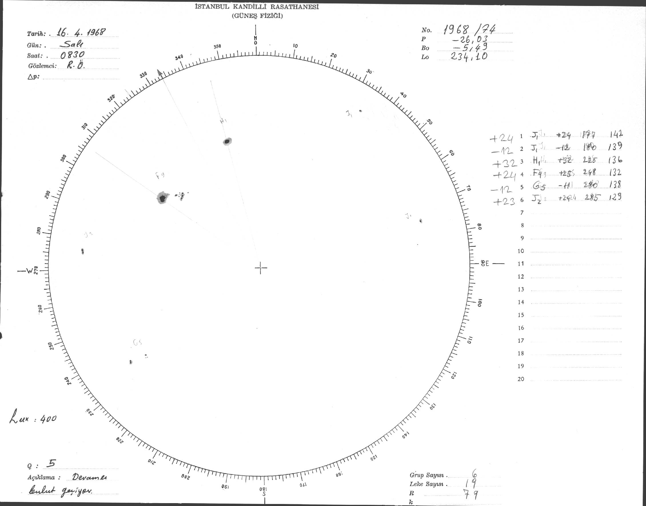 Güneş Lekesi Çizimleri / Kandilli Sunspot Drawings