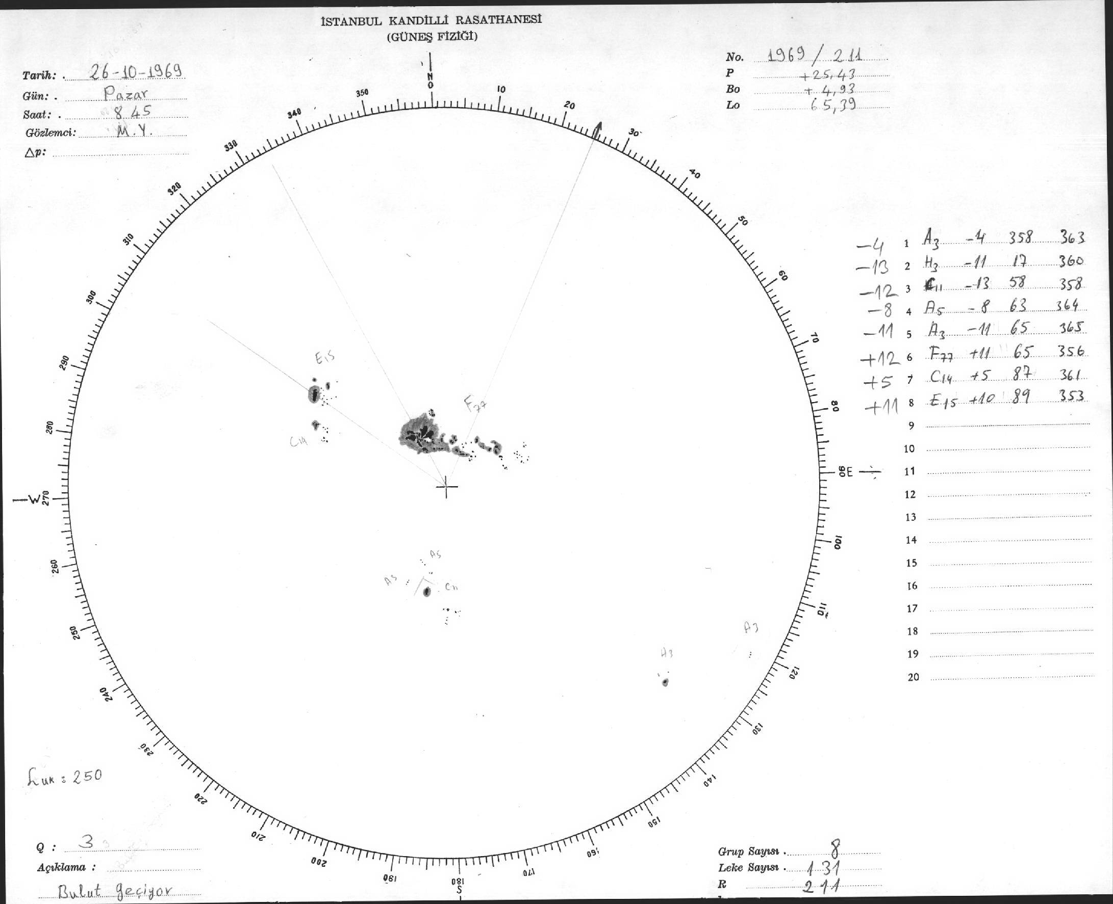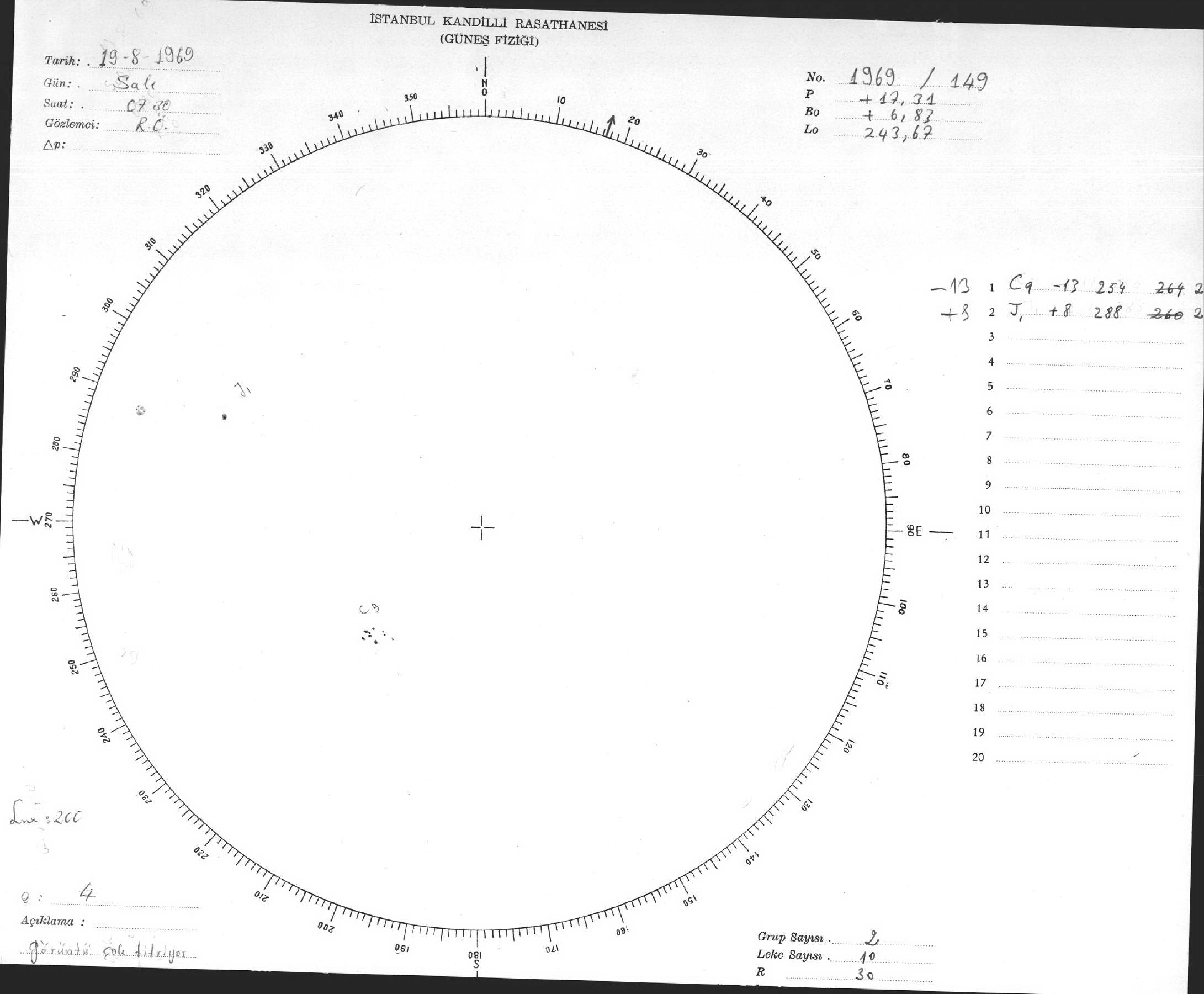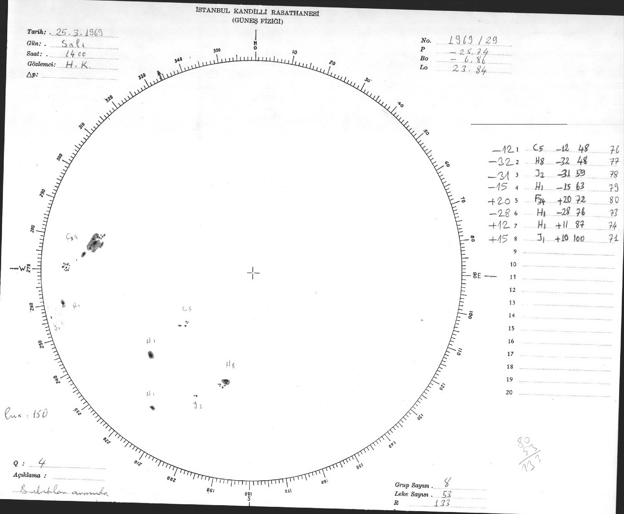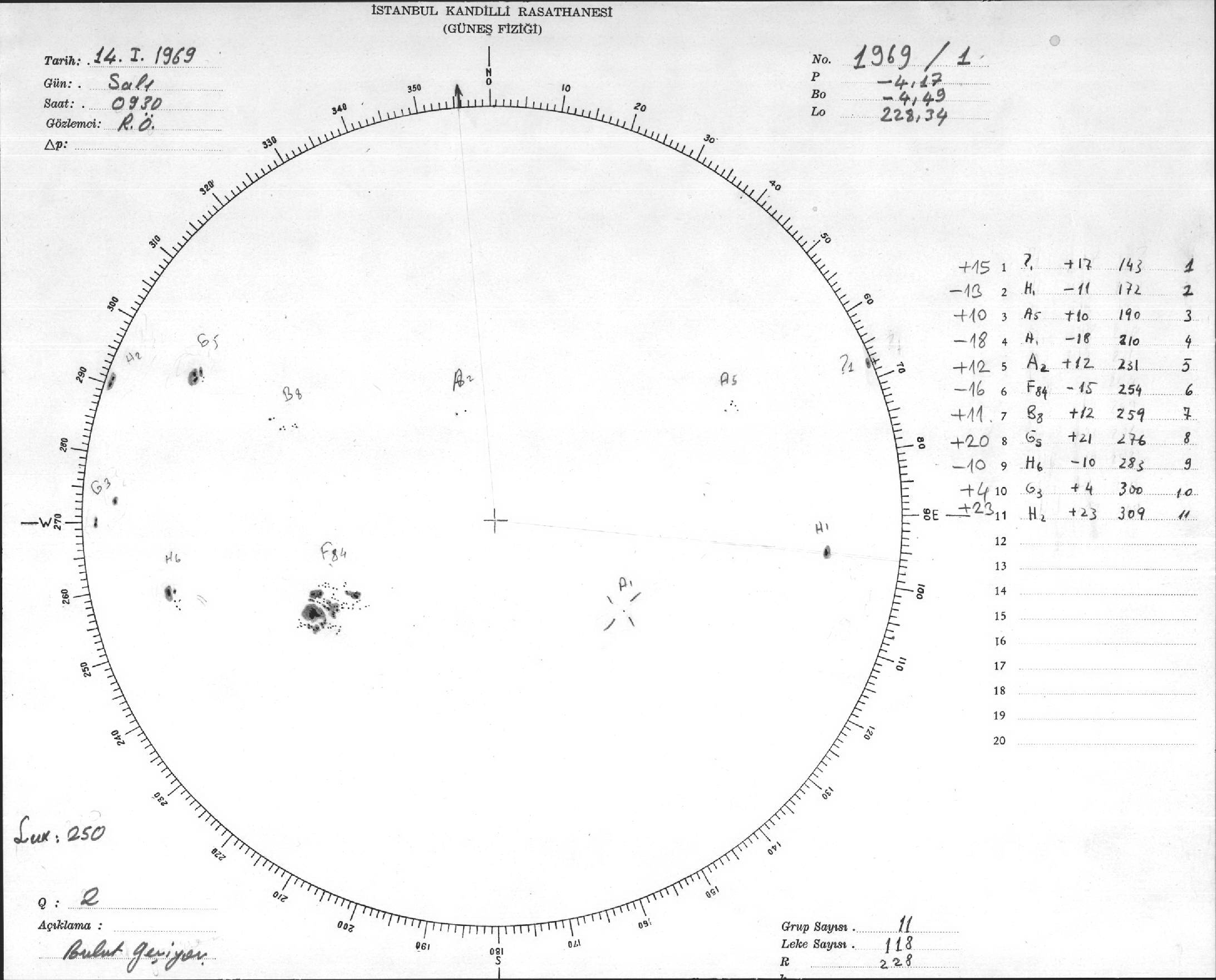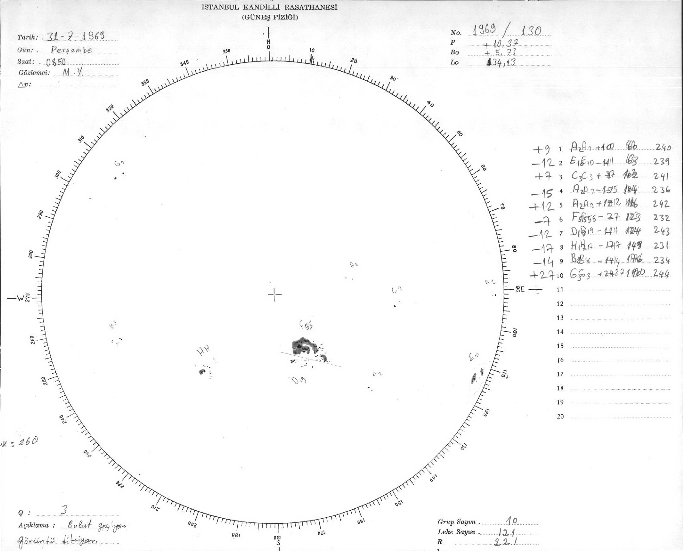 Güneş Lekesi Çizimleri / Kandilli Sunspot Drawings