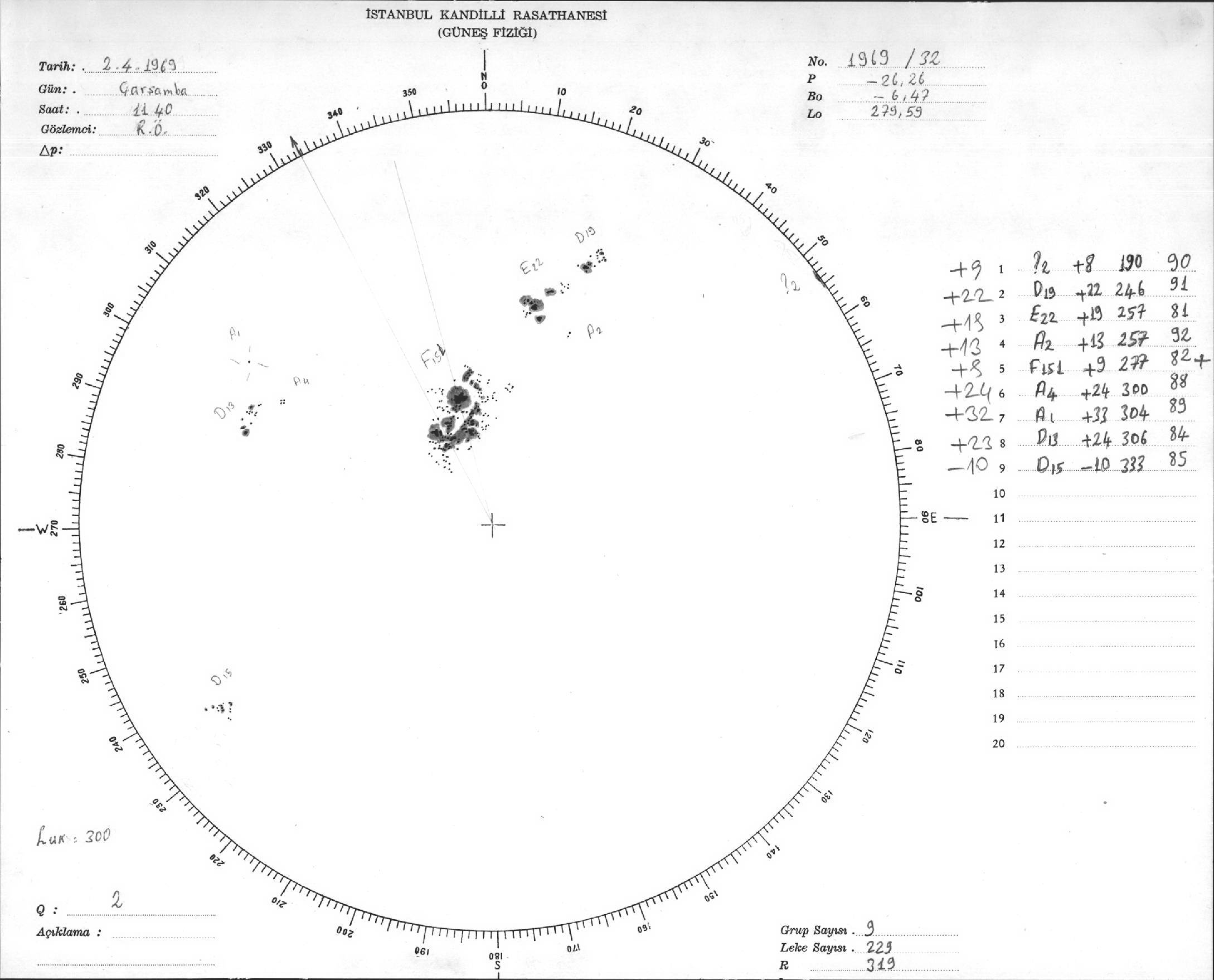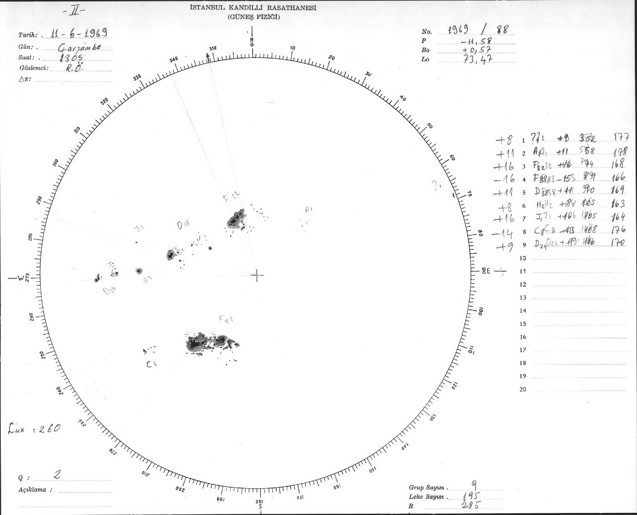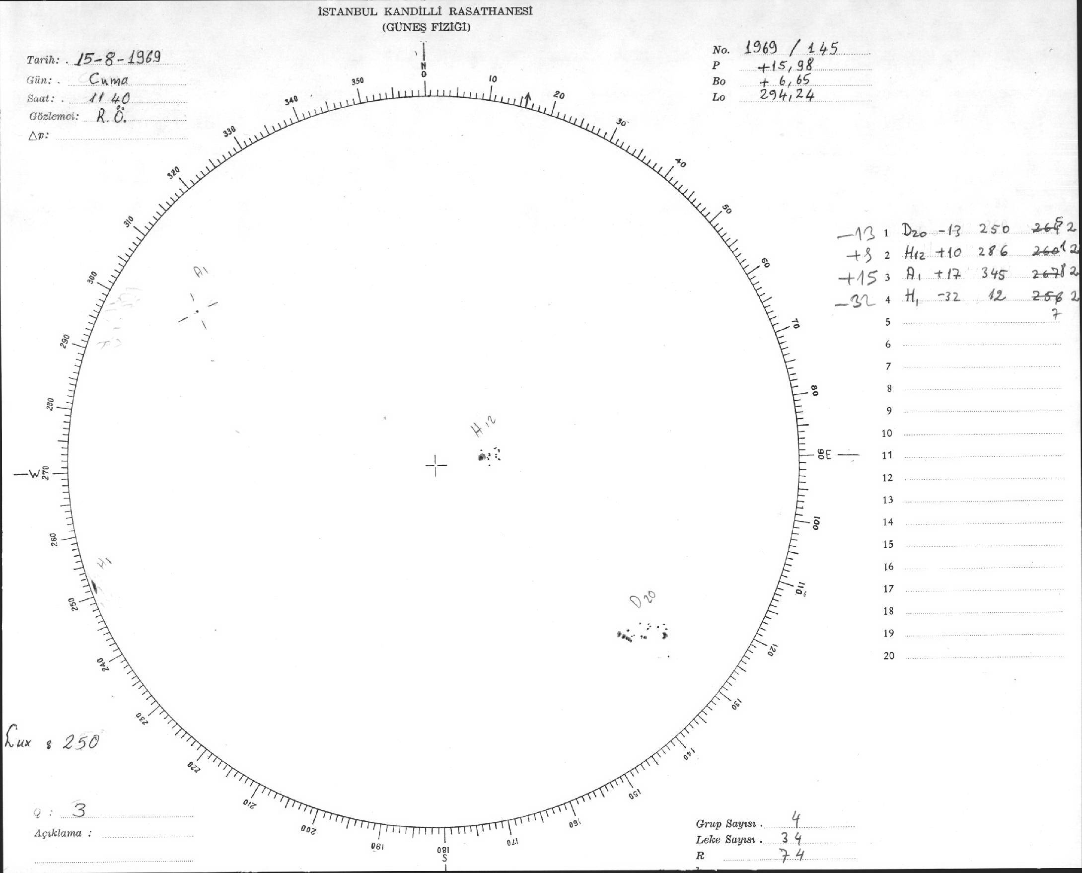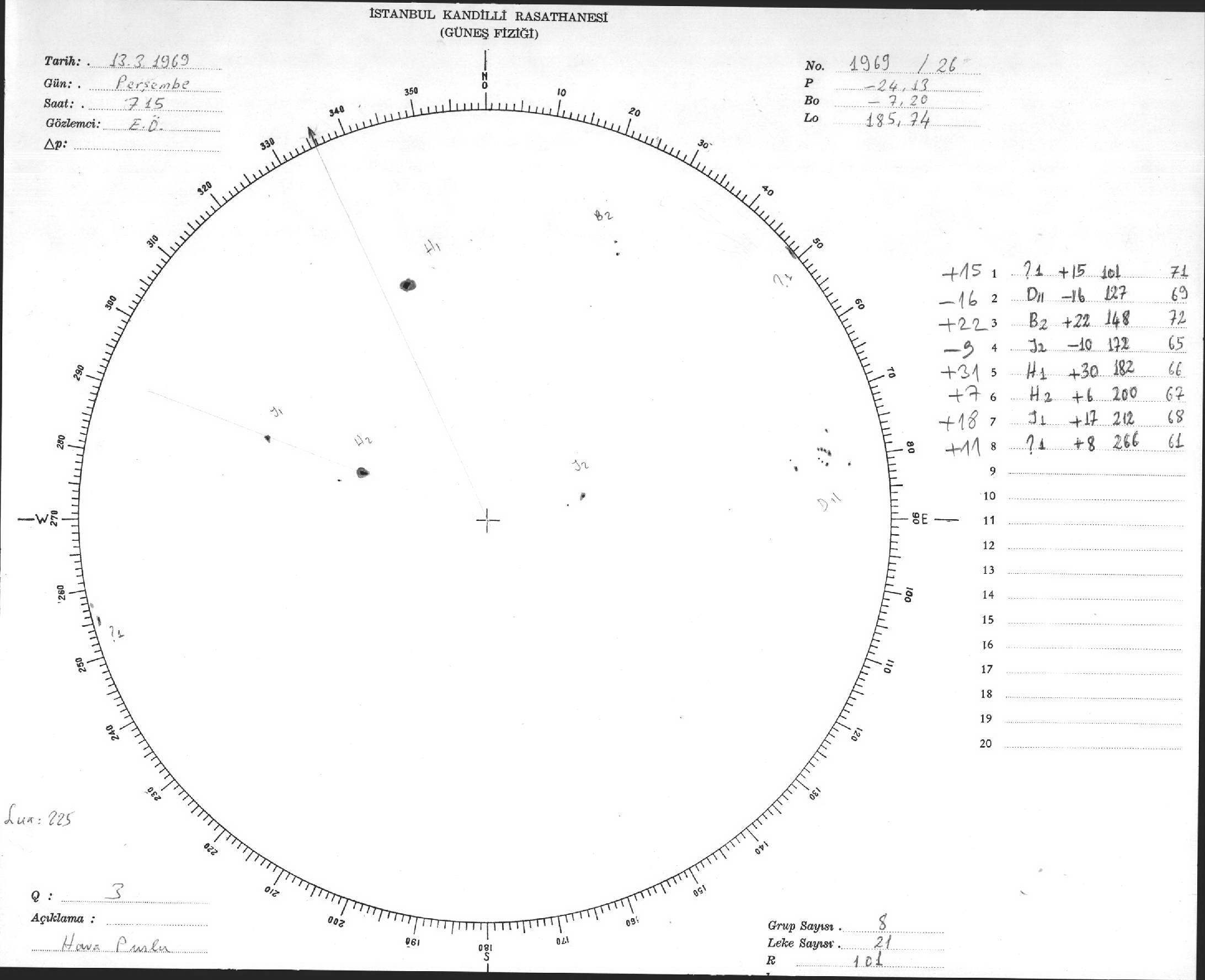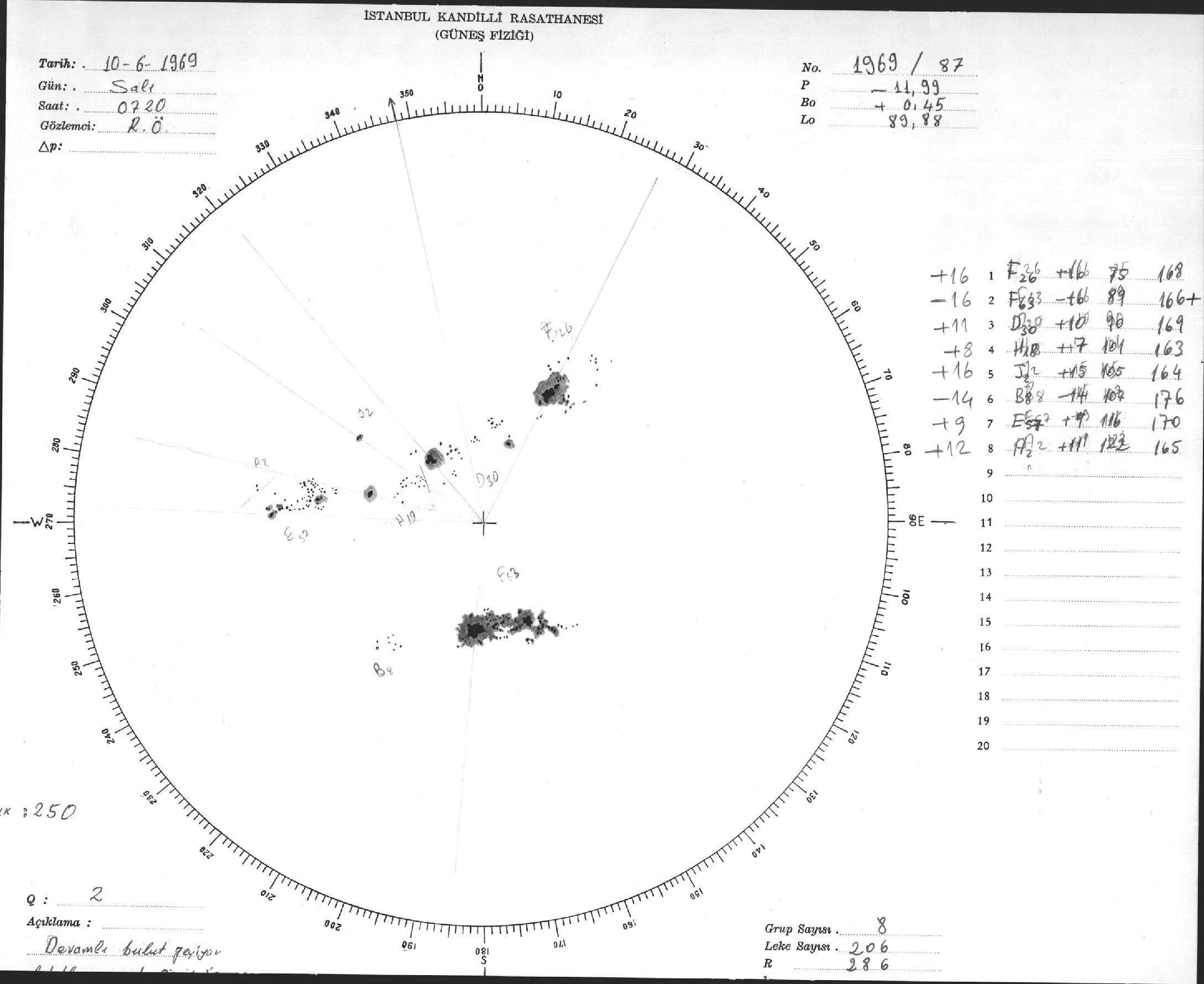 Güneş Lekesi Çizimleri / Kandilli Sunspot Drawings
