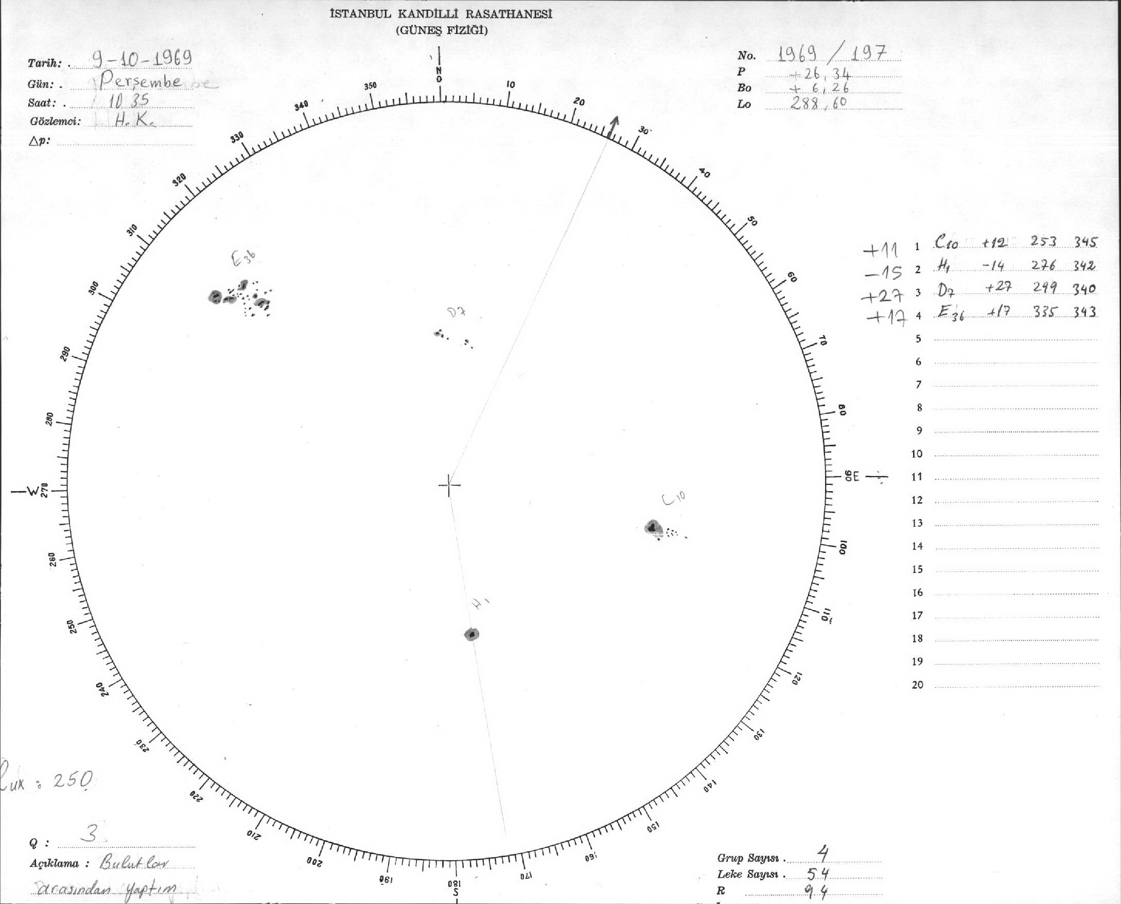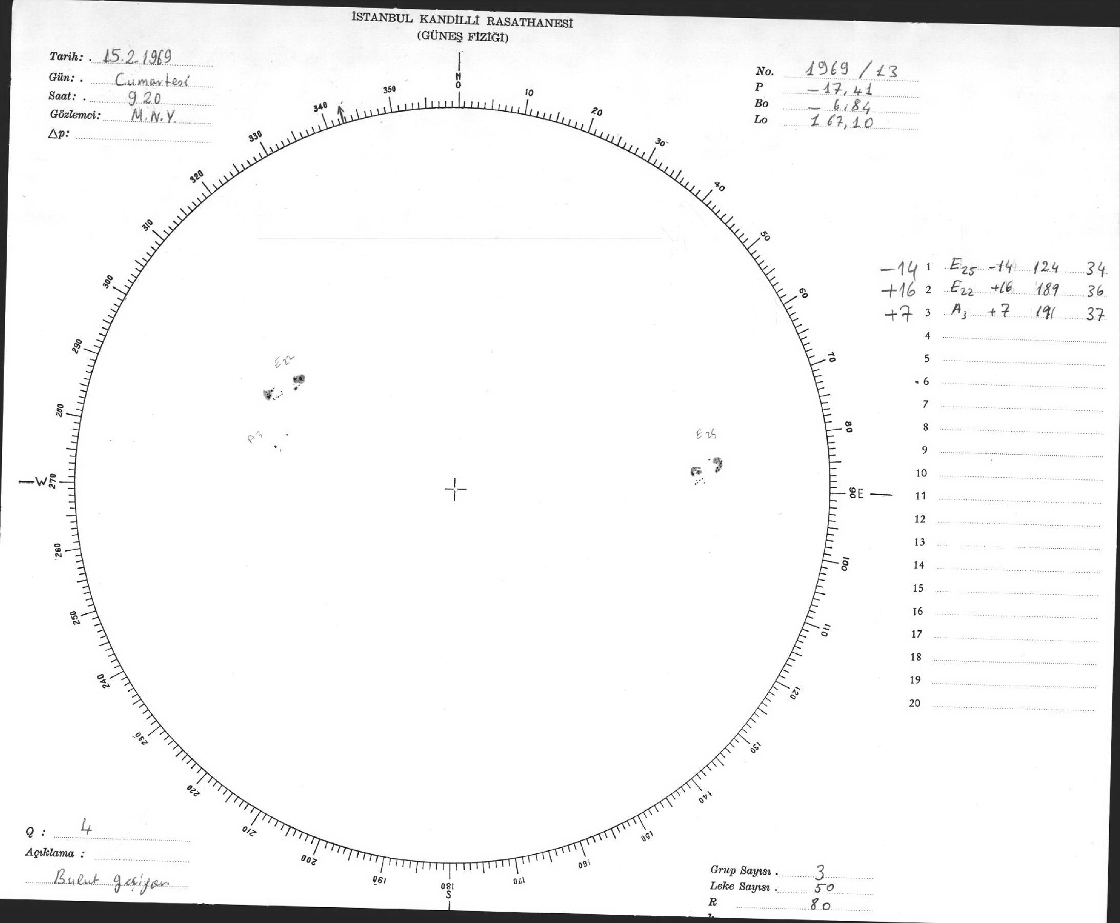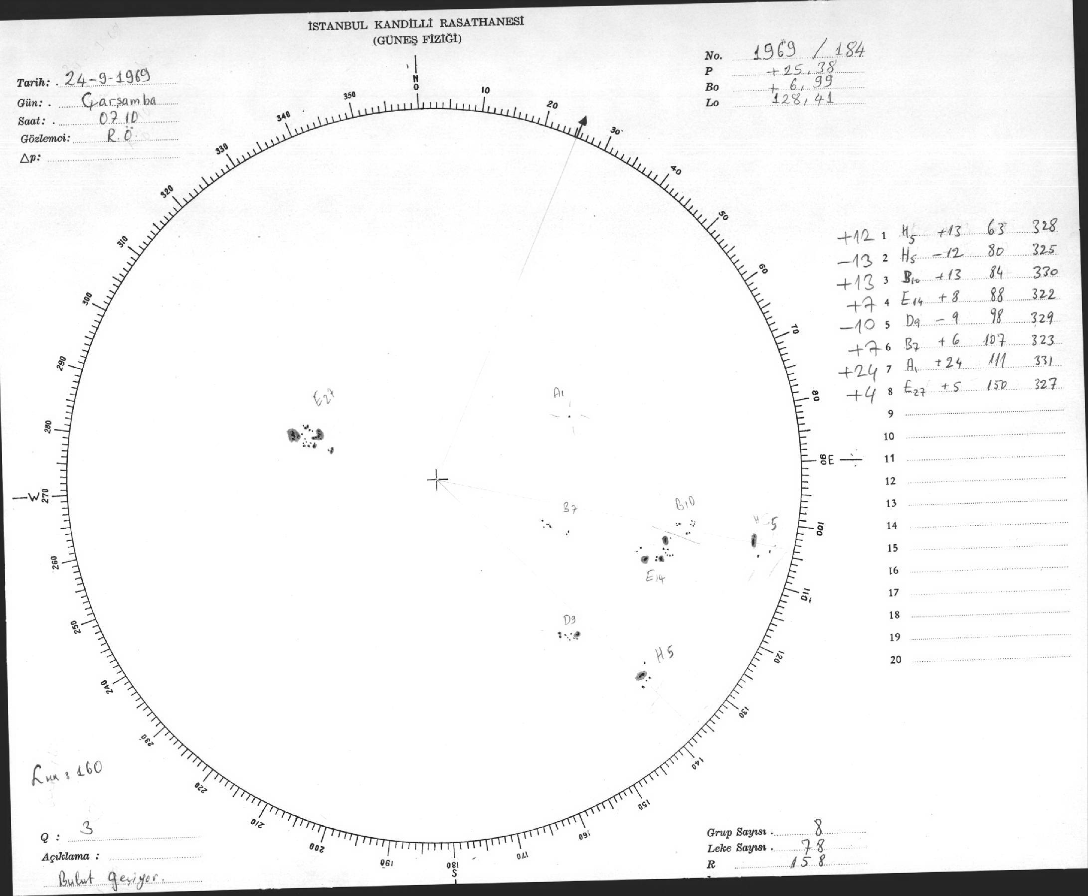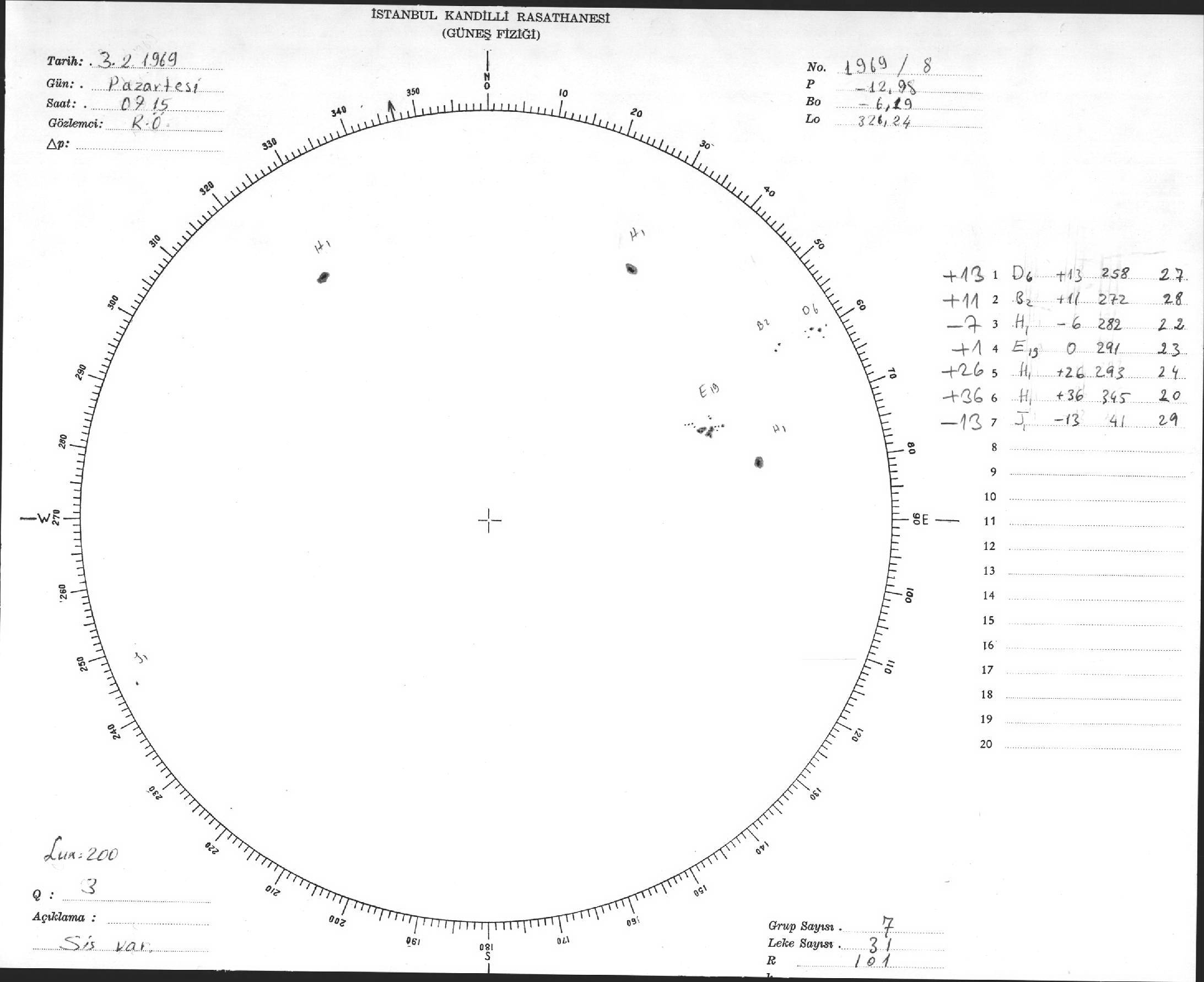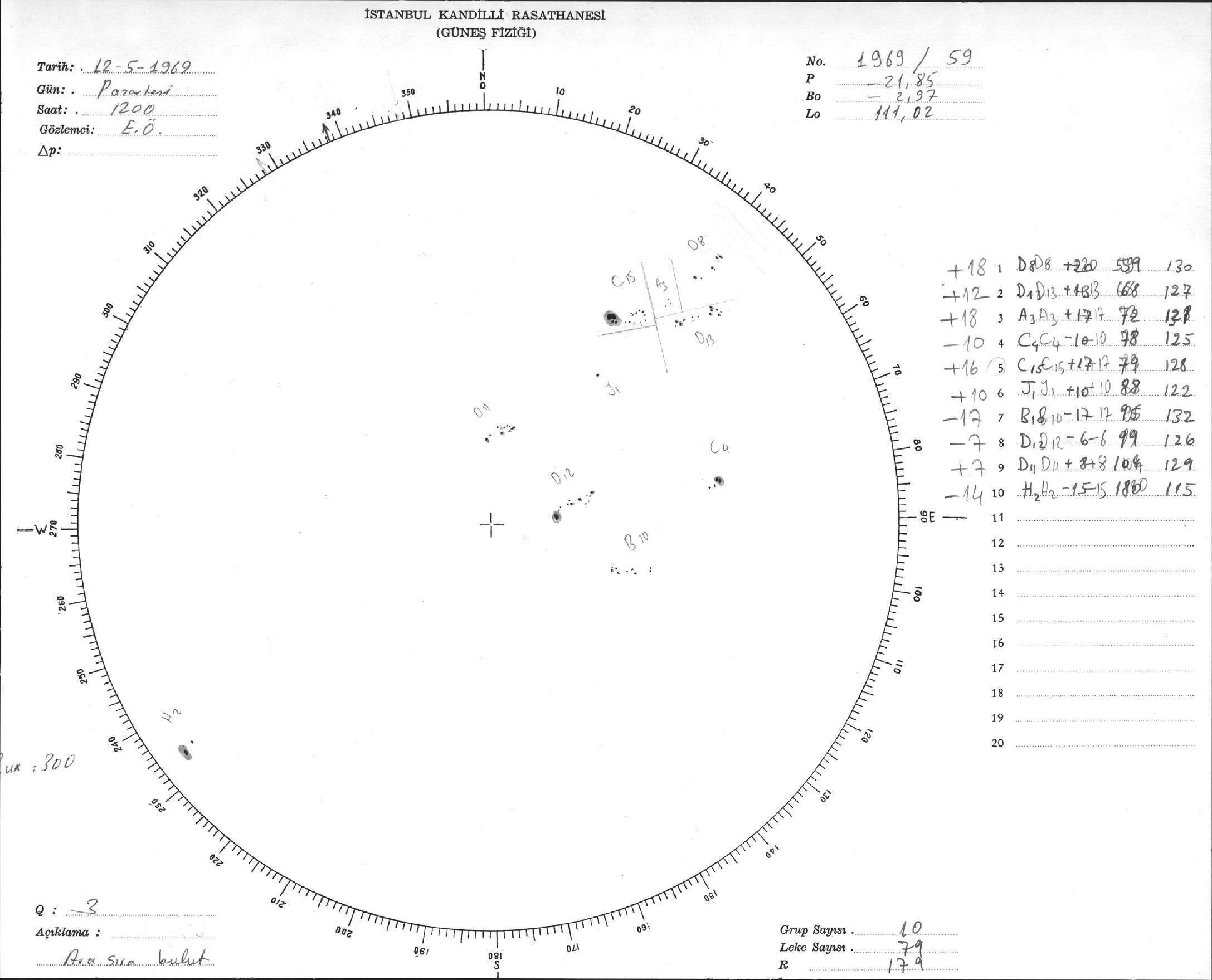 Güneş Lekesi Çizimleri / Kandilli Sunspot Drawings