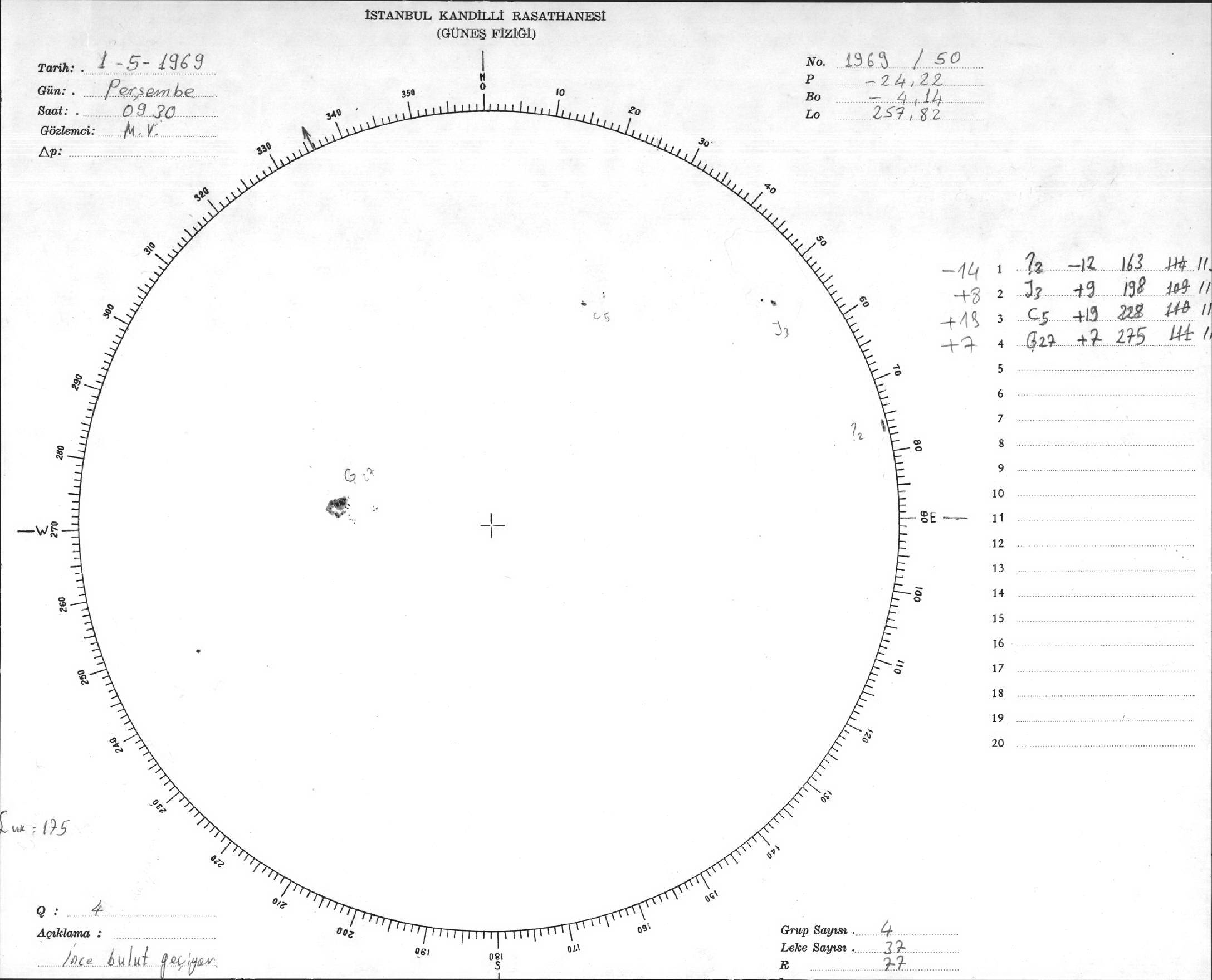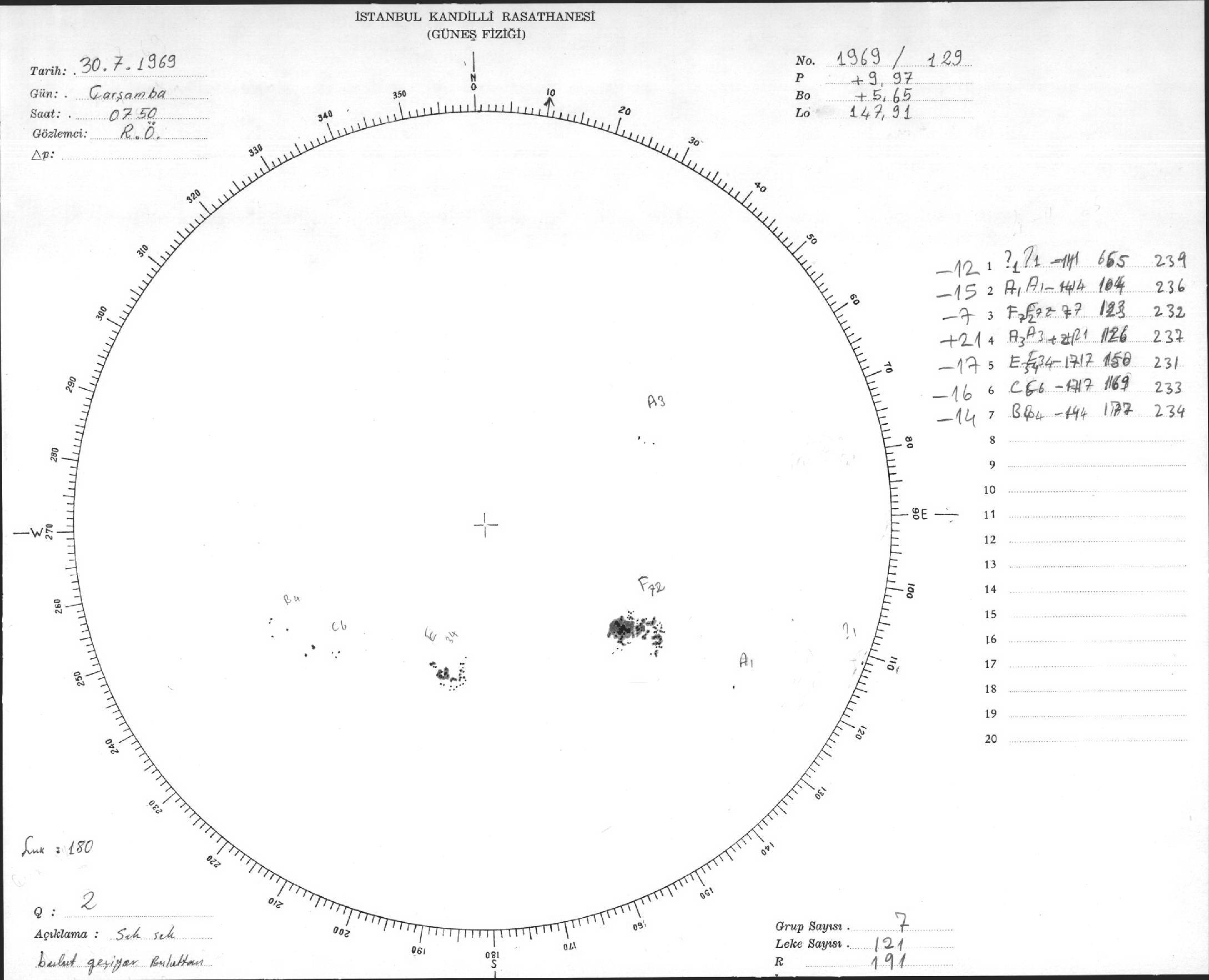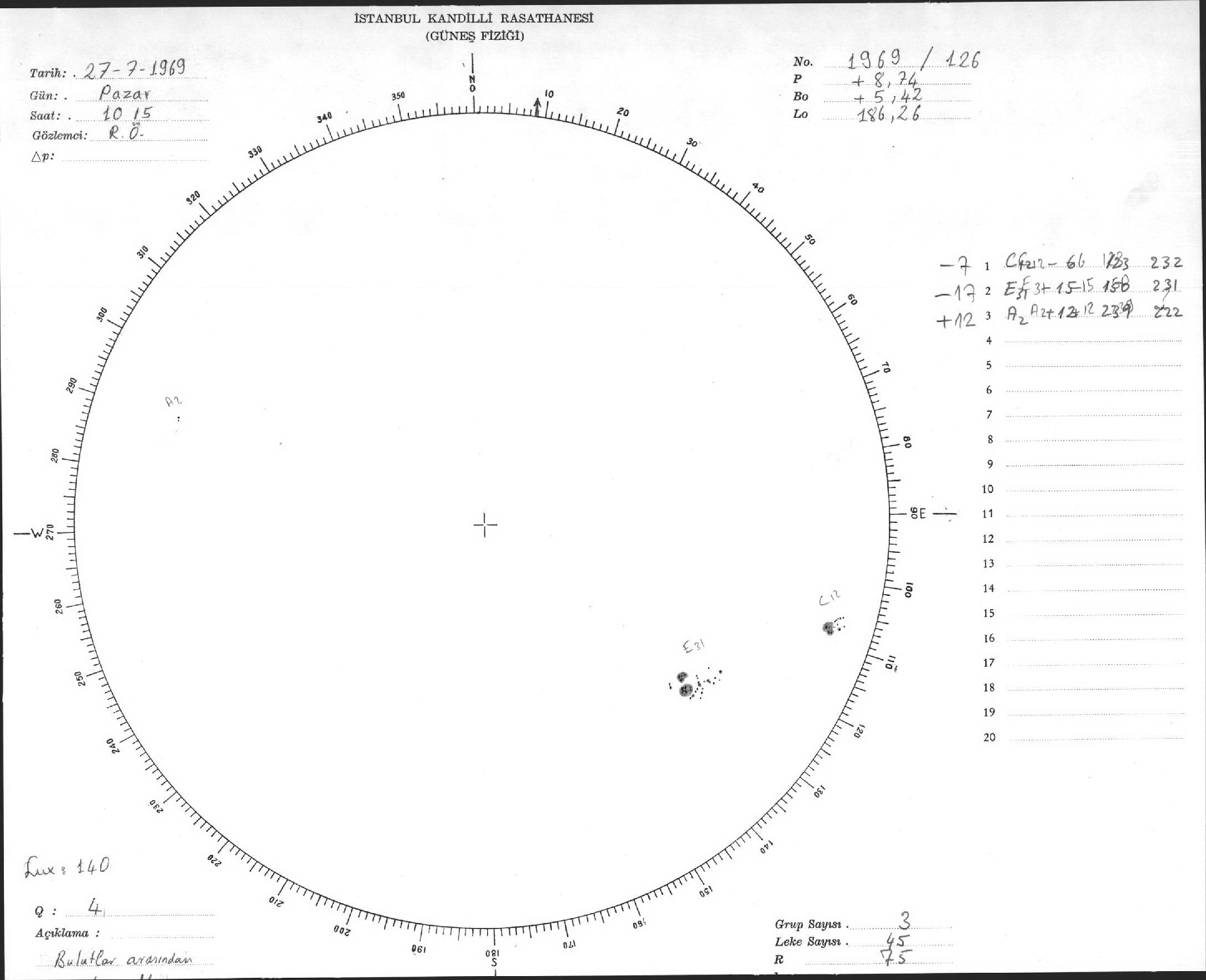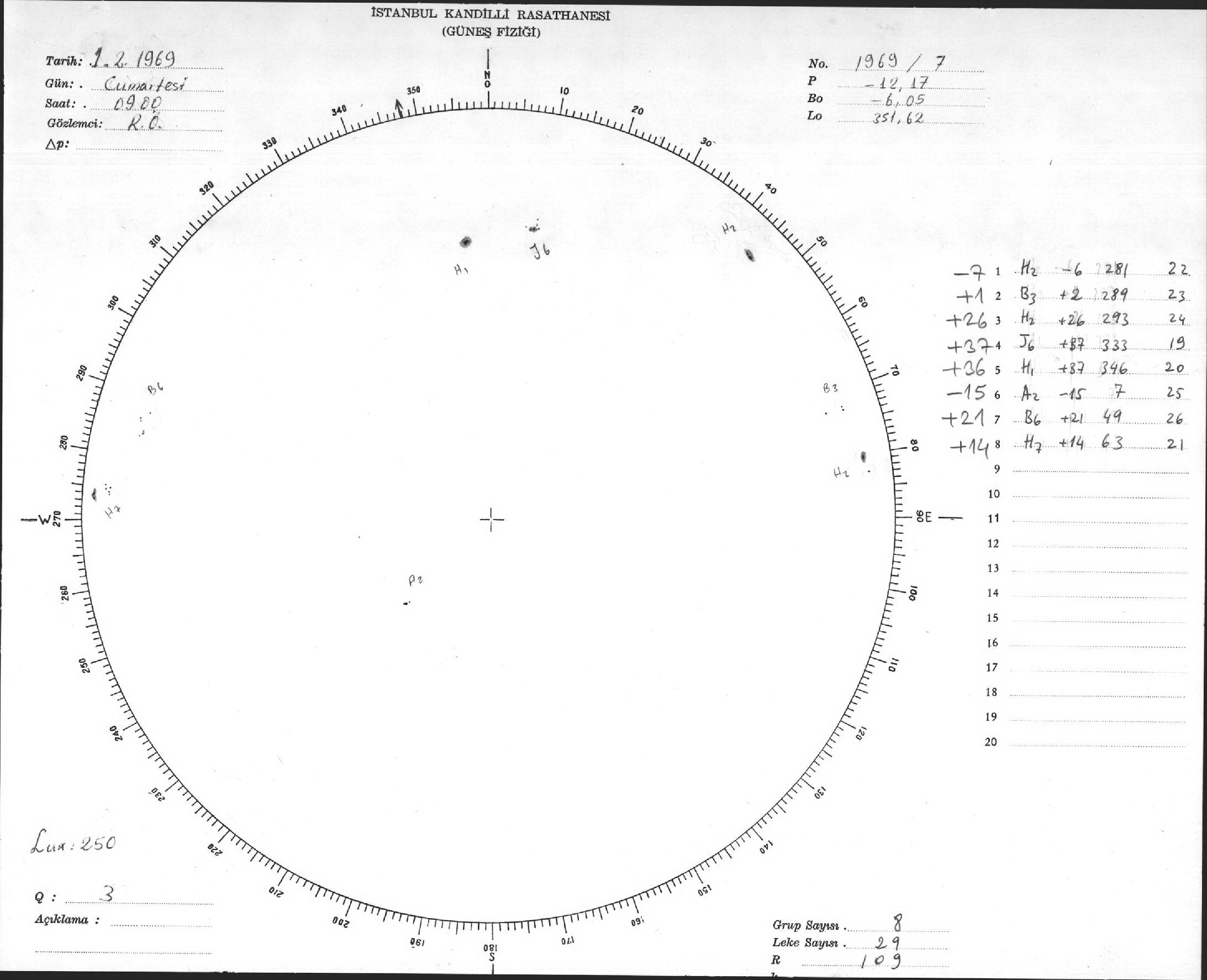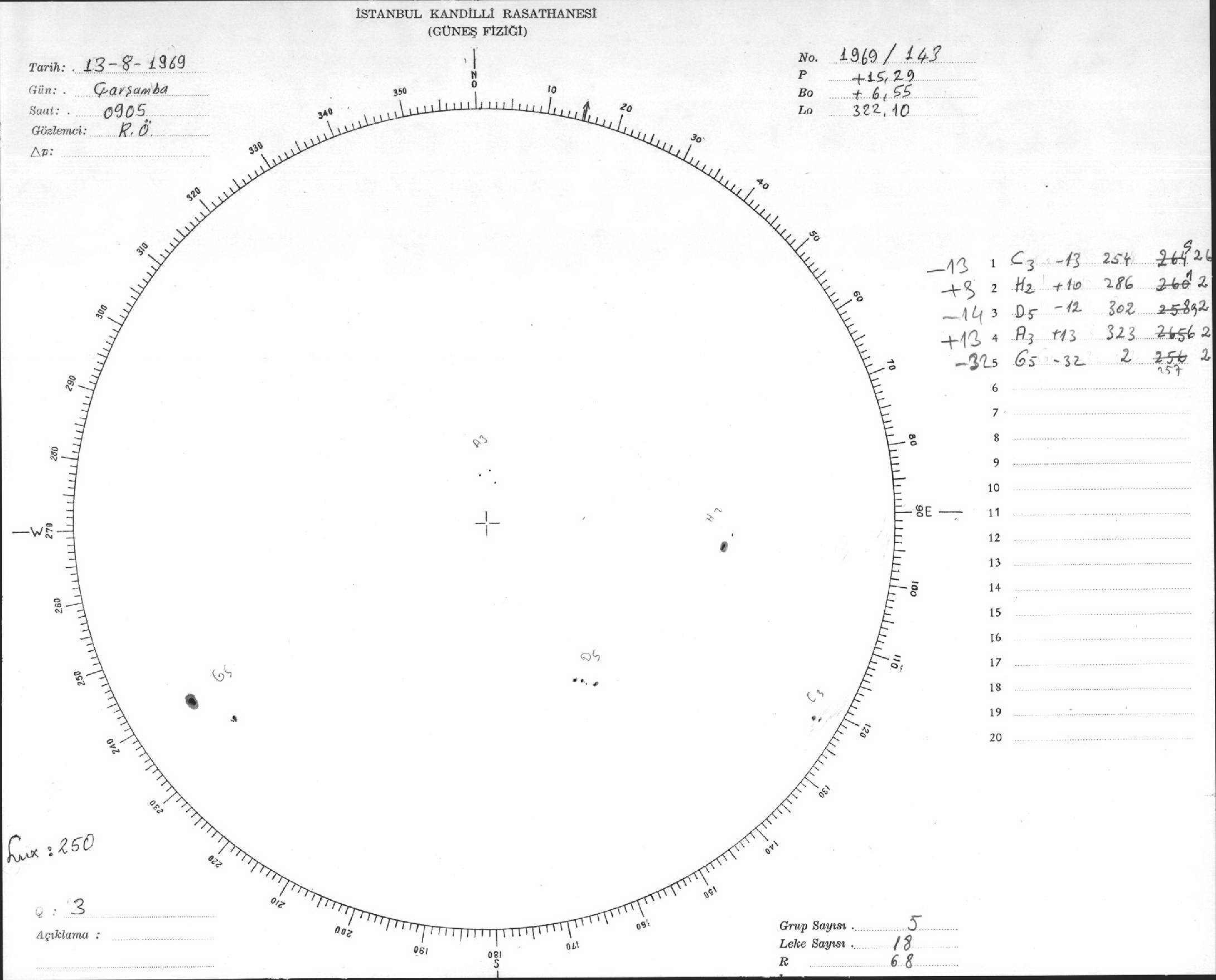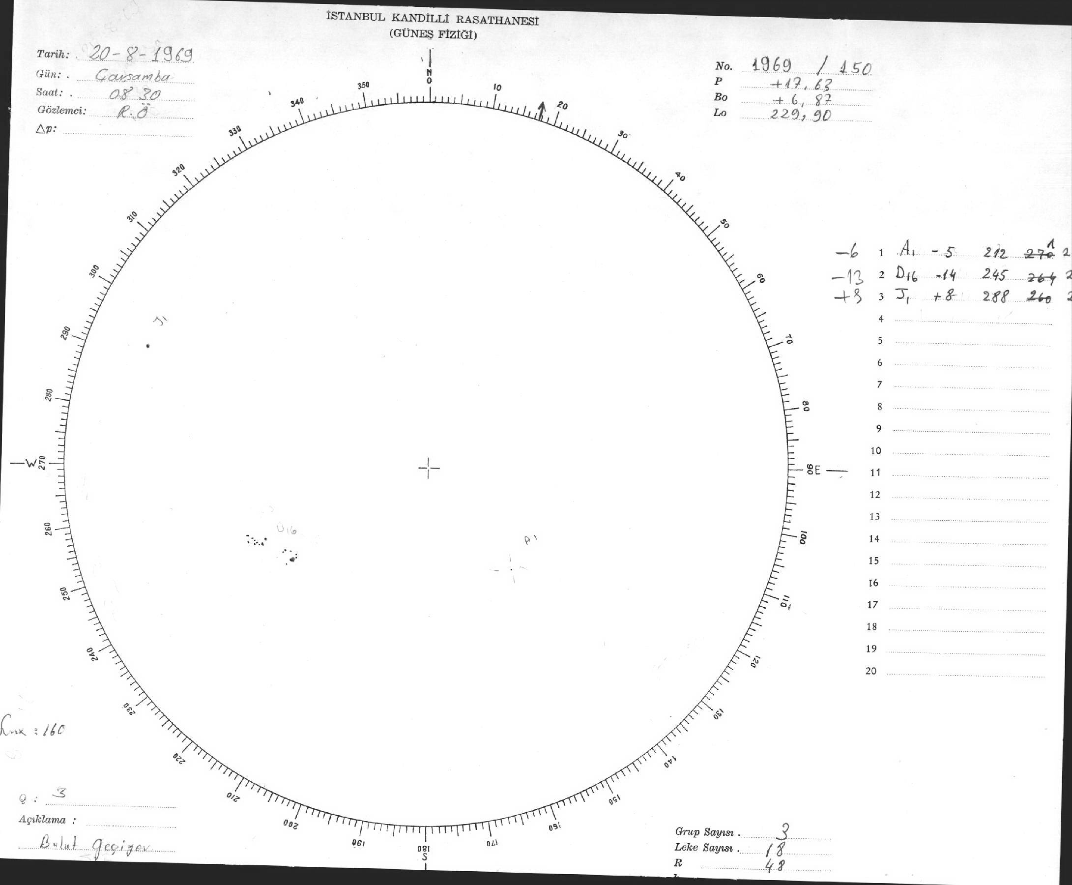 Güneş Lekesi Çizimleri / Kandilli Sunspot Drawings