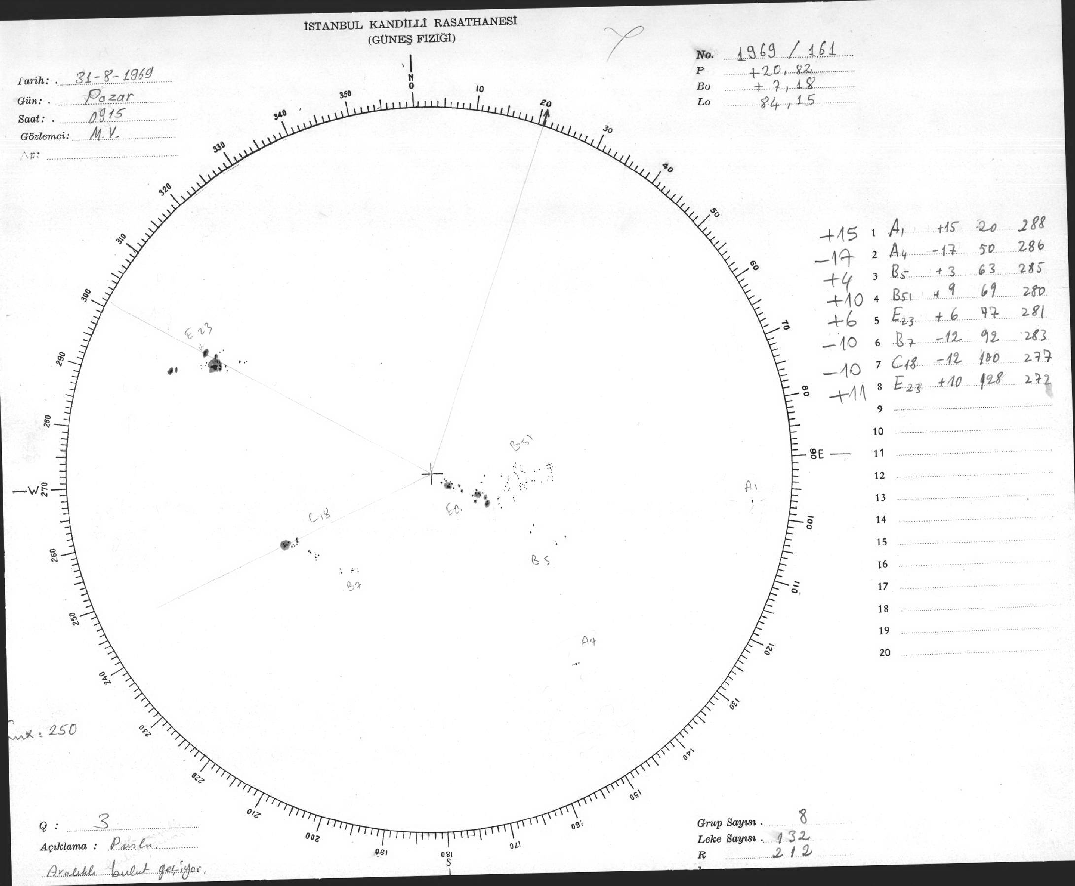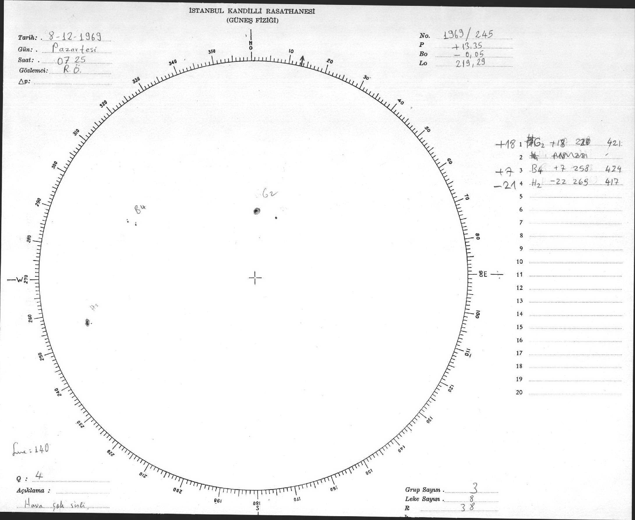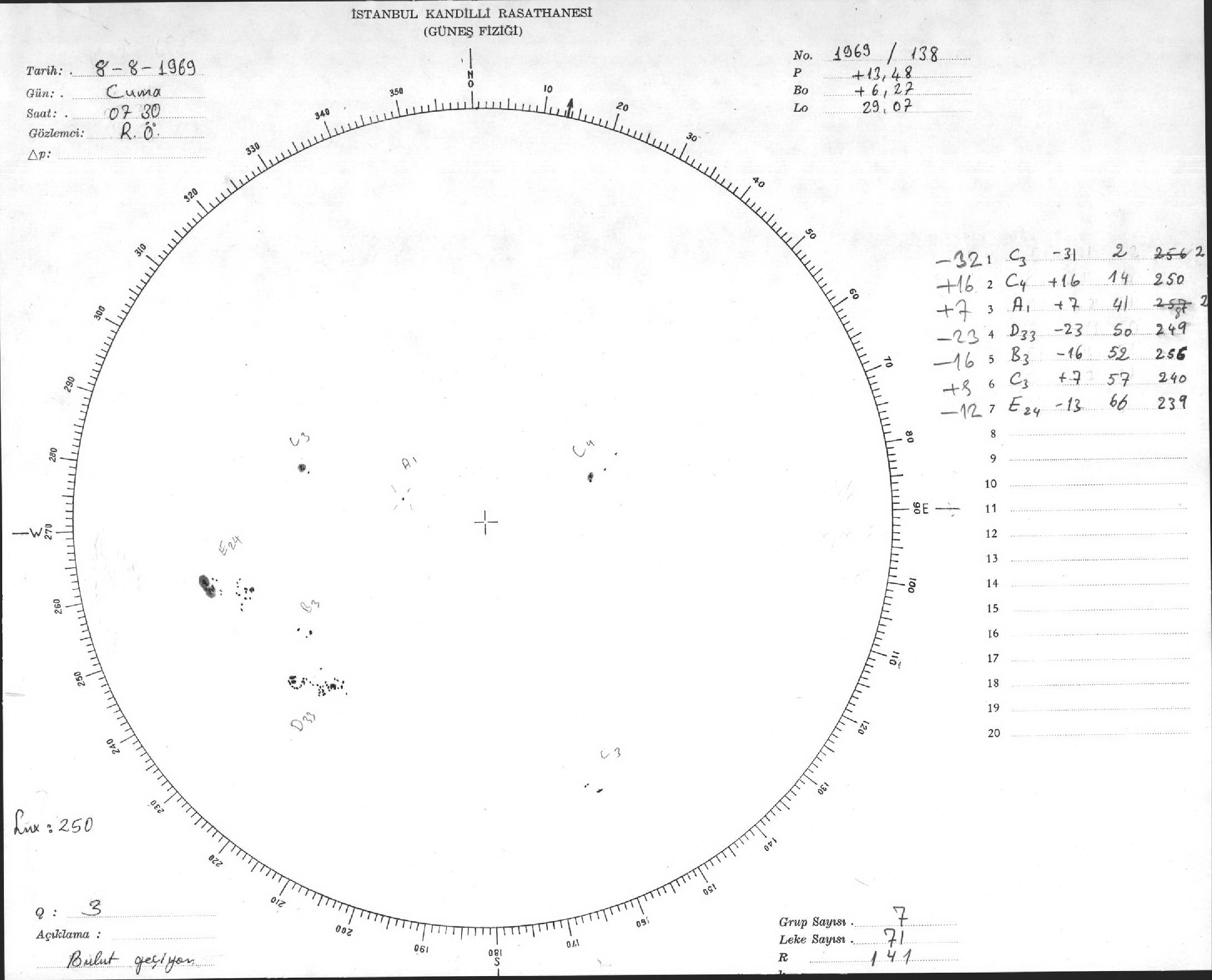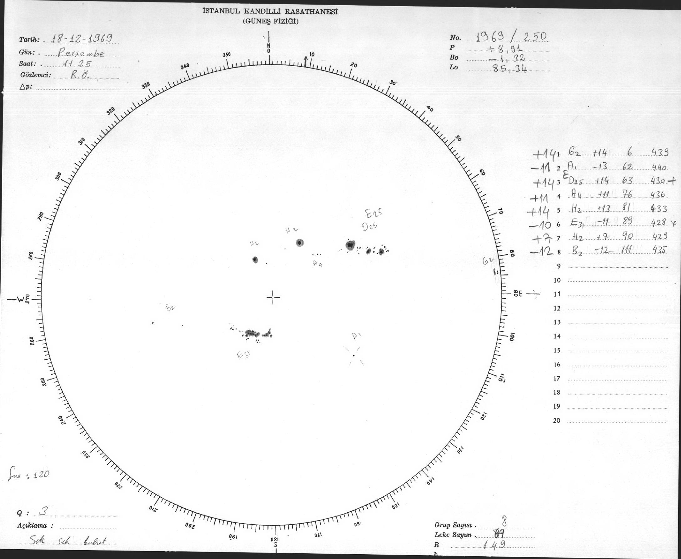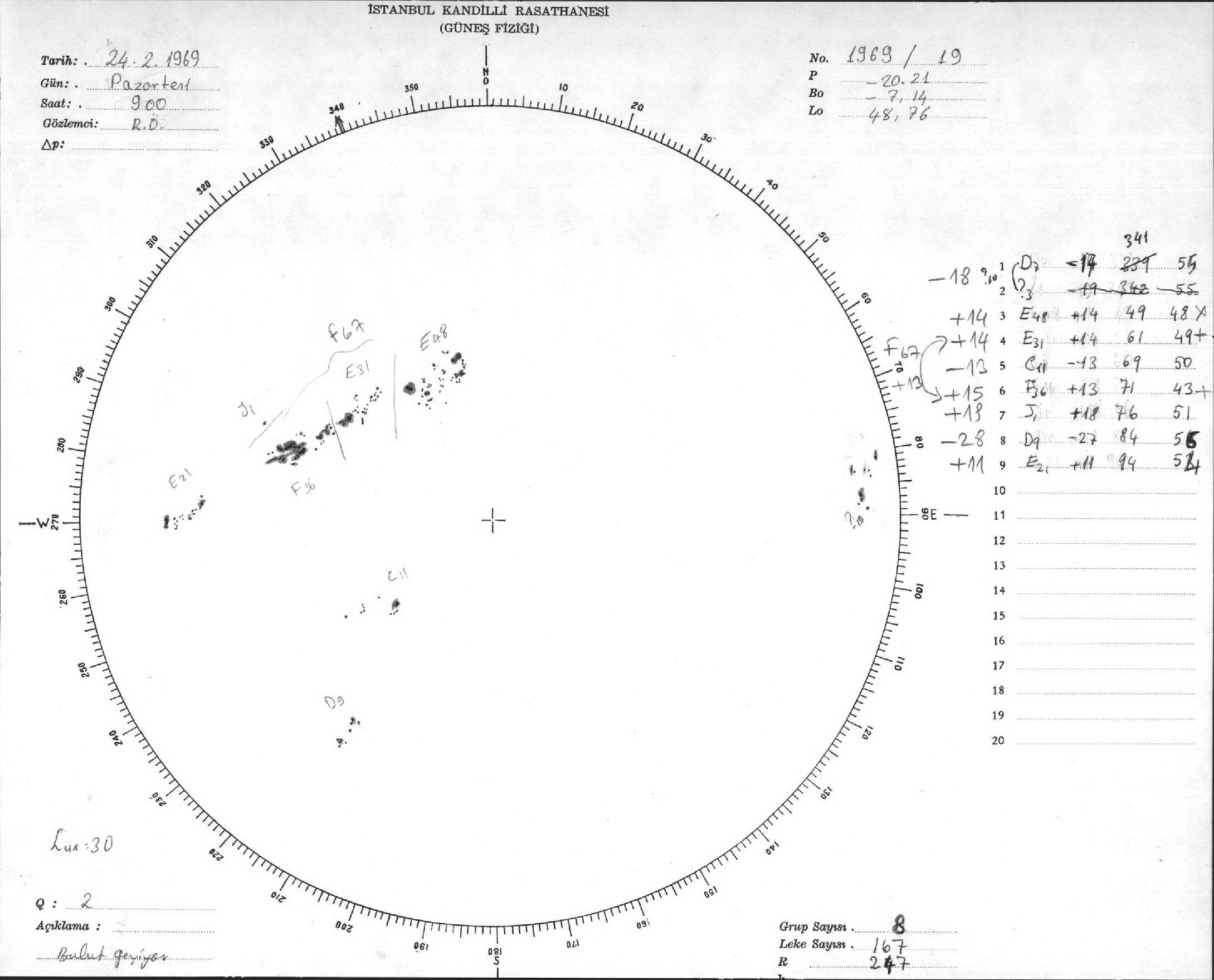 Güneş Lekesi Çizimleri / Kandilli Sunspot Drawings