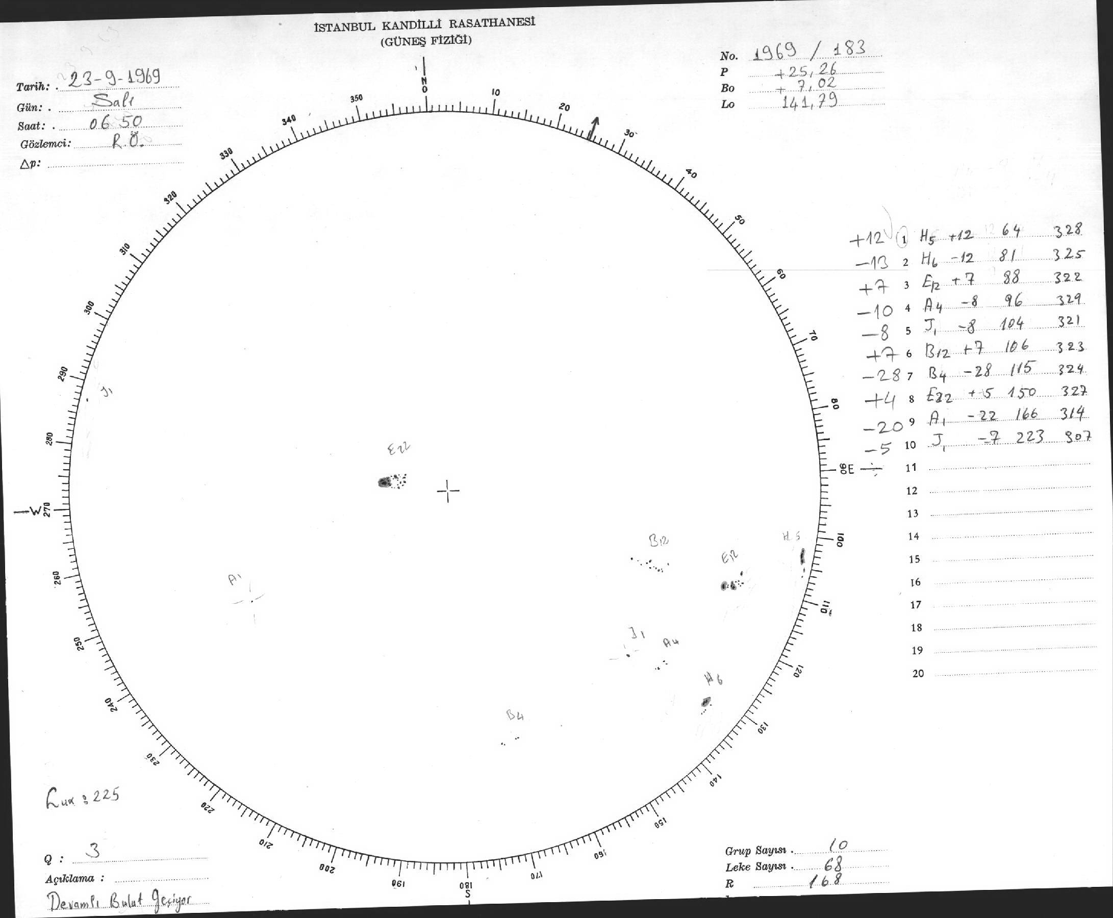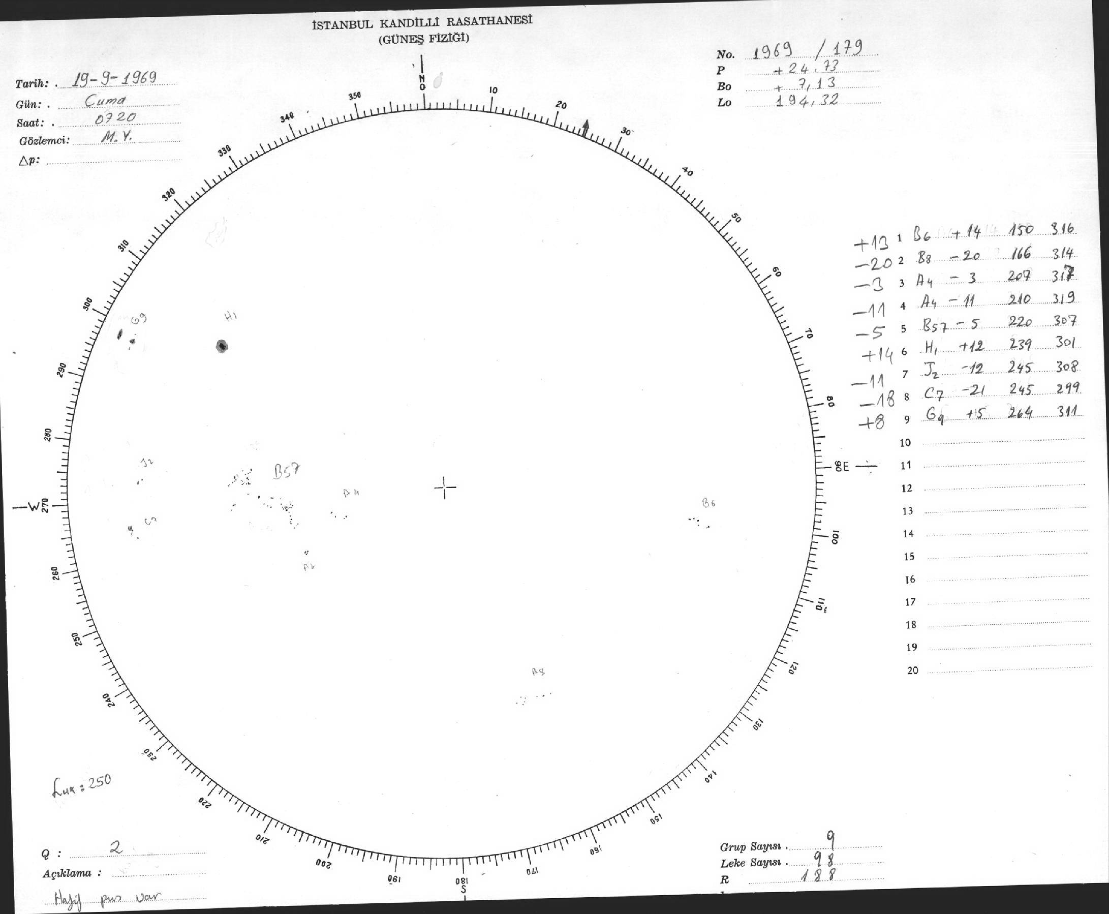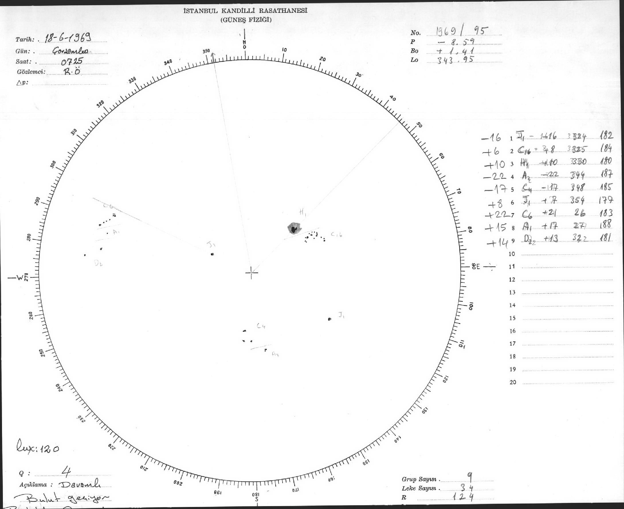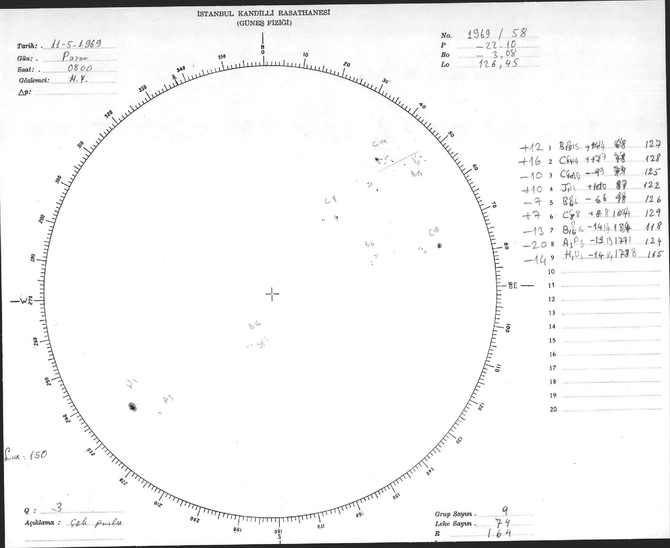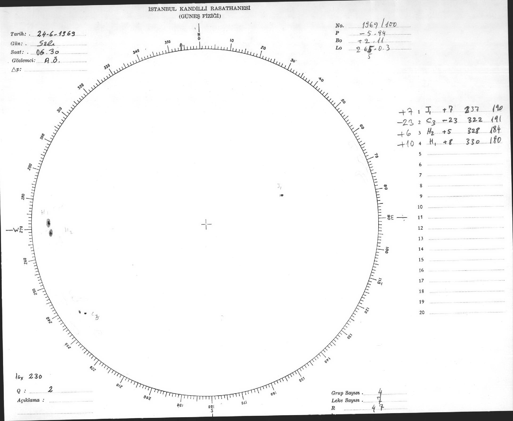 Güneş Lekesi Çizimleri / Kandilli Sunspot Drawings